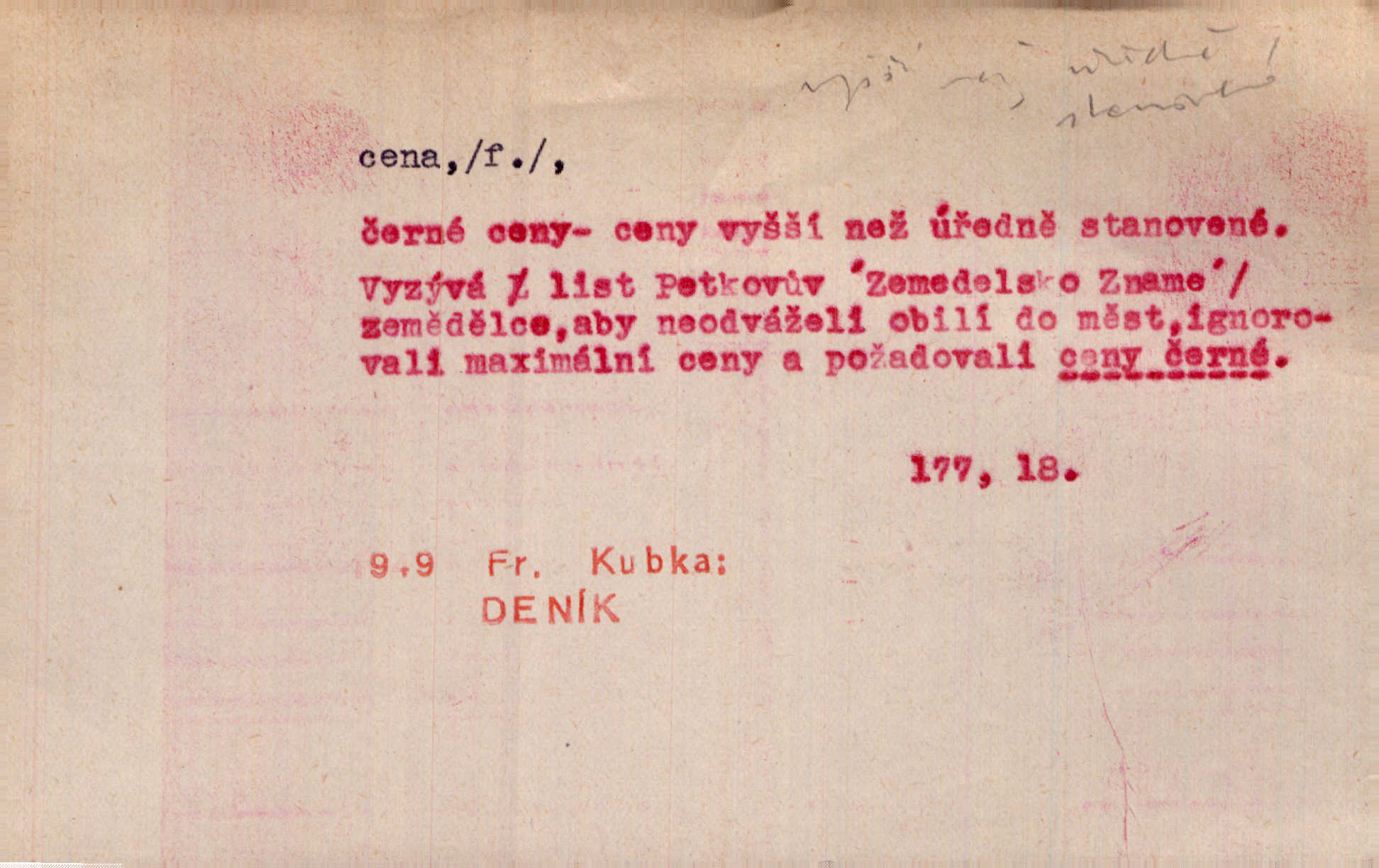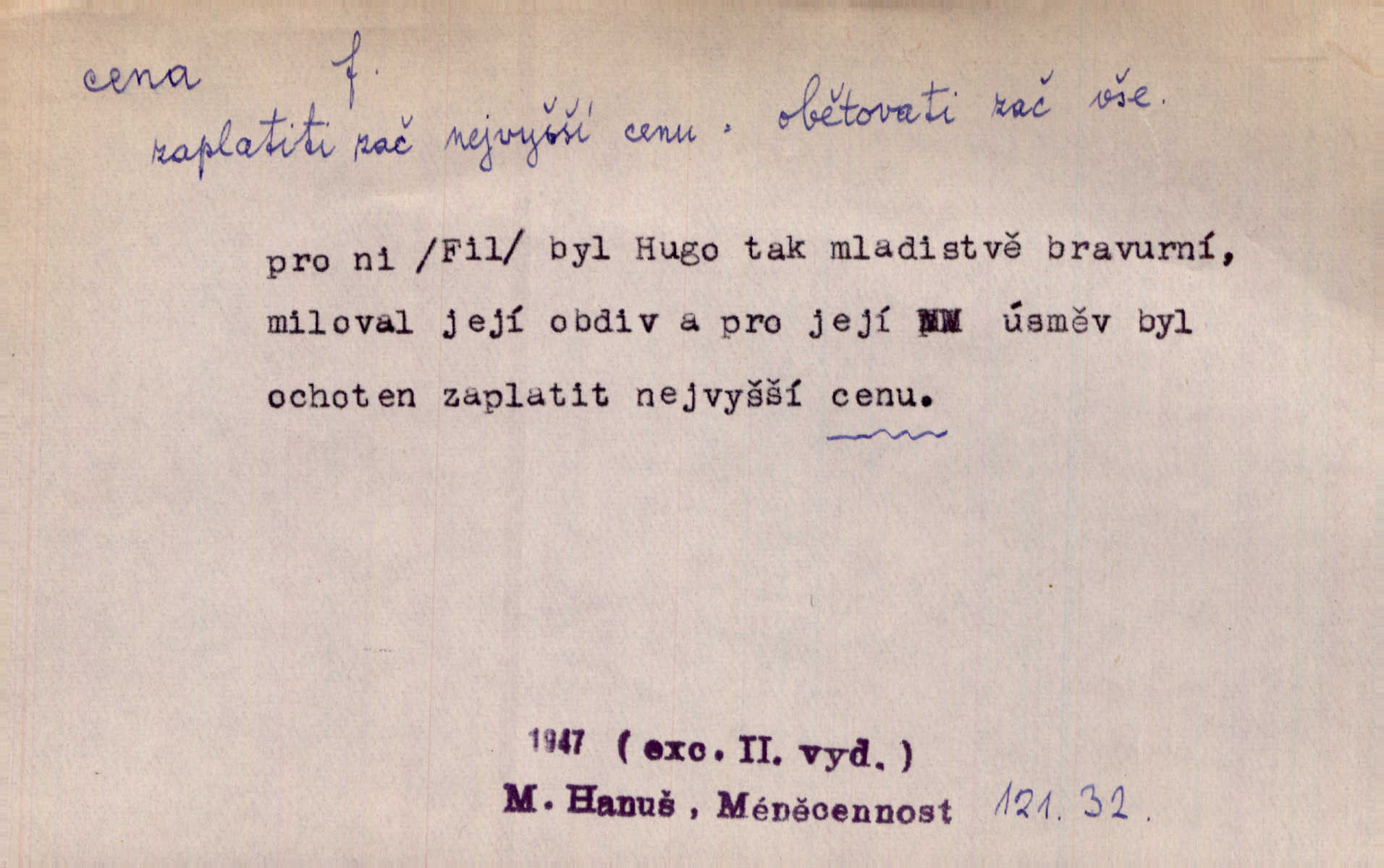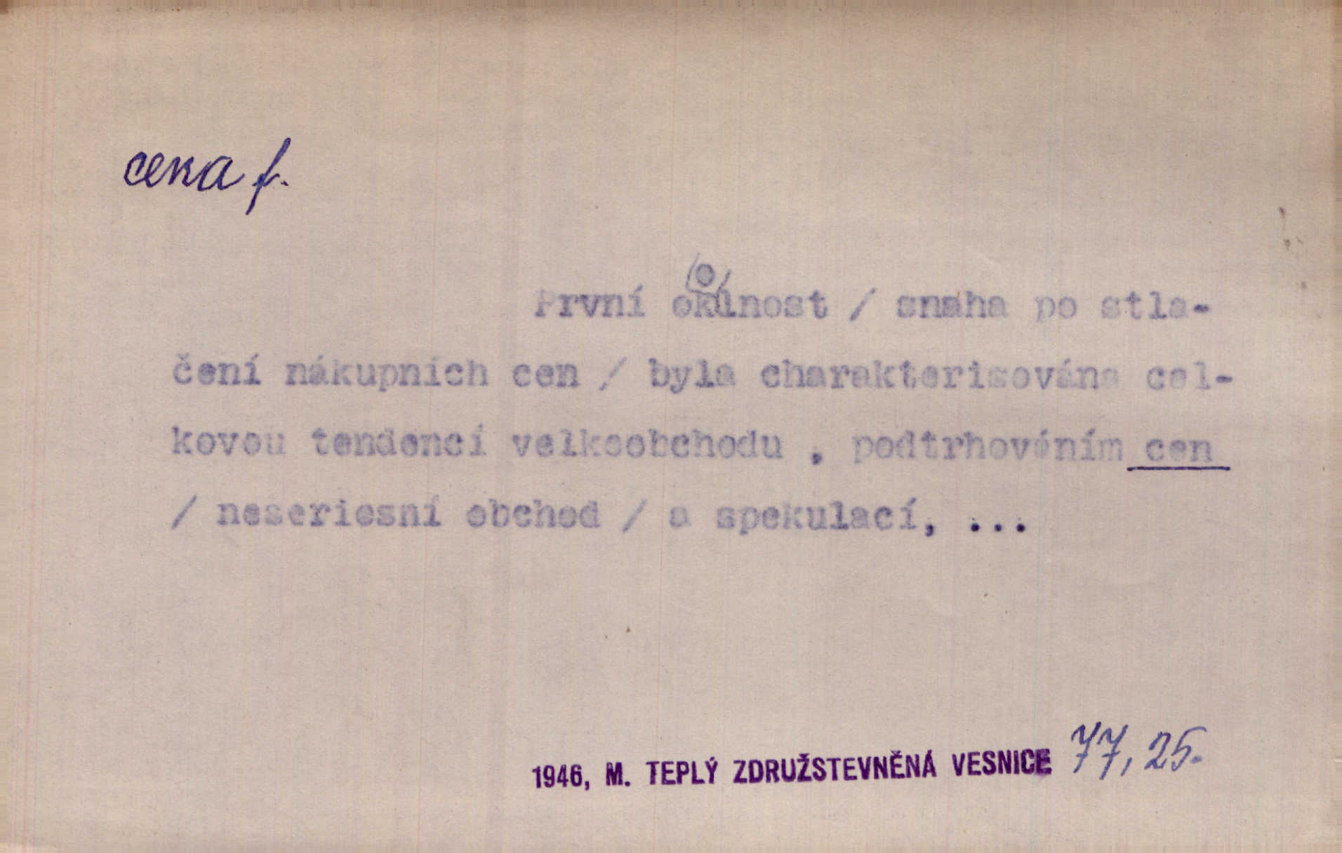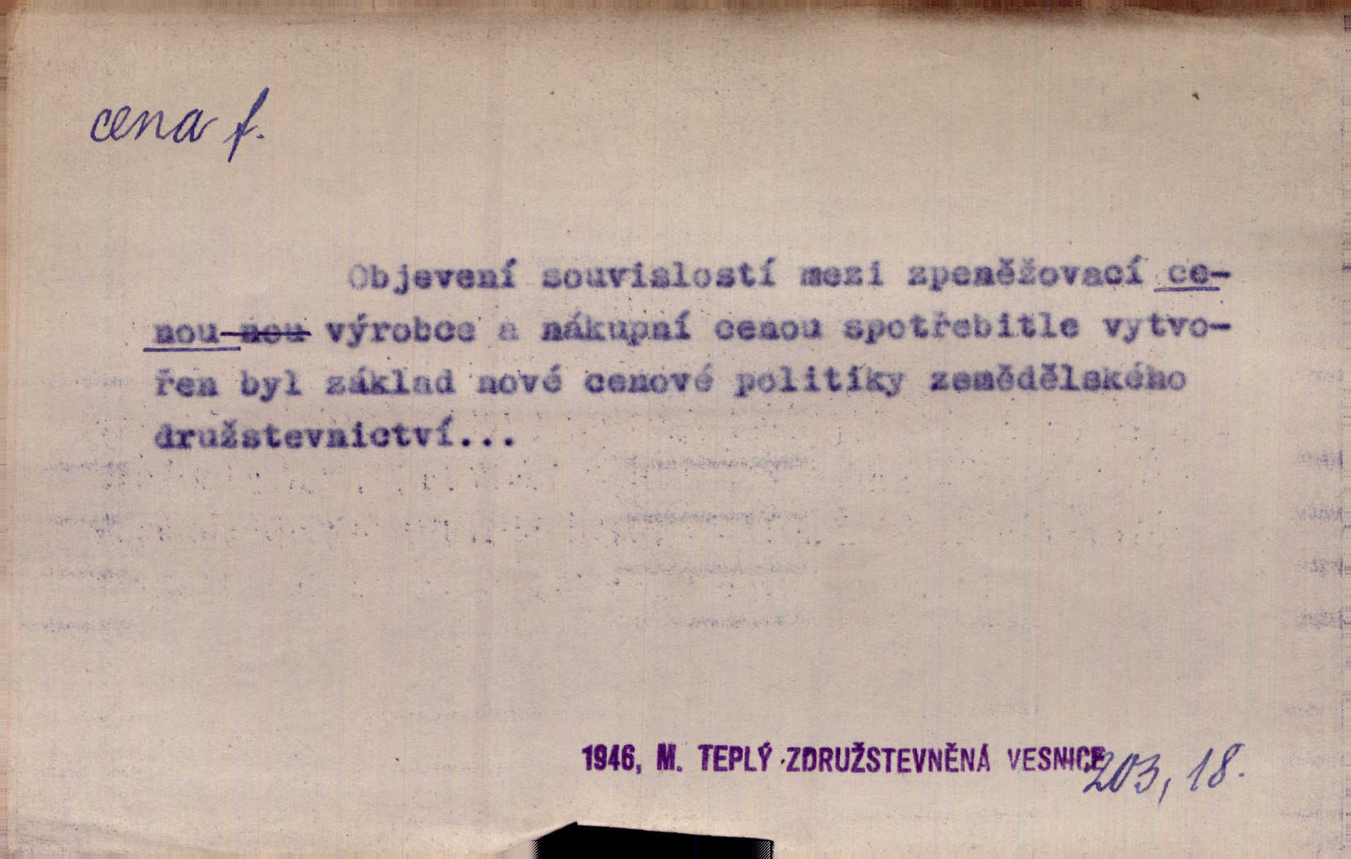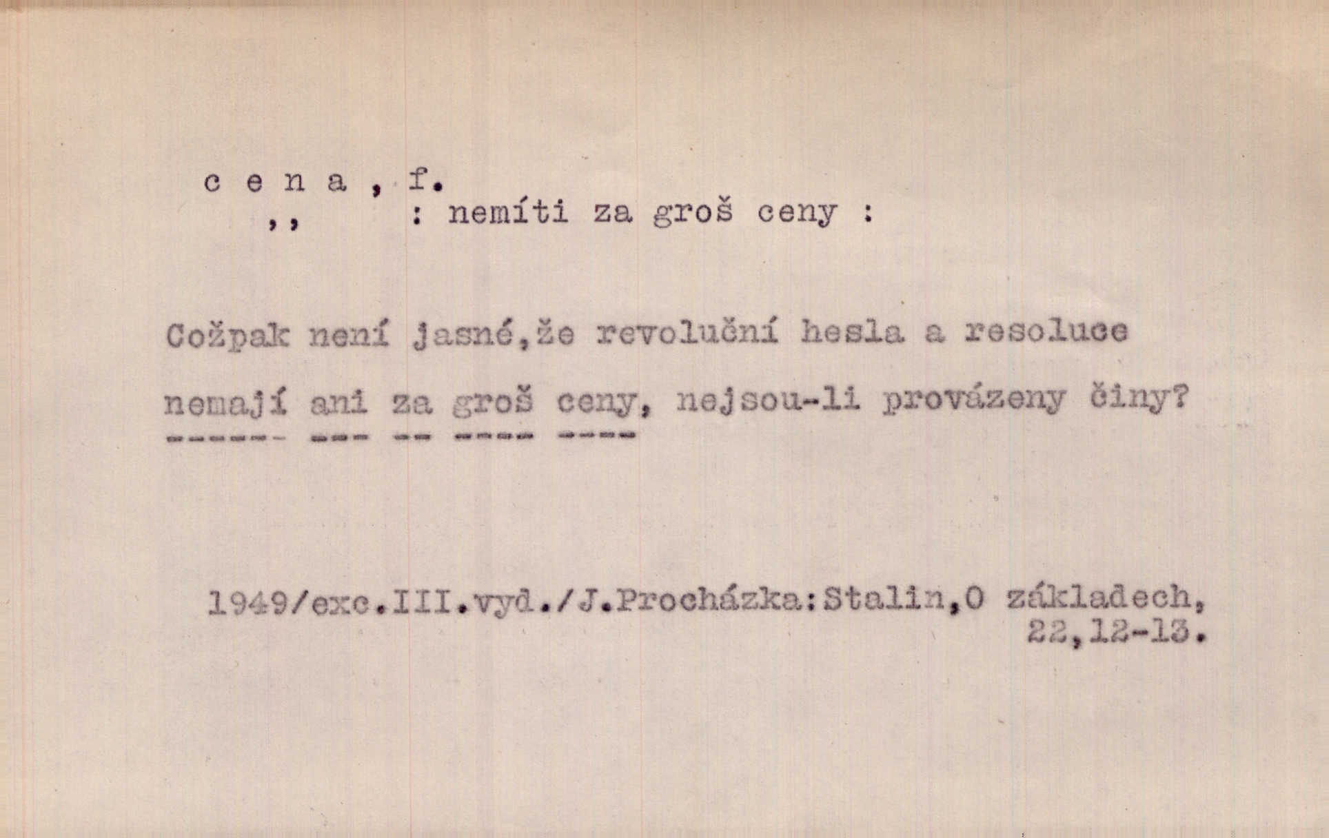 - cena, -y f. peněžní hodnota věci. Smluvili se o cenu statku, jejž rychtář kupoval. Hál. Ceny kuchyňských potřeb. Rais. Ceny na jídelním lístku. Prodávati za pevné, vysoké, nízké, levné, mírné, snížené, poloviční ceny. Koupím za každou cenu. Neprodám to za žádnou cenu. Výrobní, nákupní, režijní, prodejní, tovární, tržní (trhová), skutečná cena zboží. Sleviti s ceny. Snížiti, zvýšiti ceny. Prodávati pod cenou. Cena zboží klesá, stoupá. Obilí stouplo, kleslo, spadlo v ceně. Zboží tratí, ztratilo na ceně. Přen. Hájiti něco i za cenu popularity, lépe: třebas to stálo popularitu. Provésti něco i za cenu života, lépe: i kdyby to stálo život. Kde není řeč o kupní ceně, je za rčení za každou cenu správněji stůj co stůj, buď jak buď a za rčení za žádnou cenu správněji za nic na světě, nikterak, pod žádnou podmínkou. Umínil jsem si zachovati za každou cenu klid. Šlej. Boj je nutno dobojovati za každou cenu. Dyk. Dámy by za žádnou cenu nebyly česky promluvily. Ner. Koketování toho druhu netrpím za žádnou cenu. Kun. D vnitřní hodnota, význam, důležitost věci. Barvotisky pochybné ceny. Jir. Přišla v očích vlastních o všechnu cenu a důležitost, o všechen význam. Svět. V tomto majestátním klidu vidím vysokou morální cenu anglického románu. V. Mrš. Život nemá pro mne nijaké ceny. Čech. D odměna (získaná v soutěži a p.). Komise přiřkla první cenu za plán městské radnice. Staš. Báseň cenou poctěná. Čestná cena. Ucházeti se o cenu. Vypsati cenu na (za) nejlepší knihu pro mládež. Obyvatelstvo briganty nezradí, i kdyby byla sebe větší cena na hlavy jejich vypsána. Mach.