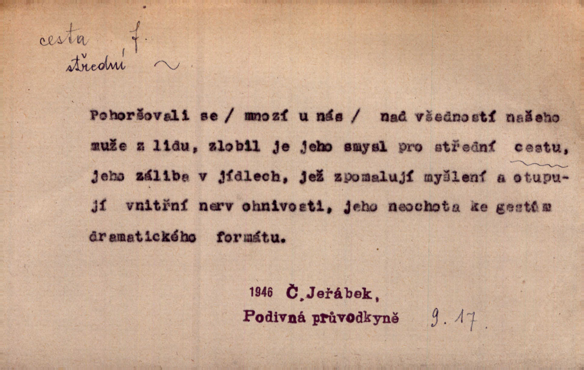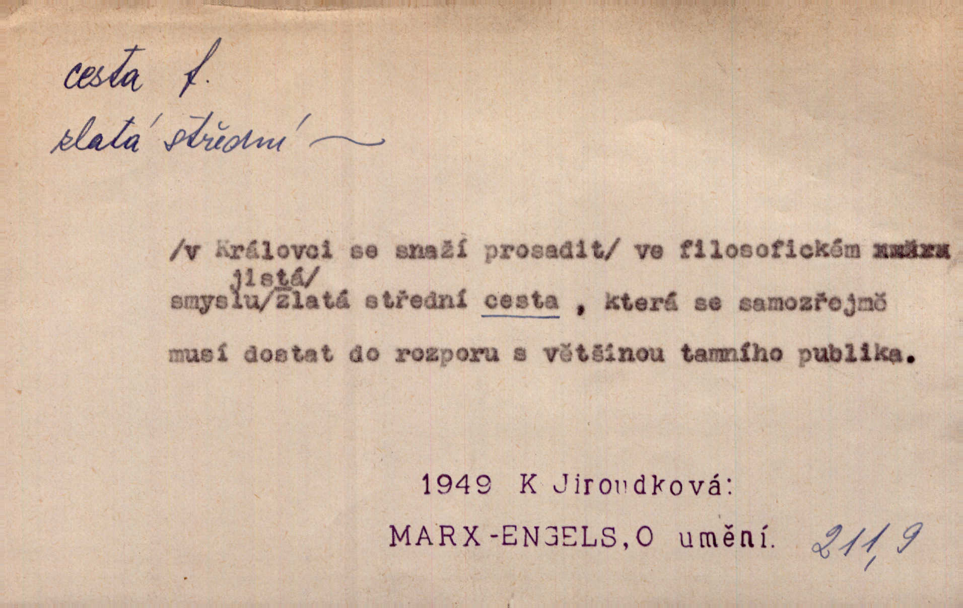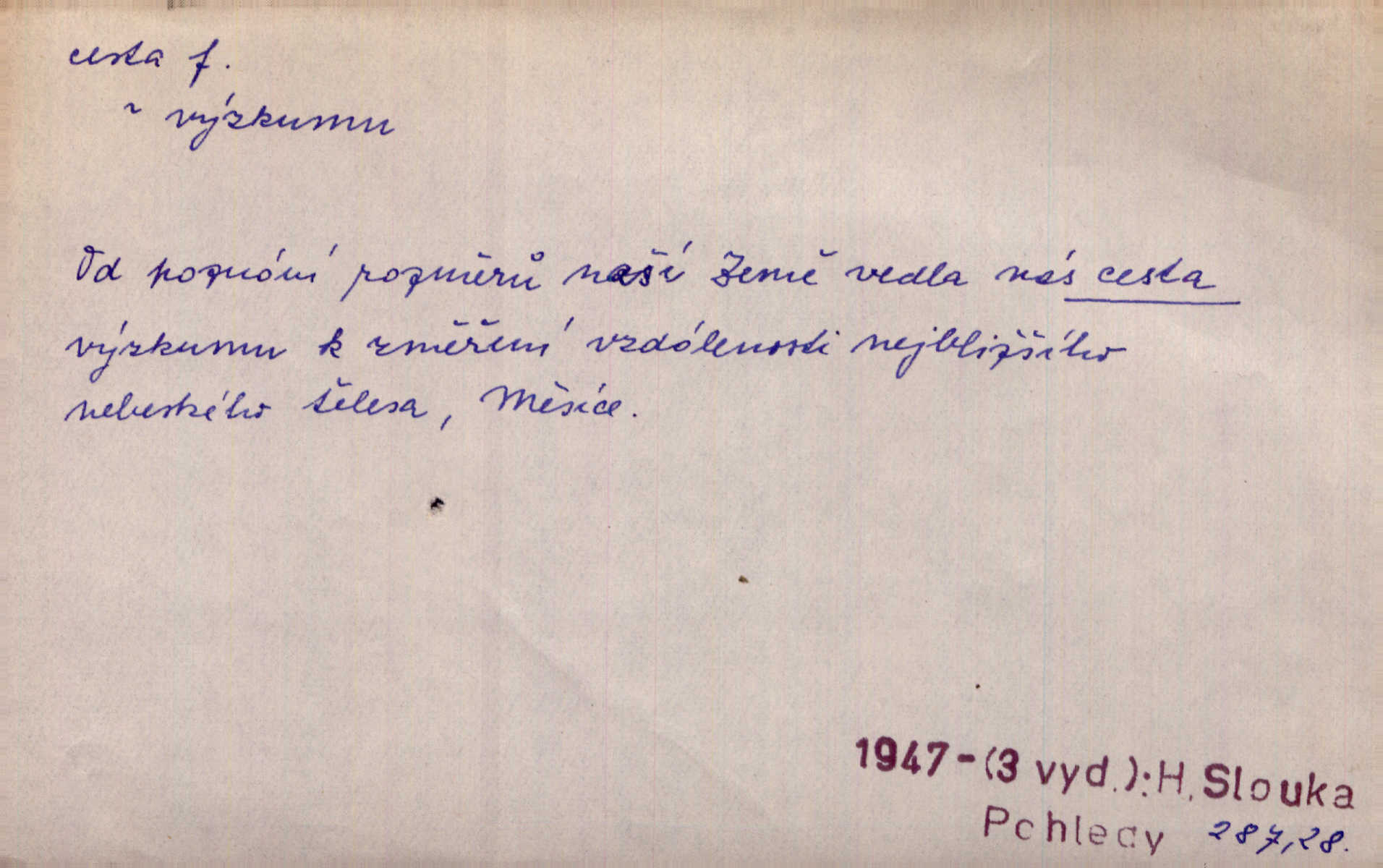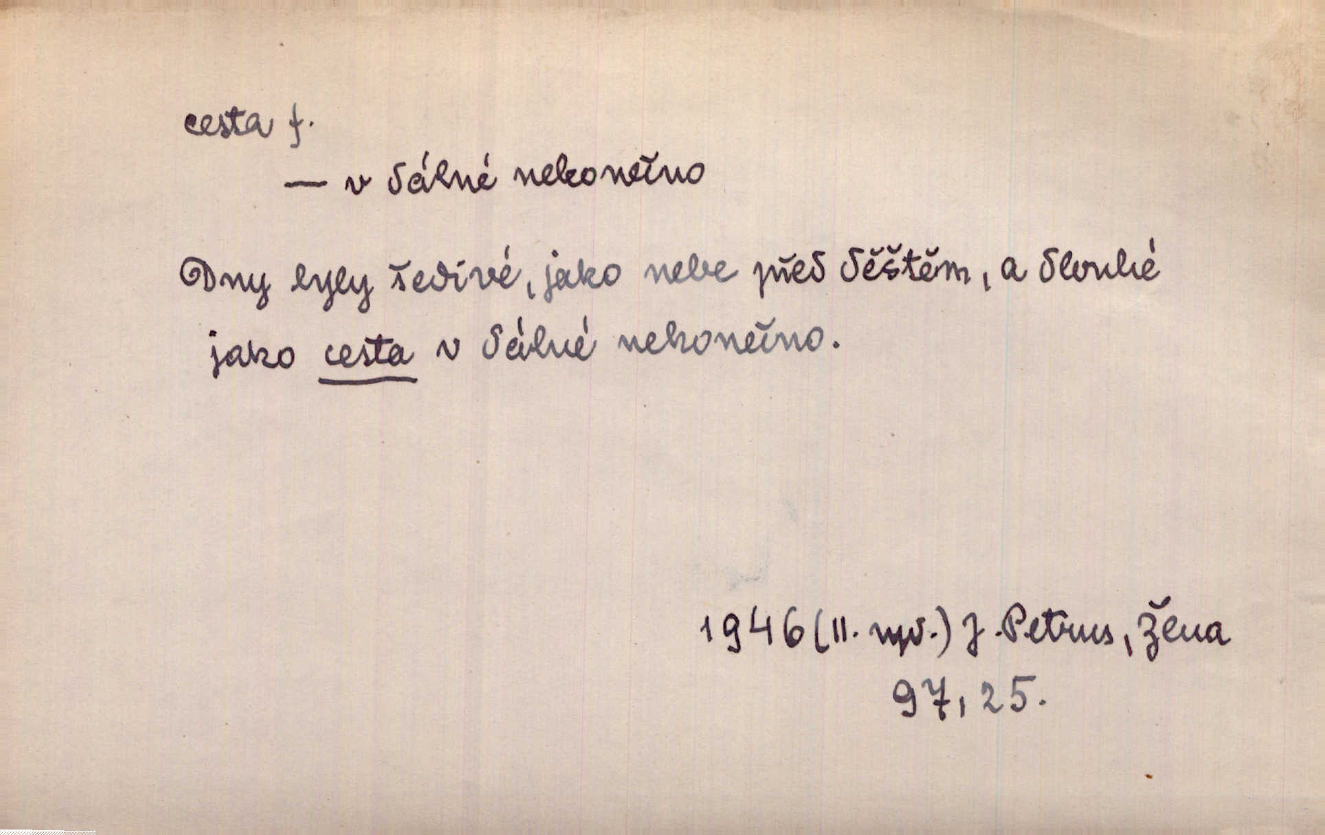 - cesta, -y f. pruh země upravený pro chůzi n. jízdu menšími povozy, pěšina, stezka a j. Ze silnice šla cesta do vsi. Šmil. Hrabě nejezdil nikdy cestami nebo silnicí. Herb. Cesty byly, jak když je utluče. Rais. Lesem běží cesta. Vozová, polní cesta. Círk. křížová cesta řada čtrnácti obrazů v kostele nebo čtrnácti kapliček s obrazy znázorňujícími jednotlivé výjevy z umučení Páně. Kostel, postavený nad cestou křížovou cestou s obrazy o umučení Páně. Svob. Modliti se křížovou cestu modlitby o umučení. Jir. Voditi křížovou cestu procesí. Prav. Přen. křížová cesta uměleckého zápasu. Mrš. Kráčeti křížovou cestou lásky. Svět. D jakákoliv dráha pro chůzi n. jízdu, průchod někam, přechod n. přístup. Řeky plynou po různých cestách. Hál. Vodní cesty uvnitř země. Ner. Měřil jsem tu cestu čtyřikrát denně. Jir. Cesta se lidem netrhne. Byl opilý a šněroval cestu. Maj. Voda si klestí cestu otvorem. Ner. Potok si prodral cestu skalami. Pfleg. Raziti si cestu spoustou prachu. Podl. Ukažte cestu vrahu vyžeňte jej! O. Červ. Měl bys mu pořádně posvítit na cestu vyhnati ho. Mlátí do všeho, co mu do cesty přijde. Vrch. Zastoupiti, zastaviti, zaskočiti komu cestu. Zameziti cestu ohni. Kram. Postaviti se do cesty, v cestu komu, čemu. Plésti se komu do cesty. Nejsem, nepřekážím nikomu v cestě. Ani stébla nepřeložiti (nepřehnouti, nepoložiti) přes cestu komu. Jíti kus cesty za vesnici. Ujíti tři hodiny cesty. Bylo to slyšet na několik mil cesty. Zastaviti se na poloviční cestě. Kam vás vede cesta kam jdete? Znám tudy dobře cestu do města. Cesta k chrámu vedla širokými ulicemi. Vrch. Měl jsem Nymburk na cestě. Jan. Zde je to s cesty odlehlé. Štěp. Dub byl příliš na cestě. Podl. Zblouditi s cesty. Přen. Nemocný mluví s cesty blouzní. Mluviti s cesty nesmyslně. Sejíti s cesty v řeči odbočiti. Rozbory psychologické jsou již poněkud z cesty stranou. Hostin. Přen. Klestiti cestu pravdě. Havlasa. Raziti si cestu k úspěchu. Cesta ke kariéře je mu otevřena. Láska si najde cestu do srdce. Klicp. Zatarasiti cestu k cíli. Svět. Zatrhnouti komu cestu k činu. Šmil. V cestu vývoji se hrne mnoho překážek. Stavěti se v cestu náruživosti. Bůh sází na cestu života ženy jako hvězdy na oblohu. Ner. Cesta do pekla je vydlážděna samými dobrými úmysly. Herb. Bás. Cesta slunce se sklání. Vrch. D chůze (jízda, plavba atd.), cestování. Lékař doporučoval cestu po moři. Cesta po Slovensku, Slovenskem. Památky z cest. Cesta zpáteční, pěší, svatební, studijní, obchodní, dobrodružná. Šťastnou cestu! Dáti se, vydati se, strojiti se, chystati se, vypraviti se na cestu. Nastoupiti zpáteční cestu. Podniknouti vědeckou cestu. Pokračovati v cestě. Býti na cestě, na cestách. Konati cestu (cesty) po evropských zemích. Tomek. Udělali jsme cestu Evropou. Mach. Krátiti si cestu zpěvem. Mám velkou cestu před sebou. Kram. Přen. Máš cestu před sebou převábivou o sňatku. Sab. První má cesta je k vám. Šim. Jsme ušlí po cestě. Erb. Darmo jste sem vážil cestu. Baar. Tu máte na cestu. Nezbylo mi na cestu. Ehrenb. Dáti, dostati co od cesty, nechati si co od cesty. Cestou po cestě, za cesty. Odkud cestou a kam? Stroup. A matka usedavě cestou plakala. Ner. Po cestě, na cestě, za cesty, cestou domů si zpívati. Za pět minut musíme být na cestě. Pfleg. Býti na cestě ke komu. Osm dní budete na cestě. Rais. Zásilka je už na cestě. A. Mrš. Přen. Veselka se odbývala na rychlo, neboť dítě bylo už na cestě. Vrba. Když zrána kýcháme, je rýma na cestě. Javor. Cesta ke hrobu je krátká. Voc. Nastoupiti cestu k věčnosti. Cesta věčného nenavrácení. Klicp. Odejíti cestou všelikého těla. Šmil. Vyzpovídati se před poslední cestou. Doprovázeti koho na poslední cestě. Pfleg. Ostříhati koho na všech cestách života. Octnouti se na špatných cestách. Obrátiti se na pravou cestu žíti ctnostně. Nastoupení cesty pravé k Bohu. Přivésti koho na cestu moudrosti. Spustiti se s pravé cesty. Cesta ke štěstí, za štěstím. D směr, postup, methoda, způsob n. prostředek nějakého jednání n. usilování. Vychování dítěte šlo křivými cestami. Svob. Aleš šel cestou Mánesovou. Jir. Hudba nechť si jde svou cestou. Ner. Jdu rovnou cestou řeknu vše upřímně. Hál. Nejkratší cesta, kterou lze dojíti slávy. V. Mrš. Dáti se na jiné cesty v své činnosti. Pal. Bráti se positivnější cestou. V. Mrš. Nastoupiti cestu smíření a pokoje. Pal. Cesta k zdokonalení jazyka. Krok. Naskýtá se cesta z nesnází. Herb. Snažiti se všemi prostředky a cestami. Her. Upřímnost zde bude nejlepší cesta. Bozd. Světélka nových směrů a cest ve zmatku duchů. Vrch. Věc se dostala na lepší cestu. Klost. Žádost je na dobré, nejlepší cestě. Jir. Jsi na dobré cestě státi se moudrým mužem. Šmil. Práv. Jíti ku předu cestou práva. Heyd. Nastoupiti cestu práva. Získati touto (jinou) cestou přízeň. Poslati co cestou úřední. Dosáhnouti čeho cestou právní. Dosáhnouti svobody cestou milosti. Cestou soudní přiměti koho k čemu. Cukrovar byl prodán cestou exekuční. Herb. Určiti co cestou nařizovací, administrativní; uplatňovati nárok cestou instanční. Tech. Cestou mechanickou, chemickou. Suchou cestou n. na suché cestě (op. mokrou cestou, na mokré cestě). Přen. polit. bolševisace suchou cestou bez zjevného revolučního násilí.