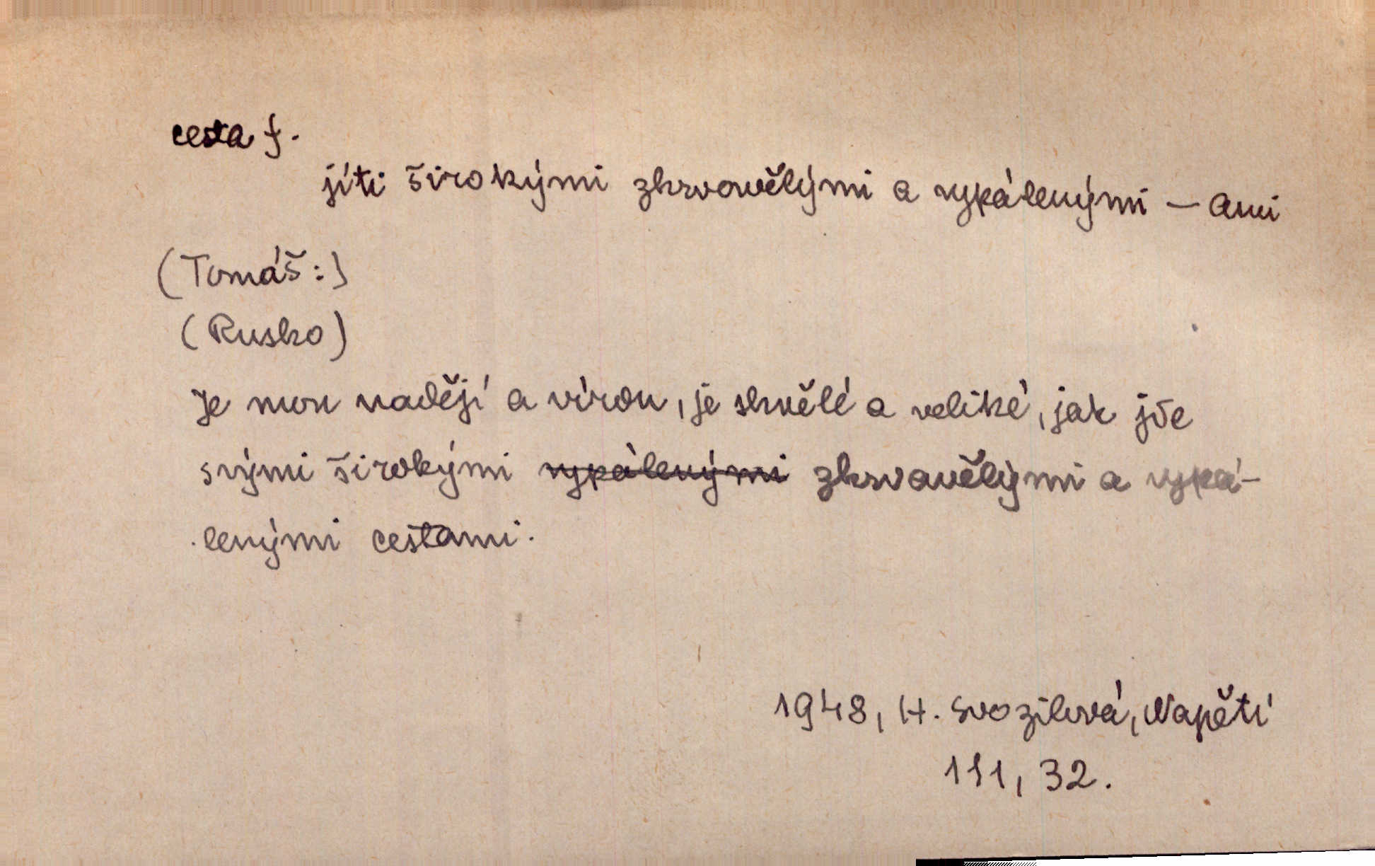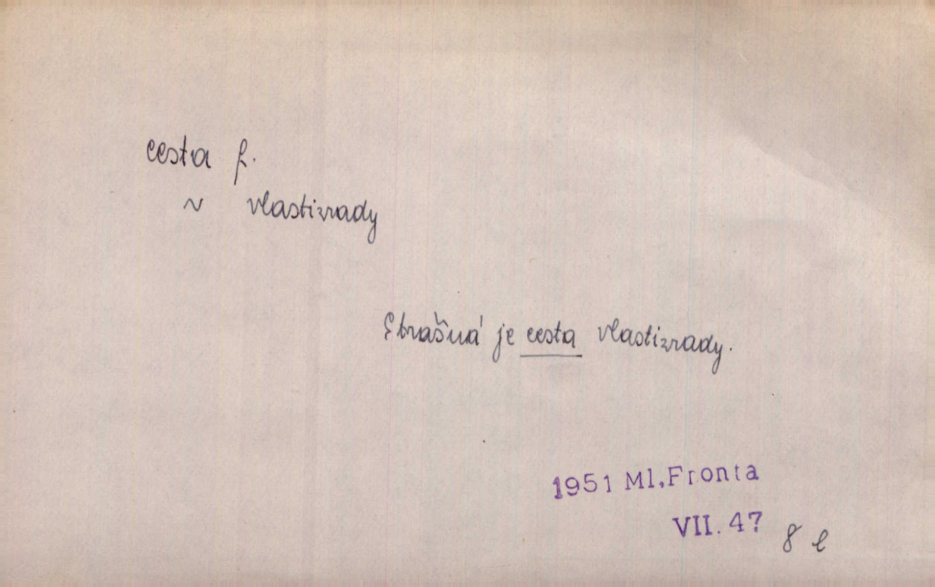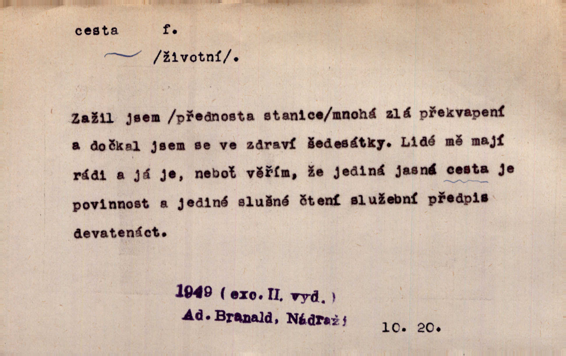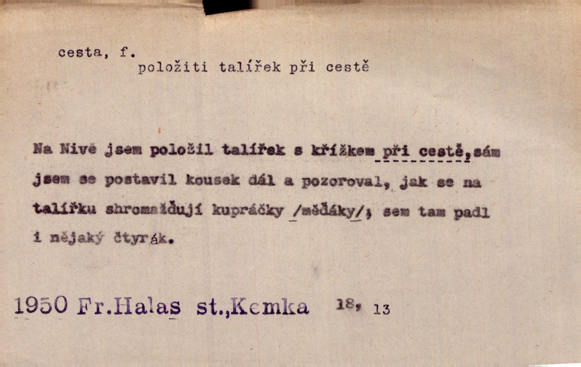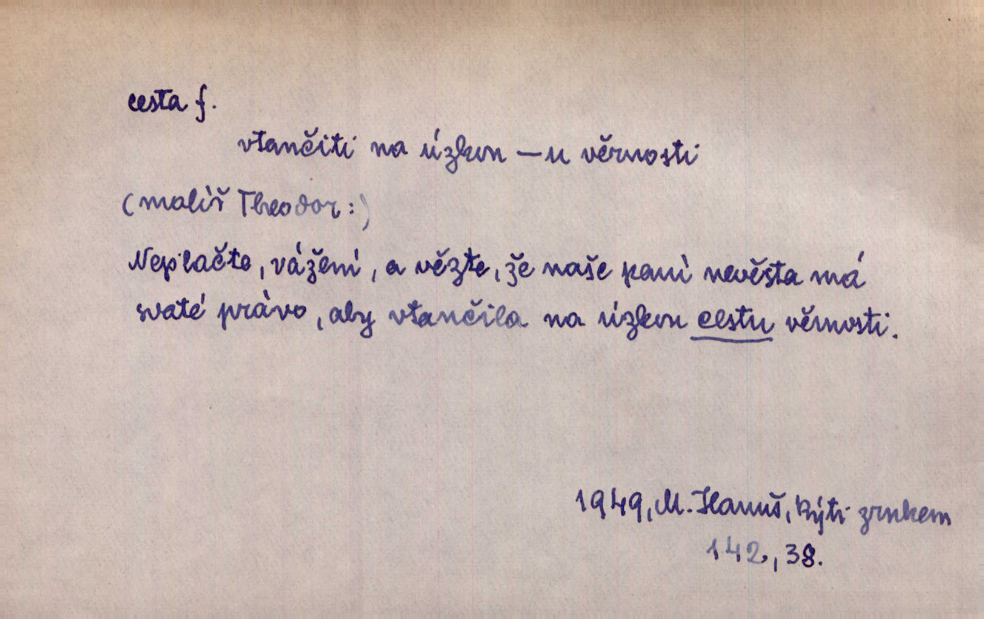 - cesta, -y f. pruh země upravený pro chůzi n. jízdu menšími povozy, pěšina, stezka a j. Ze silnice šla cesta do vsi. Šmil. Hrabě nejezdil nikdy cestami nebo silnicí. Herb. Cesty byly, jak když je utluče. Rais. Lesem běží cesta. Vozová, polní cesta. Círk. křížová cesta řada čtrnácti obrazů v kostele nebo čtrnácti kapliček s obrazy znázorňujícími jednotlivé výjevy z umučení Páně. Kostel, postavený nad cestou křížovou cestou s obrazy o umučení Páně. Svob. Modliti se křížovou cestu modlitby o umučení. Jir. Voditi křížovou cestu procesí. Prav. Přen. křížová cesta uměleckého zápasu. Mrš. Kráčeti křížovou cestou lásky. Svět. D jakákoliv dráha pro chůzi n. jízdu, průchod někam, přechod n. přístup. Řeky plynou po různých cestách. Hál. Vodní cesty uvnitř země. Ner. Měřil jsem tu cestu čtyřikrát denně. Jir. Cesta se lidem netrhne. Byl opilý a šněroval cestu. Maj. Voda si klestí cestu otvorem. Ner. Potok si prodral cestu skalami. Pfleg. Raziti si cestu spoustou prachu. Podl. Ukažte cestu vrahu vyžeňte jej! O. Červ. Měl bys mu pořádně posvítit na cestu vyhnati ho. Mlátí do všeho, co mu do cesty přijde. Vrch. Zastoupiti, zastaviti, zaskočiti komu cestu. Zameziti cestu ohni. Kram. Postaviti se do cesty, v cestu komu, čemu. Plésti se komu do cesty. Nejsem, nepřekážím nikomu v cestě. Ani stébla nepřeložiti (nepřehnouti, nepoložiti) přes cestu komu. Jíti kus cesty za vesnici. Ujíti tři hodiny cesty. Bylo to slyšet na několik mil cesty. Zastaviti se na poloviční cestě. Kam vás vede cesta kam jdete? Znám tudy dobře cestu do města. Cesta k chrámu vedla širokými ulicemi. Vrch. Měl jsem Nymburk na cestě. Jan. Zde je to s cesty odlehlé. Štěp. Dub byl příliš na cestě. Podl. Zblouditi s cesty. Přen. Nemocný mluví s cesty blouzní. Mluviti s cesty nesmyslně. Sejíti s cesty v řeči odbočiti. Rozbory psychologické jsou již poněkud z cesty stranou. Hostin. Přen. Klestiti cestu pravdě. Havlasa. Raziti si cestu k úspěchu. Cesta ke kariéře je mu otevřena. Láska si najde cestu do srdce. Klicp. Zatarasiti cestu k cíli. Svět. Zatrhnouti komu cestu k činu. Šmil. V cestu vývoji se hrne mnoho překážek. Stavěti se v cestu náruživosti. Bůh sází na cestu života ženy jako hvězdy na oblohu. Ner. Cesta do pekla je vydlážděna samými dobrými úmysly. Herb. Bás. Cesta slunce se sklání. Vrch. D chůze (jízda, plavba atd.), cestování. Lékař doporučoval cestu po moři. Cesta po Slovensku, Slovenskem. Památky z cest. Cesta zpáteční, pěší, svatební, studijní, obchodní, dobrodružná. Šťastnou cestu! Dáti se, vydati se, strojiti se, chystati se, vypraviti se na cestu. Nastoupiti zpáteční cestu. Podniknouti vědeckou cestu. Pokračovati v cestě. Býti na cestě, na cestách. Konati cestu (cesty) po evropských zemích. Tomek. Udělali jsme cestu Evropou. Mach. Krátiti si cestu zpěvem. Mám velkou cestu před sebou. Kram. Přen. Máš cestu před sebou převábivou o sňatku. Sab. První má cesta je k vám. Šim. Jsme ušlí po cestě. Erb. Darmo jste sem vážil cestu. Baar. Tu máte na cestu. Nezbylo mi na cestu. Ehrenb. Dáti, dostati co od cesty, nechati si co od cesty. Cestou po cestě, za cesty. Odkud cestou a kam? Stroup. A matka usedavě cestou plakala. Ner. Po cestě, na cestě, za cesty, cestou domů si zpívati. Za pět minut musíme být na cestě. Pfleg. Býti na cestě ke komu. Osm dní budete na cestě. Rais. Zásilka je už na cestě. A. Mrš. Přen. Veselka se odbývala na rychlo, neboť dítě bylo už na cestě. Vrba. Když zrána kýcháme, je rýma na cestě. Javor. Cesta ke hrobu je krátká. Voc. Nastoupiti cestu k věčnosti. Cesta věčného nenavrácení. Klicp. Odejíti cestou všelikého těla. Šmil. Vyzpovídati se před poslední cestou. Doprovázeti koho na poslední cestě. Pfleg. Ostříhati koho na všech cestách života. Octnouti se na špatných cestách. Obrátiti se na pravou cestu žíti ctnostně. Nastoupení cesty pravé k Bohu. Přivésti koho na cestu moudrosti. Spustiti se s pravé cesty. Cesta ke štěstí, za štěstím. D směr, postup, methoda, způsob n. prostředek nějakého jednání n. usilování. Vychování dítěte šlo křivými cestami. Svob. Aleš šel cestou Mánesovou. Jir. Hudba nechť si jde svou cestou. Ner. Jdu rovnou cestou řeknu vše upřímně. Hál. Nejkratší cesta, kterou lze dojíti slávy. V. Mrš. Dáti se na jiné cesty v své činnosti. Pal. Bráti se positivnější cestou. V. Mrš. Nastoupiti cestu smíření a pokoje. Pal. Cesta k zdokonalení jazyka. Krok. Naskýtá se cesta z nesnází. Herb. Snažiti se všemi prostředky a cestami. Her. Upřímnost zde bude nejlepší cesta. Bozd. Světélka nových směrů a cest ve zmatku duchů. Vrch. Věc se dostala na lepší cestu. Klost. Žádost je na dobré, nejlepší cestě. Jir. Jsi na dobré cestě státi se moudrým mužem. Šmil. Práv. Jíti ku předu cestou práva. Heyd. Nastoupiti cestu práva. Získati touto (jinou) cestou přízeň. Poslati co cestou úřední. Dosáhnouti čeho cestou právní. Dosáhnouti svobody cestou milosti. Cestou soudní přiměti koho k čemu. Cukrovar byl prodán cestou exekuční. Herb. Určiti co cestou nařizovací, administrativní; uplatňovati nárok cestou instanční. Tech. Cestou mechanickou, chemickou. Suchou cestou n. na suché cestě (op. mokrou cestou, na mokré cestě). Přen. polit. bolševisace suchou cestou bez zjevného revolučního násilí.