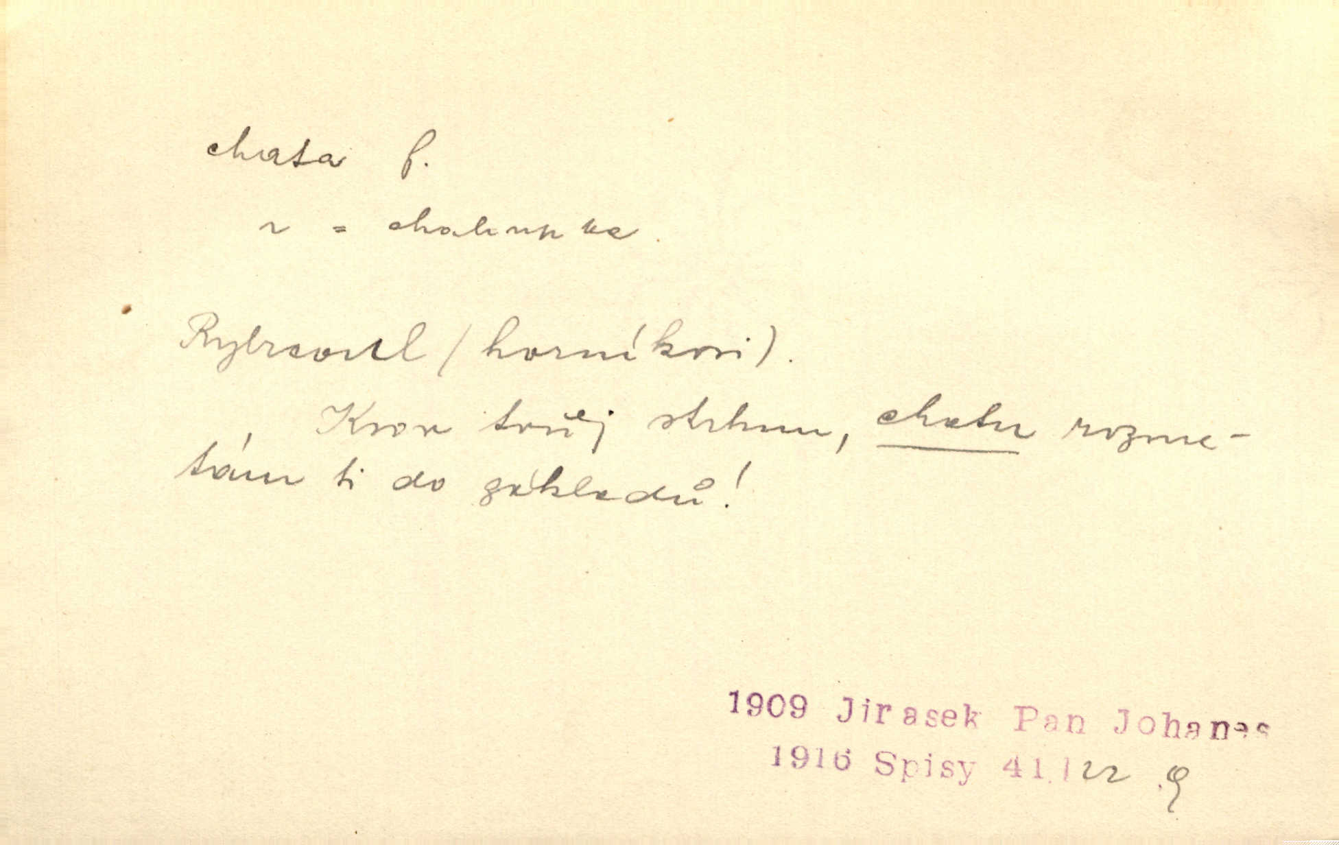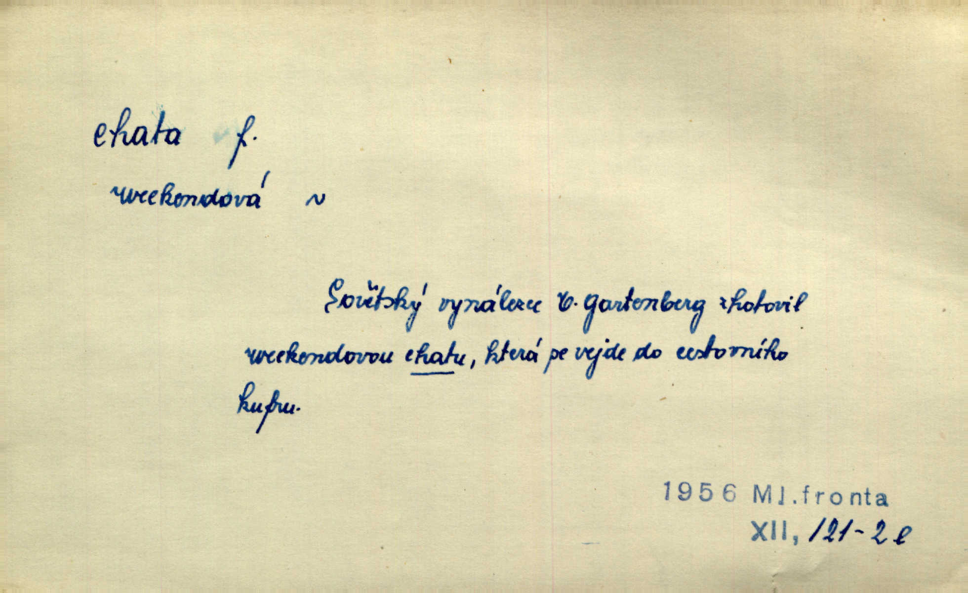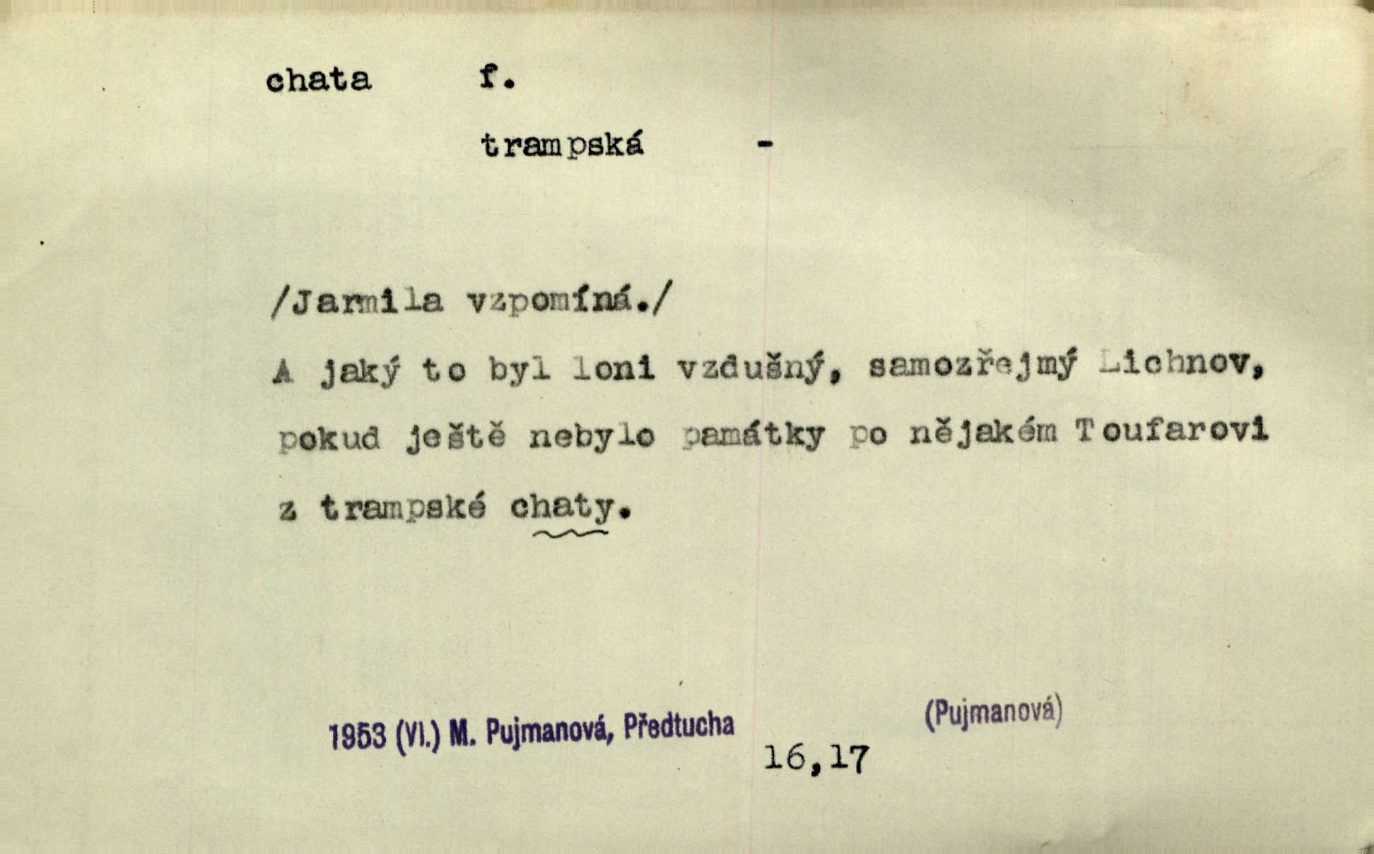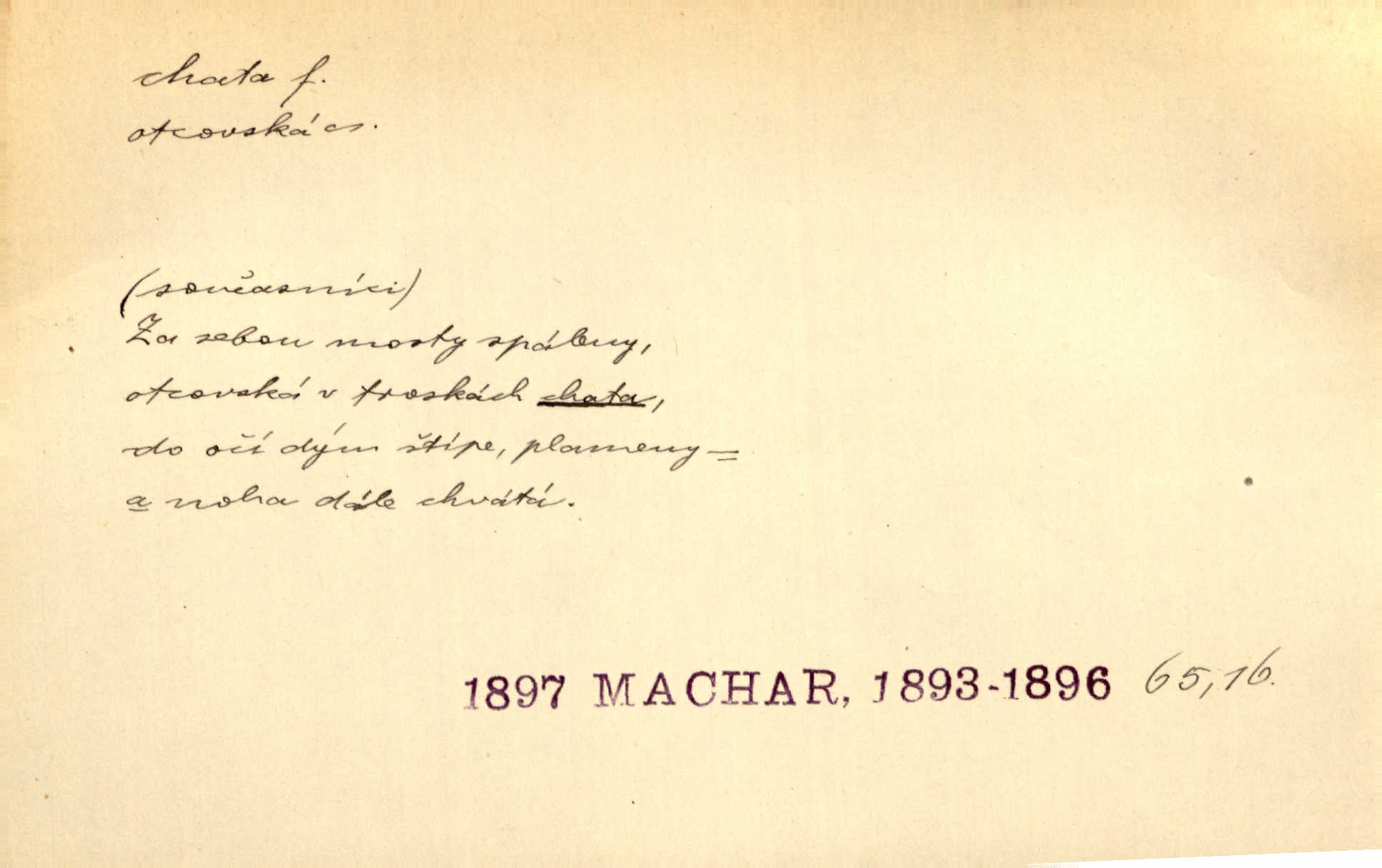 - chata, -y f. nuzná chaloupka, chatrč, chyše. Za ranního šera vycházel [Šimon] ze své chatrné roubené chaty pod došky. Jir. Tyto dělníky [šumavské] odsuzovaly sněhy k dlouhým zahálkám, k tuhému uvěznění ve chatách jejich. Klost. Sport. chata trampská, weekendová menší prostá stavba, obyčejně dřevěná, postavená v lesnaté krajině n. u vody. Turist. hotel pro turisty v horách. Chata Klubu československých turistů.