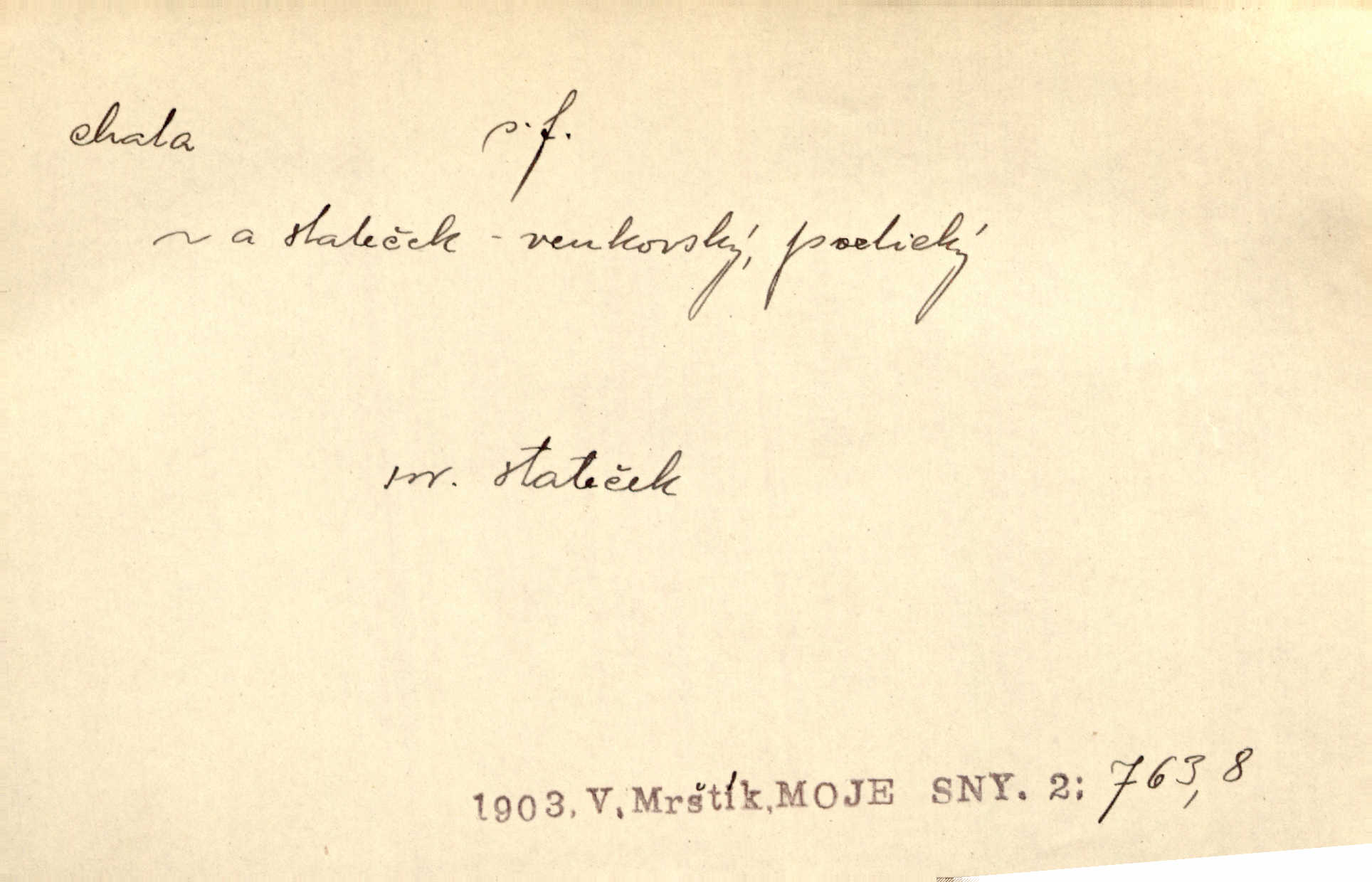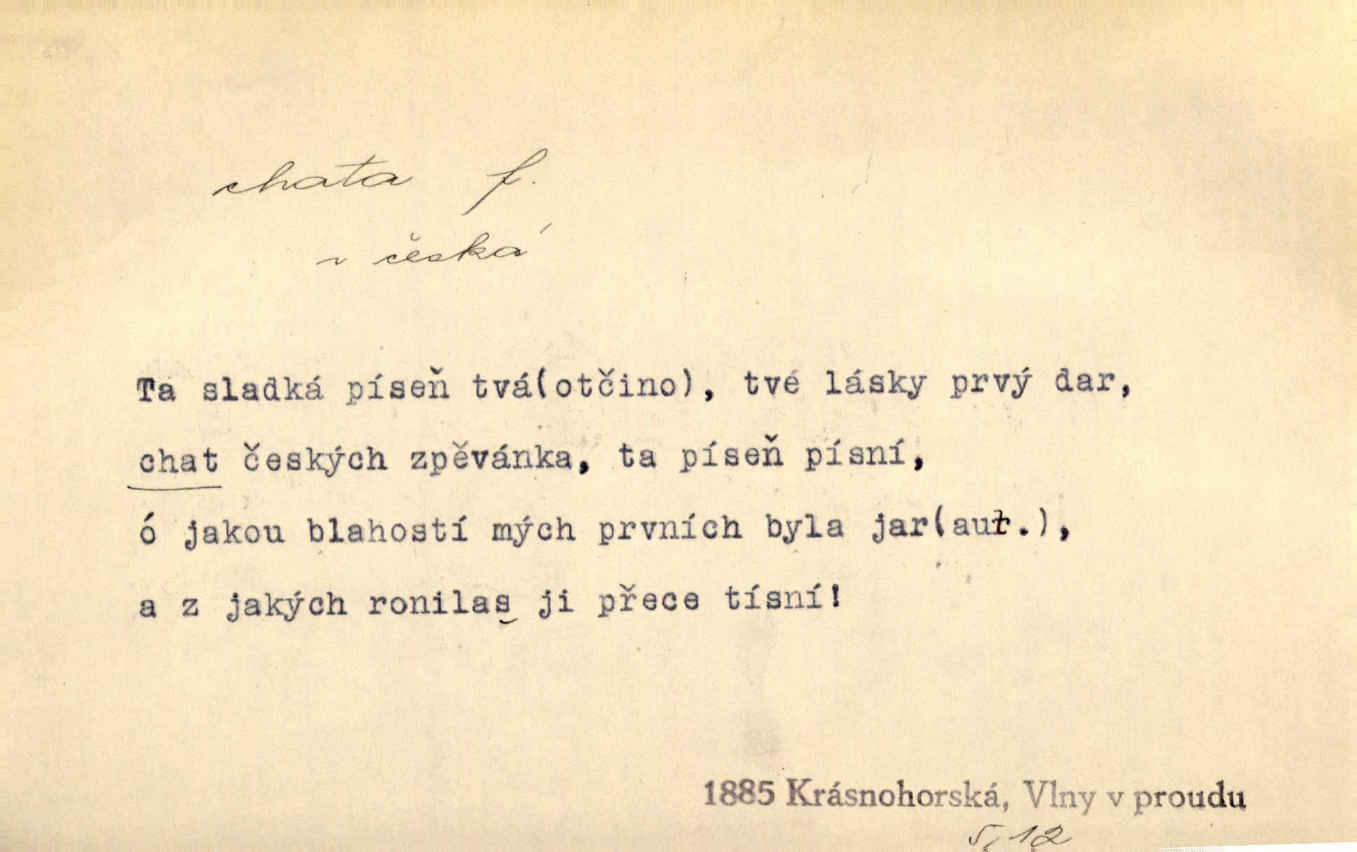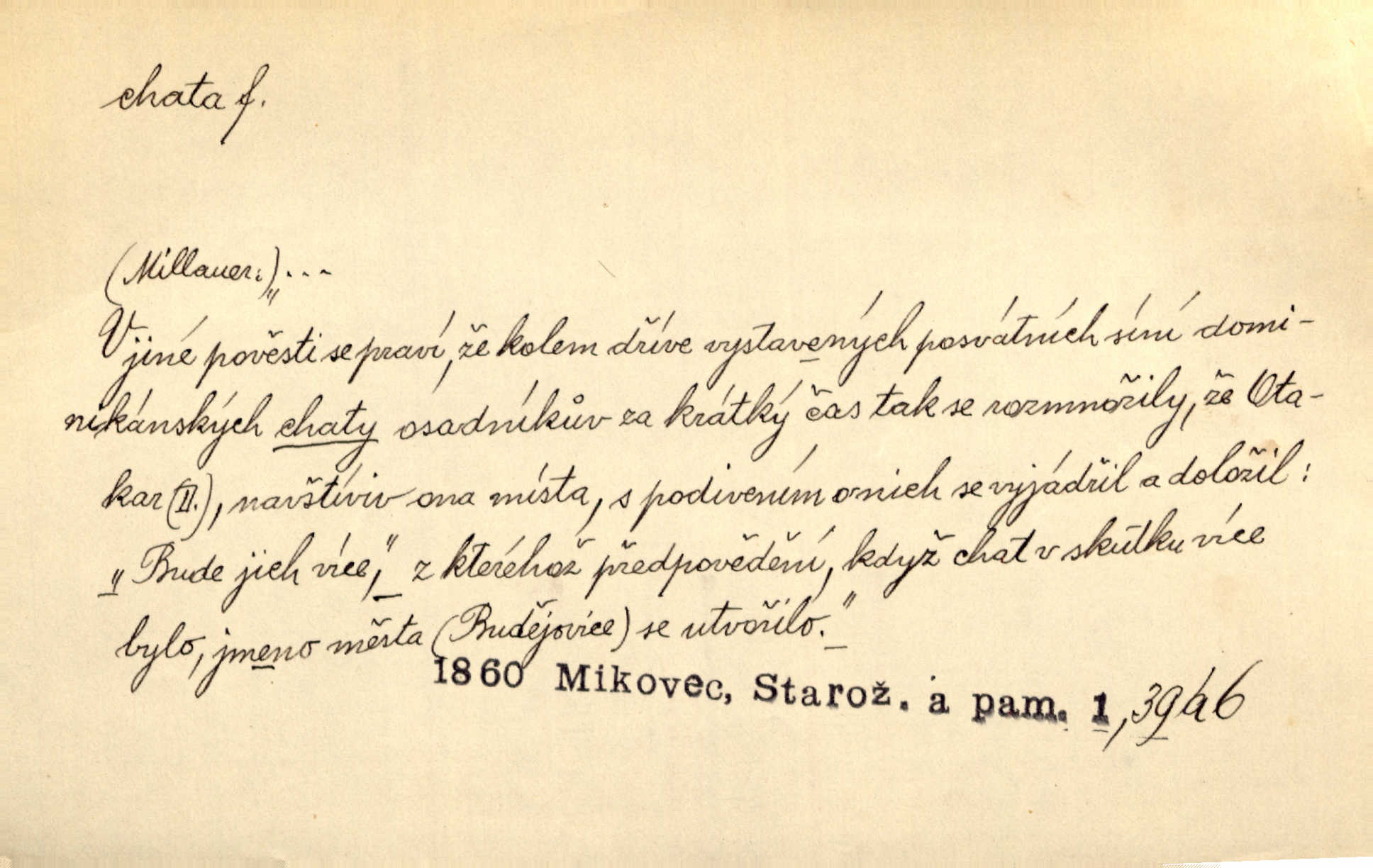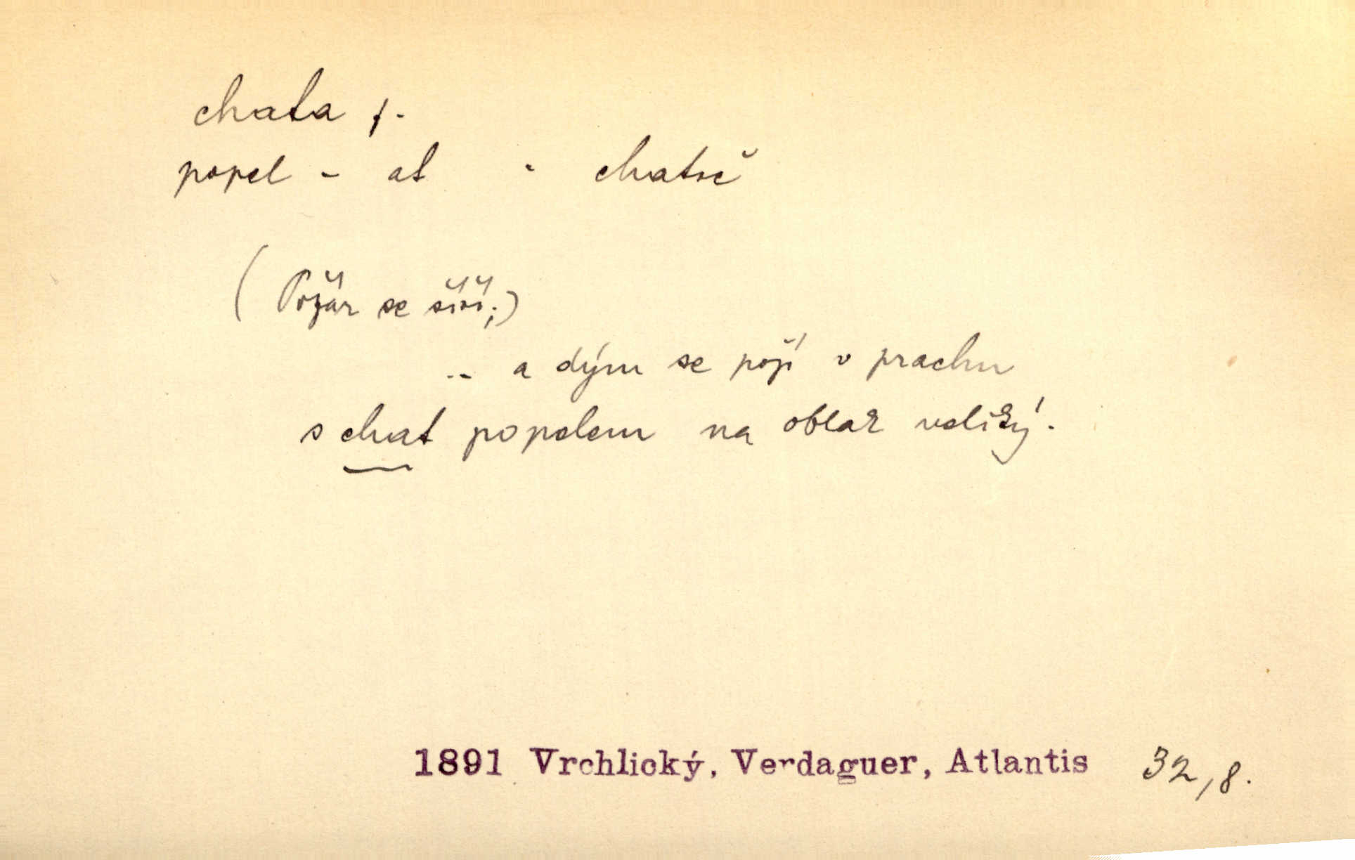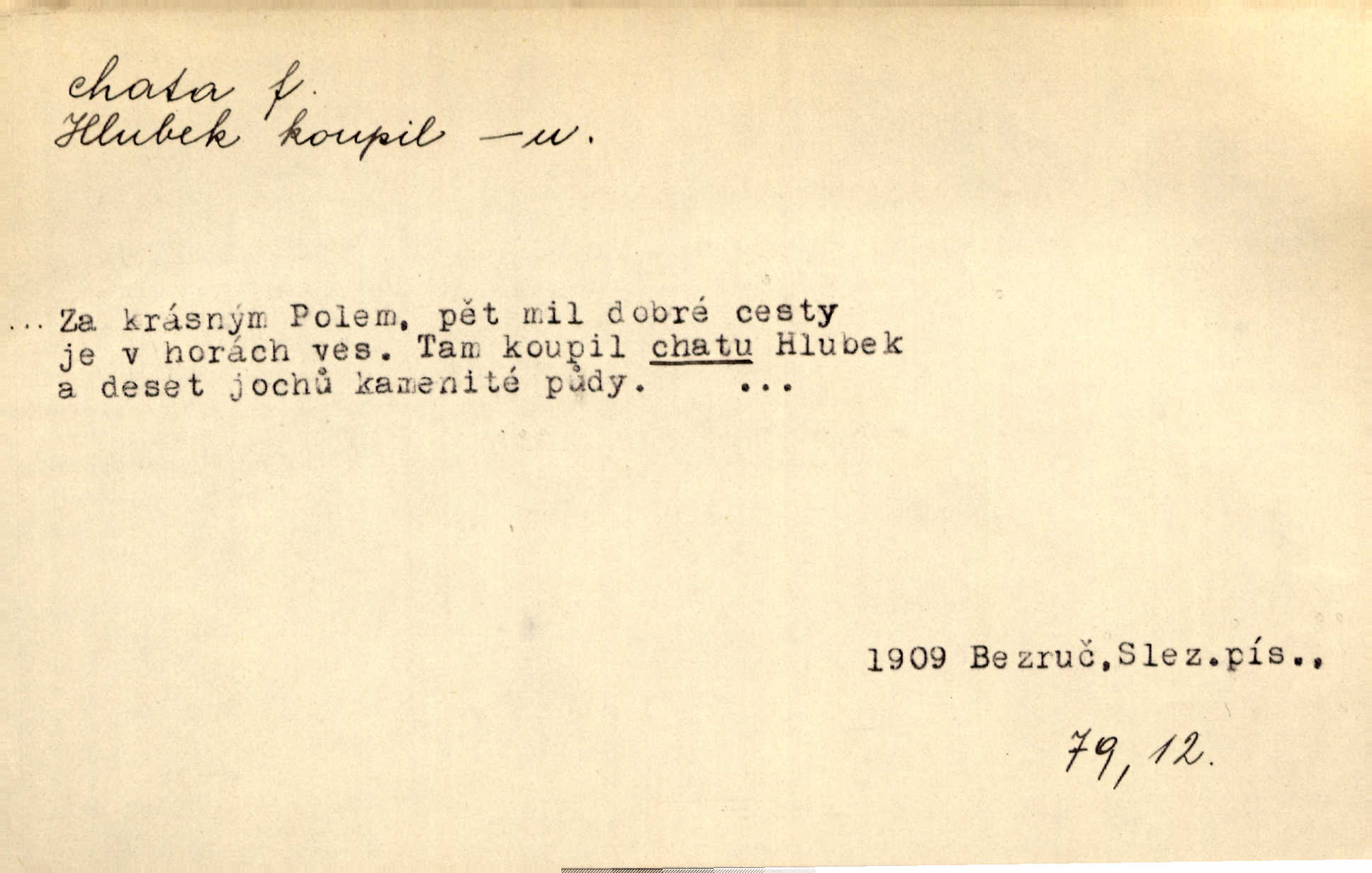 - chata, -y f. nuzná chaloupka, chatrč, chyše. Za ranního šera vycházel [Šimon] ze své chatrné roubené chaty pod došky. Jir. Tyto dělníky [šumavské] odsuzovaly sněhy k dlouhým zahálkám, k tuhému uvěznění ve chatách jejich. Klost. Sport. chata trampská, weekendová menší prostá stavba, obyčejně dřevěná, postavená v lesnaté krajině n. u vody. Turist. hotel pro turisty v horách. Chata Klubu československých turistů.