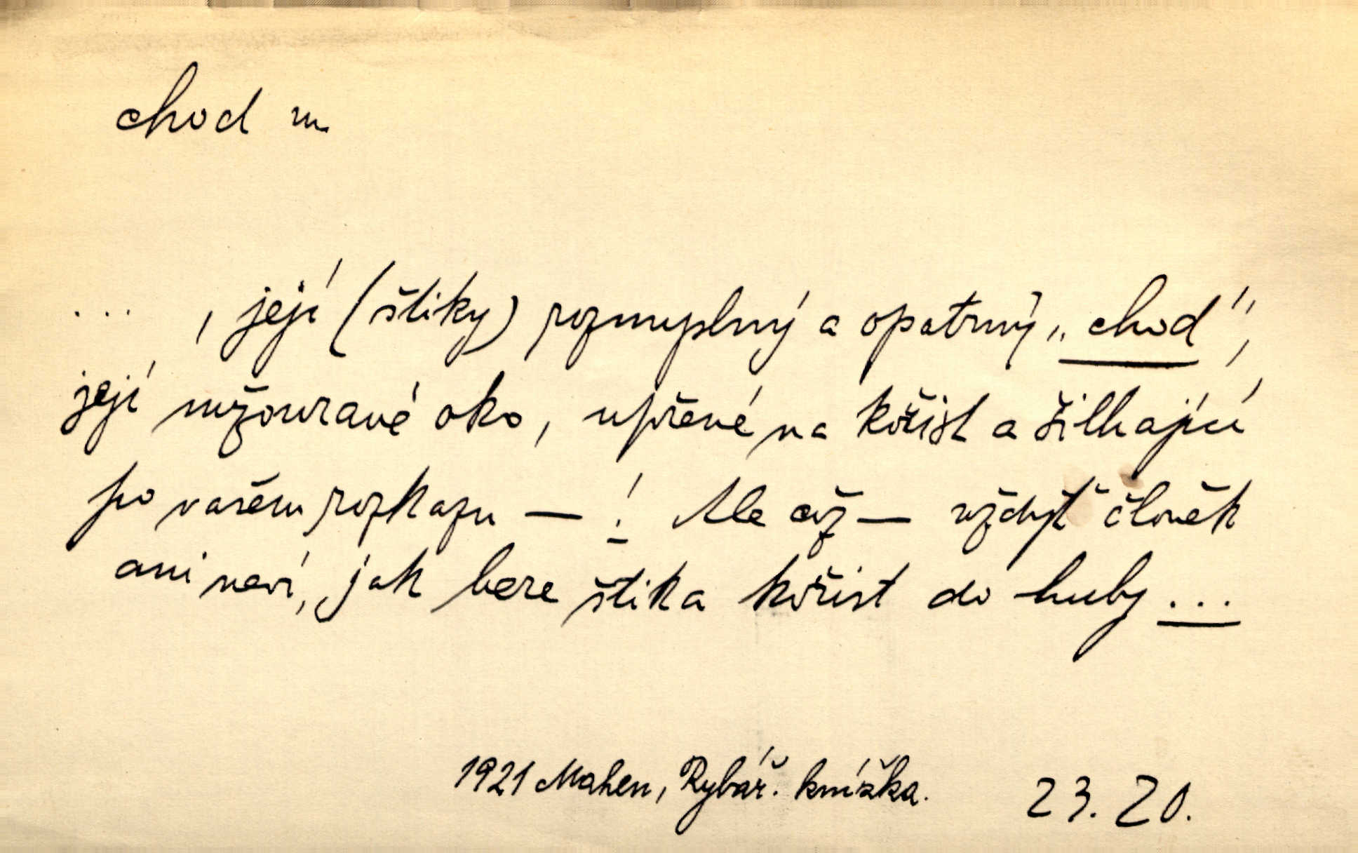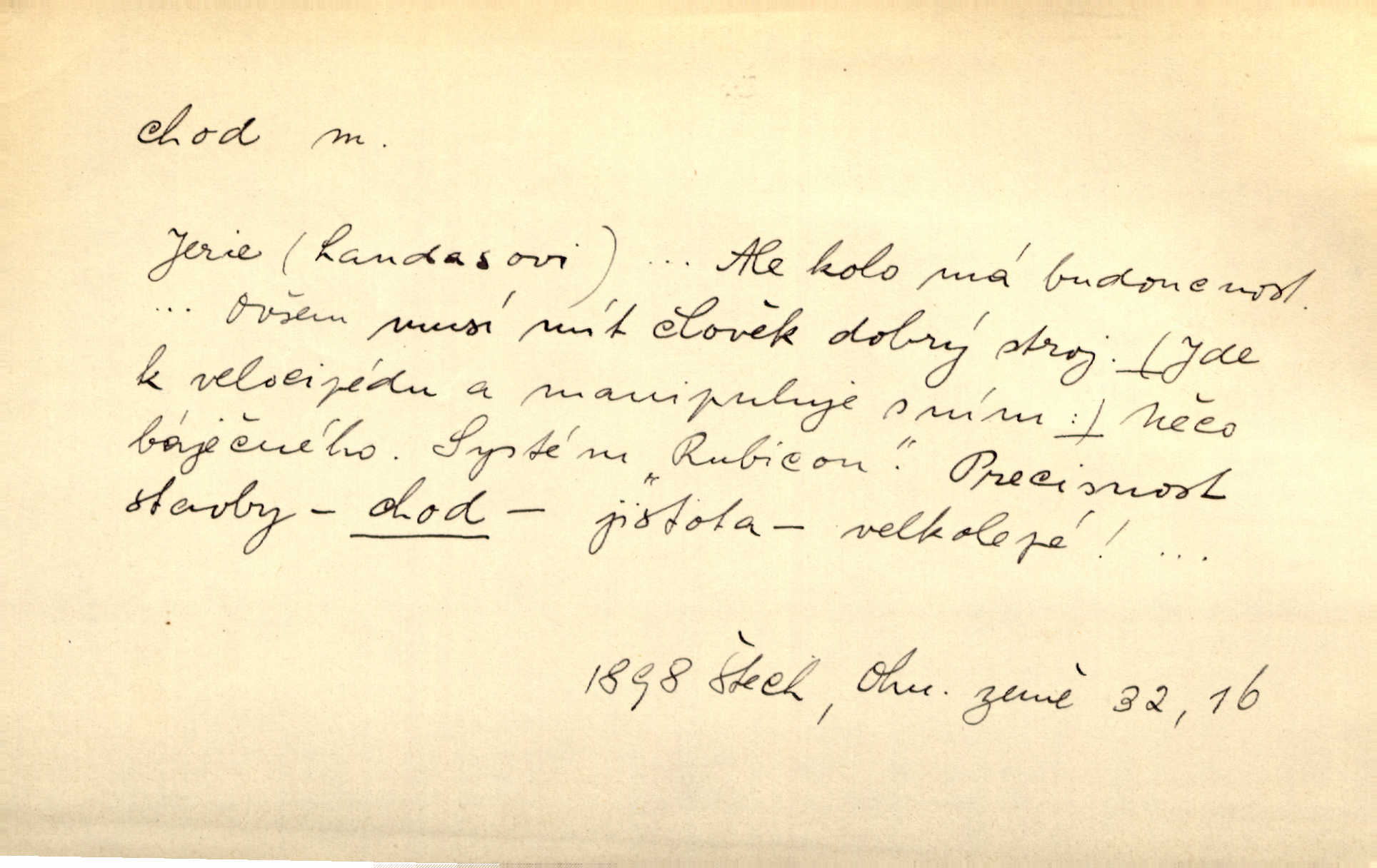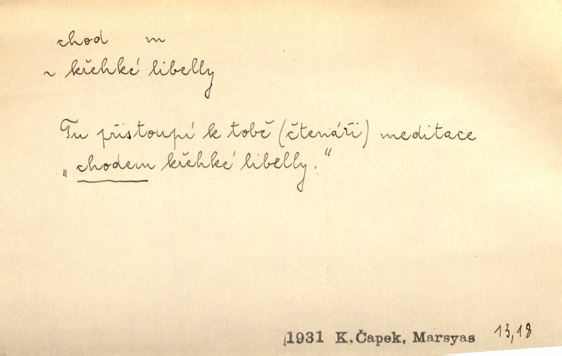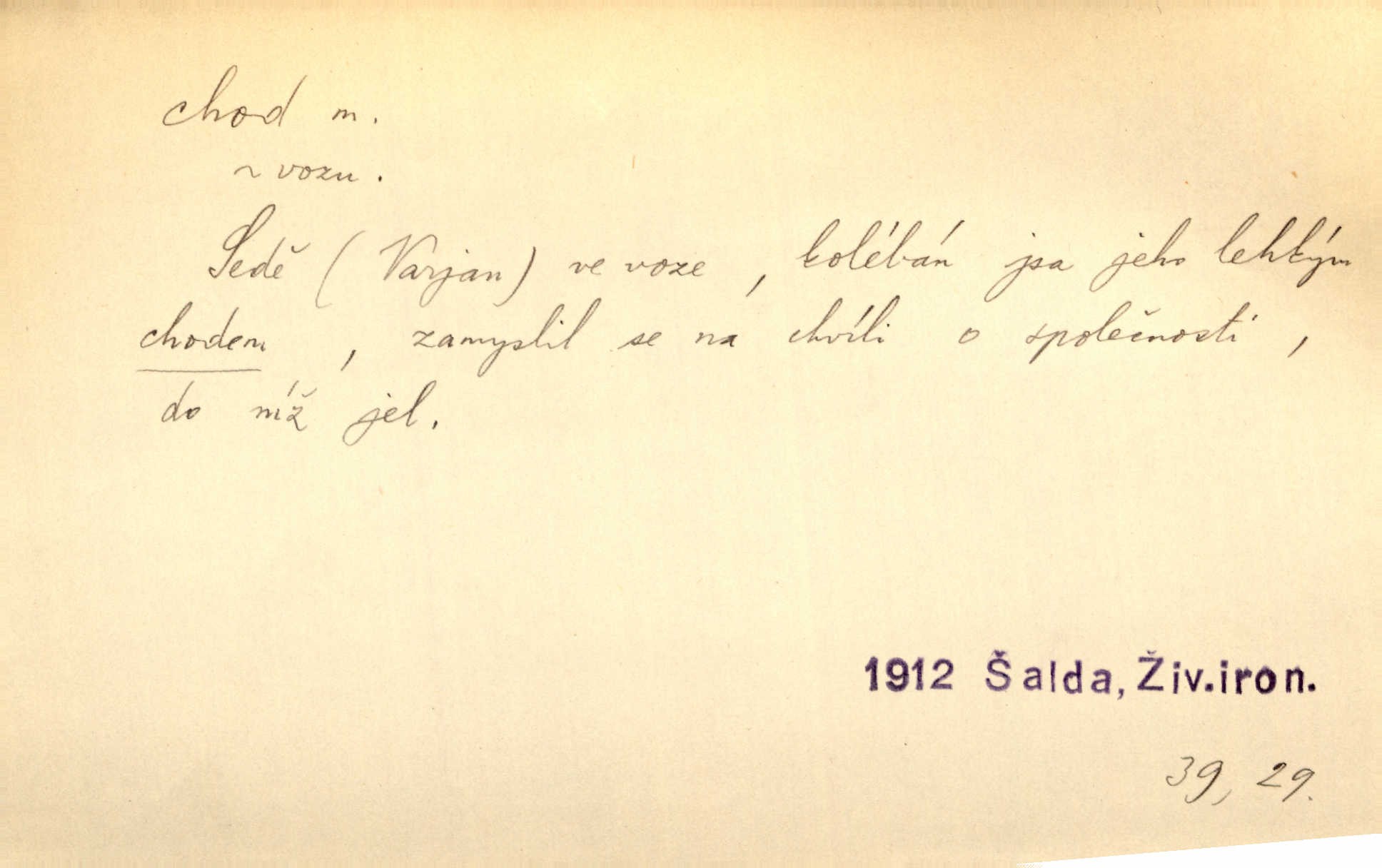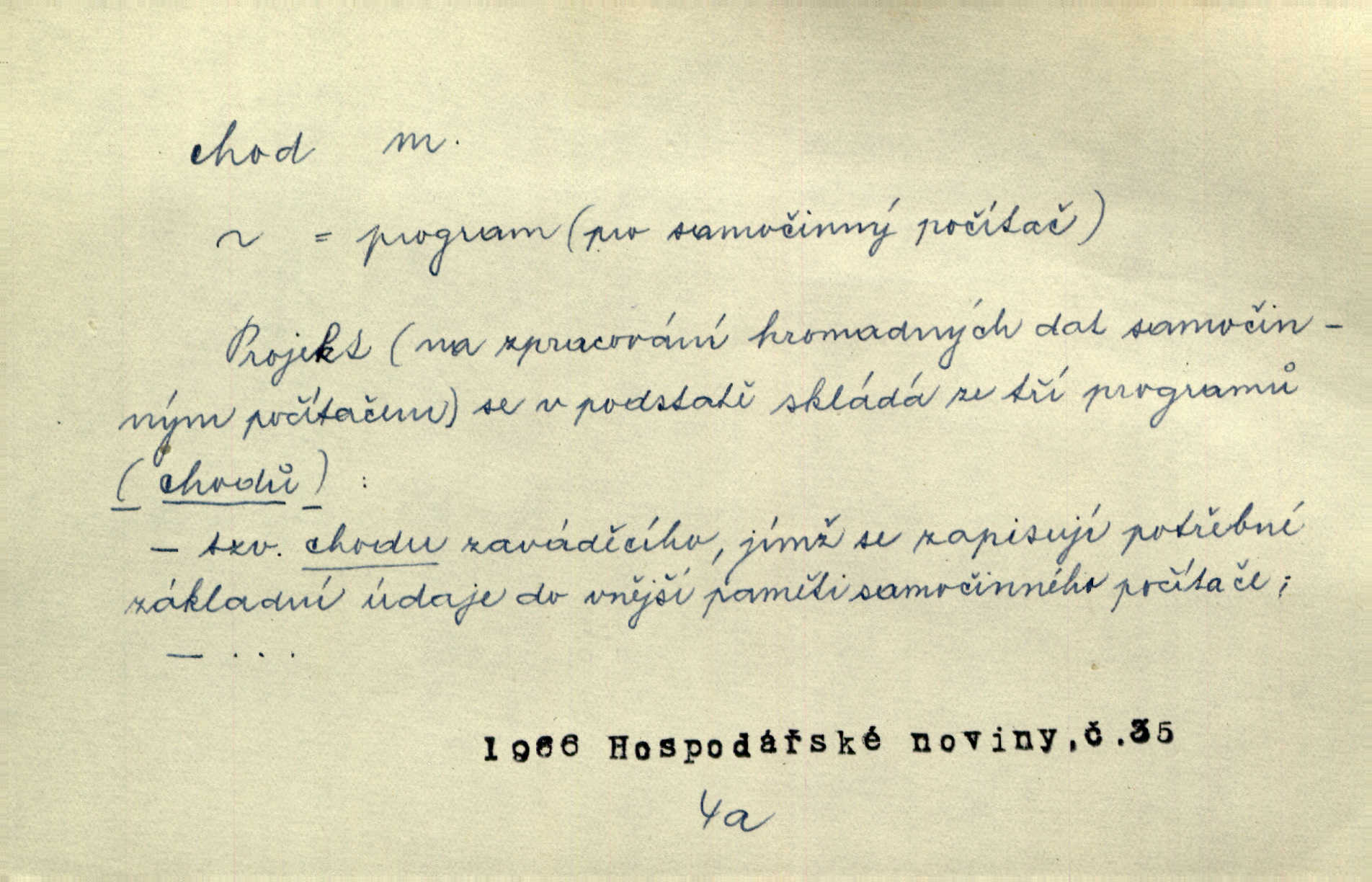 - chod, -u m. dělání kroků při pohybu s místa na místo, chůze. Potácivý chod. V. Mrš. Všichni v tomto sanatoriu mají neslyšný chod. Lang. Klátivé ruce jeho houpaly se při chodu kolem těla. Ner. Po chodu a po řeči poznáš člověka. Přísl. D Mysl. chody pl. cestičky zvěře, ochozy, spády. D jinaký pohyb s místa na místo. Rozmyslný a opatrný „chod“ [štiky]‚ její mžouravé oko, upřené na kořist. Mah. Sedě ve voze, kolébán jsa lehkým chodem, zamyslil se na chvíli. Šal. Bloudil s místa na místo, proklínaje lenivý chod slunce. Pfleg. D pohyb věci na místě, činnost, běh. Staré hodiny šly svým rozvážným chodem jako člověk kráčející ne za povinností, ale moudrou procházkou. Mach. Precisnost stavby [velocipédu] — chod — jistota — velkolepé! Štech. Chod motoru, vozidla, kulometu a p. Stroj je v chodu. Uvésti do chodu. Chod vysoké pece. D průběh, postup, vývoj n. i stav něčeho. [Obhájce] se ohrazuje proti suggestivním vlivům pana zástupce na chod přelíčení. Čap. Ch. Za okolností vybočujících z obvyklého chodu života. Herrm. Když chod věcí nabral tvářnosti již zcela určité, slabě vykřikla. Šrám. Věc je v chodu. Šrám. Pátral po truhlářské dílně, která by byla v dobrém chodu. Baar. Meteor. chod srážek. Tech. chod závitu (šroubu) počet ovinutí závitovitých profilů na jedno stoupání. D jeden člen, jedna část z nějakého postupu, z řady věcí po sobě. Naše milé obecenstvo je jako posvícenský host, jenom hodně mnoho chodů. Klost. Jídelní lístek o pěti chodech. Kun.