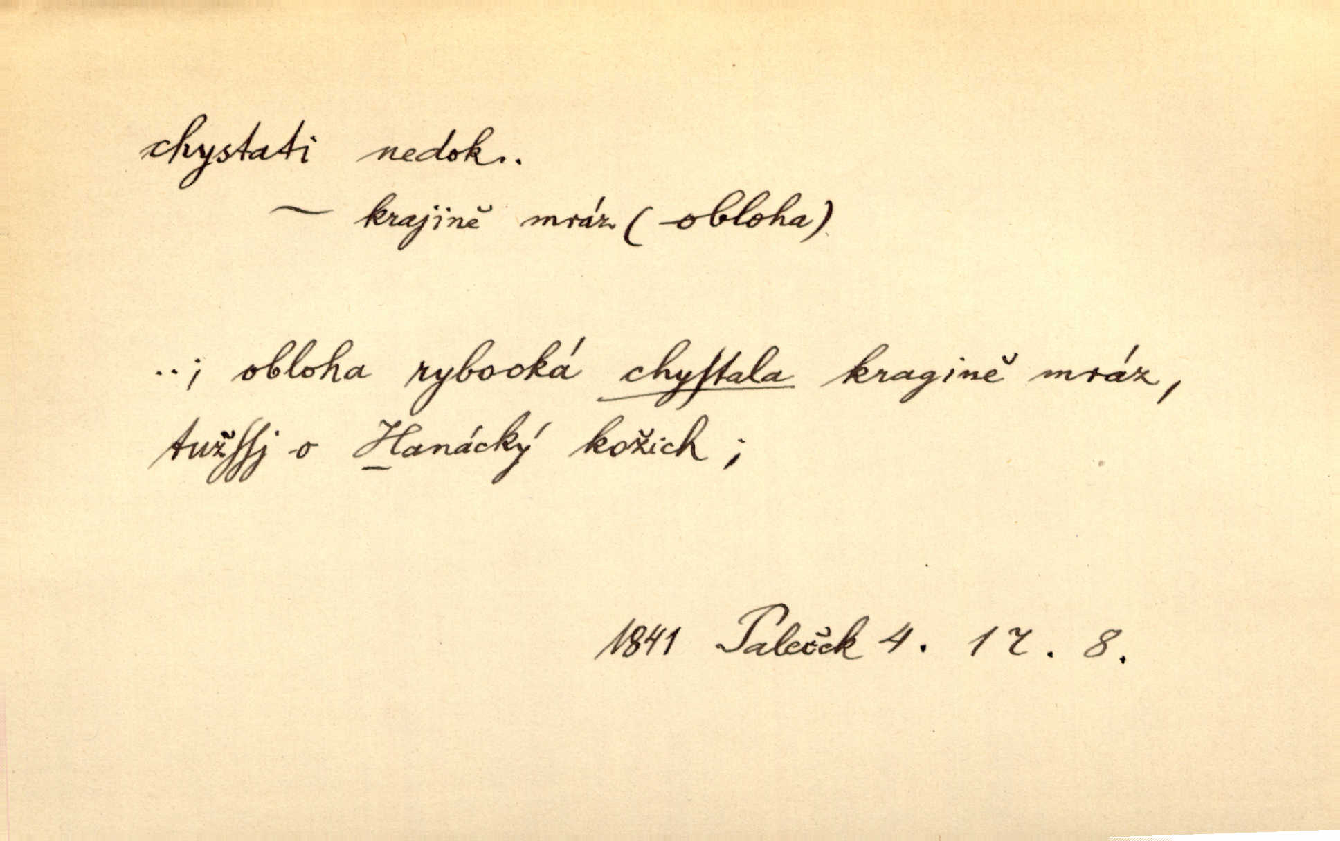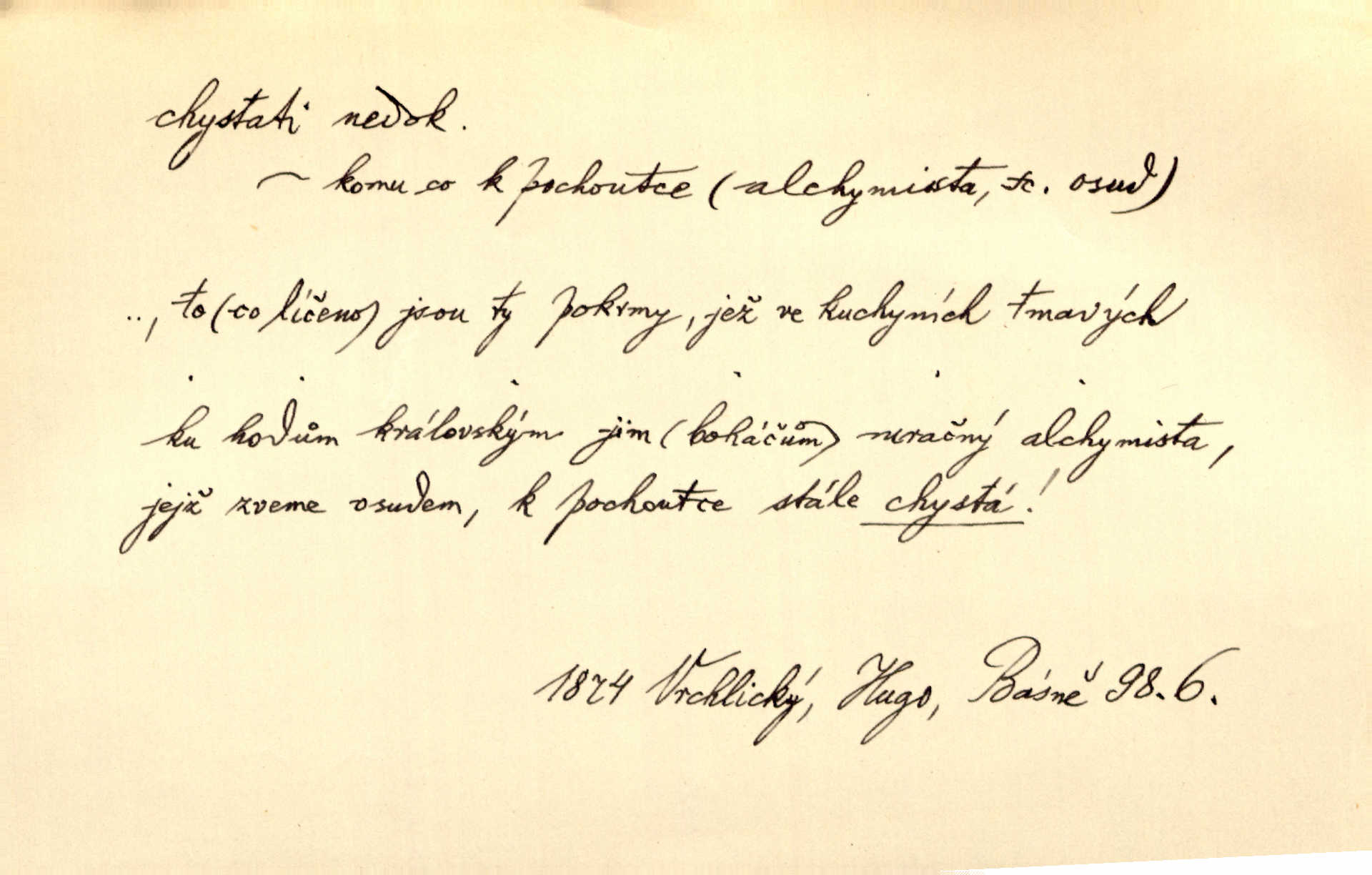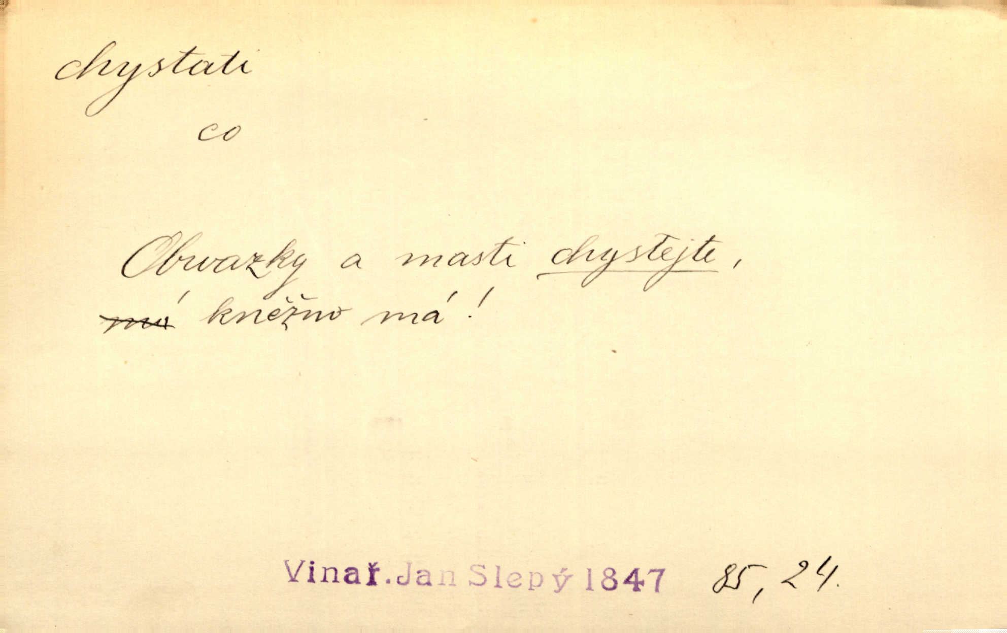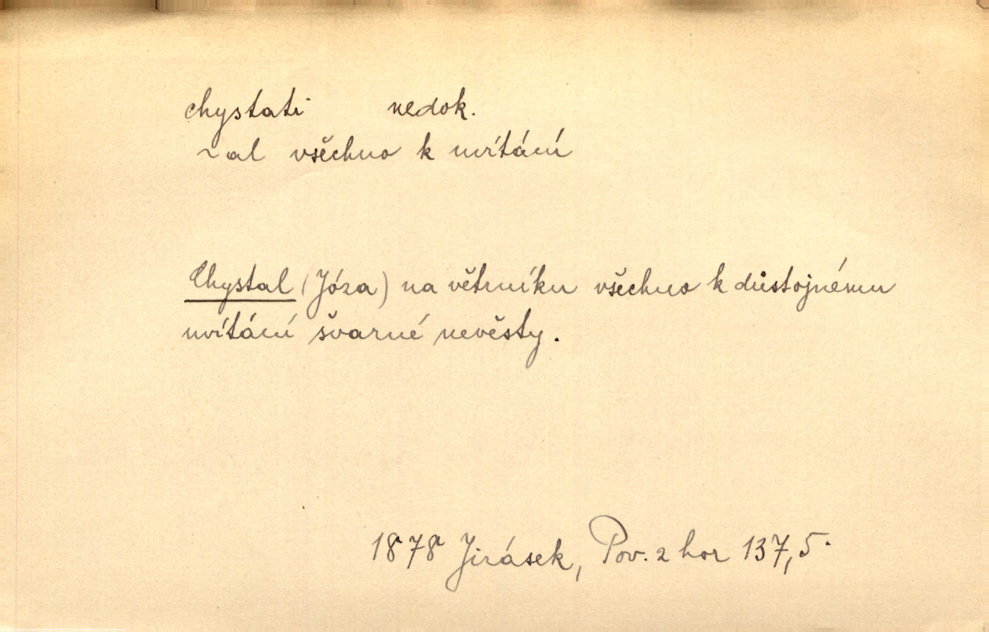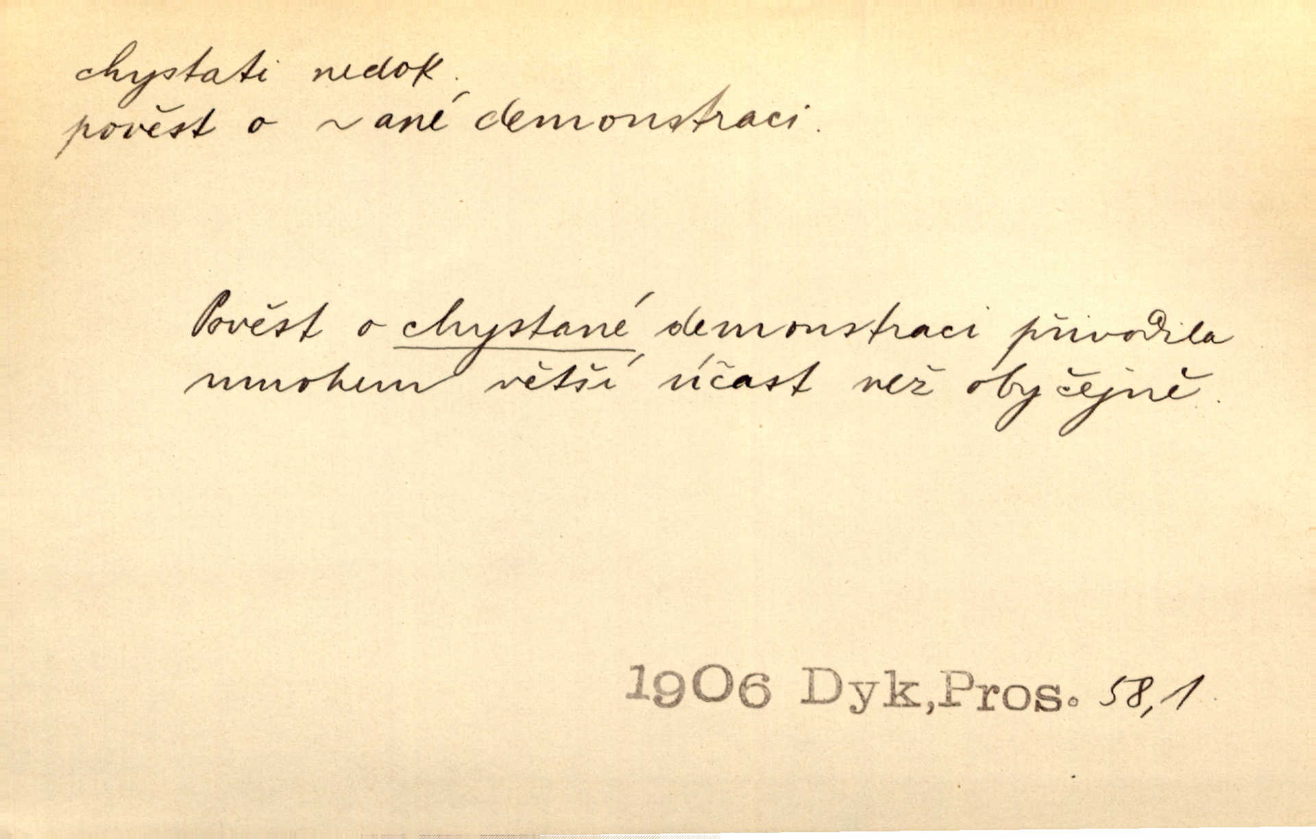 - chystati ned. (co) připravovati, strojiti. Matka chystala večeři. Jir. Chystám historické dílo o vládě Jiřího z Poděbrad. K. Čap. Chystal všechno k důstojnému uvítání nevěsty. Jir. Můžete si chystati vdovské šaty budete brzy vdovou. Jir. Kdo ví, co vše život tobě chystá. Kam. Vyšel do stodoly chystat kravám dáti krmení. D chystati se připravovati se, hotoviti se. Pan rada se chystá s neděle na delší dovolenou. Šim. Najednou začne chátrat — a bylo vidět, že se chystá na onen svět brzy zemře. Proč nám nepřišel nikdo říct, že se stařenka chystá k smrti? jde to s ní ke konci. A. Mrš. Chystal se do psaní. Jir. Celé okolí se chystalo podívat se na oddavky zemanovy. Svět. Otec se chystal, že si přistaví malou světničku pro výminek. Prav. Čeleď chystala se, aby vykonala rozkaz pana Jana. Třeb. Polní hejtman chystal se z tábora se svým houfem hned druhého dne. Jir. K vůli němu [oficíru] přišla o místo, nic teď nemá a v tuhle chvíli, když se chystá čeká se, je před porodem. Jir. Chystalo se na bouřku. Jir. Chystalo se k dešti. Zey.