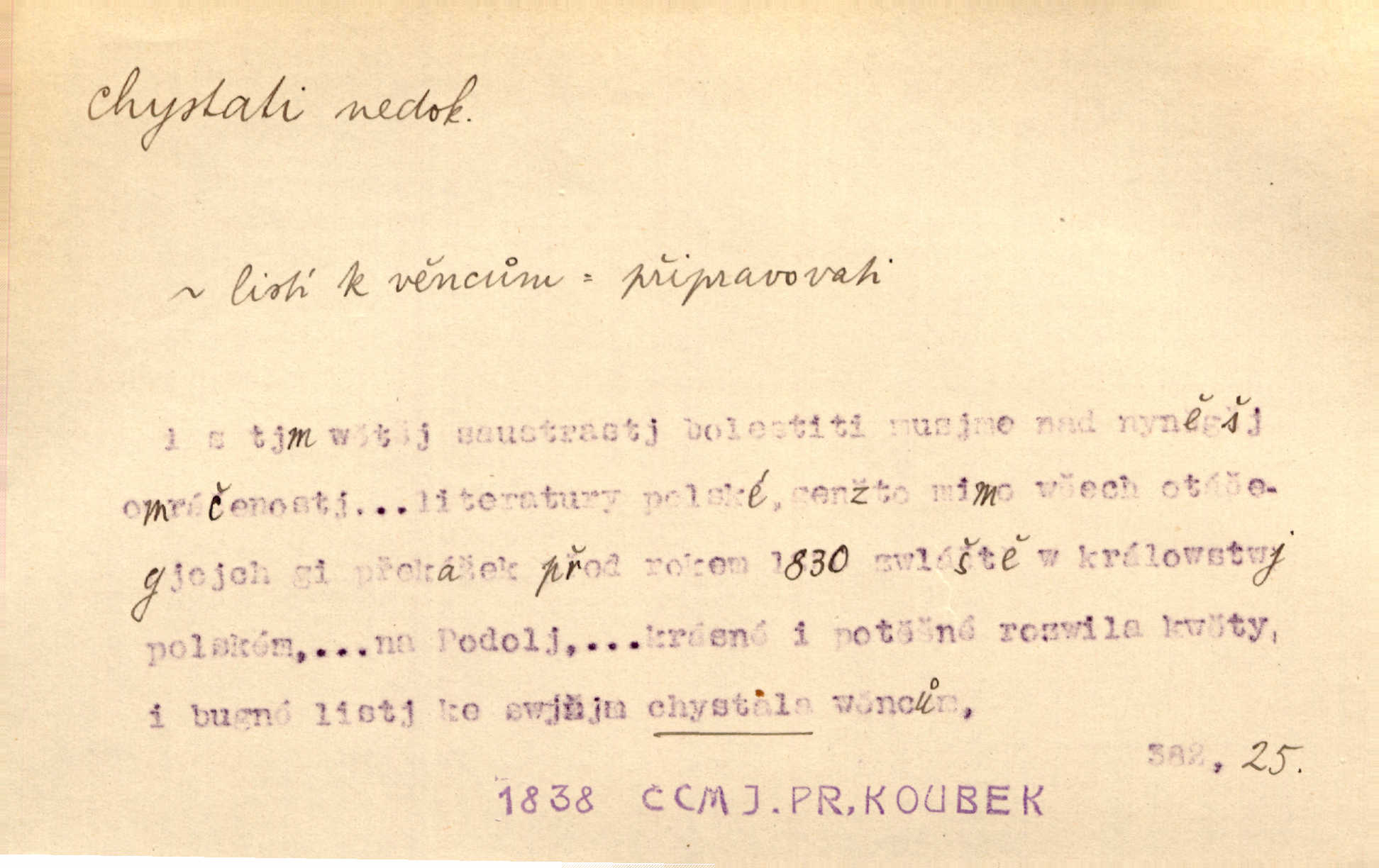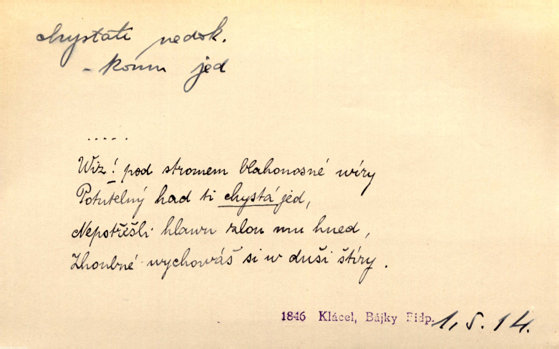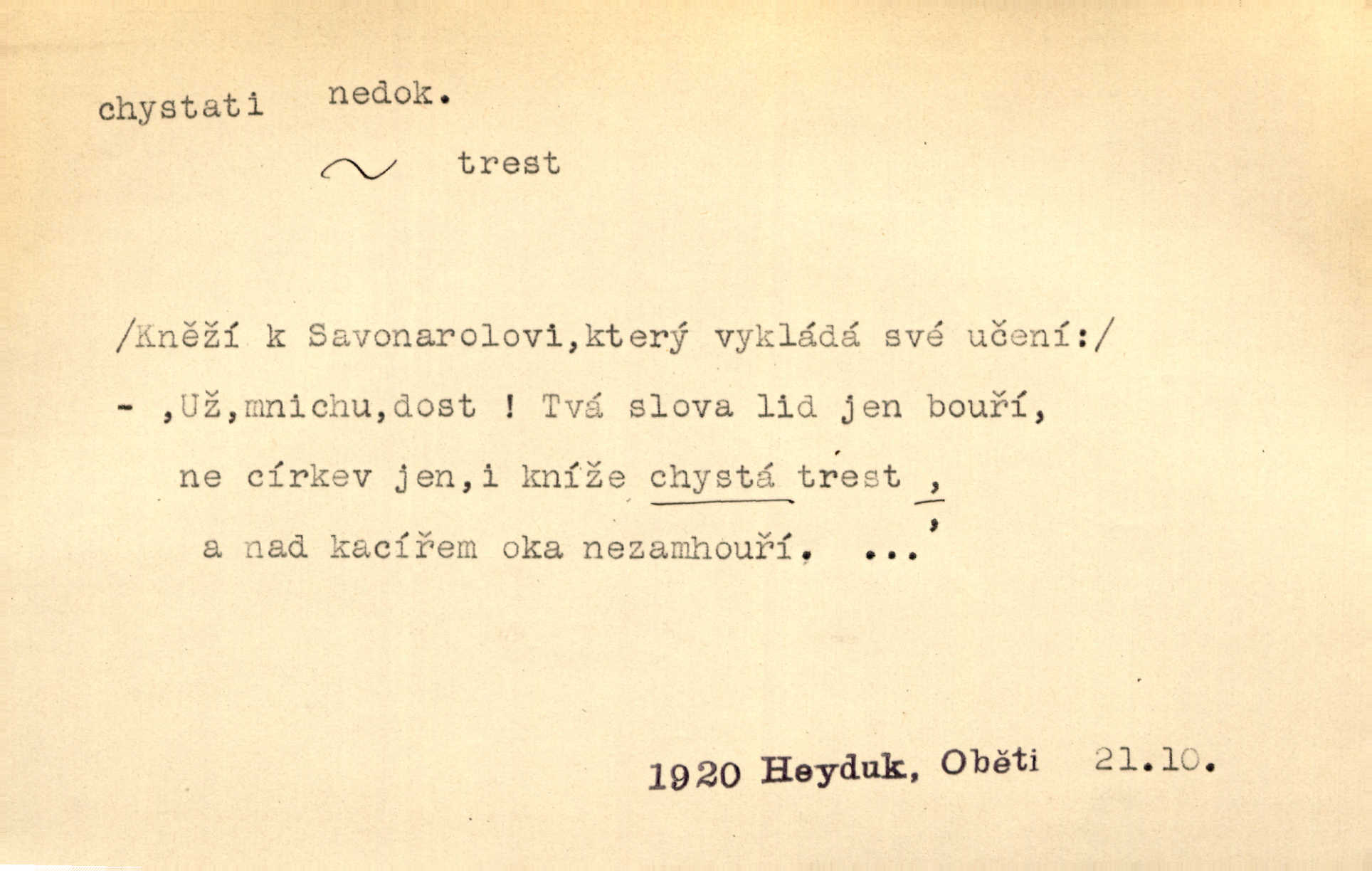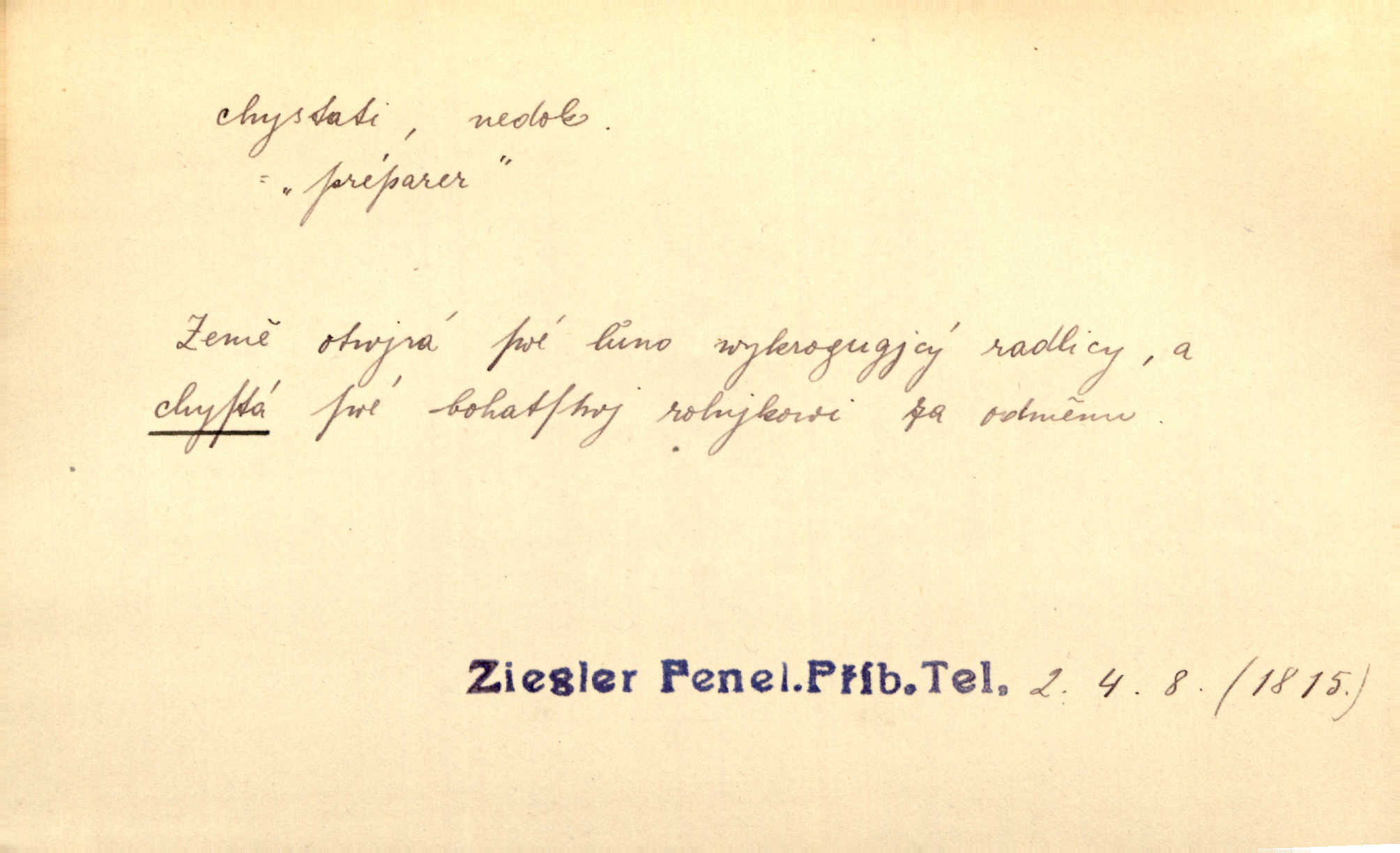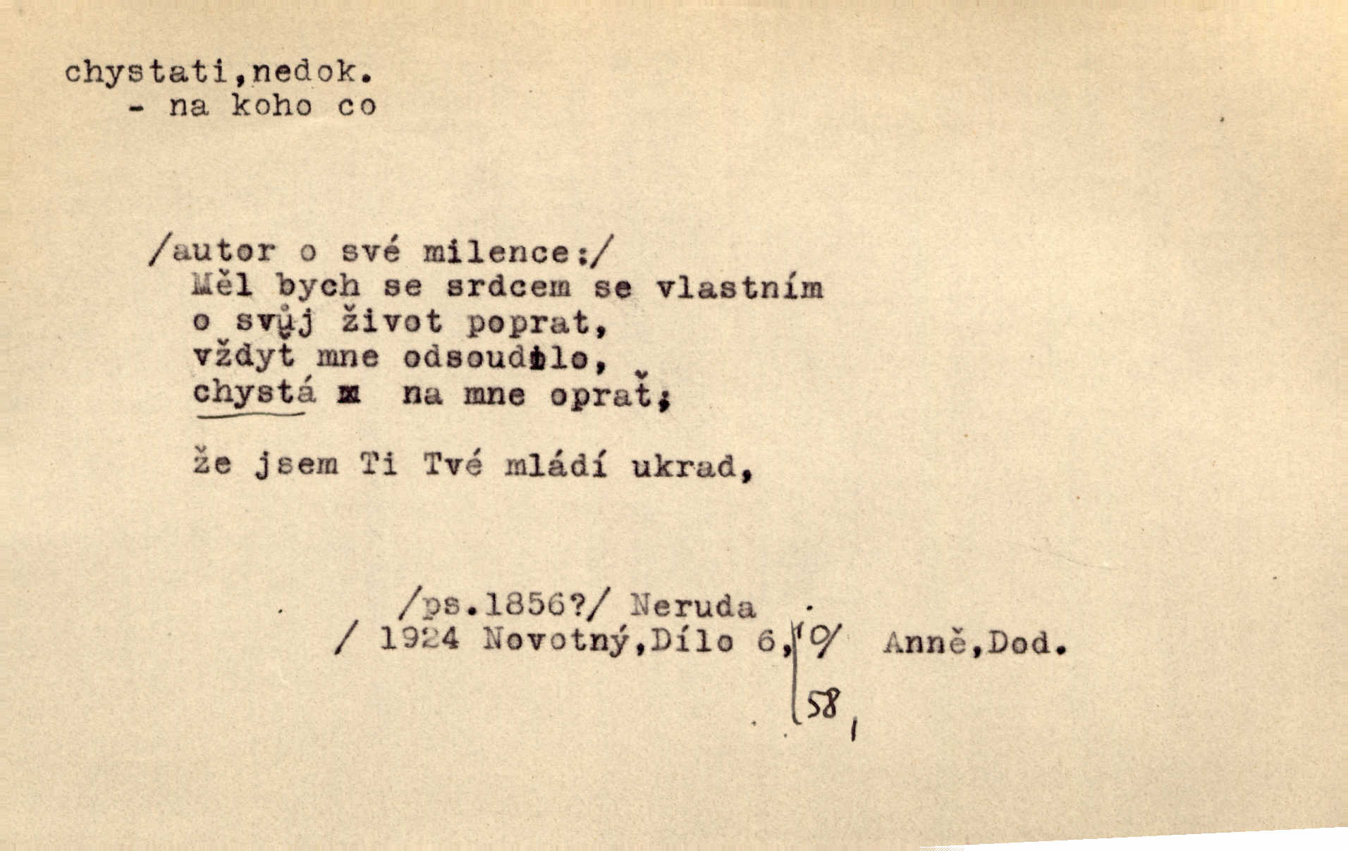 - chystati ned. (co) připravovati, strojiti. Matka chystala večeři. Jir. Chystám historické dílo o vládě Jiřího z Poděbrad. K. Čap. Chystal všechno k důstojnému uvítání nevěsty. Jir. Můžete si chystati vdovské šaty budete brzy vdovou. Jir. Kdo ví, co vše život tobě chystá. Kam. Vyšel do stodoly chystat kravám dáti krmení. D chystati se připravovati se, hotoviti se. Pan rada se chystá s neděle na delší dovolenou. Šim. Najednou začne chátrat — a bylo vidět, že se chystá na onen svět brzy zemře. Proč nám nepřišel nikdo říct, že se stařenka chystá k smrti? jde to s ní ke konci. A. Mrš. Chystal se do psaní. Jir. Celé okolí se chystalo podívat se na oddavky zemanovy. Svět. Otec se chystal, že si přistaví malou světničku pro výminek. Prav. Čeleď chystala se, aby vykonala rozkaz pana Jana. Třeb. Polní hejtman chystal se z tábora se svým houfem hned druhého dne. Jir. K vůli němu [oficíru] přišla o místo, nic teď nemá a v tuhle chvíli, když se chystá čeká se, je před porodem. Jir. Chystalo se na bouřku. Jir. Chystalo se k dešti. Zey.