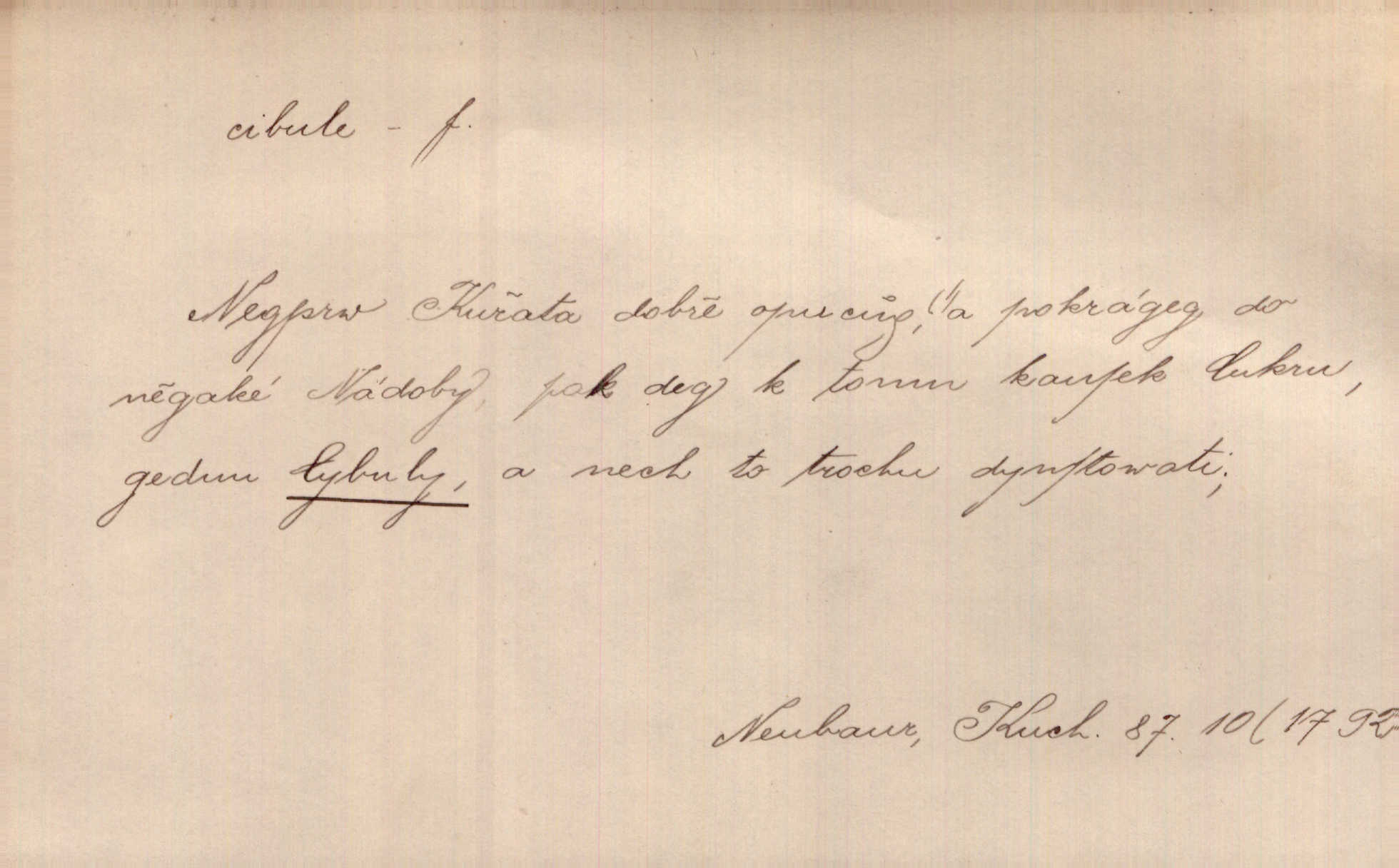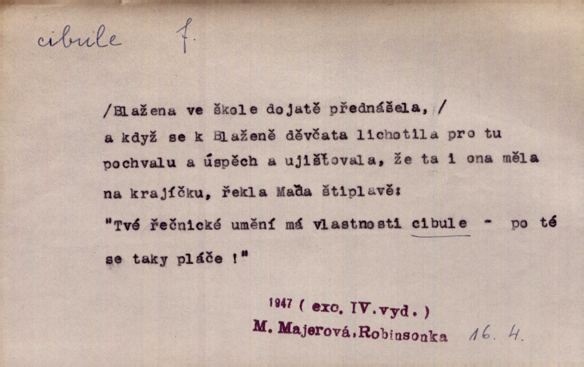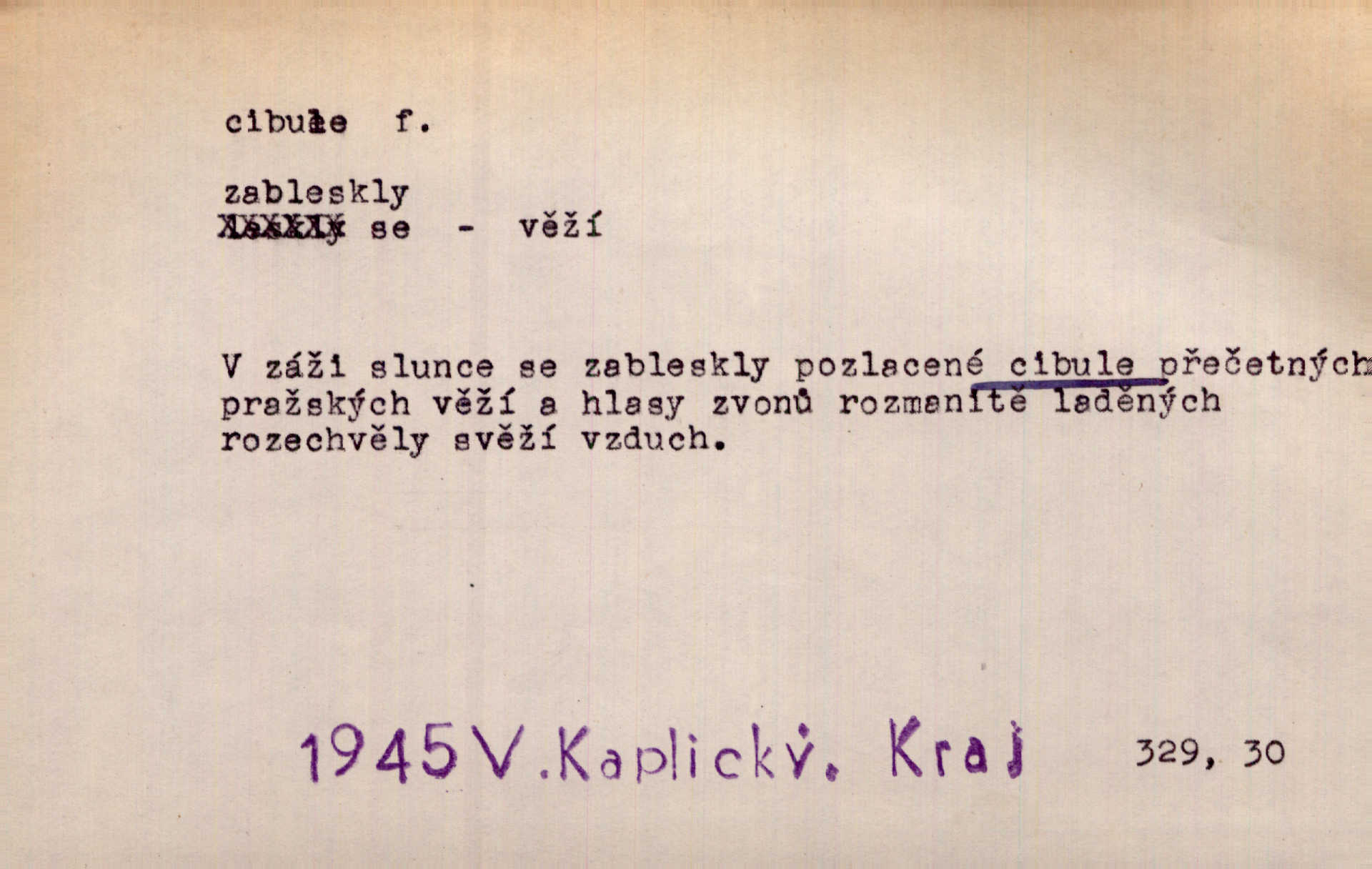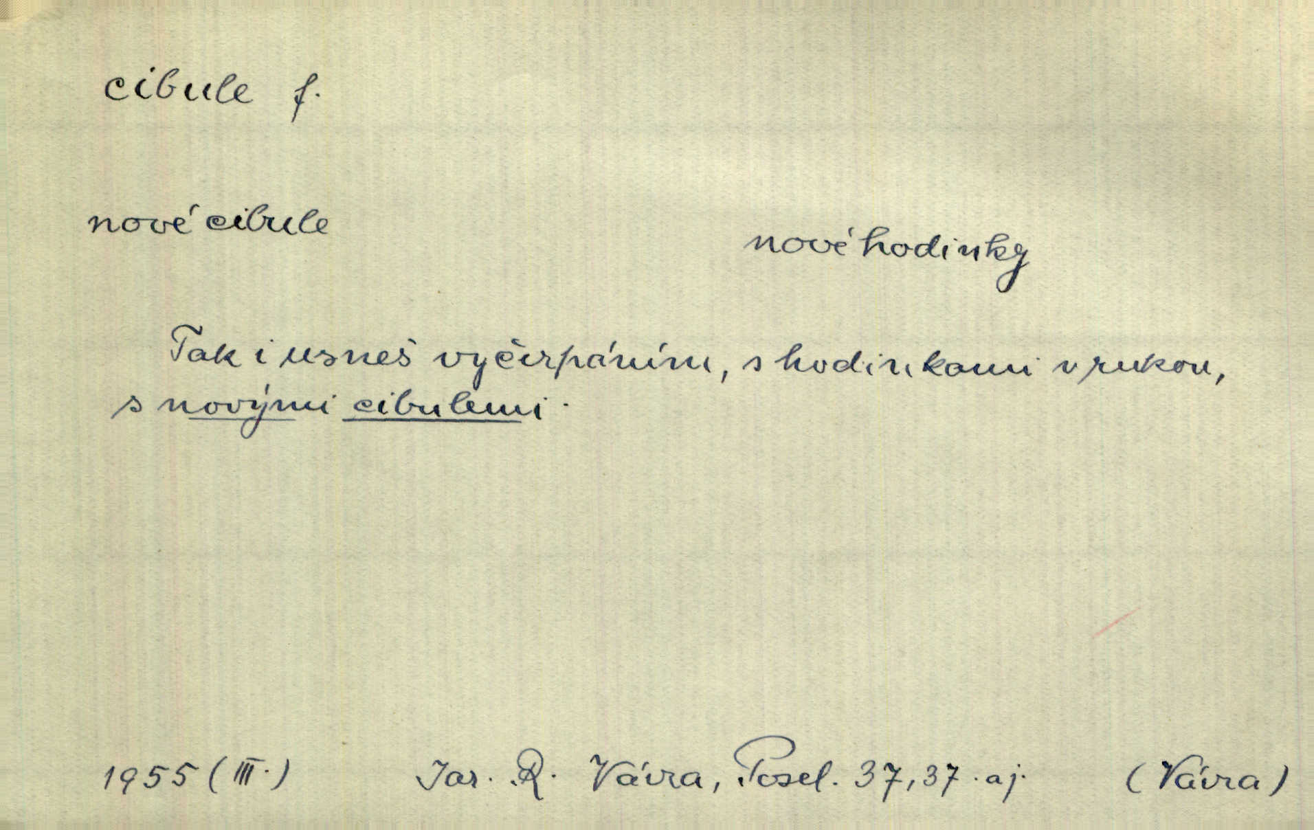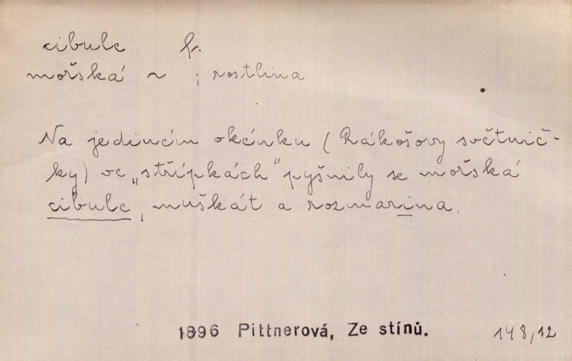 - cibule, -e f. zeleninová rostlina (Allium cepa). Mořská cibule pokojová rostlina (Scilla maritima). D podzemní kulovitá, loupavá část některých bylin. Cibule hyacintové, tulipánové, liliové, narcisové a p. D předmět cibulovitého, baňatého tvaru, zejm. věžní báň. Štíhlá věž chrámu a dvě cibule na radnici vyhlížely již přes vršky. Rais. Lid. cibule pomn. baňaté kapesní hodinky, vulg. hodinky vůbec. Byly to bachraté „cibule“, vřetenky. Herrm. Jedeme z města přes hodinu, dotvrzoval mladík, zíraje na veliké cibule. Rais.