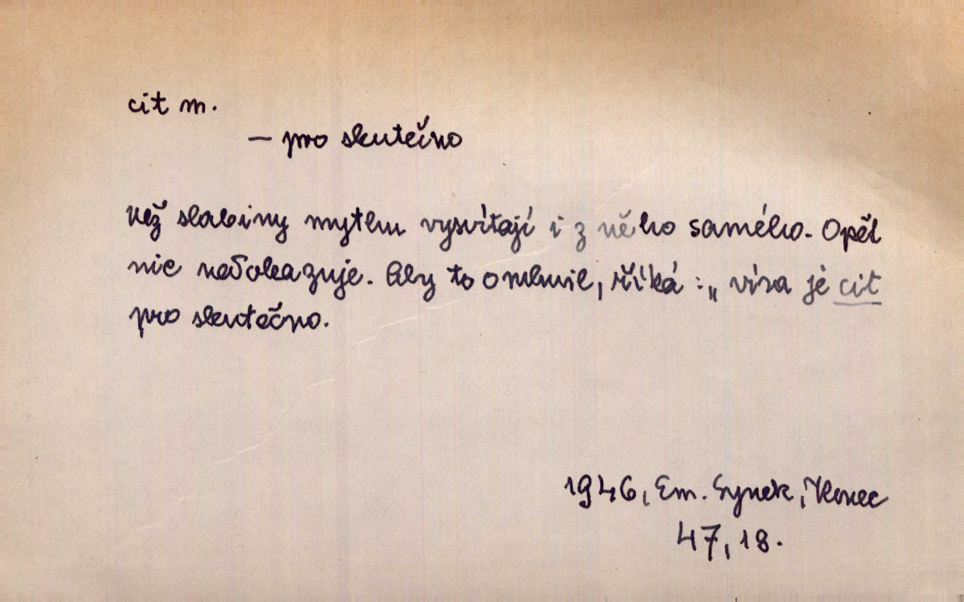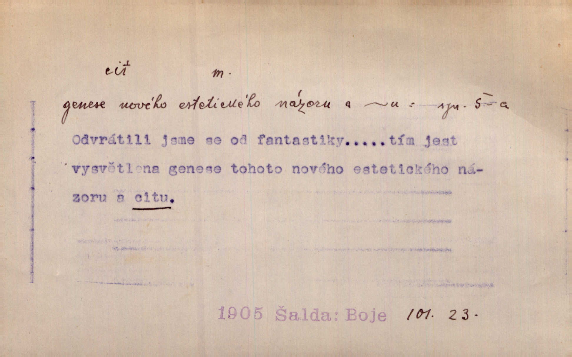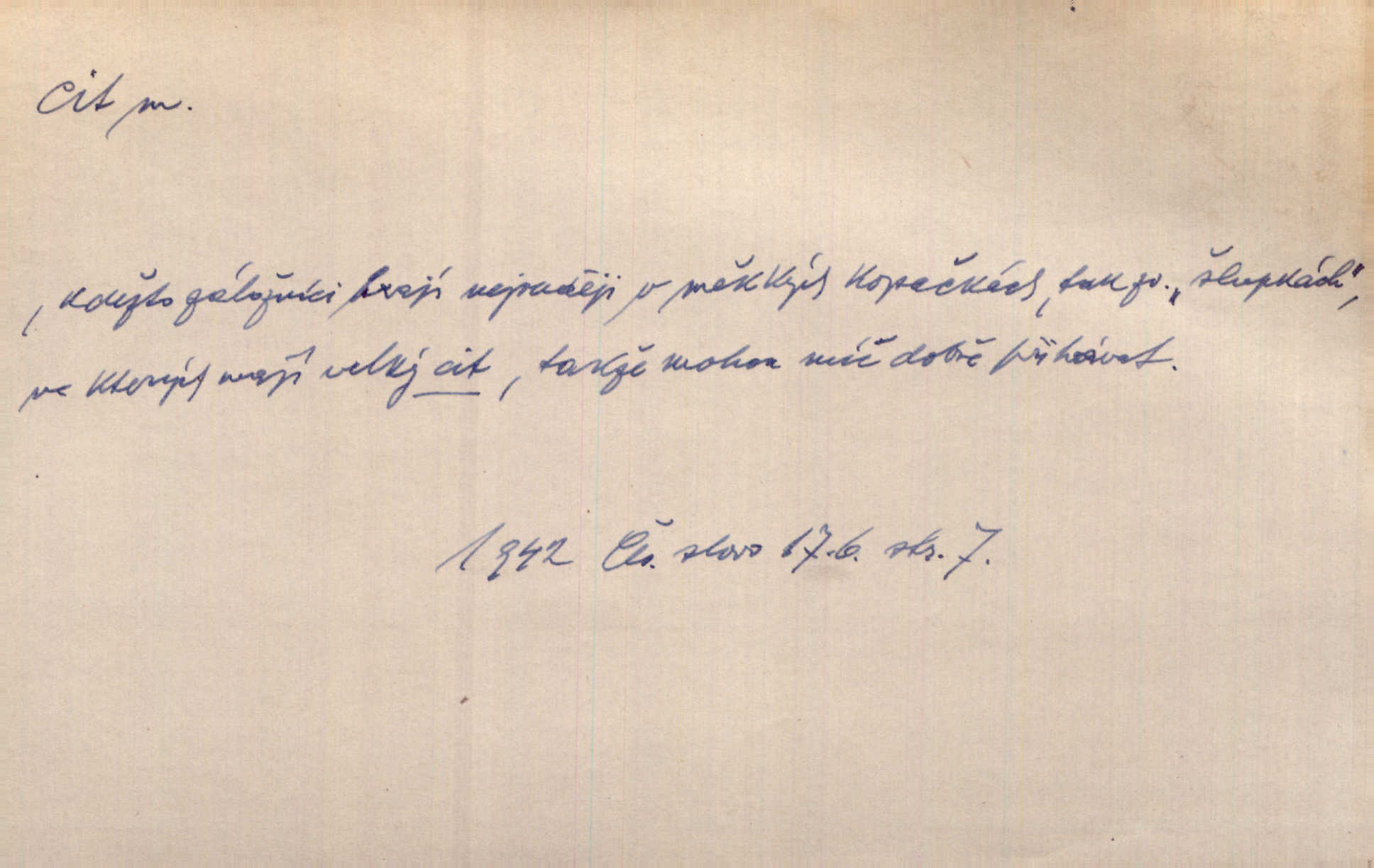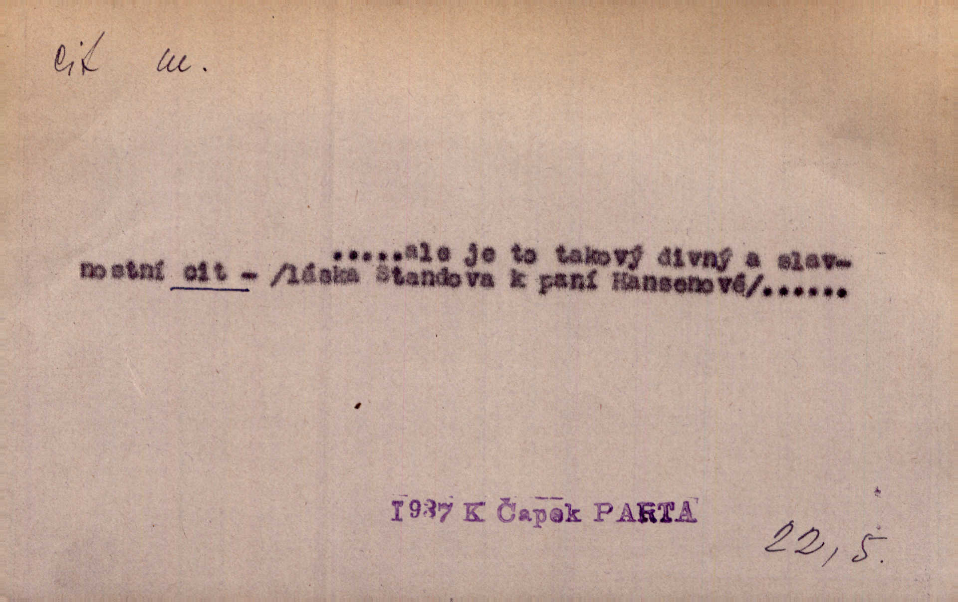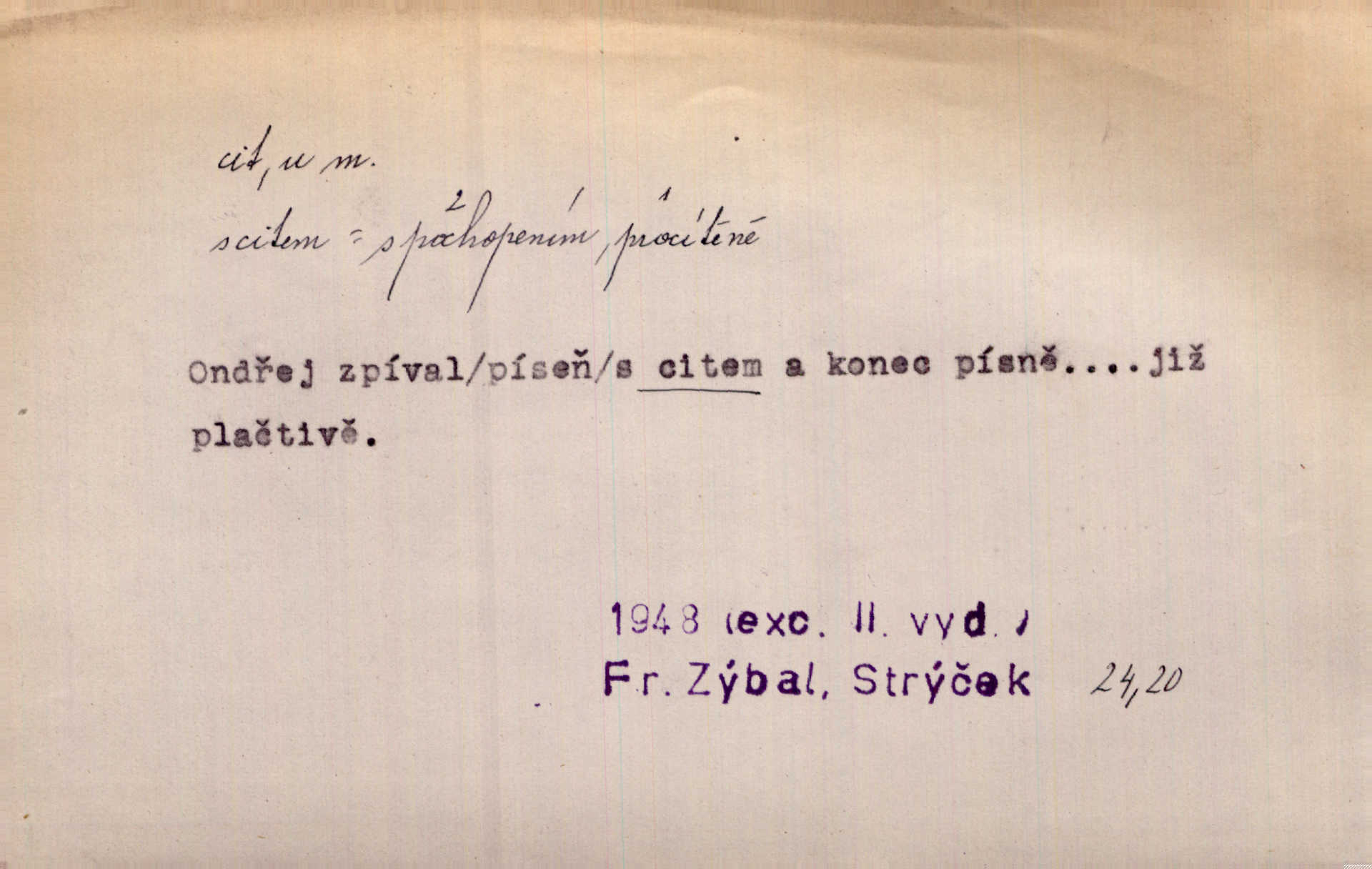 - cit, -u m. stránka duševního dění, při níž převládá libost n. nelibost. Mladou svou ženu dosud stejně miloval, cit jeho k ní neslábl. Svět. Zpíval s takovým citem, až mu oči zvlhly. Zey. Jsou chvíle, kdy nás zchvátí cit zoufalého prázdna. Mach. Cit nutil ústa k vzlyku bolestnému. Mach. Vykládala s citem, každé slovo protahovala. Rais. D porozumění, pochopení, vnímavost. Kdo nemá cit se zvířaty, takový sedlák nemůže a nesmí chtít, aby jej měl Pán Bůh s ním. Baar. On by také musel být pro čistotu v bytě cit. Šim. Černohorci zachovali svěží cit pro vše dobré i ušlechtilé. Hol. D schopnost těla číti dojmy příjemné n. nepříjemné, zvl. hmatový smysl. Raněný netrpí bolestí, protože má všechny čivy citu umrtveny. Čap. Ch. Cit v prstech vynahrazuje slepci zrak. Něm.