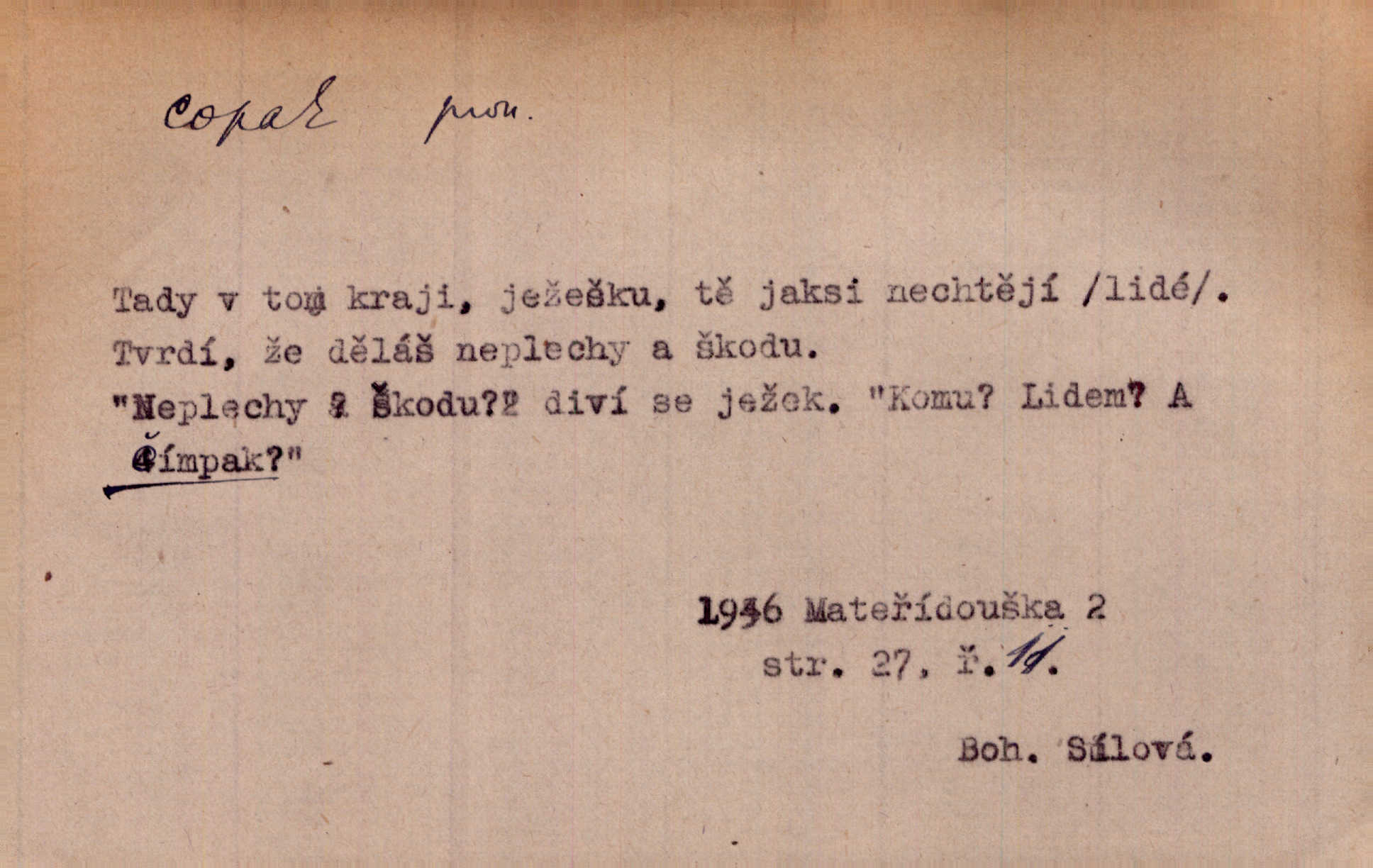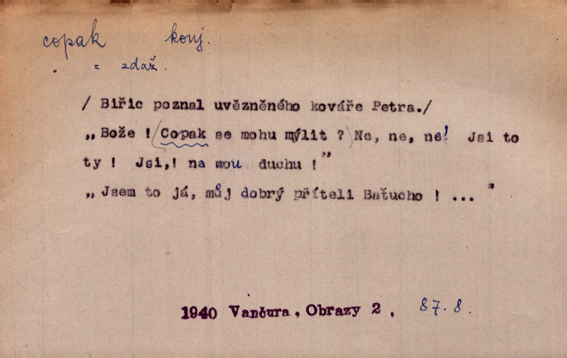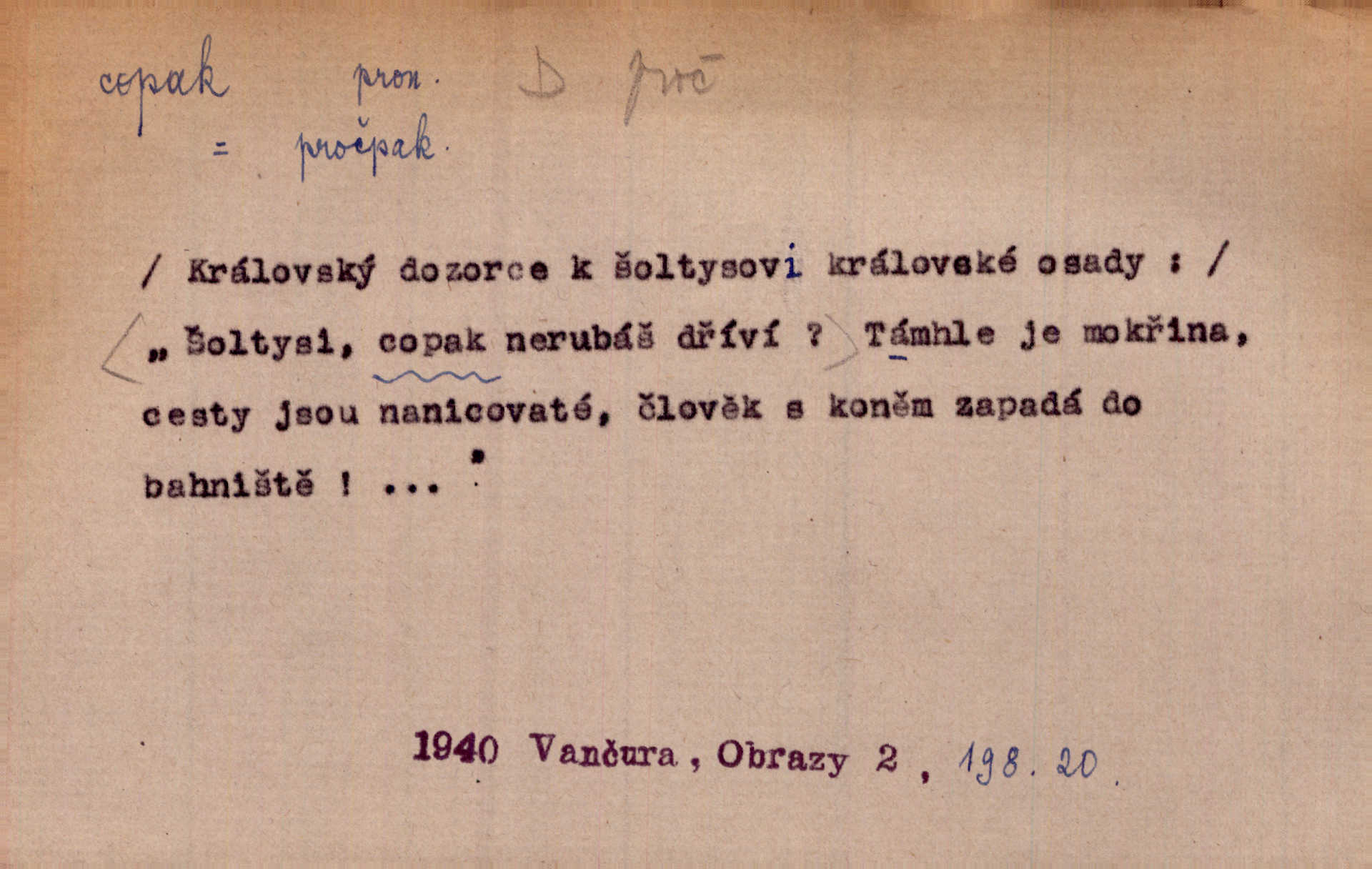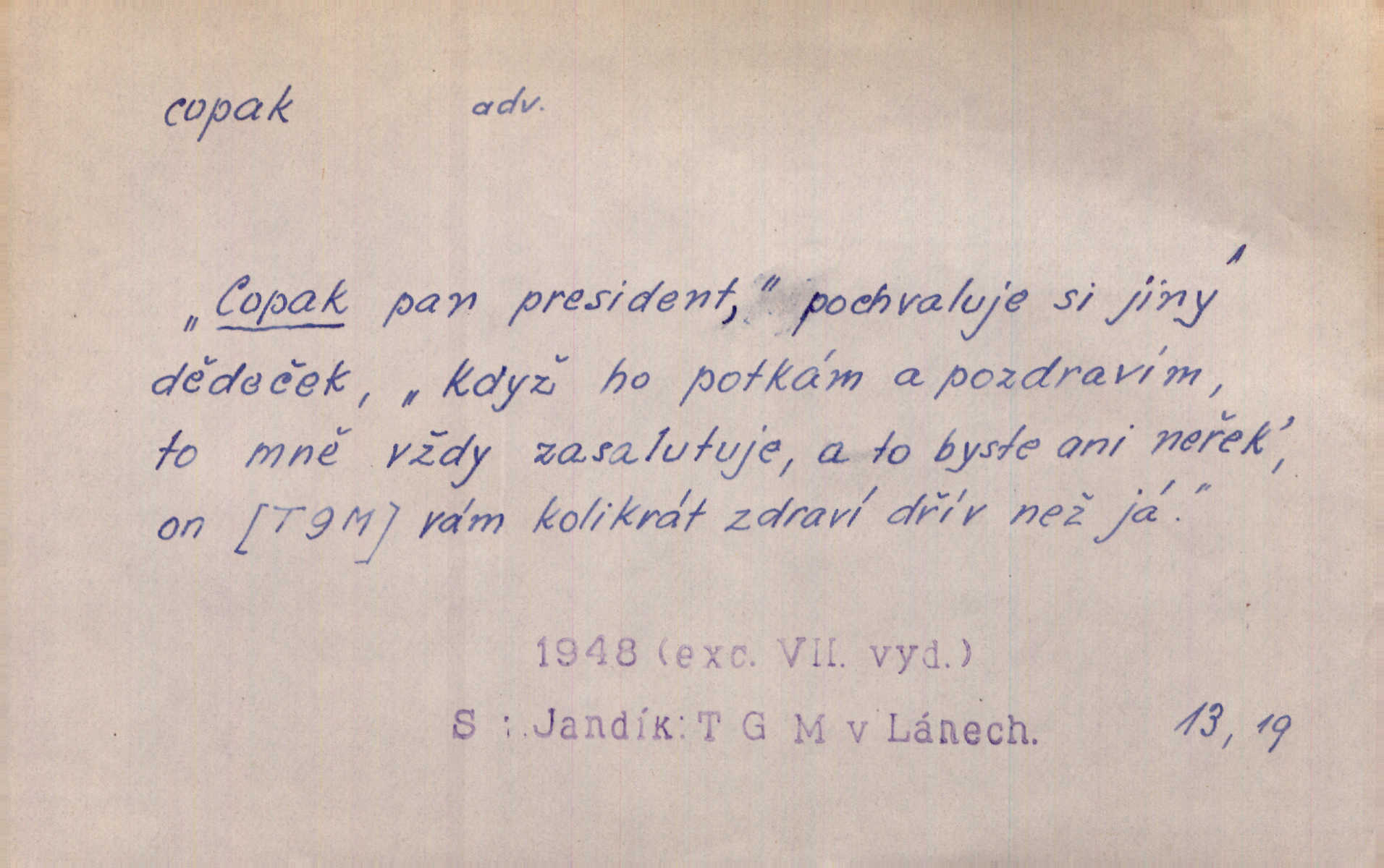 - copak zájm. a adv. táz. co, což. Copak ti je, mé zlaté dítě? Erb. Copak se v Písmě o takových věcech nedočítáme? Rais. D Copak za jaký pak. Copak jste to dnes vzal za pluviál? Baar. D při zvolání ovšem, arci. Copak náš milostpán, ten je jako čečetka. Baar.