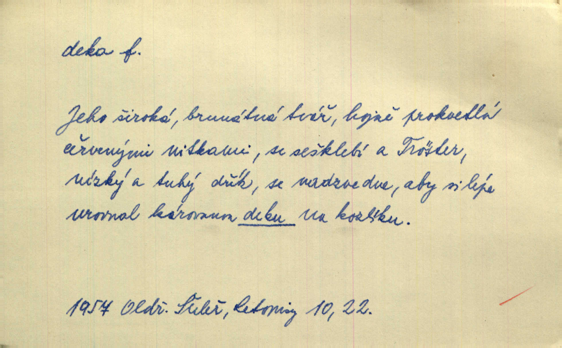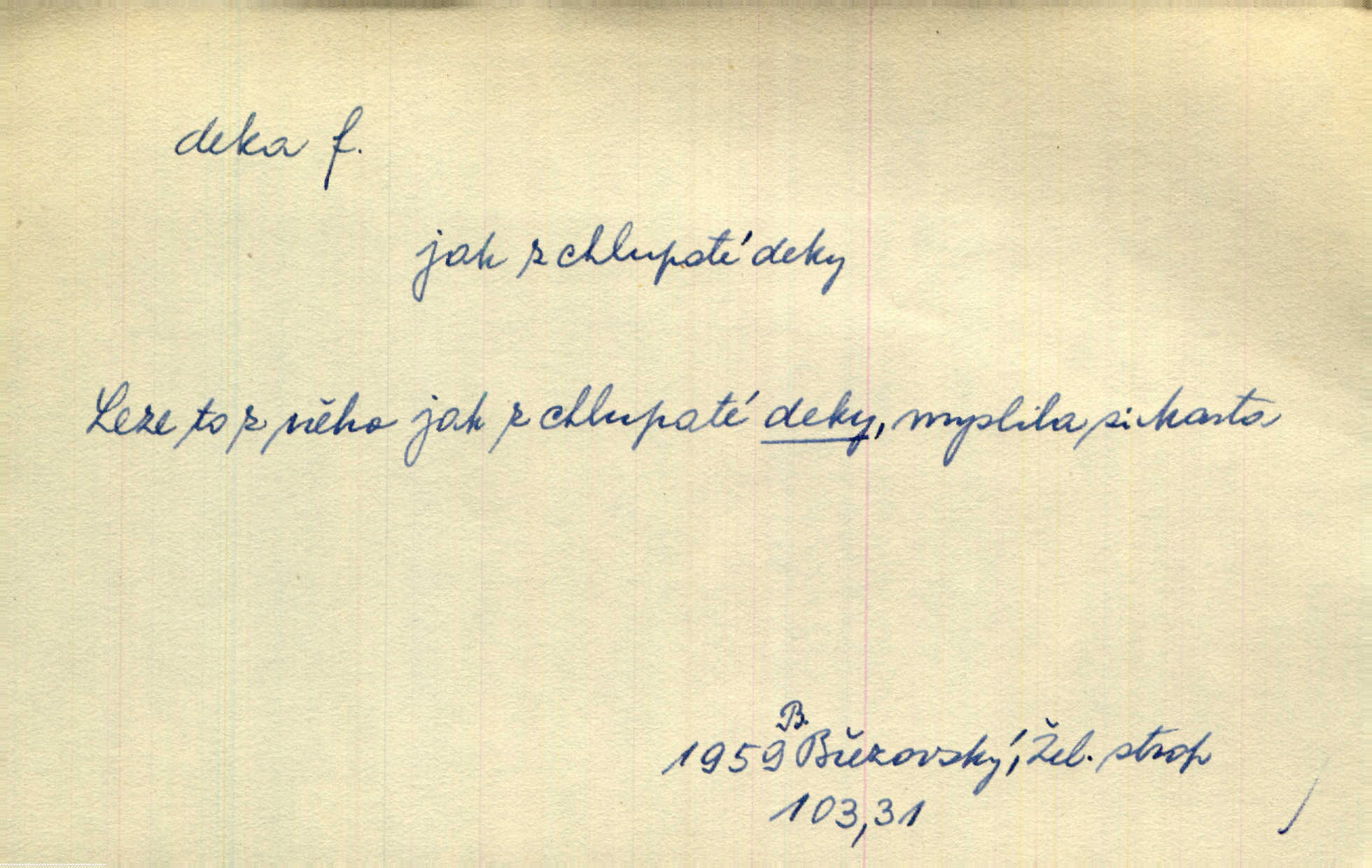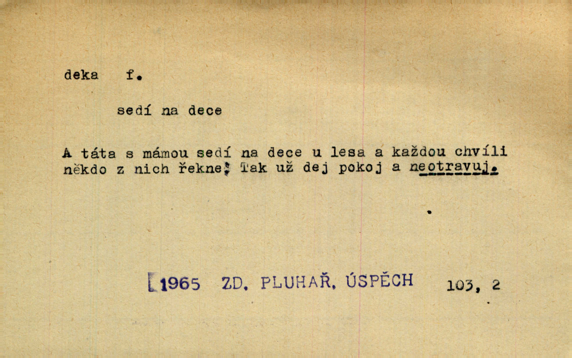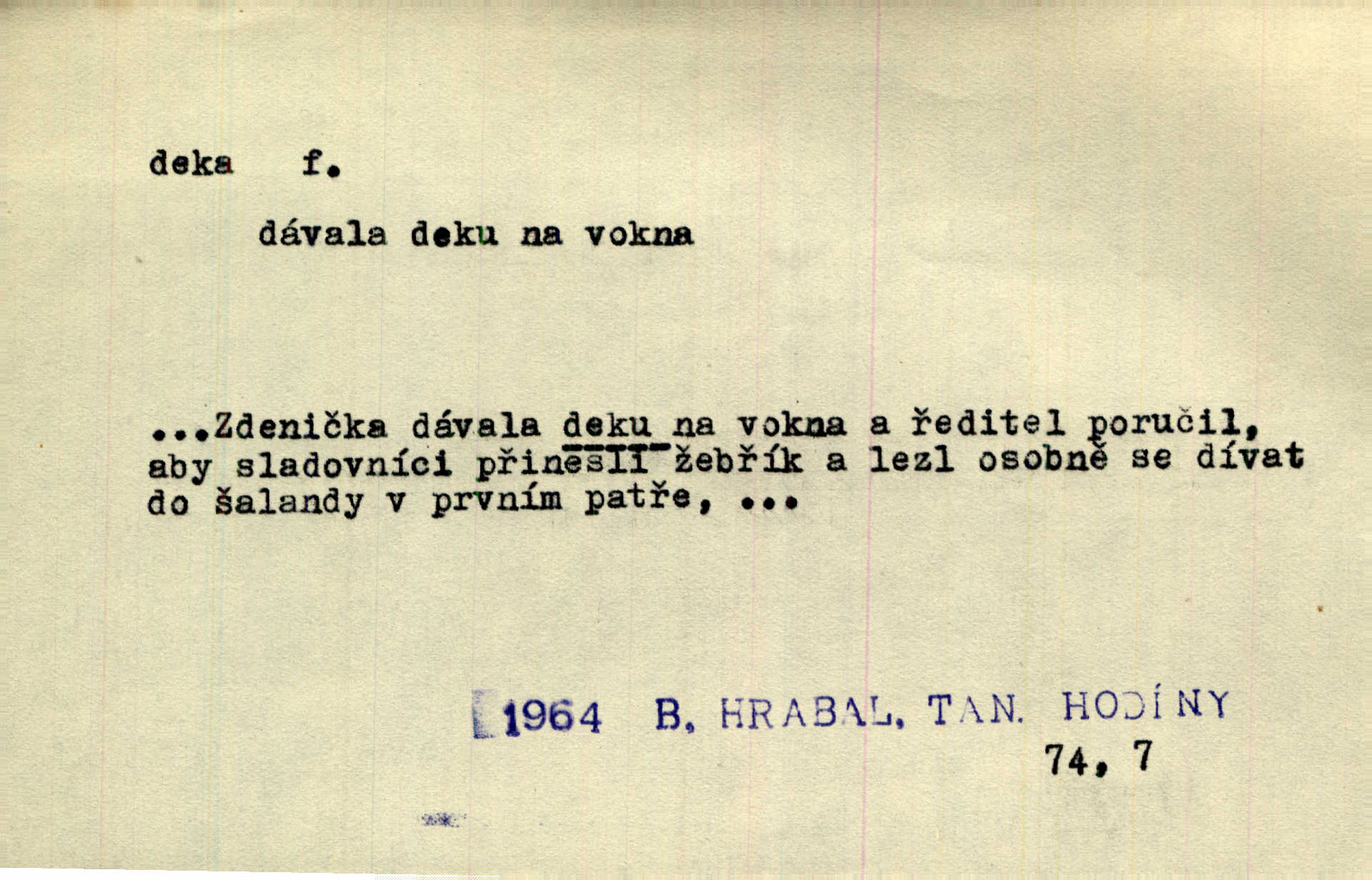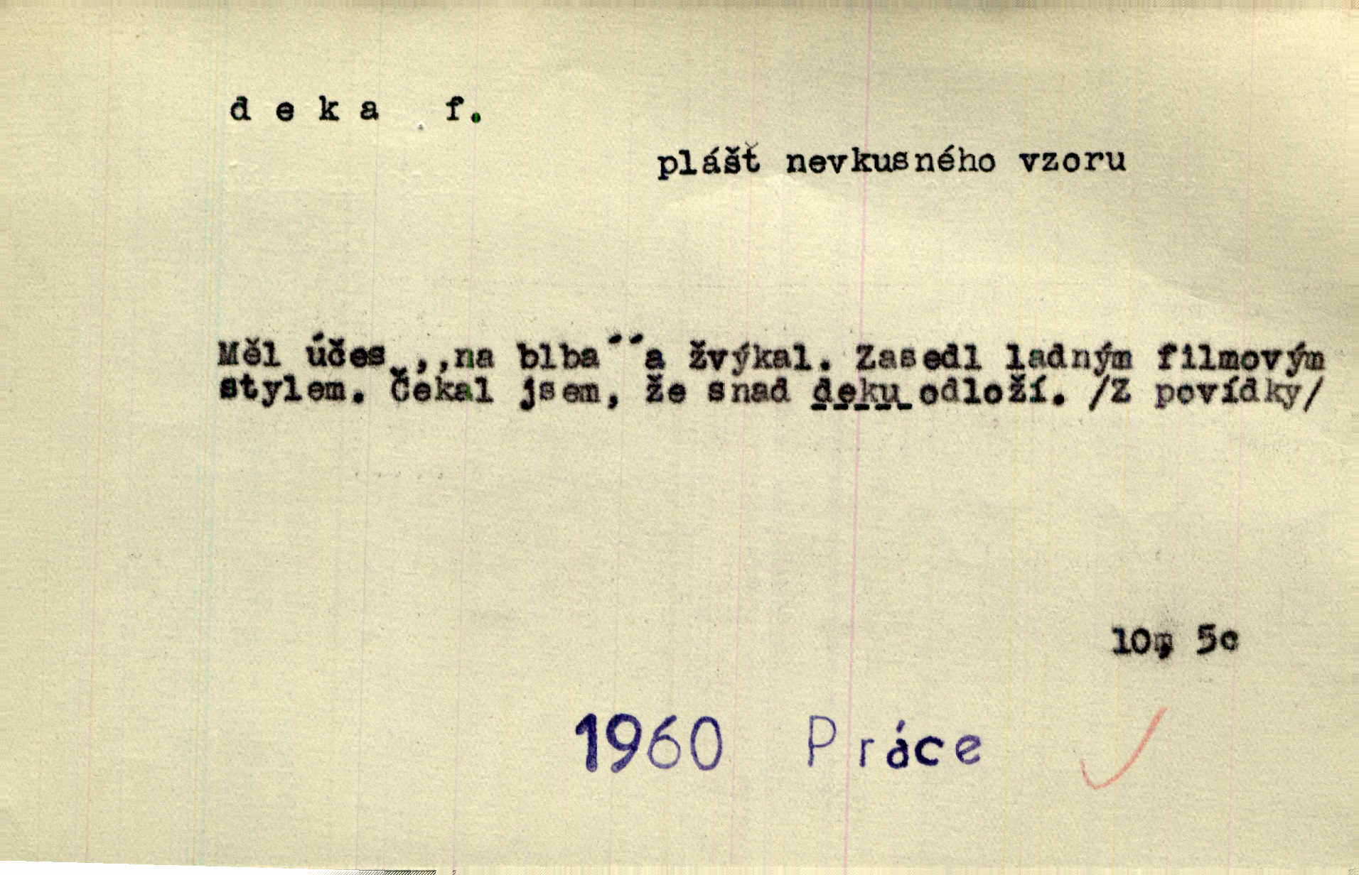 - deka, -y f. pokrývka, houně. U starostů mají ty deky [na nábytku] háčkované. Rais. Hodil starou deku na kobylu. Her. Vulg. Šli [studenti] na tah. Pravili: mazat deku hýřiti, flámovati. Nor. Vulg. To vypravování leze z vdovy jako z chlupaté deky. Poláč. Vyřídíme si [vojáci] to s tebou — deku dostaneš zabalí ho do deky a pak zmlátí. Šrám.