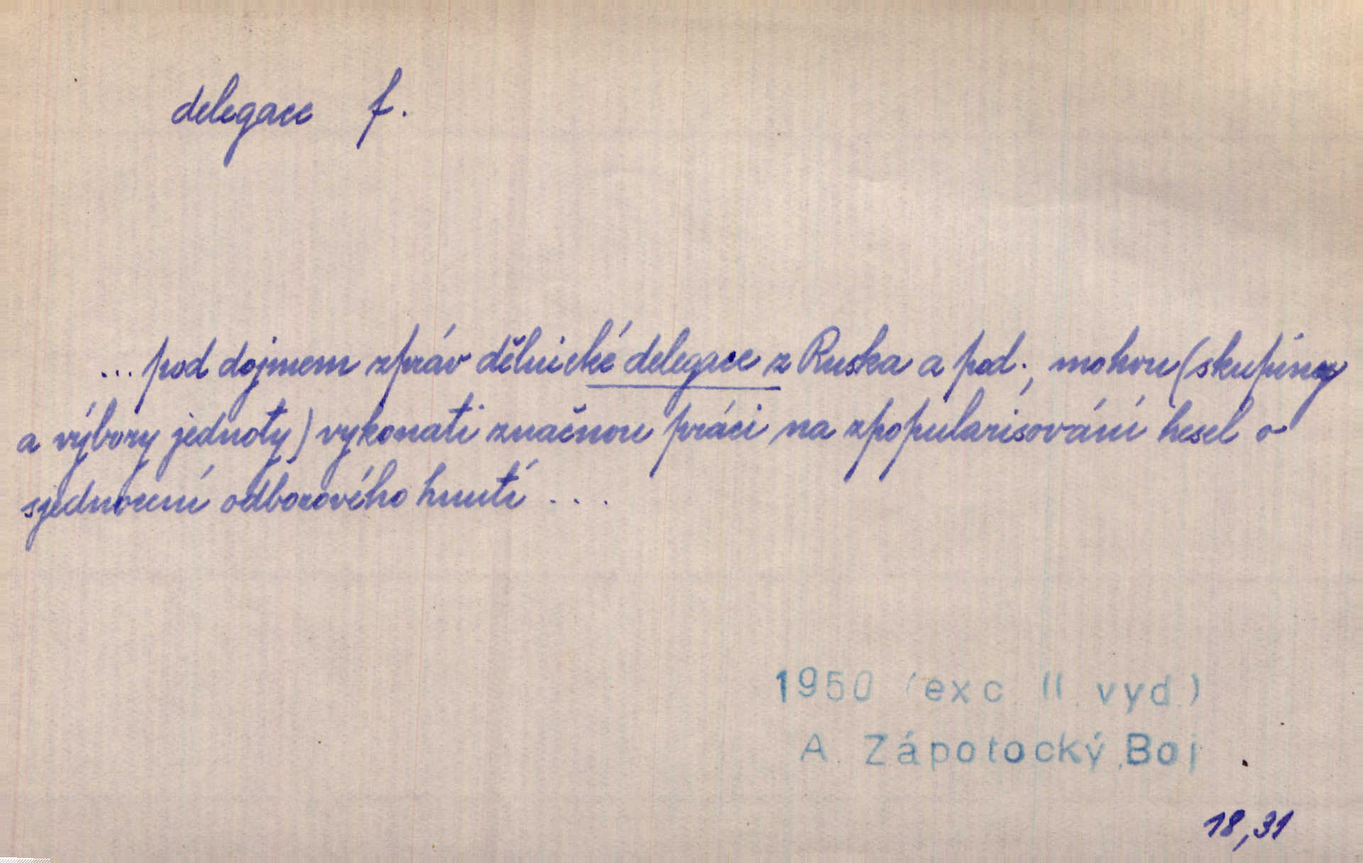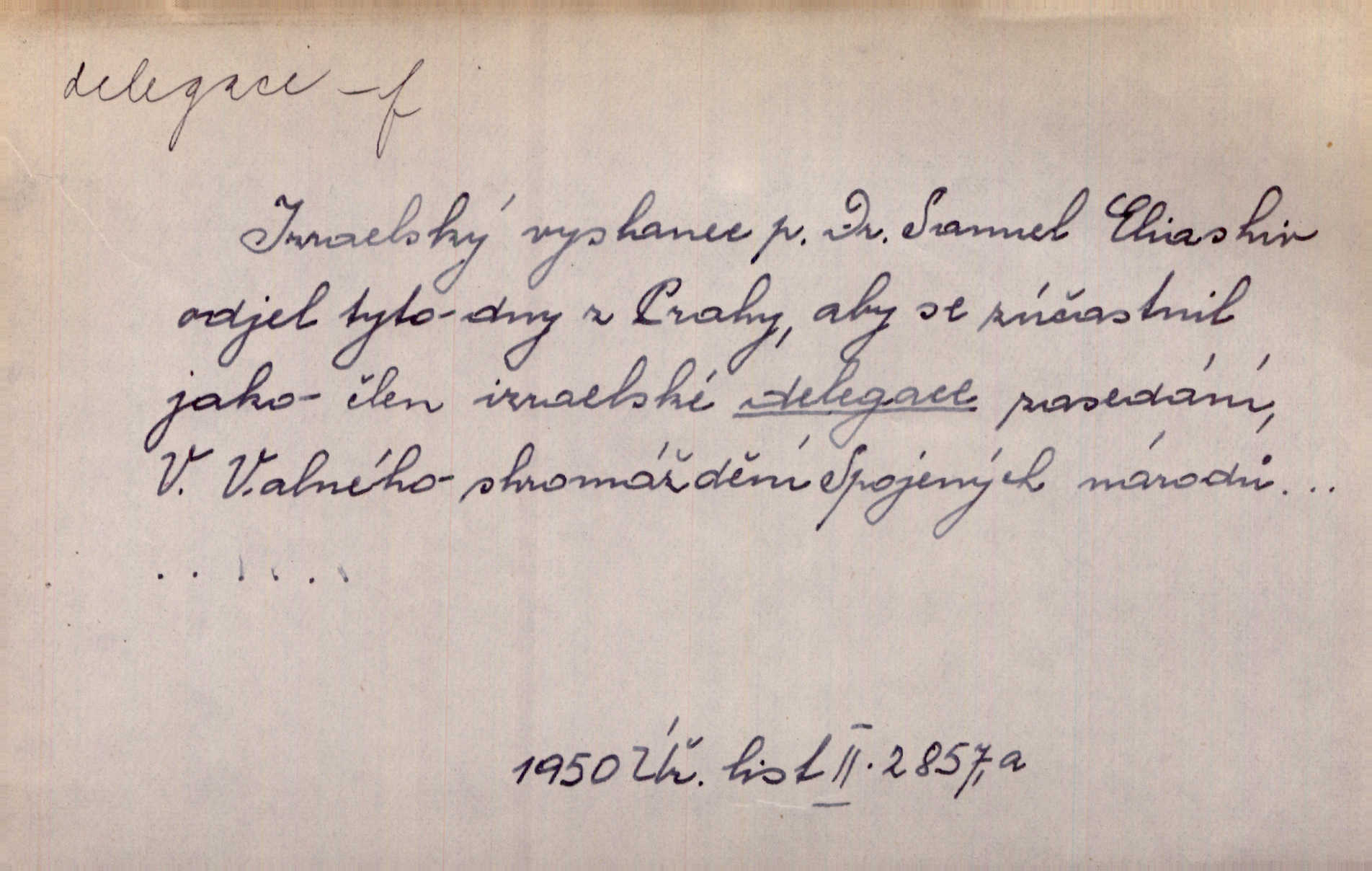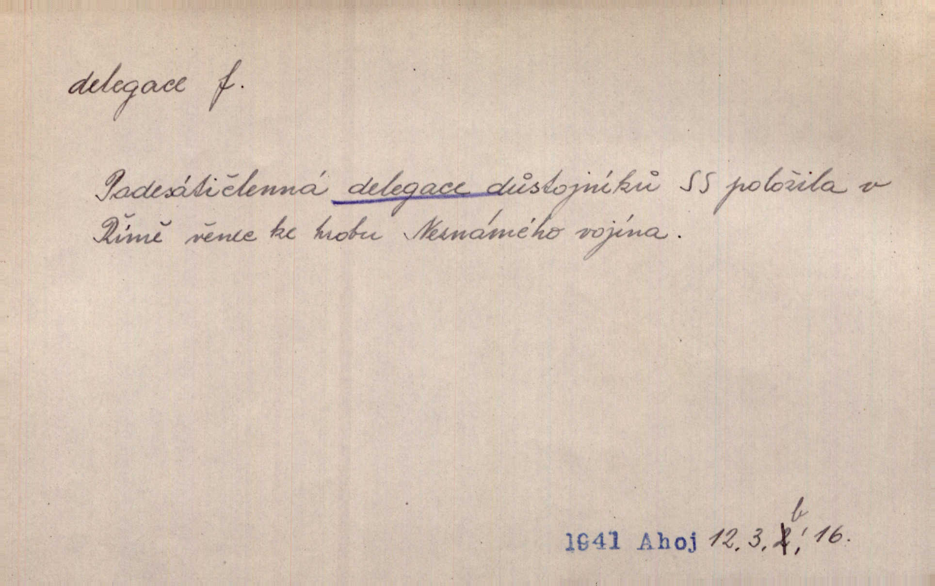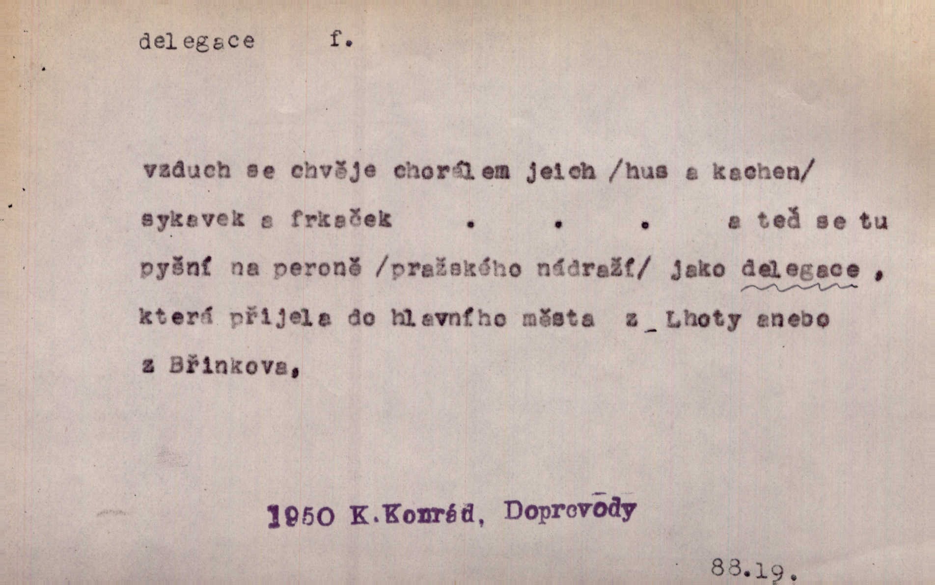 - delegace, -e f. zplnomocnění. Kompetence parlamentu plynou přímo z ústavy, nikoli z delegace jiného státního orgánu. Čes. pol. D zvolení zástupci, poselstvo. Česká delegace ve vídeňském parlamentě. Mach. Občané gubernie vilenské poslali delegaci k carovi. Krás. D společné zastupitelstvo z obou parlamentů v býv. Rakousko-Uhersku.