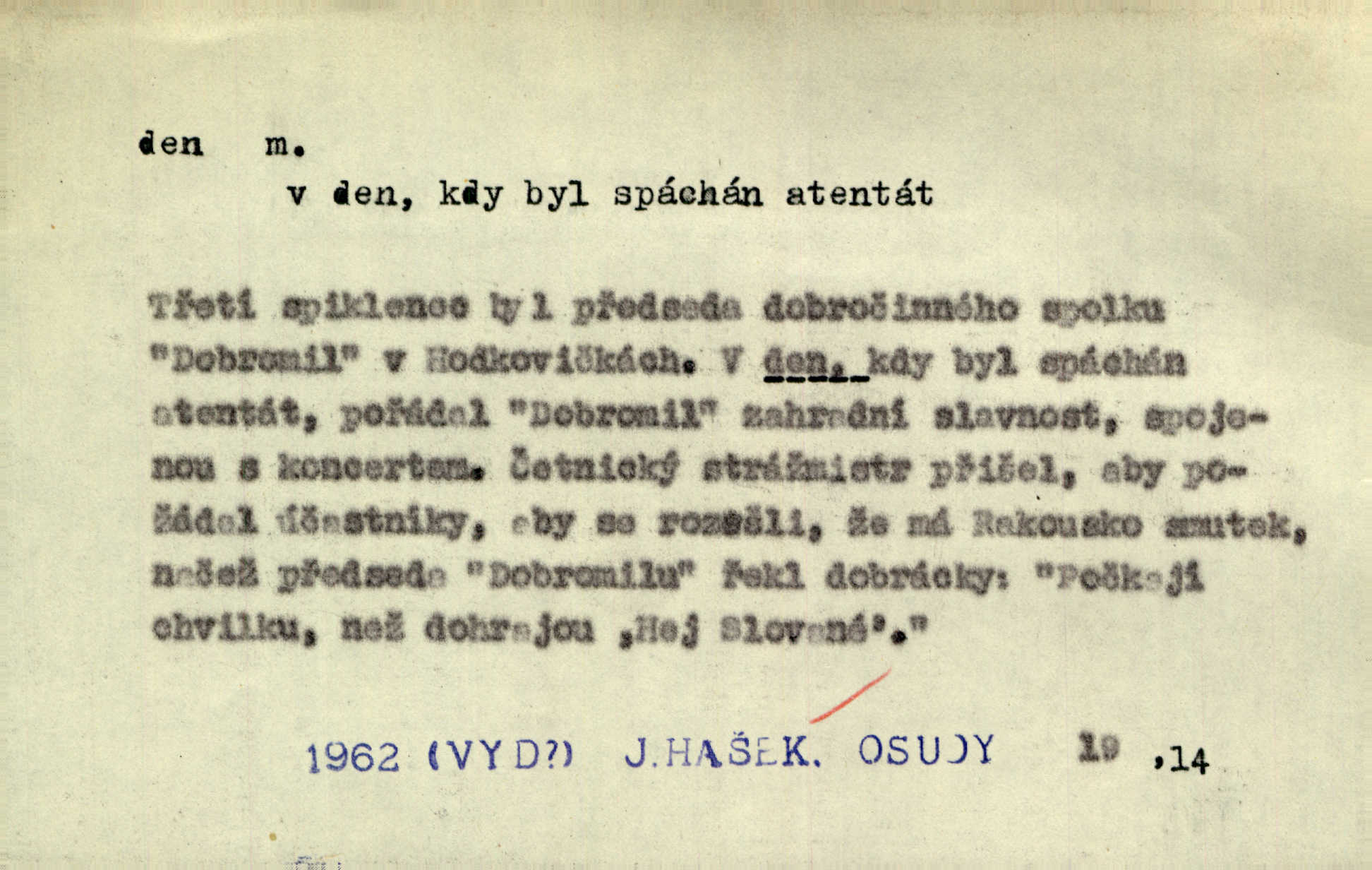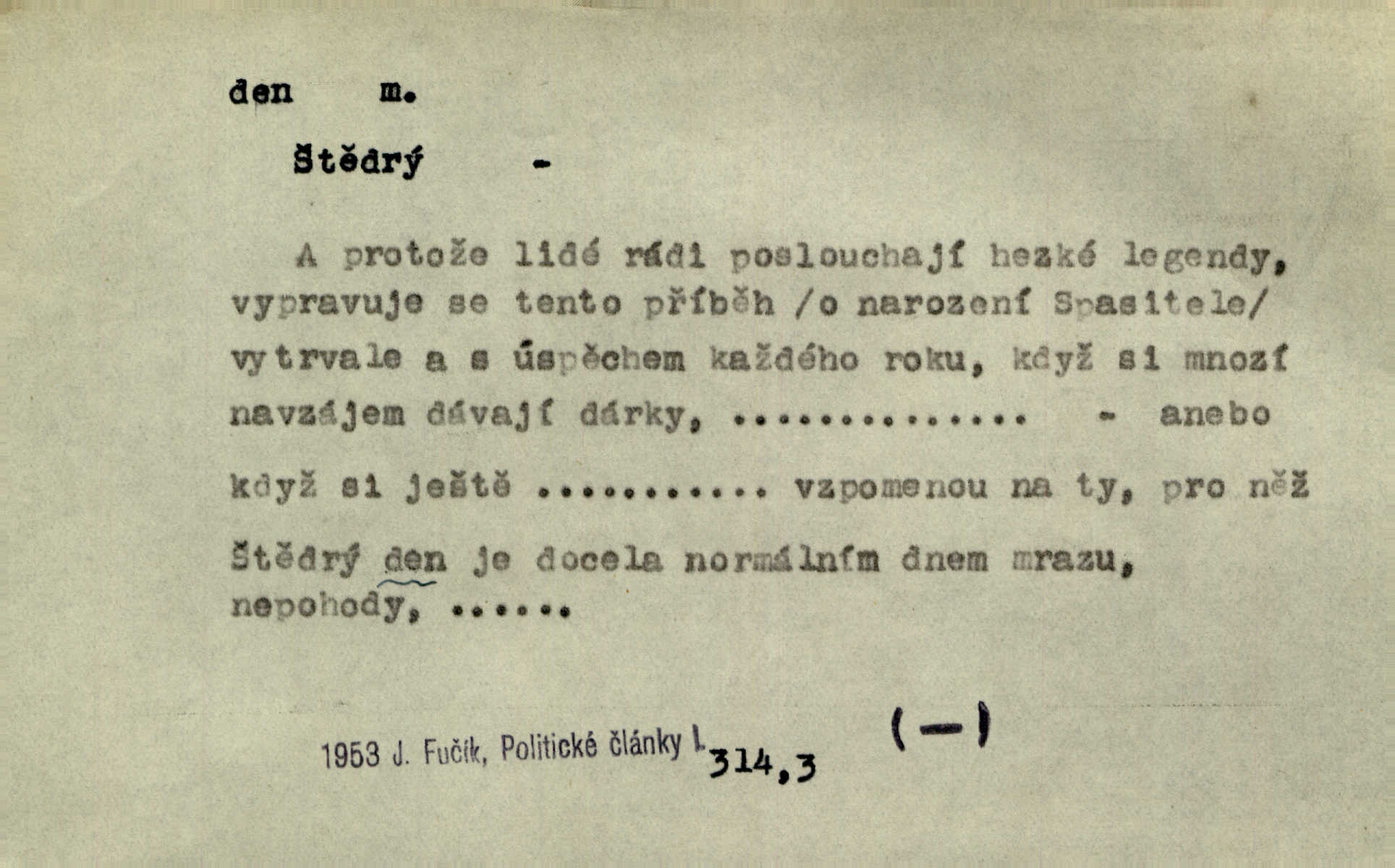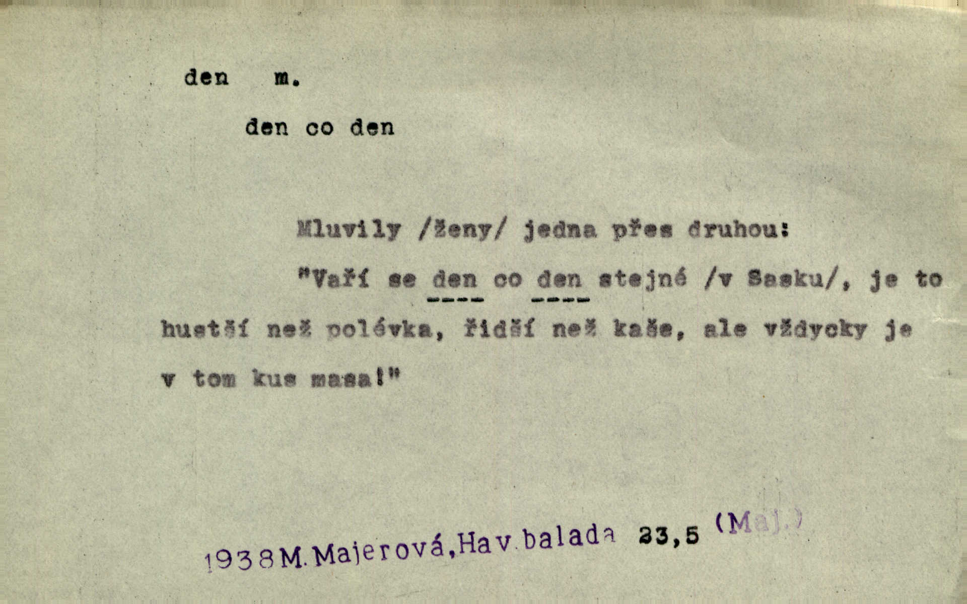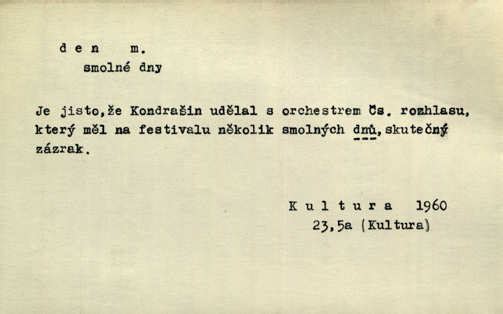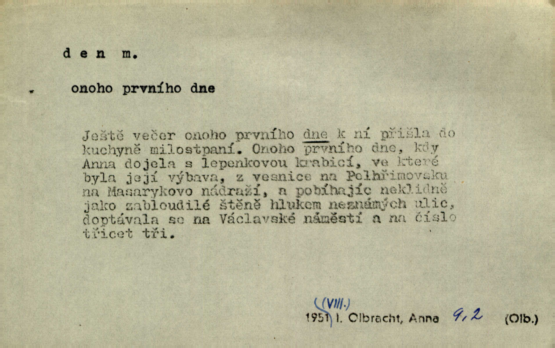 - den, dne m. (dat. lok. dni n. dnu, plur. nom. dni, dny, zř. dnové, gen. dní, dnů, ak. dni, dny) doba od východu do západu slunce; astron. doba 24 hodin. Dnem i nocí, ve dne v noci, ve dne i v noci stále. Den Páně neděle. Náb. soudný den poslední den světa. Štědrý den 24. prosince. Výroční den jubileum. Dobrovský slavil výroční den svého vstoupení v řád jezovitský. Šmil. Dobrý den! pozdrav. Dělati si, tropiti si z někoho dobrý den dobírati si koho, posmívati se komu. Míti svůj zlý den býti mrzut, rozladěn, rozhněván. Hledati včerejší den konati marnou práci. Býti na den pracovati za denní mzdu, býti nádeníkem. „Copak řve poklasný na nás — nejsme na den — máme od míry,“ zlobila se dělnice. Baar. Vulg. nejsem na den nedám si poroučet, se šikanovat. Žíti ze dne na den bez jistoty, co bude zítra. D čas, věk, život (zvl. bás.); často plur. Nač truchlit, nač se káti, dokud mladý svítí den? Šmil. Nemocnému, jehož den se sklání kams do propasti, třeba plnit přání. Klášt. Duše smířené se vším, co dává den. Klášt. Den zhas’ jim v jednom mžiku, v jednom bolu v ráj odletěly jejich duše spolu. Vrch. Jeho dny jsou sečteny je blízek smrti. Ach! nastali nám přežalostní dnové! Havl. Ideály našich dnů. Vše strádání a klopoty svých dnů on [Akiba] obětoval jedné myšlence. Vrch. D denní světlo. Jako skřivánci již přede dnem, když lidstvo ještě sklíčeno zlým snem, s červánky mladě ku nebi se nesem. Ner. Den stromů korunou se tmí a šeří. Vrch. Syn Markétky a Fausta v žaláři uzřel den narodil se. Vrch. Arch. Však se horní čeleď neopováží, aby svůj nářek z temných dolů na den pustila. Tyl. Býti, ležeti na bíle dni býti každému zřejmý.