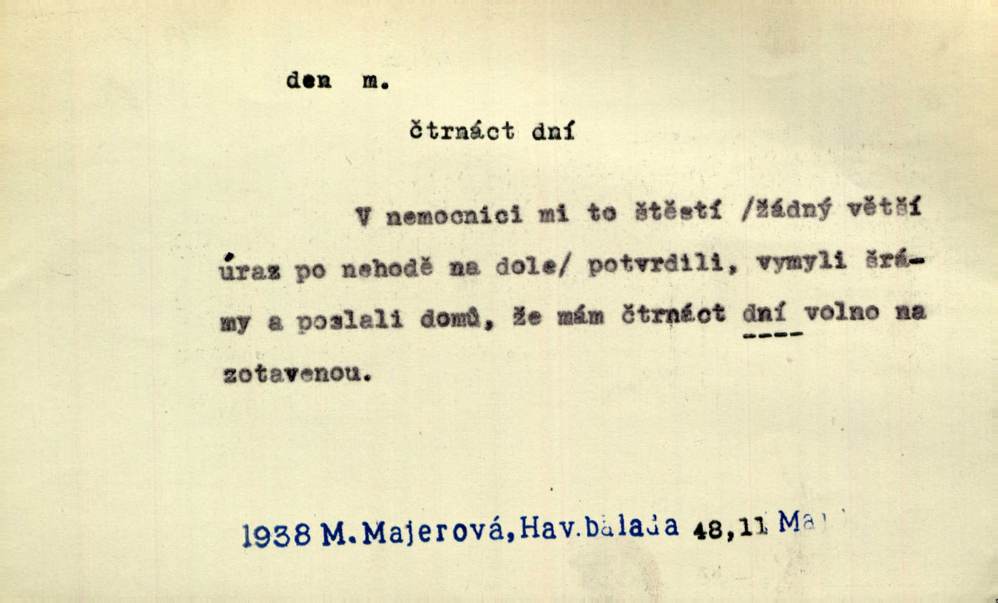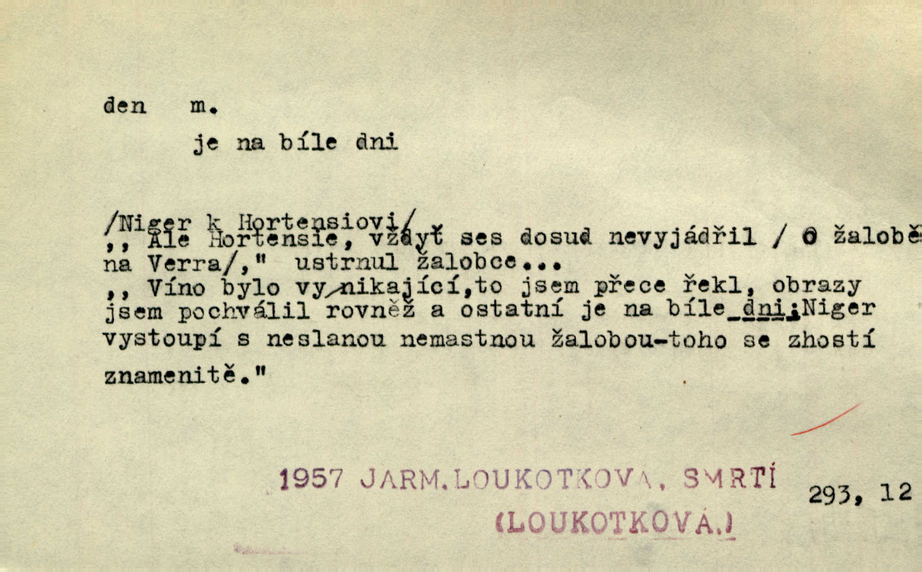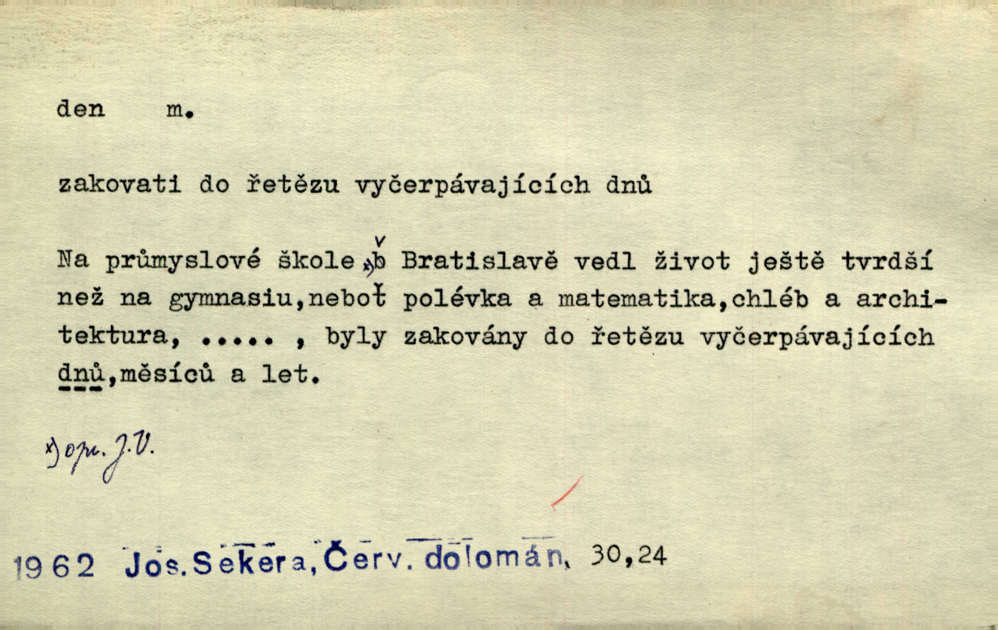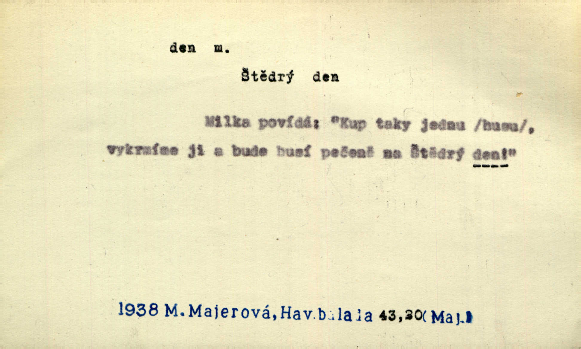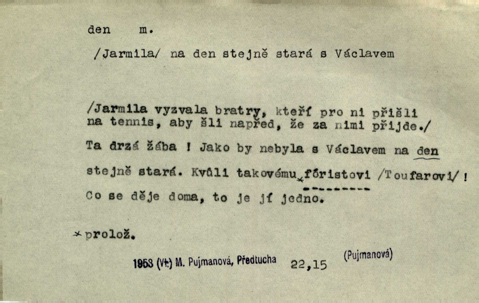 - den, dne m. (dat. lok. dni n. dnu, plur. nom. dni, dny, zř. dnové, gen. dní, dnů, ak. dni, dny) doba od východu do západu slunce; astron. doba 24 hodin. Dnem i nocí, ve dne v noci, ve dne i v noci stále. Den Páně neděle. Náb. soudný den poslední den světa. Štědrý den 24. prosince. Výroční den jubileum. Dobrovský slavil výroční den svého vstoupení v řád jezovitský. Šmil. Dobrý den! pozdrav. Dělati si, tropiti si z někoho dobrý den dobírati si koho, posmívati se komu. Míti svůj zlý den býti mrzut, rozladěn, rozhněván. Hledati včerejší den konati marnou práci. Býti na den pracovati za denní mzdu, býti nádeníkem. „Copak řve poklasný na nás — nejsme na den — máme od míry,“ zlobila se dělnice. Baar. Vulg. nejsem na den nedám si poroučet, se šikanovat. Žíti ze dne na den bez jistoty, co bude zítra. D čas, věk, život (zvl. bás.); často plur. Nač truchlit, nač se káti, dokud mladý svítí den? Šmil. Nemocnému, jehož den se sklání kams do propasti, třeba plnit přání. Klášt. Duše smířené se vším, co dává den. Klášt. Den zhas’ jim v jednom mžiku, v jednom bolu v ráj odletěly jejich duše spolu. Vrch. Jeho dny jsou sečteny je blízek smrti. Ach! nastali nám přežalostní dnové! Havl. Ideály našich dnů. Vše strádání a klopoty svých dnů on [Akiba] obětoval jedné myšlence. Vrch. D denní světlo. Jako skřivánci již přede dnem, když lidstvo ještě sklíčeno zlým snem, s červánky mladě ku nebi se nesem. Ner. Den stromů korunou se tmí a šeří. Vrch. Syn Markétky a Fausta v žaláři uzřel den narodil se. Vrch. Arch. Však se horní čeleď neopováží, aby svůj nářek z temných dolů na den pustila. Tyl. Býti, ležeti na bíle dni býti každému zřejmý.