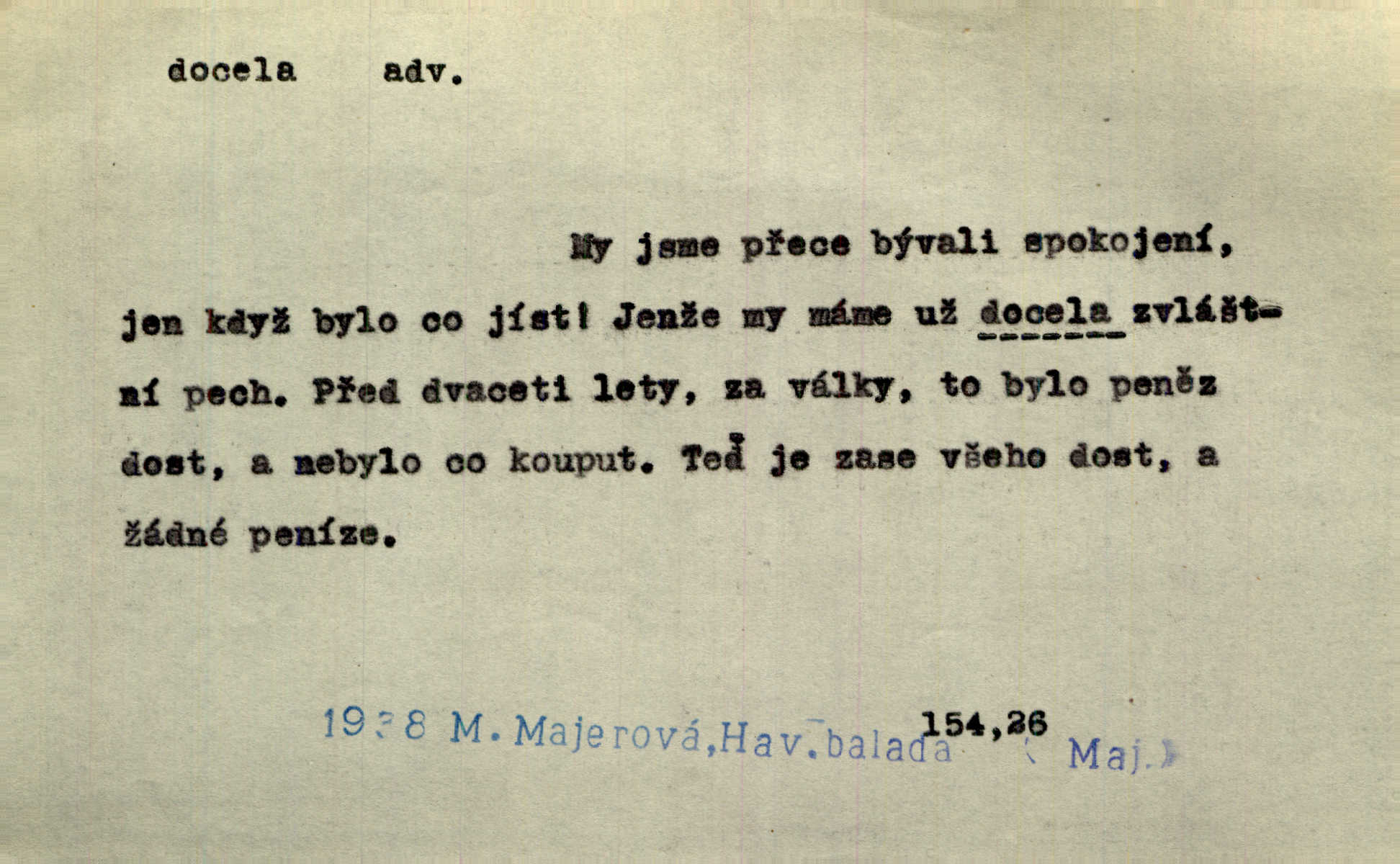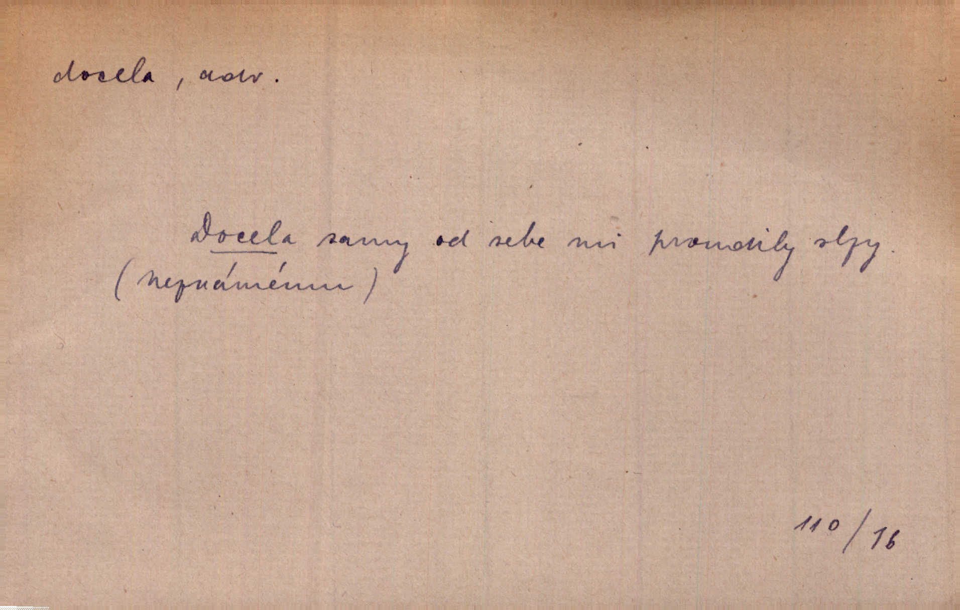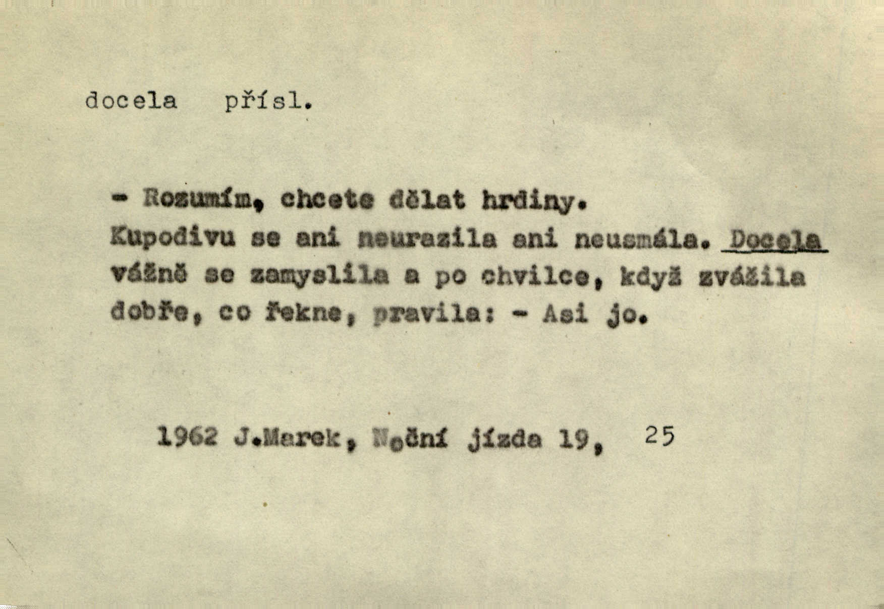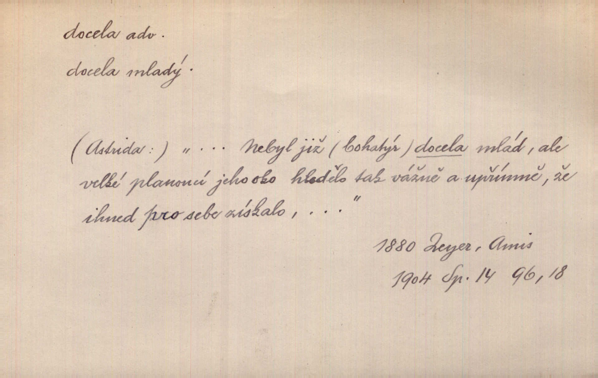 - docela adv. úplně, nadobro. Probošt, pootevřev okenici, čekal, pak odstrčil okenici docela. Jir. Lampa, co temně hořela, prskla a zhasla docela. Erb. Mimo polohu na stráni nebylo na dědině docela nic zvláštního. Herb. Takové dámy jsou zvyklé na něco docela jiného. Rais. D vyjadřuje stupňování. Proskakovalo tu a tam, že byl [pan domácí] taky kdysi ženat, někdo tvrdil docela, že dvakráte dokonce. Kun. Zeisl, aby už docela zde neseděl jako kluk, zapálil si doutník. V. Mrš.