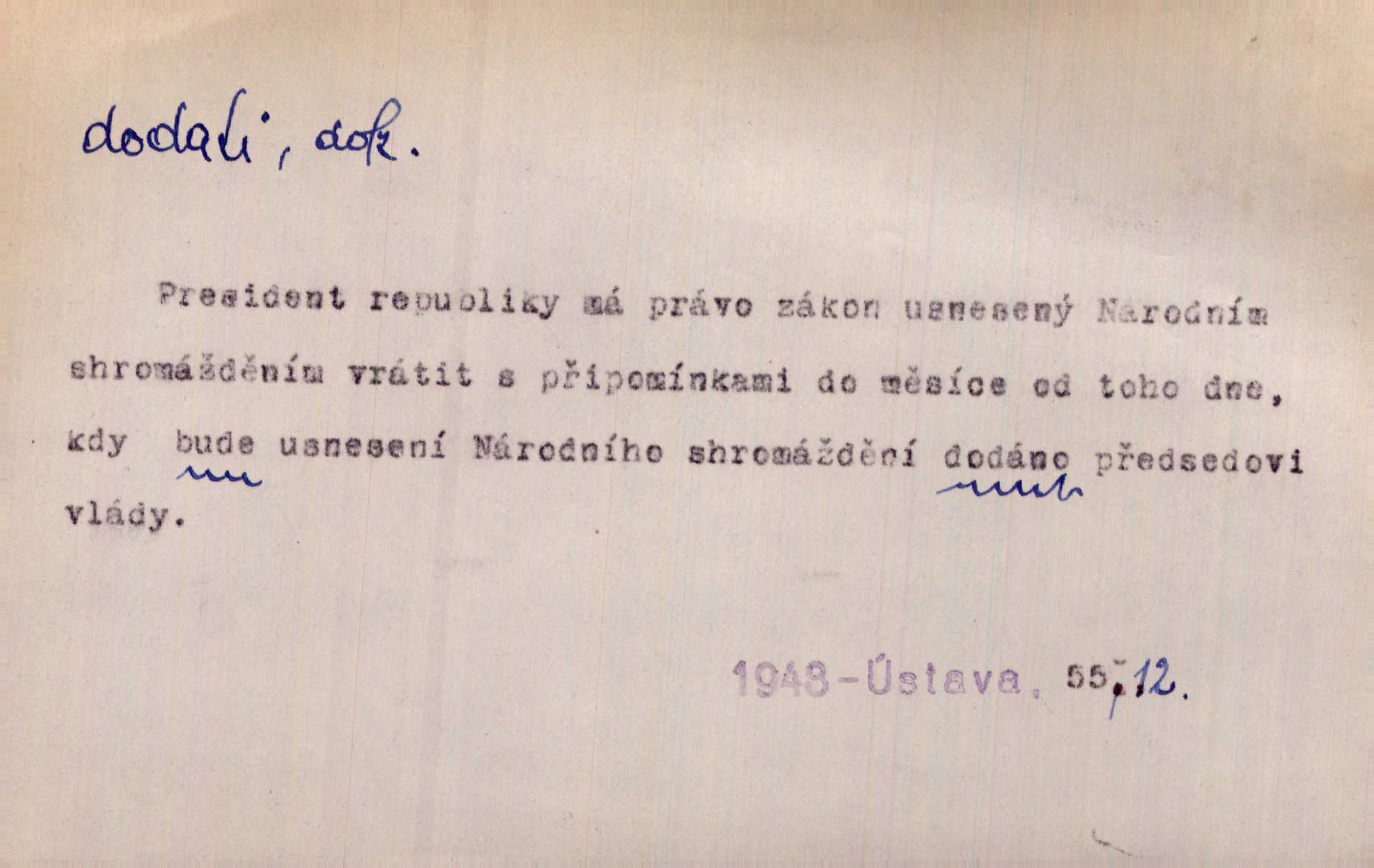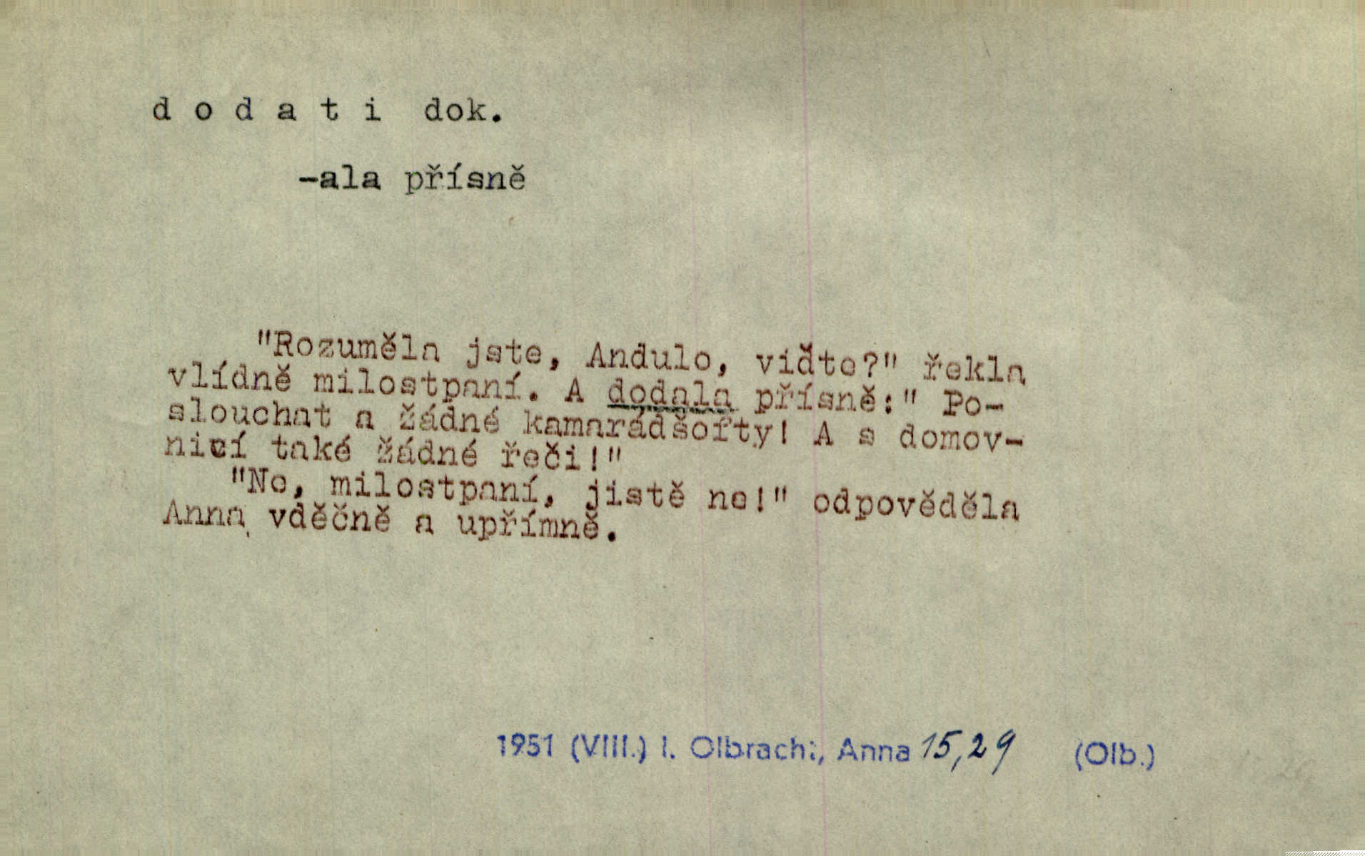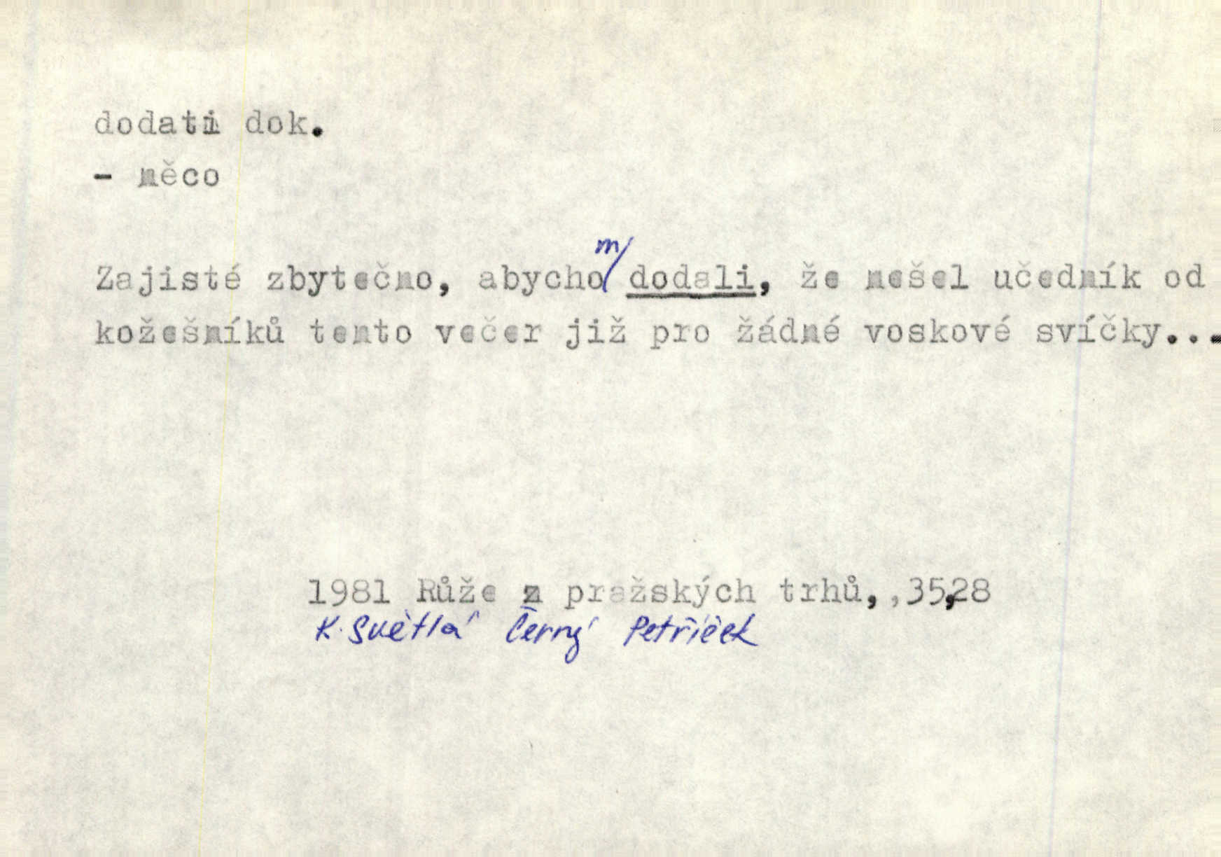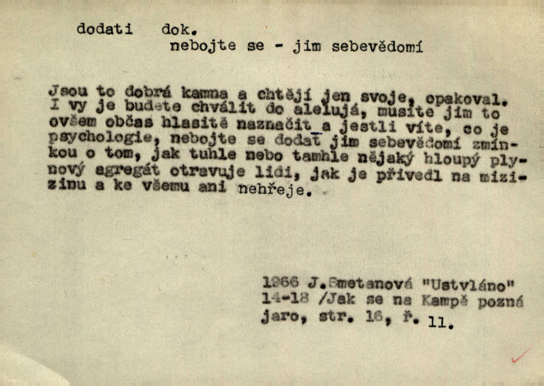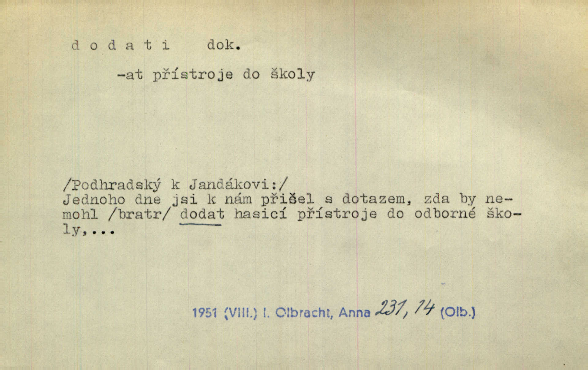 - dodati dok. (přech. přít. dodaje) (něco) přidati, připojiti. Knihu ještě příručnější činí dodané rejstříky. Ath. Ale hospodář je dobrý, dodal pán. Herb. To jsem řekl a Toník dodal, že bez Pavly sem taky nepůjde! Rais. D (v kartách) naposledy dáti. Bylo rázem půl desáté, když Havlíček prohlásil „hráč dodá“. V. Mrš. Obch. dodati na něco vrátiti drobnější peníze na větší. Úředník na zlatku dodal mu čtyřicet čtyři krejcary. Kam. D (někomu něčeho, zř. něco) rozmnožiti, zvětšiti, zesíliti. Ta slova jim dodala chuti. Něm. Dodal si smělosti. Prav. Dobytý úspěch dodal královským odvahu. Jir. D přitížiti, doraziti. Nachladil se, rozčilil, pak zpráva o smrti pána jeho a přítele mu dodala — leží. Jir. Jindy tam bývalo vozů jako ve vojanském táboře; železné dráhy však dodaly formanům a hospodám. Kosm. D (komu co) odevzdati, přinésti, přivézti, poskytnouti. Černoušek dodal Jelence lístek. Třeb. Budeme přejímat objednané potraviny. Hokynář je právě dodal. Mach. Rychtář dostal nařízení, aby Felcmana zatkl a na zámek dodal. Jir. Panství bylo zavázáno tolik a tolik vojáků dodati. Herb. Pošt. dodati (dodání) odevzdati adresátovi zásilku v místnostech úřadu (op. doručiti = odevzdati adresátovi do bytu). D dodati se dosti dáti. Děravého pytle nenaplníš a lakomci se nedodáš. Čel.