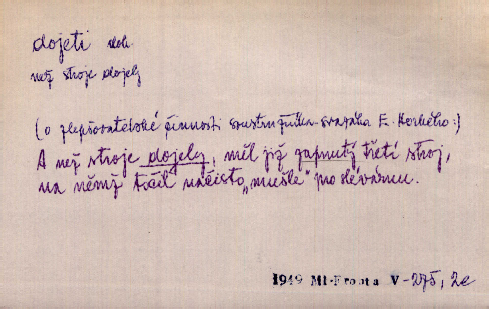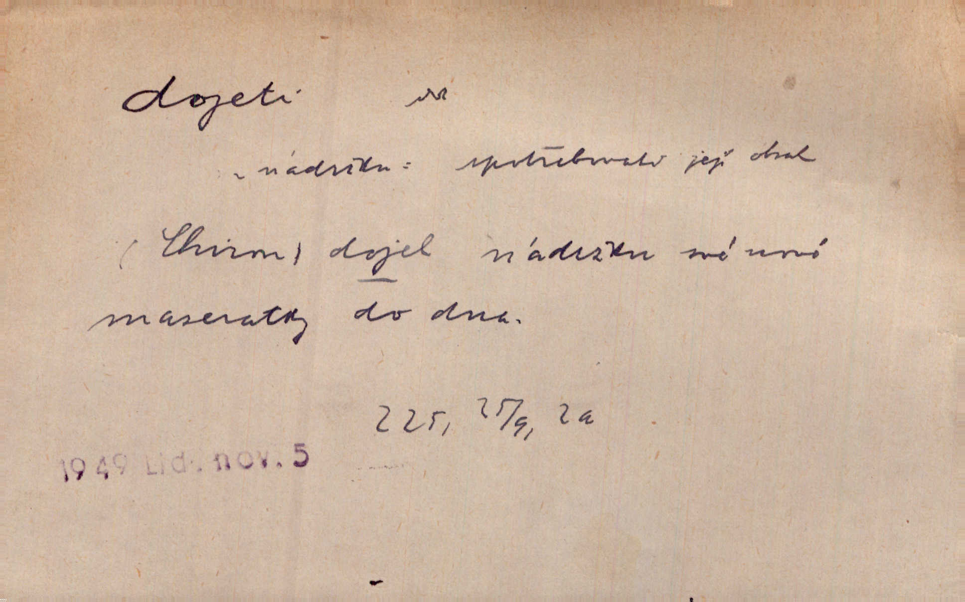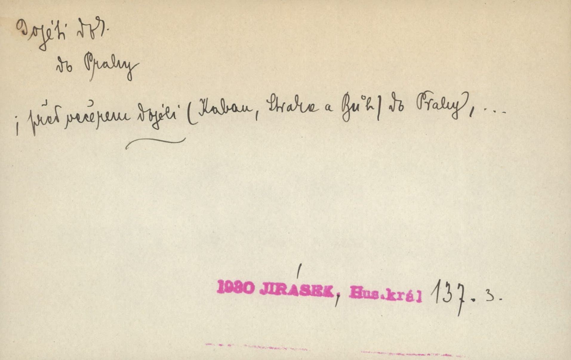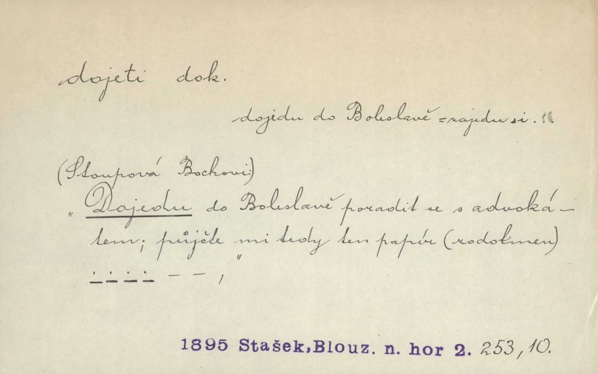 - dojeti dok. (kam) jízdou se dostati, doraziti, zajeti si. „Zdrávi dojeli“ přál kočímu. Baar. Před večerem dojeli do Prahy. Jir. D (čeho) jízdou dostihnouti. Než dojel dvora, umlkl zvon. Zey. Brzy pak dojeli jsme dědiny. Uh. Však dojede-li [loď] šťastně cíle? Heyd. Při předmětu osobním bývá častěji akus. než gen. jízdou dohoniti někoho. [Hájkovi] dojeli na cestě chudé pocestné nebo dokonce děti, které šly do Vídně na učení. Něm. Poručil Jankovi, aby jel zvolna, že on, panic, je dojede. Jir. Kavalíři jí [jezdkyně] dojeli, starostlivě ji obklopujíce, zdali nepřišla k úrazu. Svět.