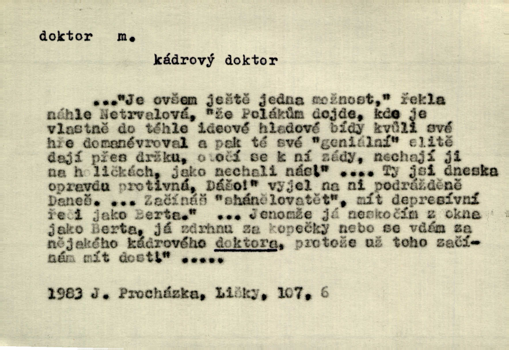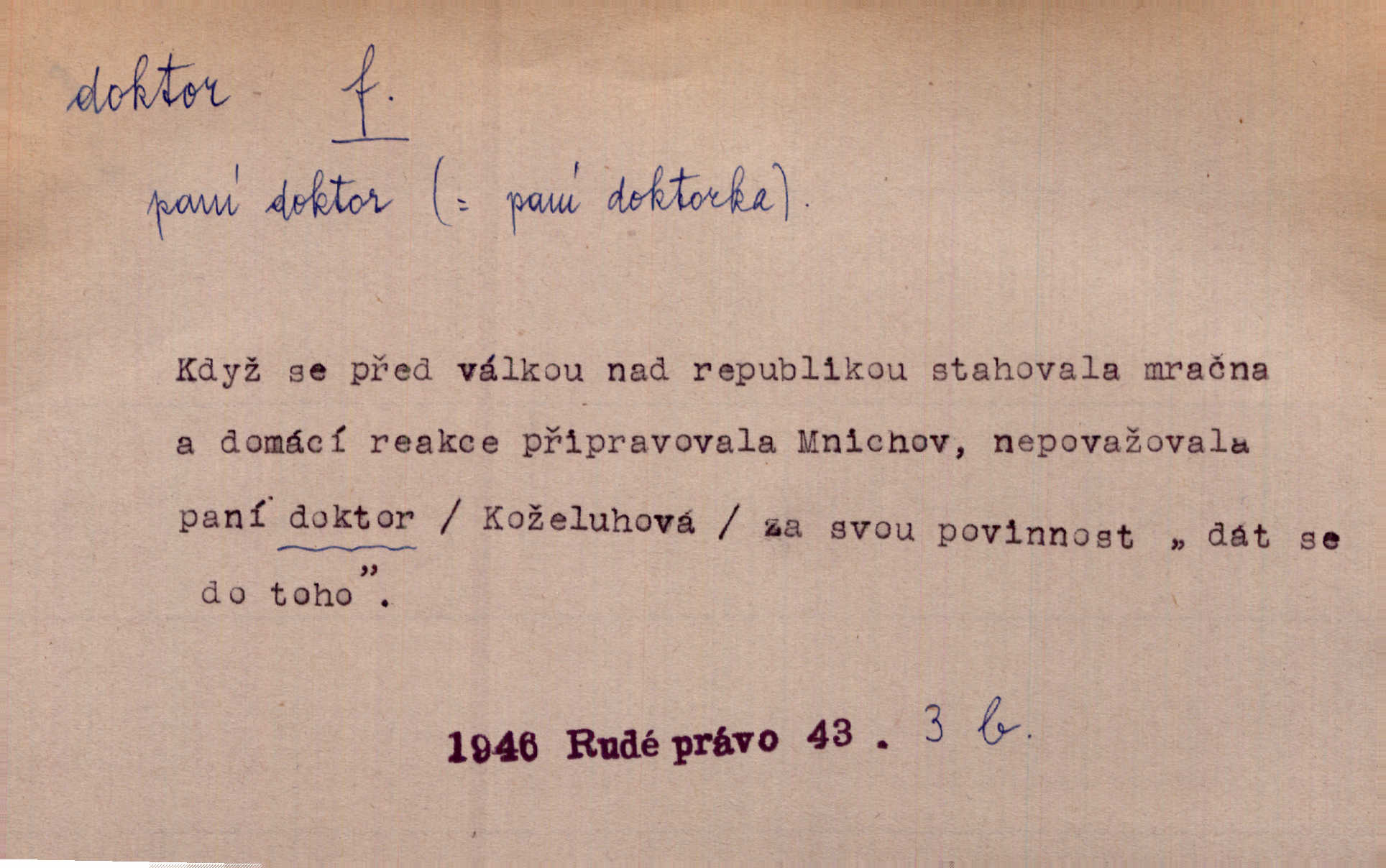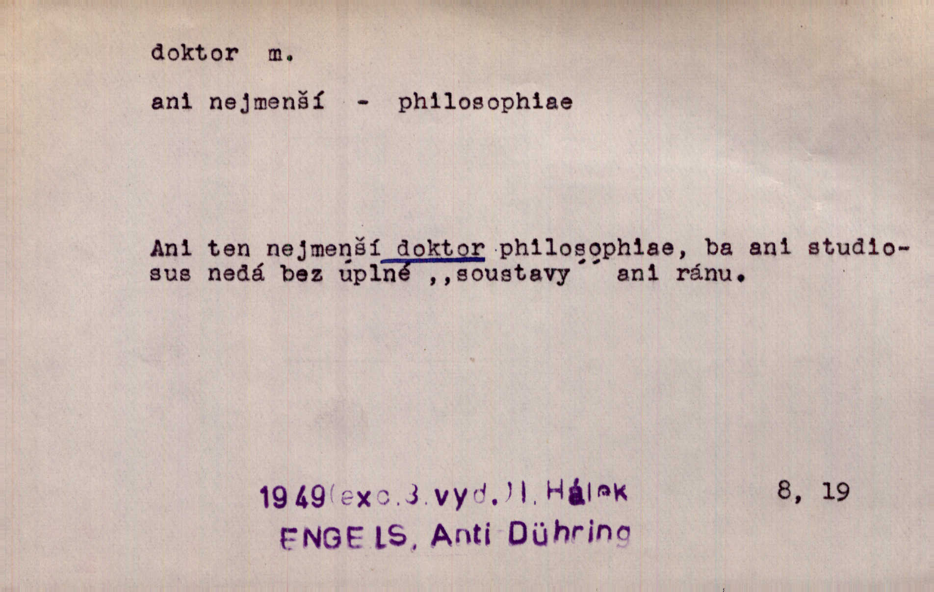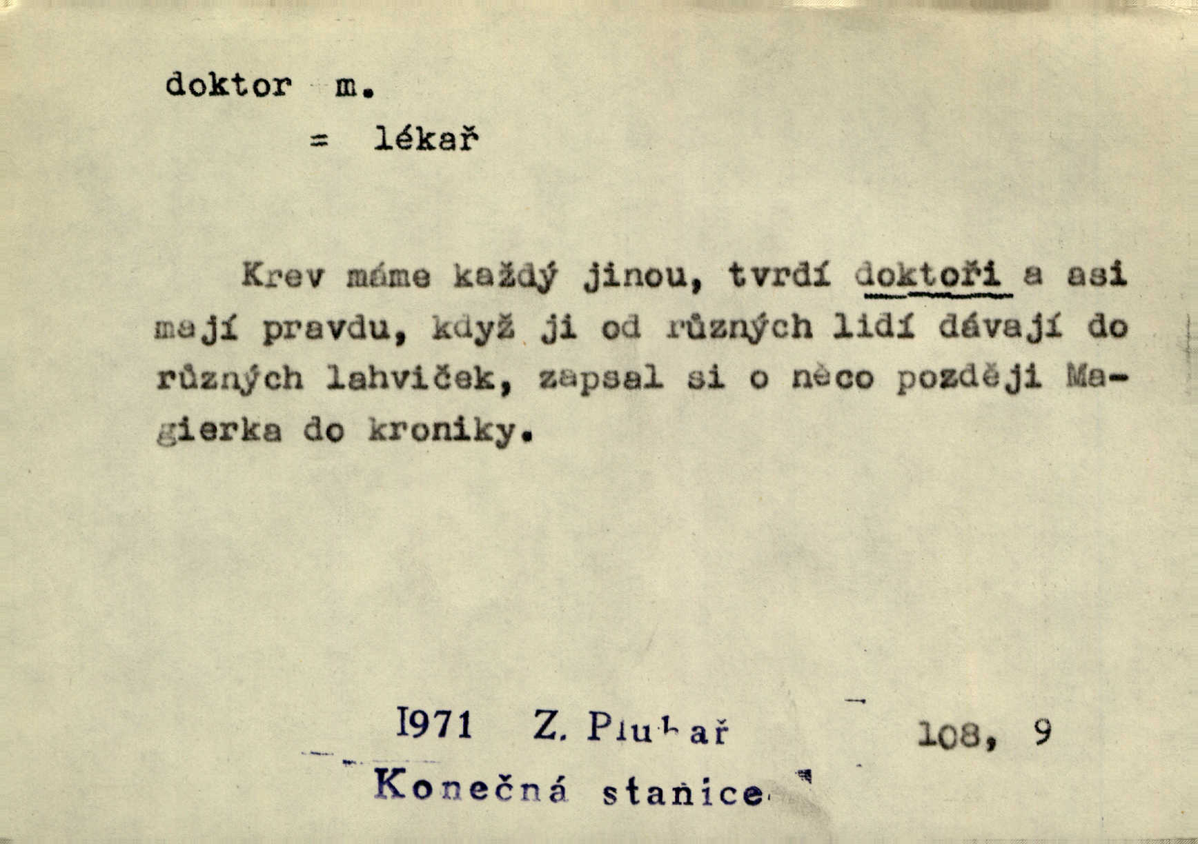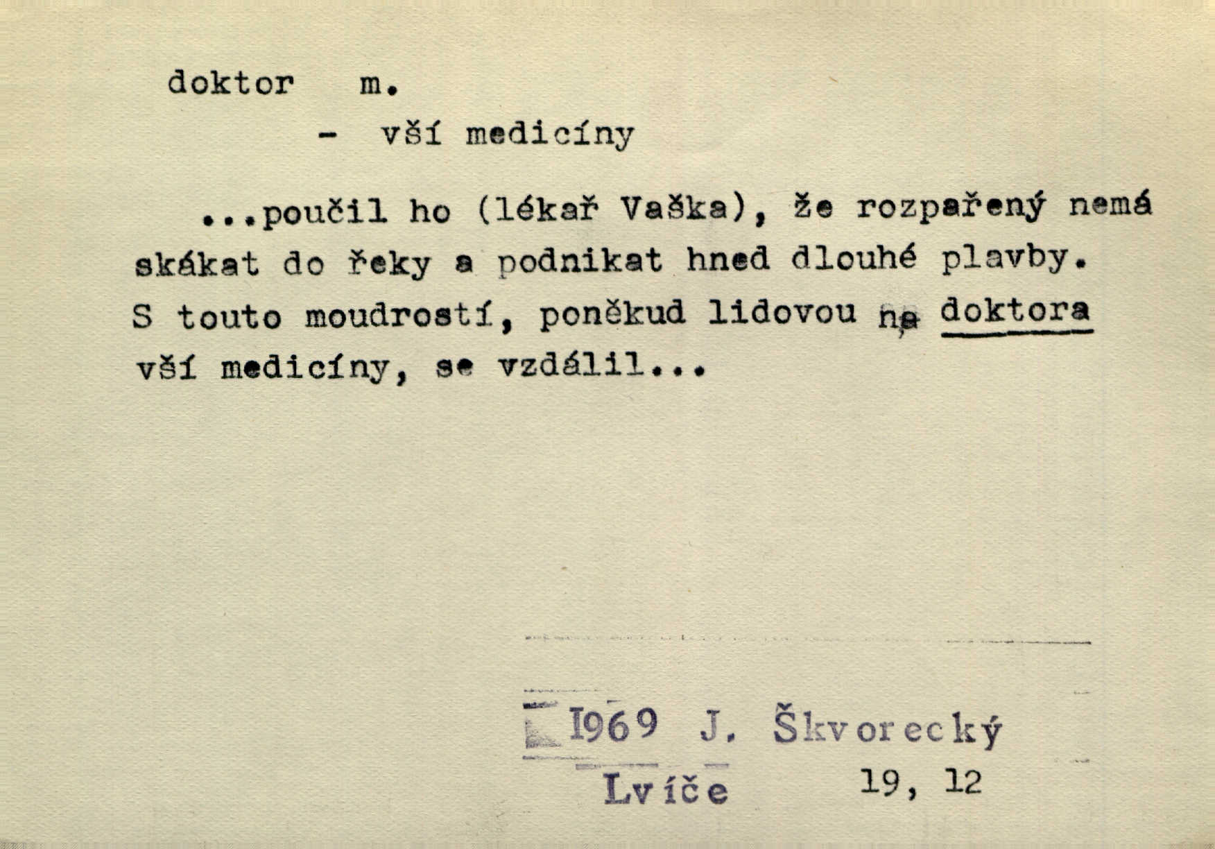 - doktor, -a (vok. doktore, pl. doktoři) m. titul dosažený přísnými zkouškami na vysoké škole. Doktor theologie, práv, veškerého lékařství, filosofie, přírodních věd, zvěrolékařství, věd technických, báňských. Čestný doktor majitel titulu, jímž vysoké školy poctívají jedince zasloužilé o vědu, umění n. stát. Lid. Moudrostí hází každej a učeností, jako by byl ňákej dochtor nebo profesor. Klost. Někomu dělati doktora hájiti někoho. D Lid. lékař. Rozuměla nemocem jako doktor. Rais. Nebyly některé rady té babičky s tolika pověrami smíšené, jakých obyčejně takoví doktoři užívají. Něm.