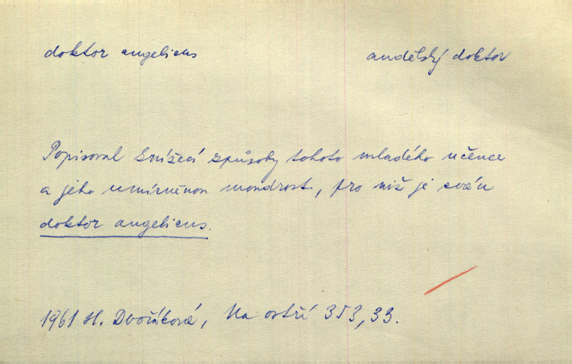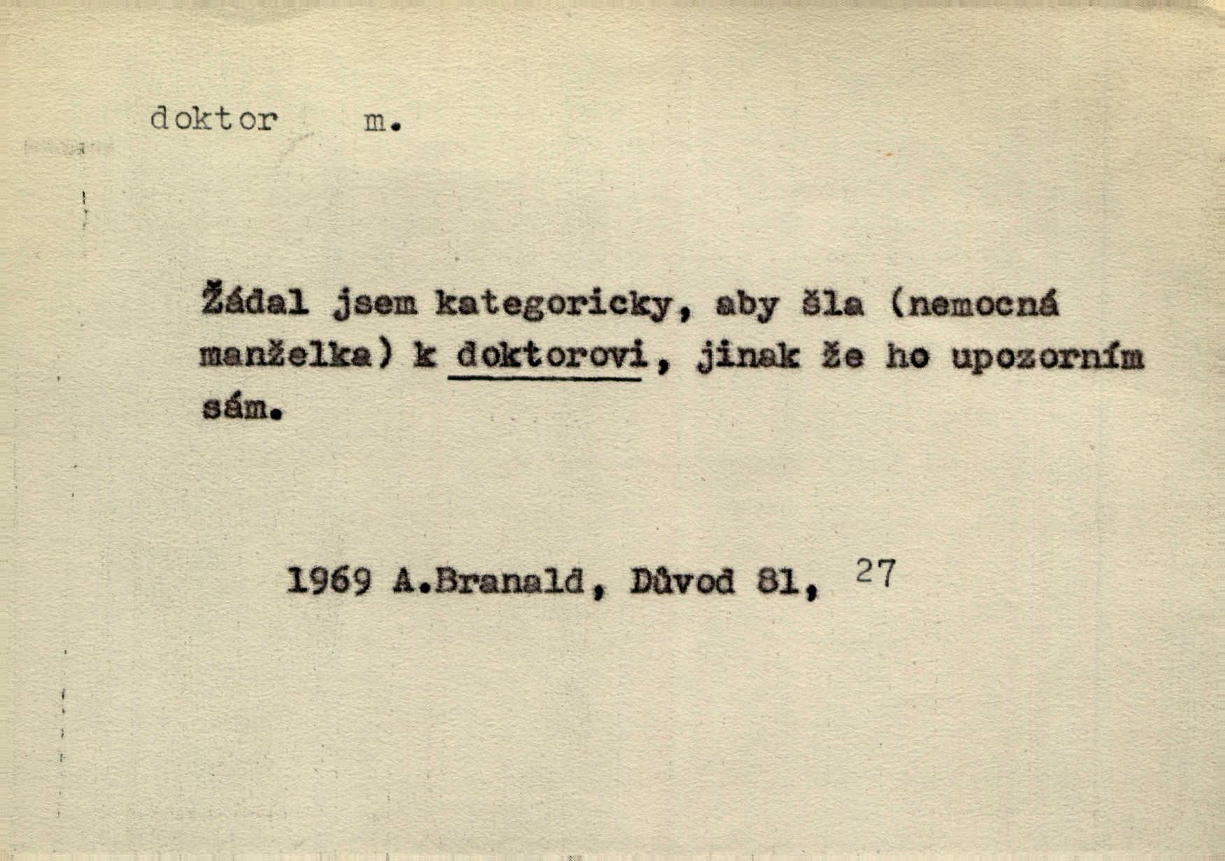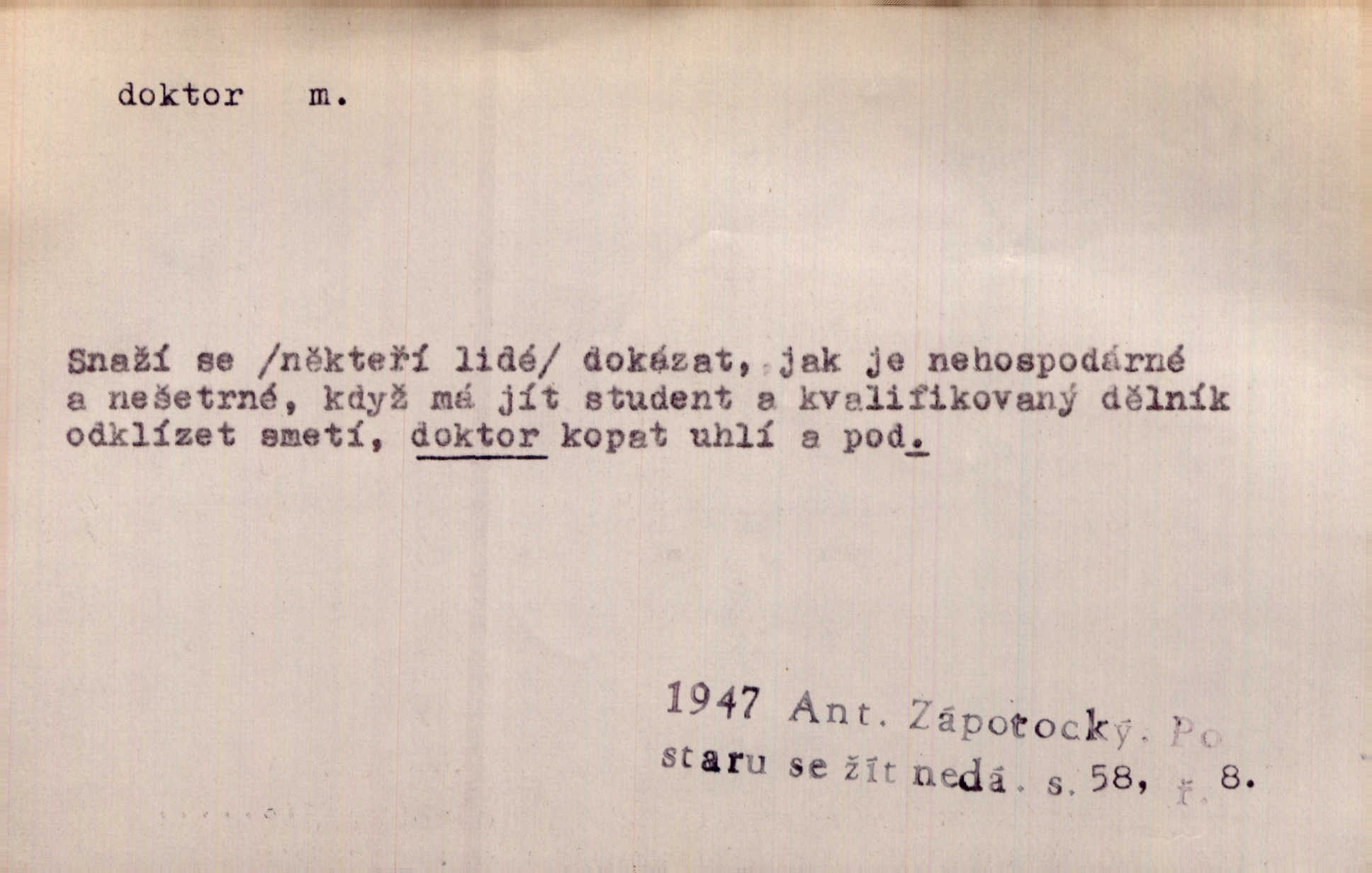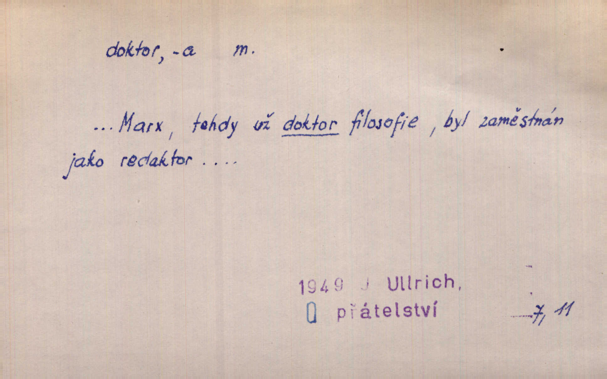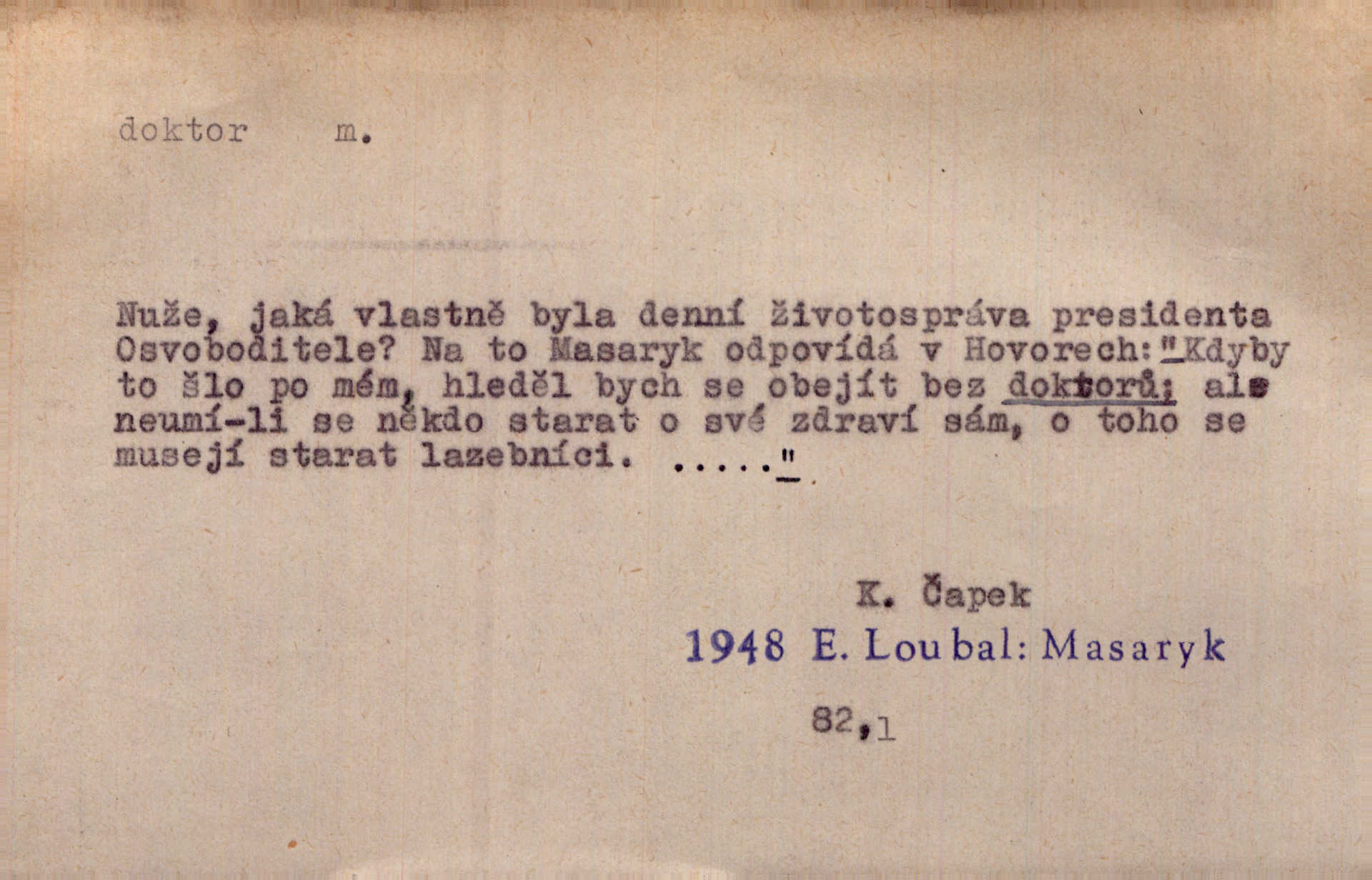 - doktor, -a (vok. doktore, pl. doktoři) m. titul dosažený přísnými zkouškami na vysoké škole. Doktor theologie, práv, veškerého lékařství, filosofie, přírodních věd, zvěrolékařství, věd technických, báňských. Čestný doktor majitel titulu, jímž vysoké školy poctívají jedince zasloužilé o vědu, umění n. stát. Lid. Moudrostí hází každej a učeností, jako by byl ňákej dochtor nebo profesor. Klost. Někomu dělati doktora hájiti někoho. D Lid. lékař. Rozuměla nemocem jako doktor. Rais. Nebyly některé rady té babičky s tolika pověrami smíšené, jakých obyčejně takoví doktoři užívají. Něm.