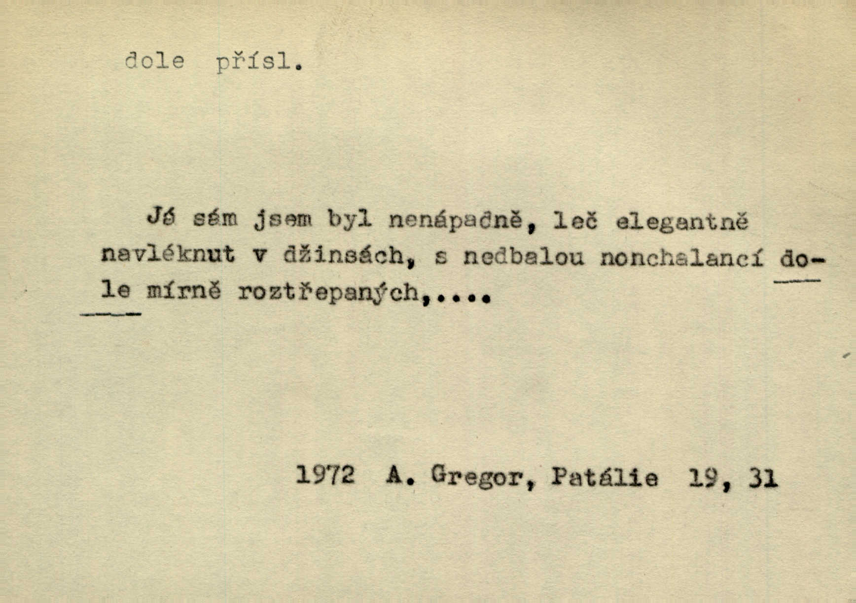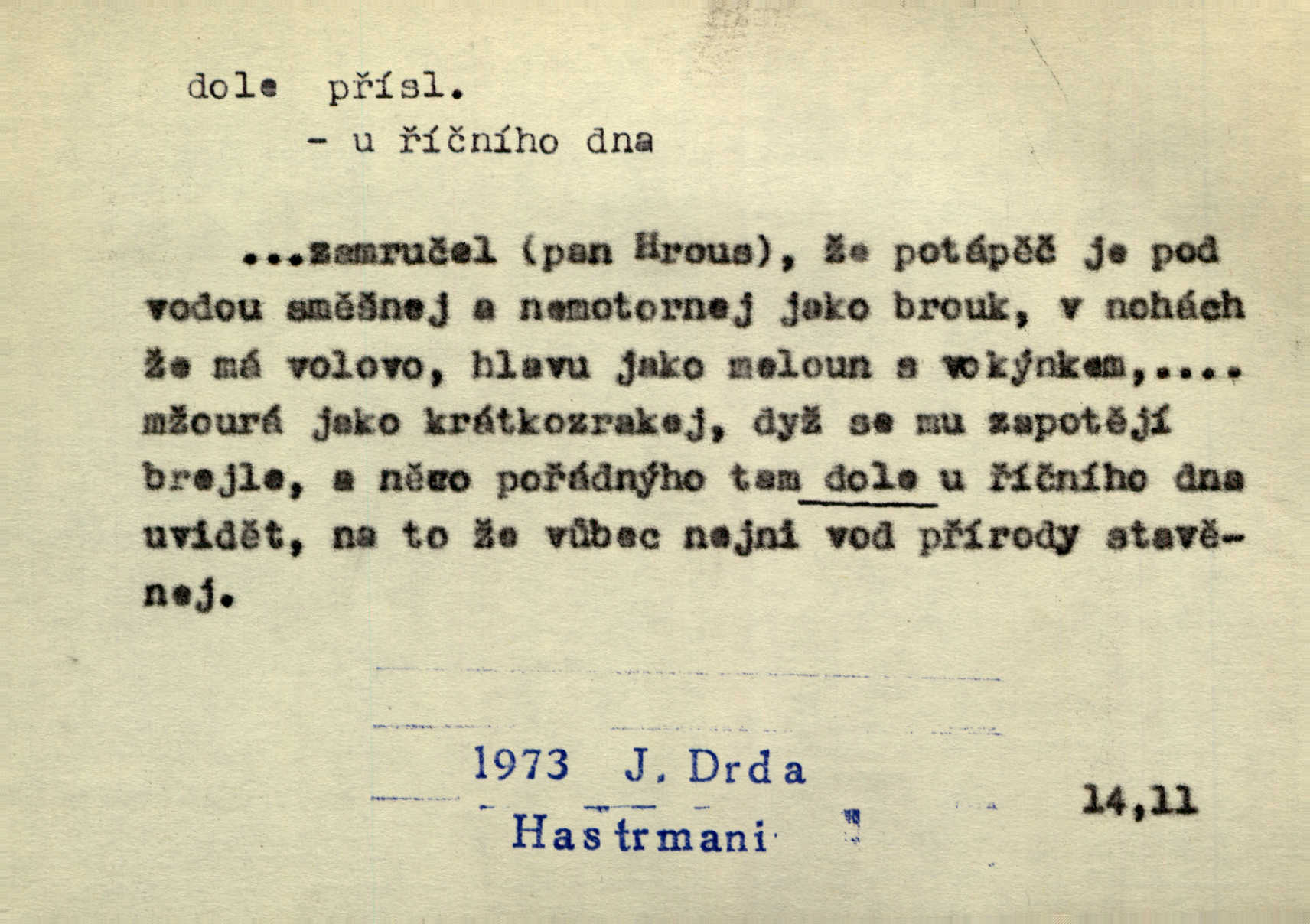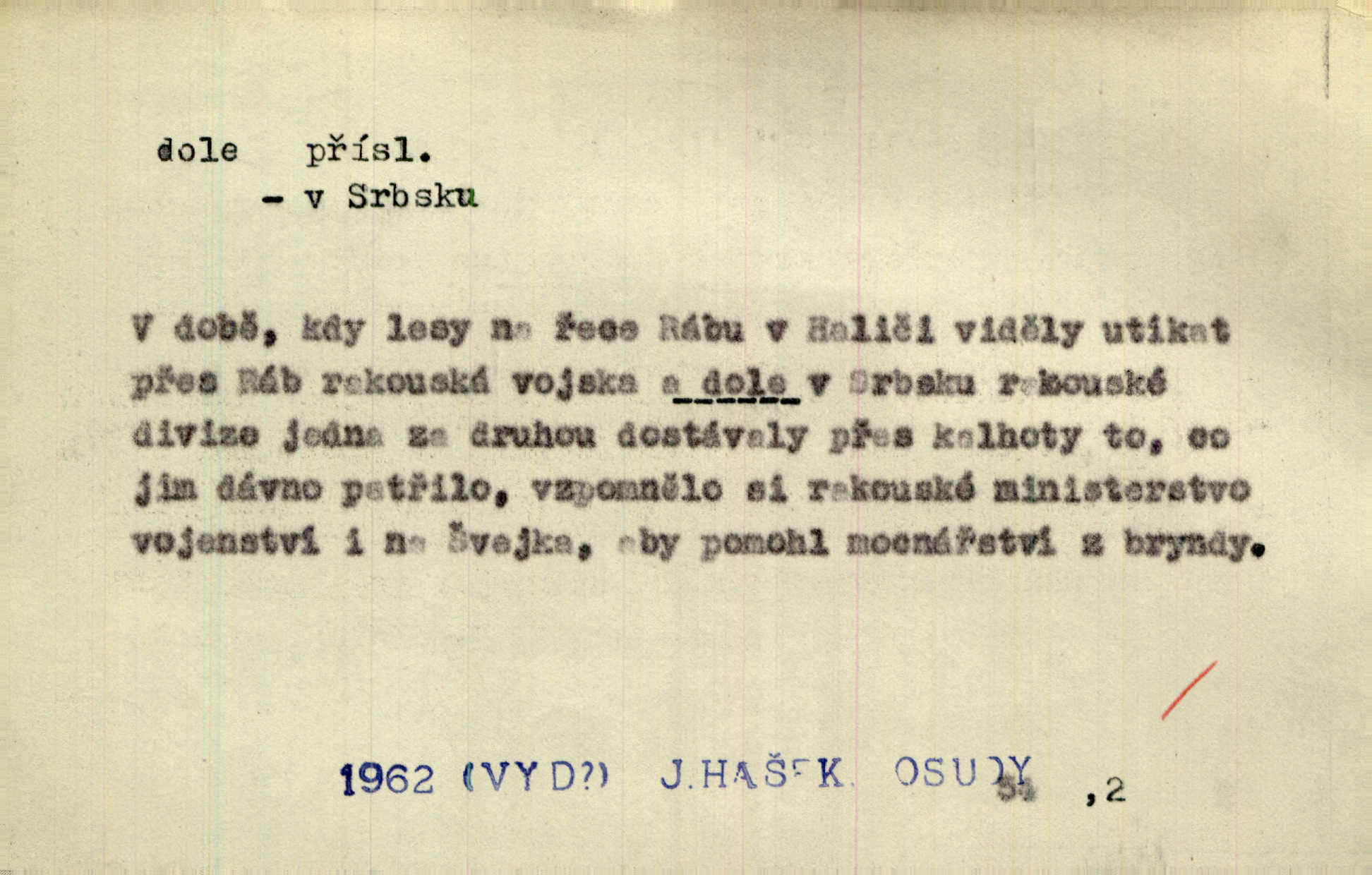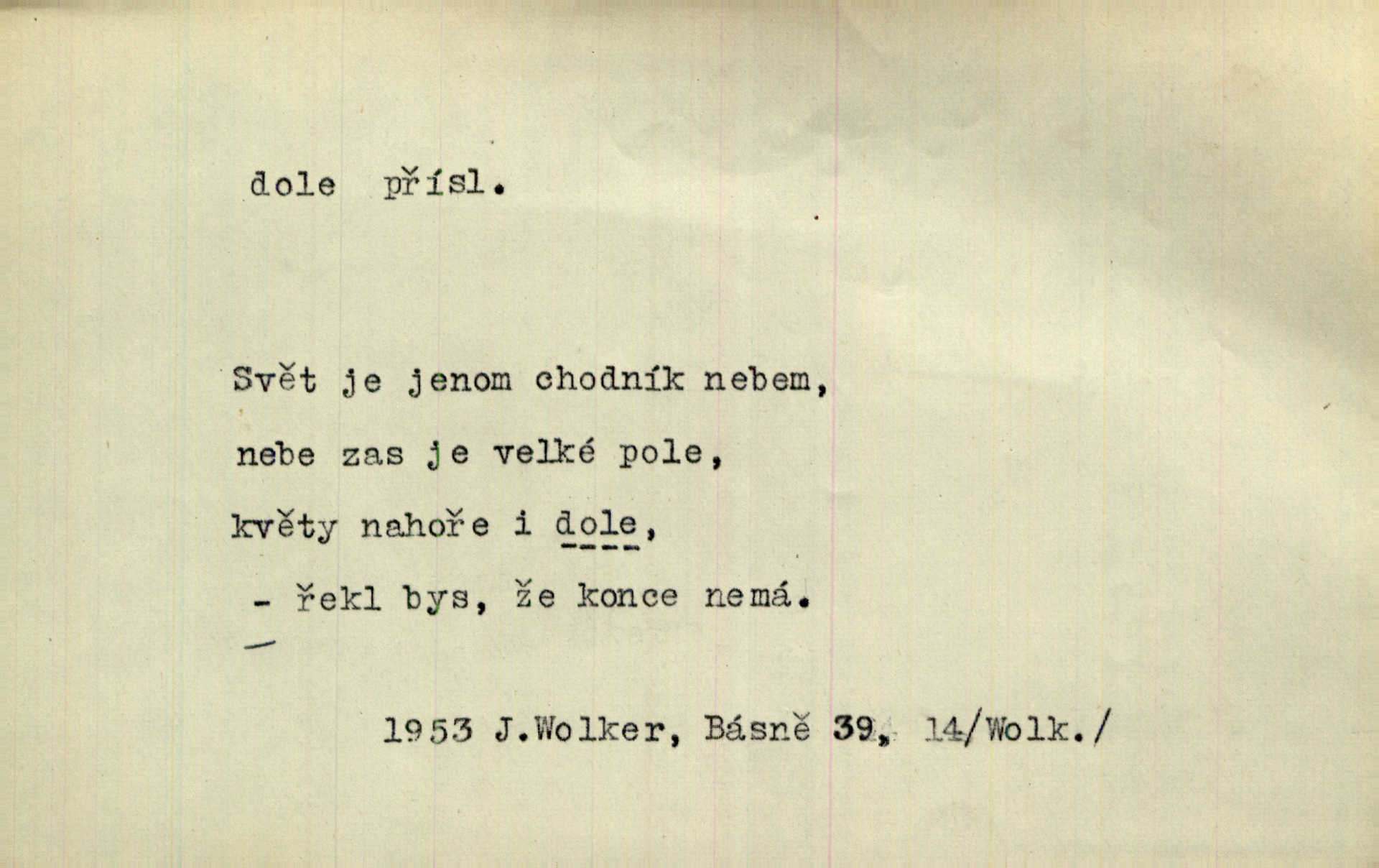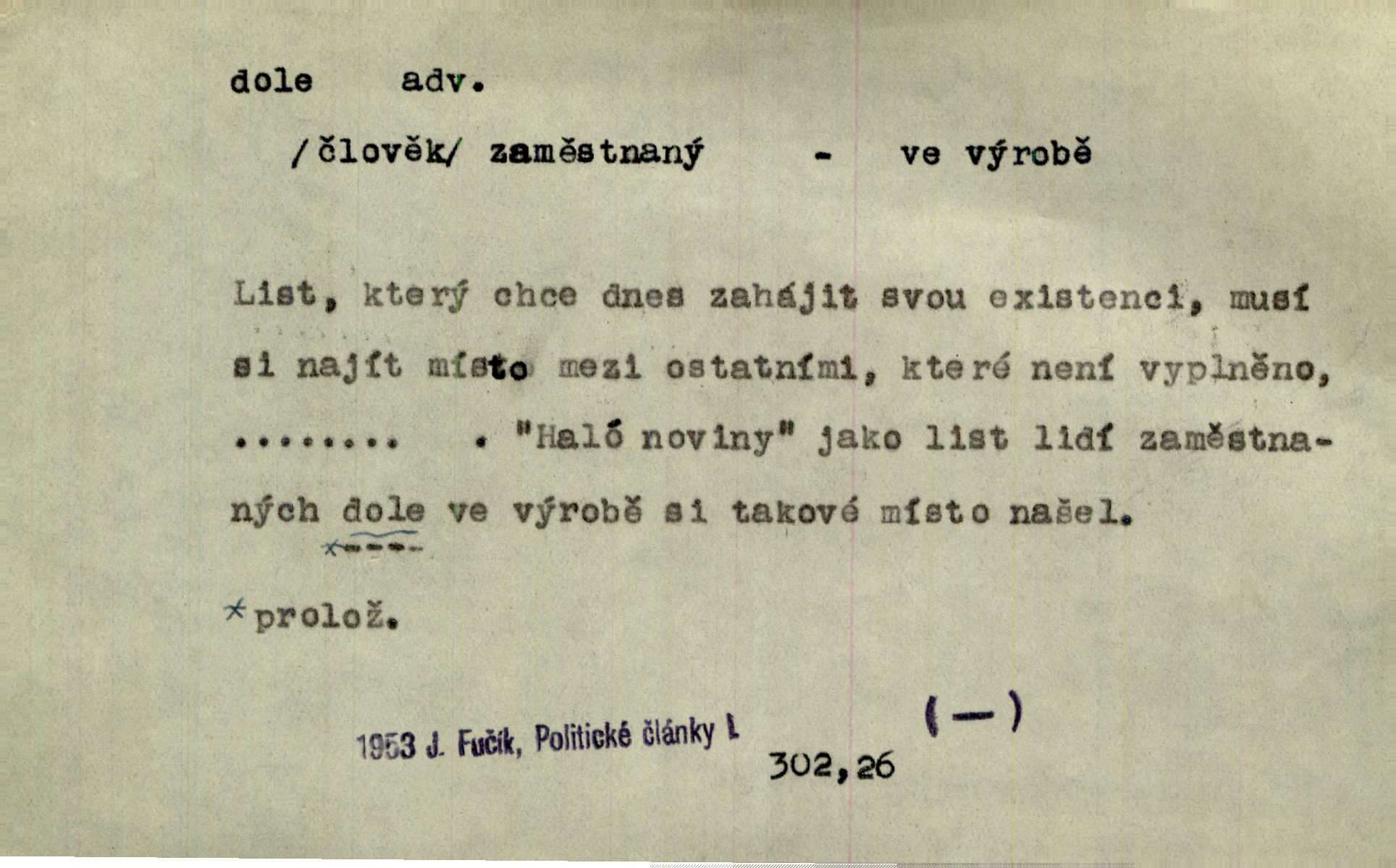 - dole adv. (komp. doleji) na nízkém (nižším) místě, nízko (op. nahoře, navrchu). Těžká sukovitá hůl, dole železem kovaná. Jan. Dole v truhle leželo babiččino prádlo a šatstvo vespod, naspodu. Něm. Dole je krám pod námi. Bydlíte dole v přízemí, v nižším patře. Toužil po smrti a žádal si klidu tam dole ve věčném šeru v hrobě. Zey. Vám, myslivci, tu dole je hej v údolí, v rovině (op. v horách). Něm. Vážnější dvořané soudili o záletnosti biskupově vytýkajíce, jak že má pak dole jasno býti, když s temene nesvítí světlo dobrých příkladů v nižších vrstvách kněžských i laických. Jir. Dole u stolu na „dolním“ konci, na místě nejméně význačném. D býti dole s vedl. význ. býti pryč a p. [Listy akátové] s prvním větrem jsou dole! Mach. Já mám boty do roboty přes brázdy a pole — zvednu jednu, zvednu druhou, a jsou s nohou dole. F. S. Proch. Pozdě z jara, když už všechen sníh byl dole. Rais. Dům starý bourají; už místy je střecha dole. Vrch. D býti dole býti zničen. Chvast nám jazyk skálel, podvod oře pole, a krb Bída strhla. Všecko, vše je dole. Heyd. Je tak dole, že mu už níž nelze, než s mostu do řeky. Čap. Ch. D Lid. Už jsou dole s kazatelny mají po ohláškách. Slang. To je „dole“, aby někdo dostával peníze za to, že nic nedělá to je proti tradici, to není spravedlivé. Přít. D v jižní krajině, na jihu. Zanotoval píseň, jak ji slýchal tam dole ve Veroně. Jir. Jedu za obchodem; mám něco dole, na jihu, nějaký průmysl. K. Čap. D Lit. pod čarou. O tom viz dole. Ostatek následuje doleji dále.