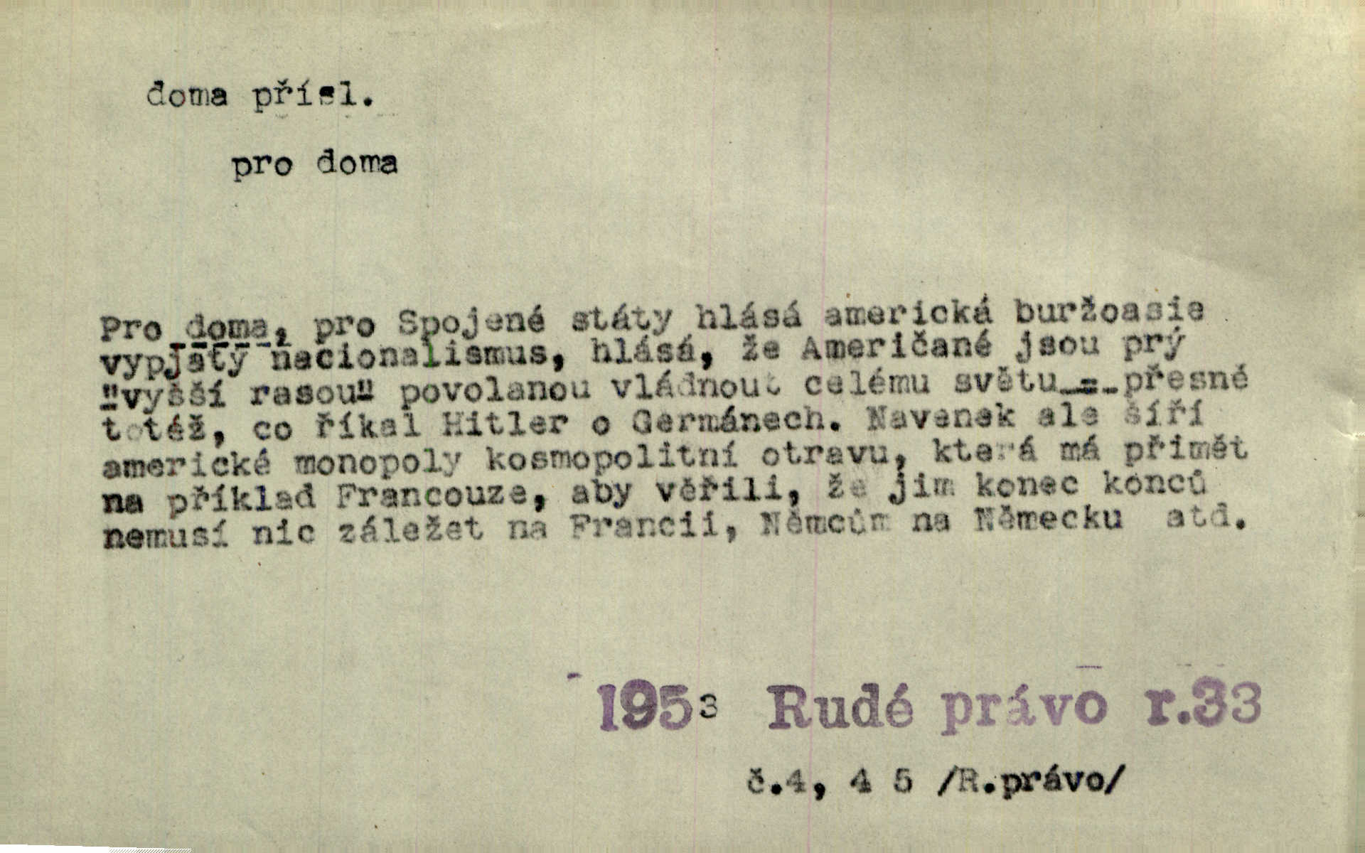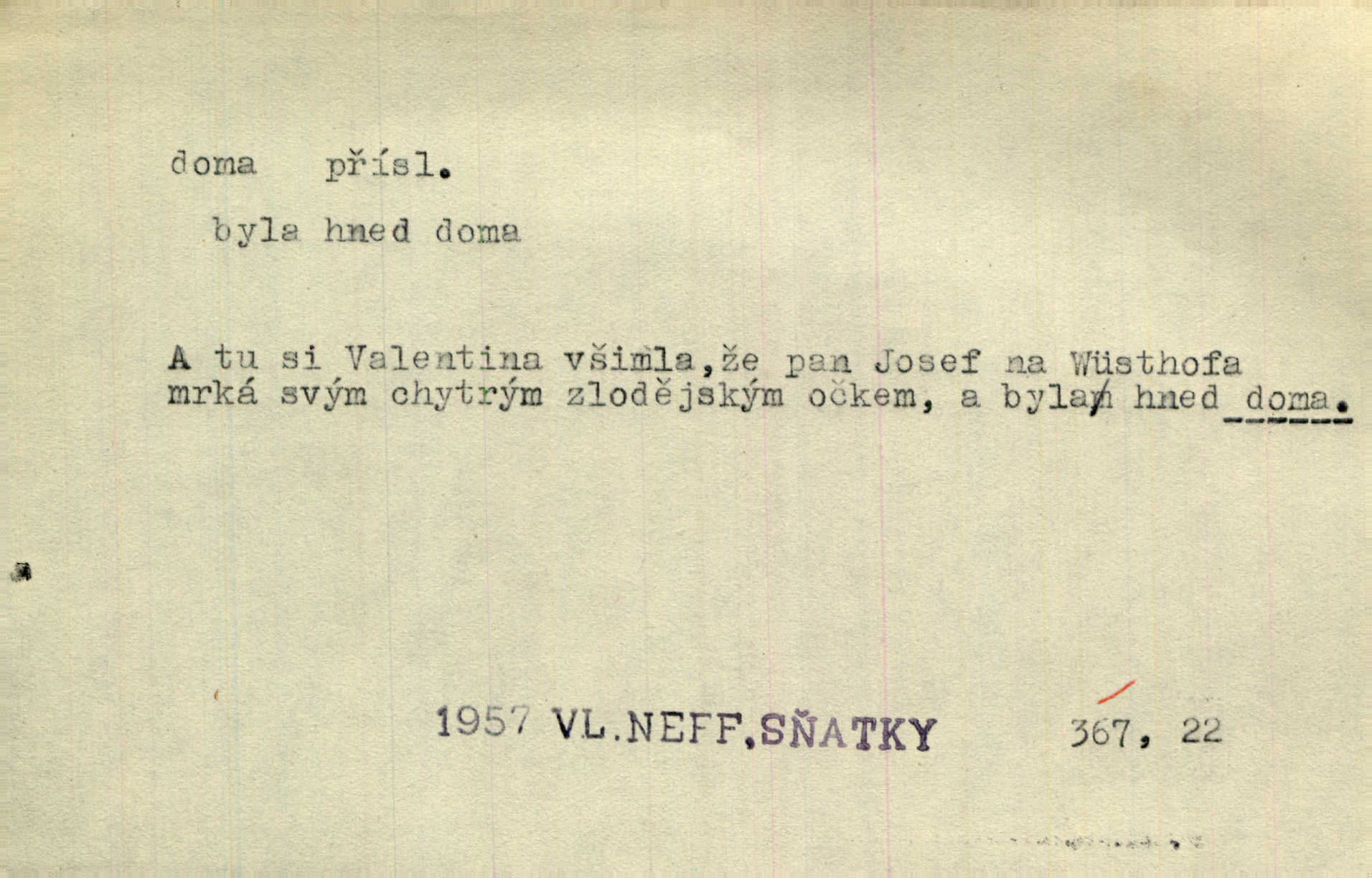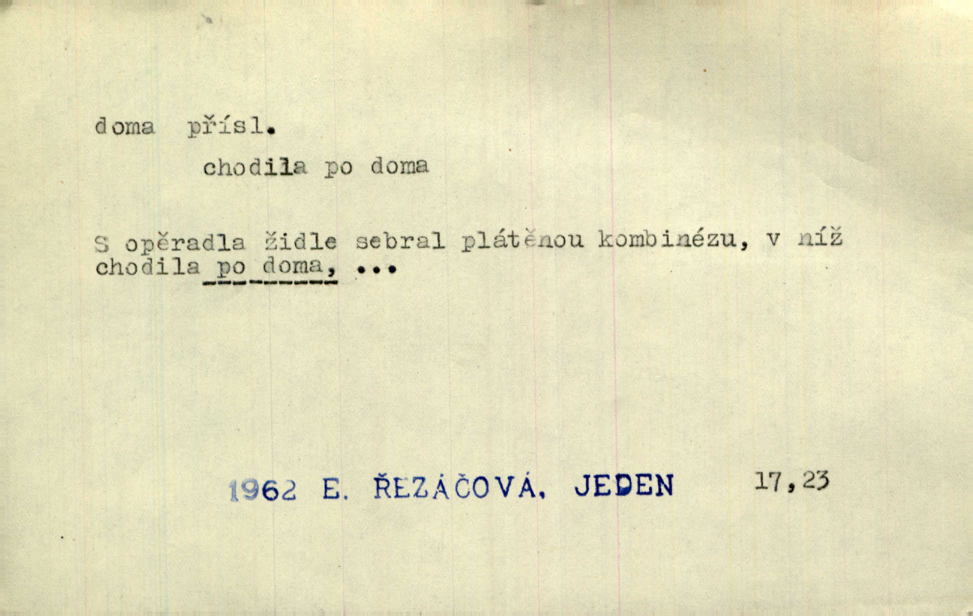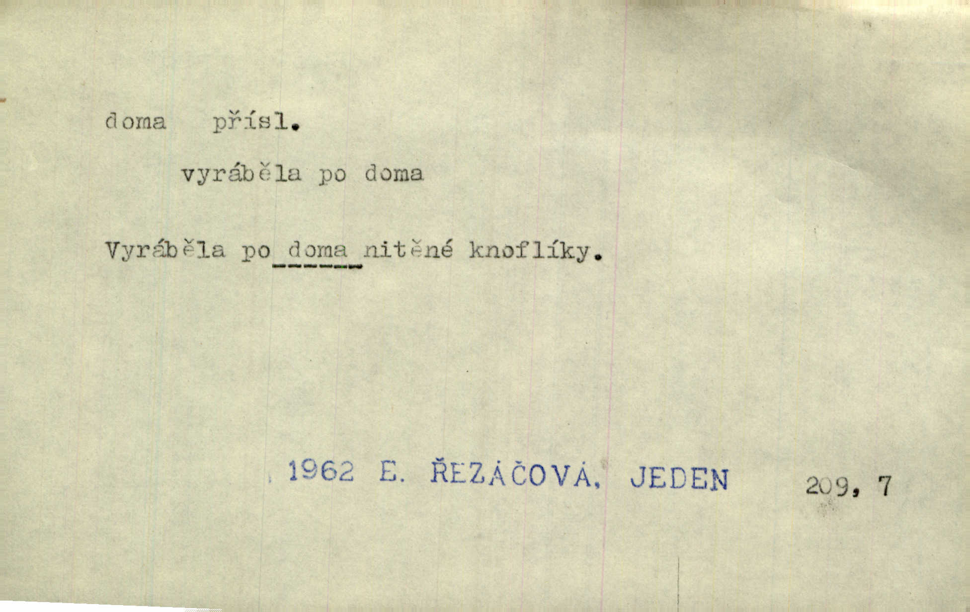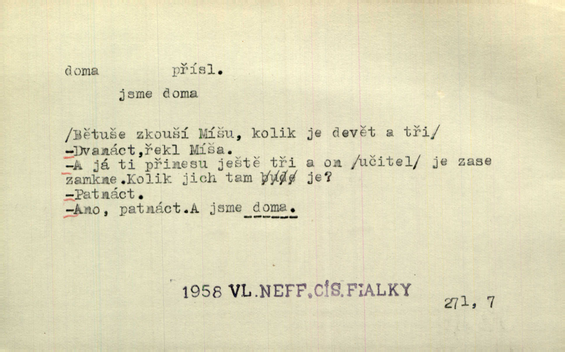 - doma adv. v místě svého trvalého pobytu (v svém bytě, domě, domácnosti, v obci pobytu a p.). Dříve se zpívalo doma i na polích. Jir. V té krajině byla již jako doma, to všechno znala. Jir. Jez doma, co máš, u lidí, co ti dají. Čel. Všude dobře, doma nejlépe. Přísl. [Zloděj] u Lišáků je jako doma často tam dochází. Jir. Každý mleč cítil se ve mlýně doma. Baar. Přen. Kde zněla harfa, doma byla ctnost, tál něhou drsný, bojechtivý jun vládla, sídlila. Vrch. D v své vlasti, v svém státě. Ještě bych nic neříkal, kdyby zůstal zde doma v Čechách; ale musit takhle hned zítra do Netálie! Pfleg. Ze skvostů našich bohatne jen cizina a doma zchudl i svou krví lid. Vlč. D býti doma v něčem vyznati se, rozuměti, pochopiti. Jak slyšela hostův hlas, byla doma. Her. Staruška cítila se jen tehdy doma v rozprávce, když mohla vykládat o lidech s korunkami ve znaku. Preis. I pramilione, vždyť je to Toník, no, nejsem já hned v hlavě doma? Rais. To měla hned na první pohled zjištěno, už věděla, „kde je doma“ na čem je. Hál. D doma neskl. subst. lid. (vlastní) byt, (vlastní) domácnost, domov. Tak, tady budeš teď mít doma! Rais. My tady dnes, tatínku, u vás zůstanem, o doma starost mít nemusíme. Rais. Šaty na doma pro domácí potřebu.