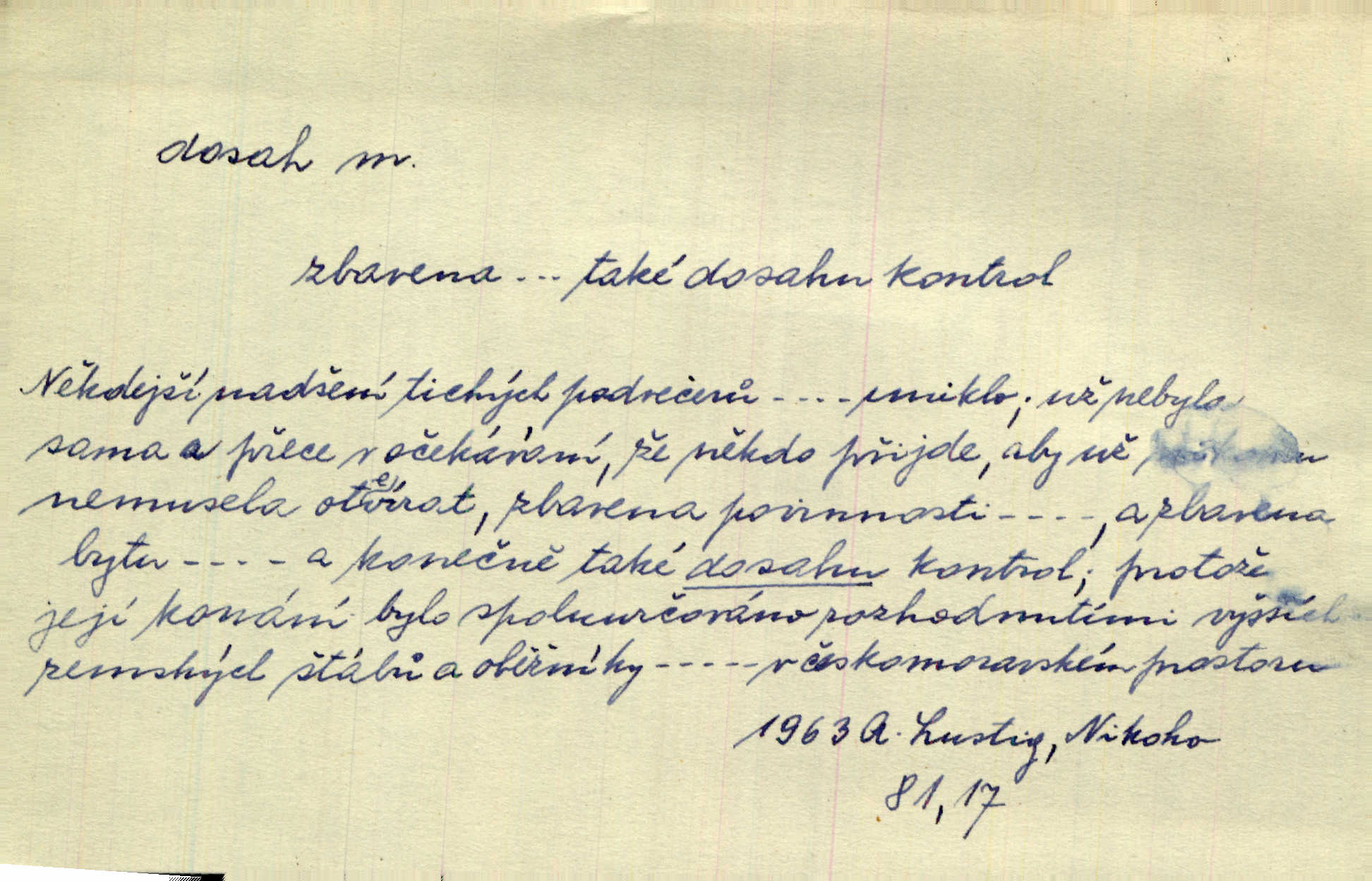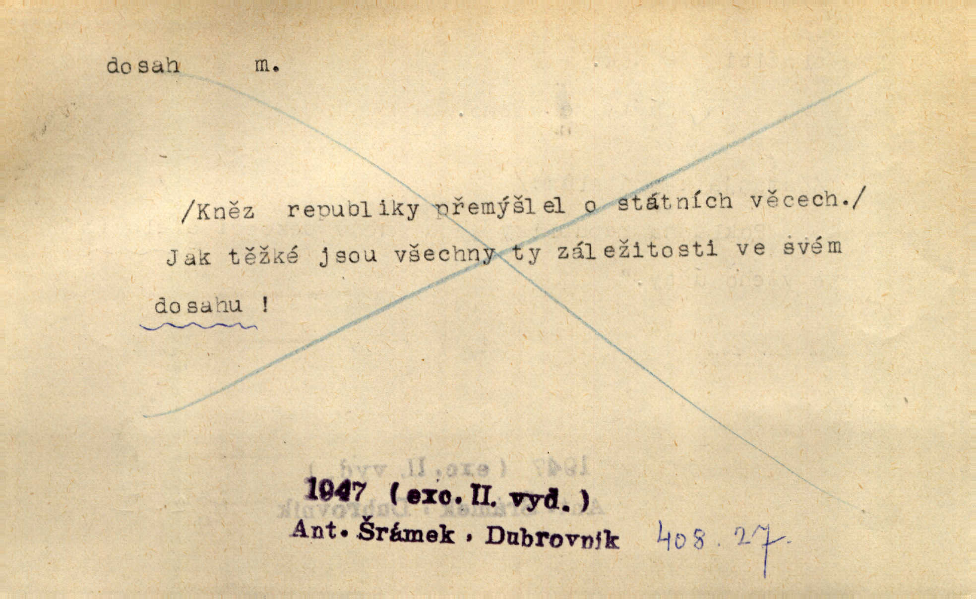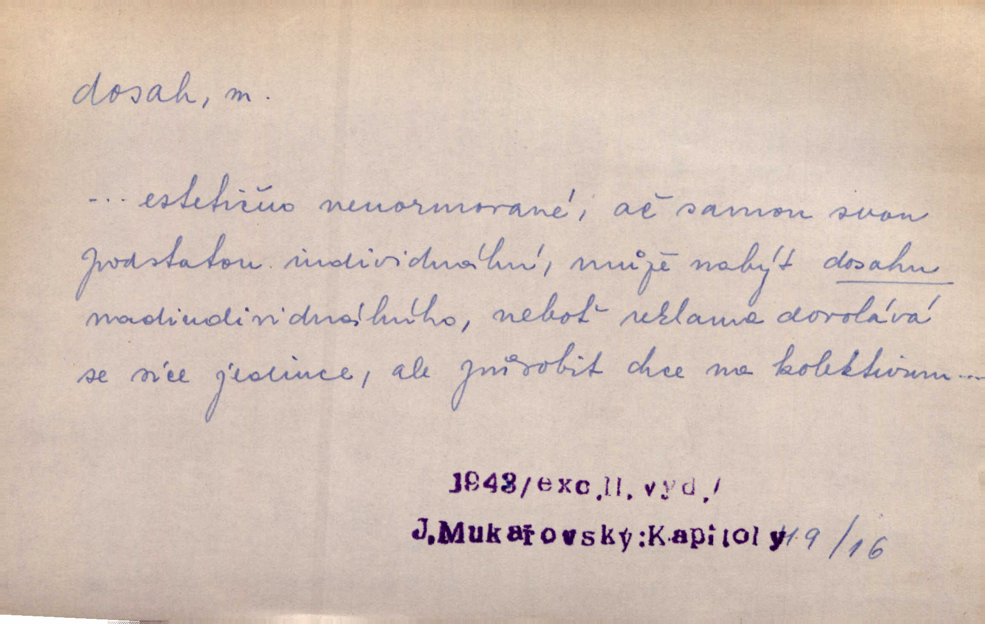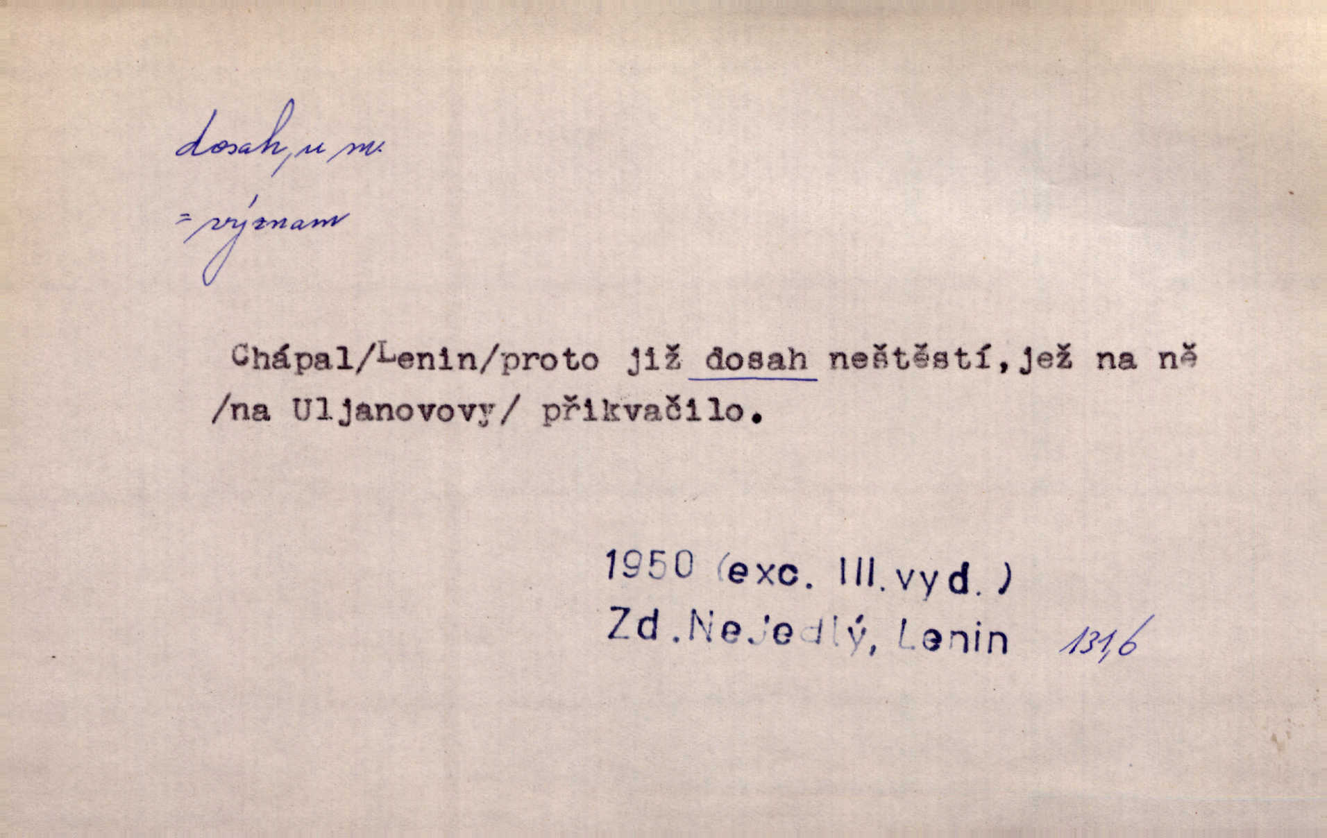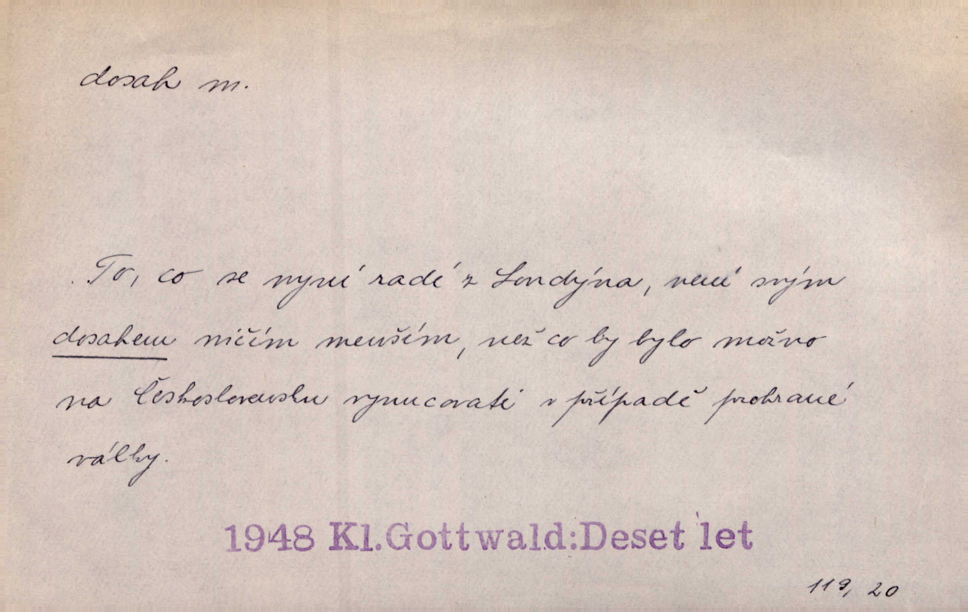 - dosah, -u m. prostor, až kam se dosáhne rukama n. jinou věcí. Stárek byl se na dosah Dvořákův přiblížil. Nov. Couvala před jeho dravýma rukama navlas na dosah. Čap. Ch. Rozdával rány všem, kdo mu přišli na dosah. Theer. Nemohl ruce oddáliti z dosahu svištící hole. Svob. Špýchar vznícením se stáje ocitl se v povážlivém dosahu dravého živlu [ohně]. Vrba. Každá kniha, jež nám byla k dosahu, šla z ruky do ruky. Krás. D okruh, až kam sahá vliv, působnost něčeho; důležitost, váha, význam. Gallas ovšem užil této příležitosti, aby z dosahu moci Valdštejnovy navždy unikl. Pekárek. Naši solisté udělali, co vůbec je v lidských silách a v dosahu umělecké možnosti. Mach. Styděl jsem se přiznat, že nechápu dosahu jeho myšlének. Staš. Nepromyslil dosah potupy, která ho stihla. Vrba. Pronáší věty dosahu filosofického věty filosofické. Vrch. Tech. dosah světlometu, anteny, radiového přijimače.