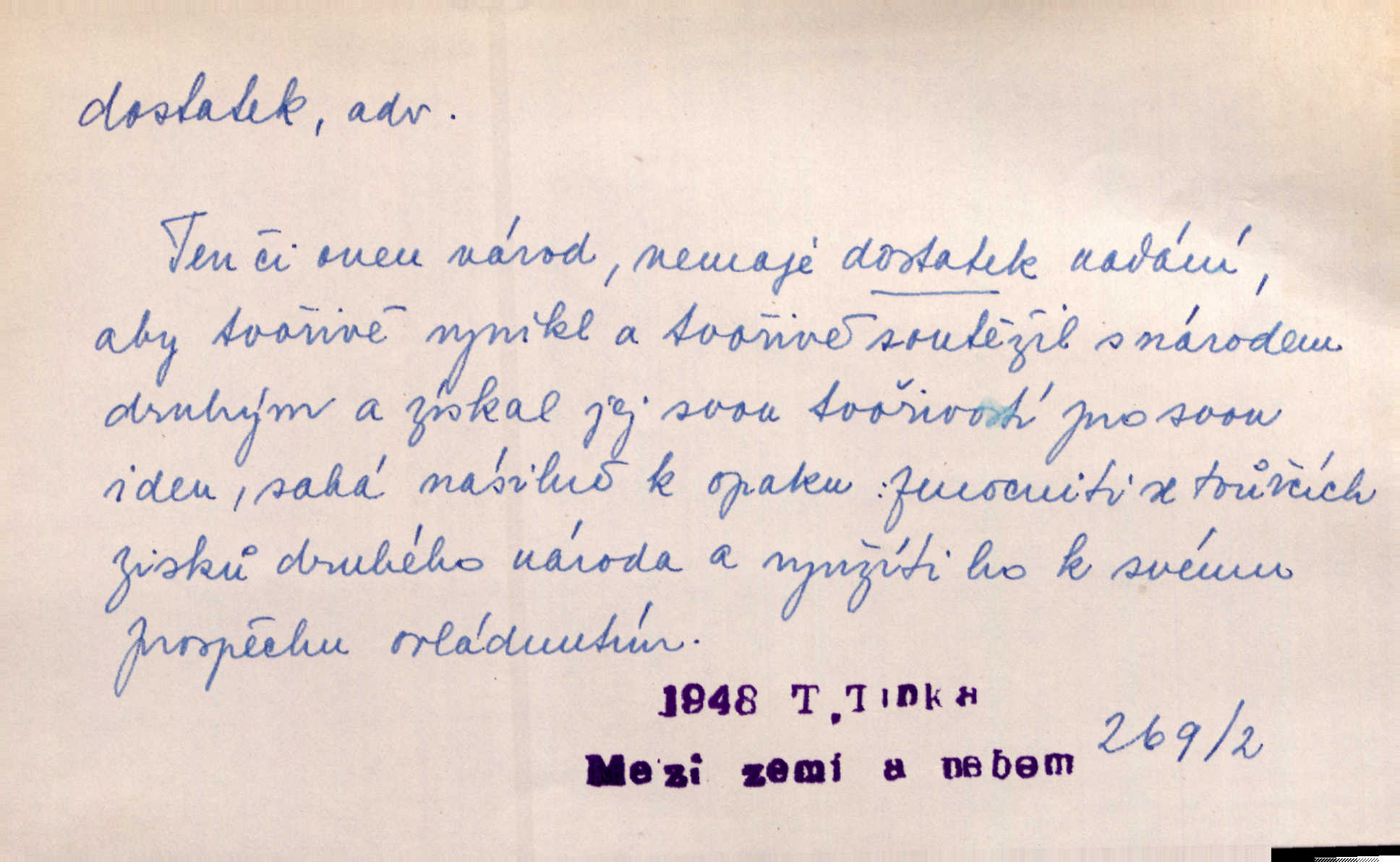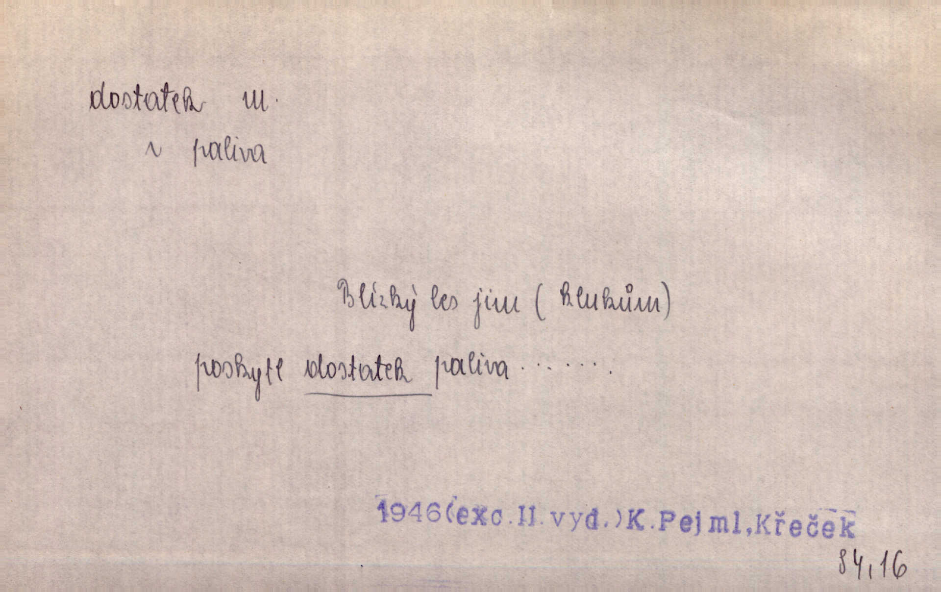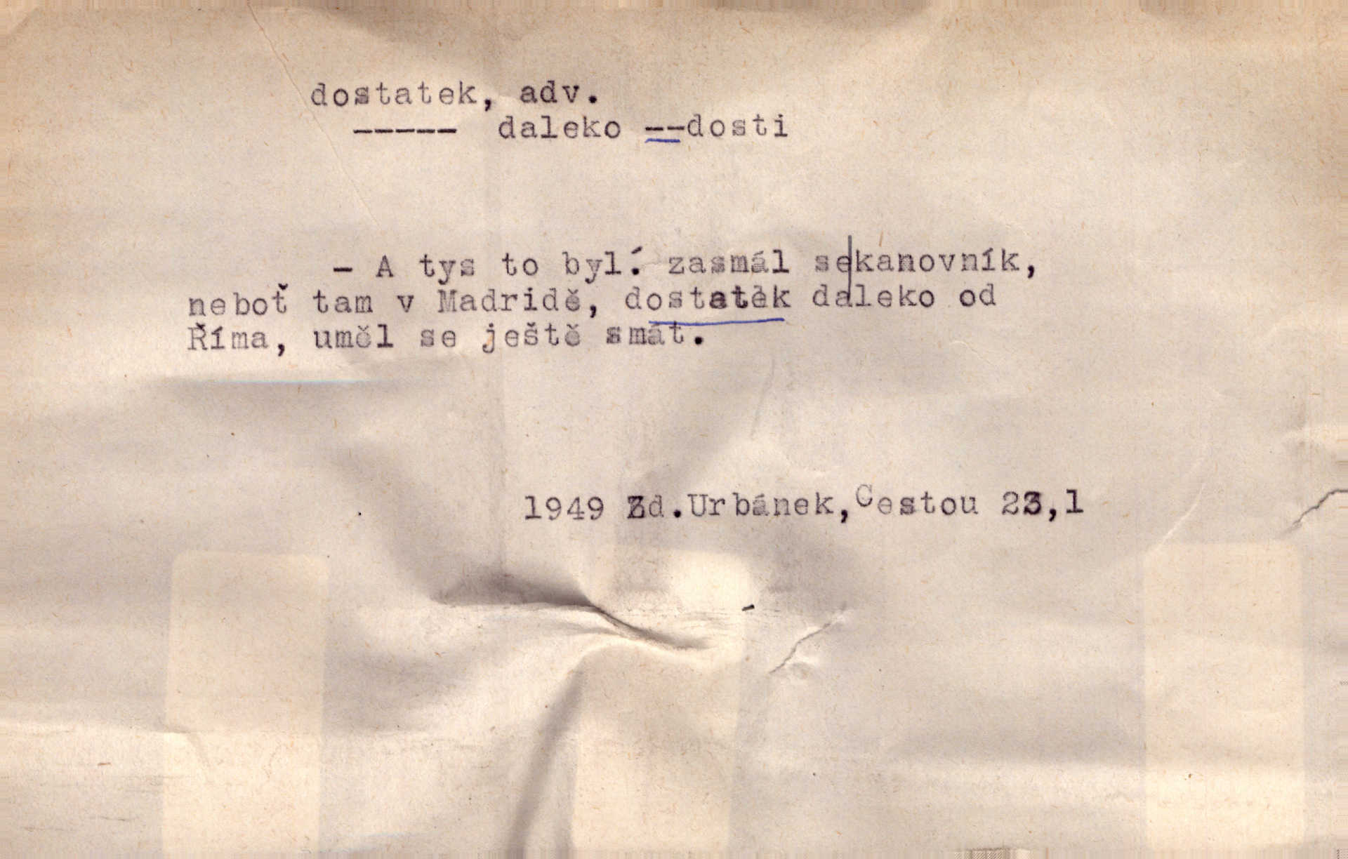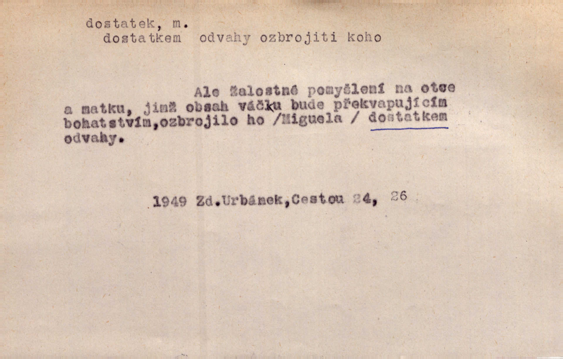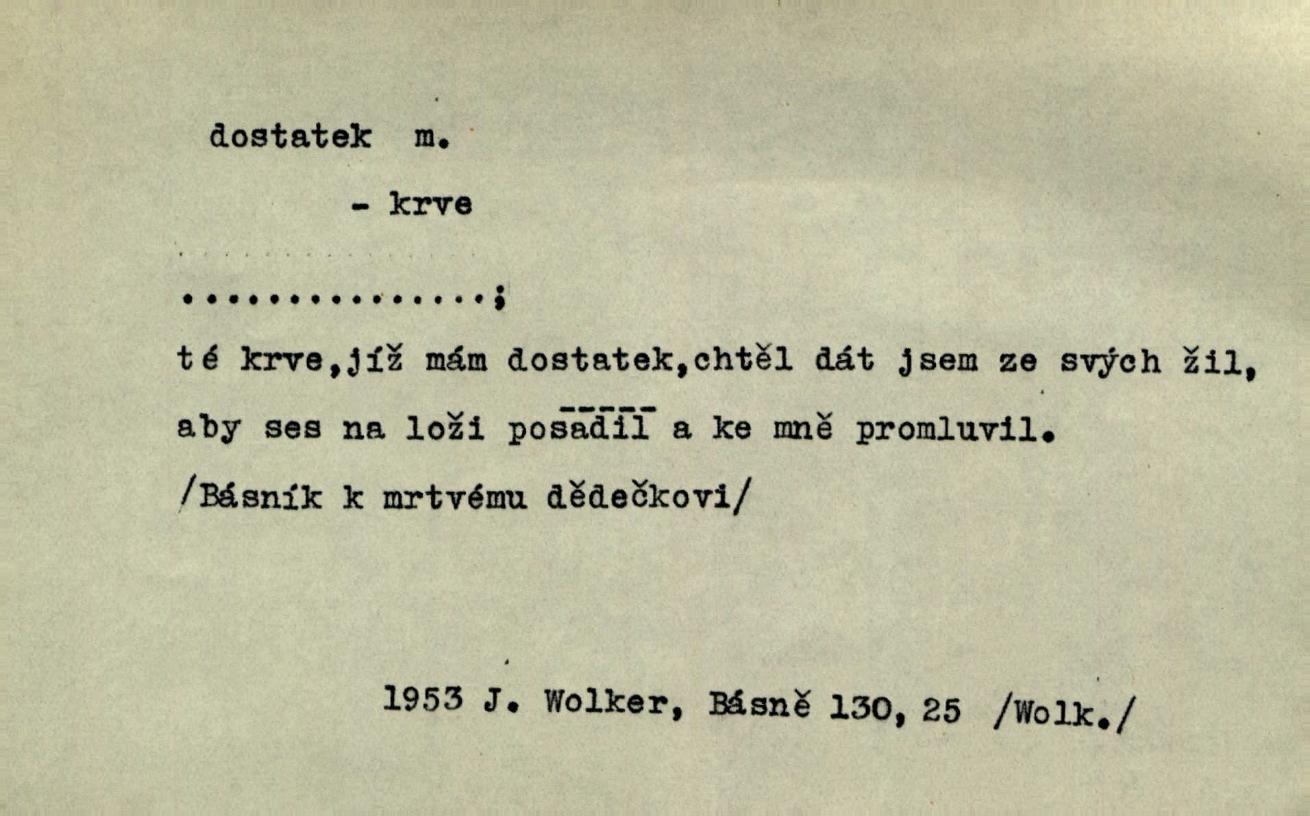 - dostatek, -tku m. vyhovující, uspokojivé množství, postačující počet. Měl jsem dostatek času. Arb. Posud měl obchod málo pomůcek, železnice žádné, silnic také ne všude dostatek. Ner. D s dostatek, dostatek adv. v dostatečném množství, dostatečně. Ovoce jsme požívali s dostatek po celou noc. Čech. Povaha jazyka svanetského není ještě s dostatek objasněna. Čech. Zprávami a zkušenostmi jsem vlastně poučen dostatek. Naše d. Odvahy bylo u Vojt. Nejedlého i u Šeb. Hněvkovského zajisté dostatek. Vrch. Nálada dostatek připravená. Šlej. D postačující množství životních potřeb. Ačkoliv pocházel ze statku, přece za mládí svého málo zvěděl o dostatku. Kos. Všude jevil se dostatek, ba blahobyt. Jir.