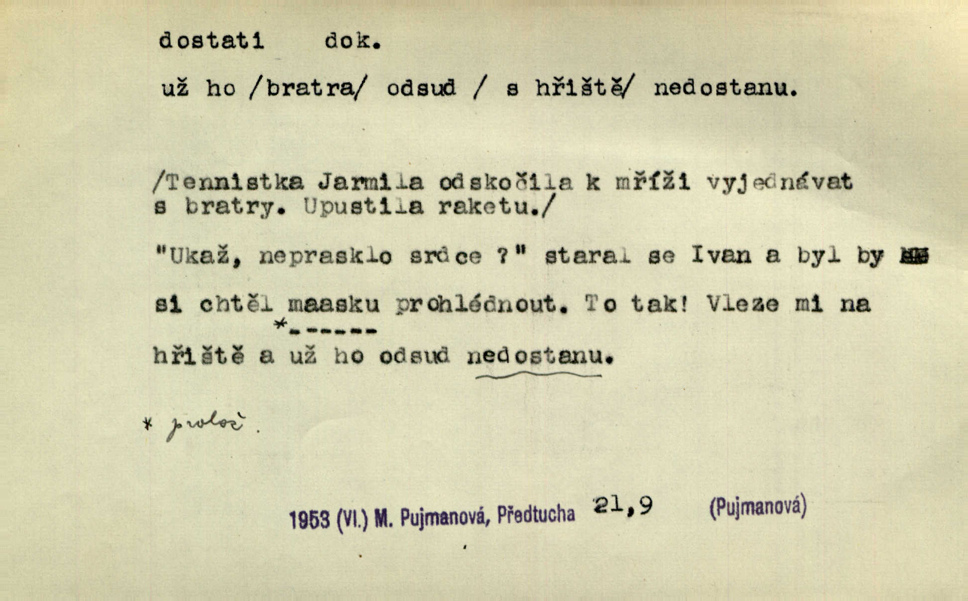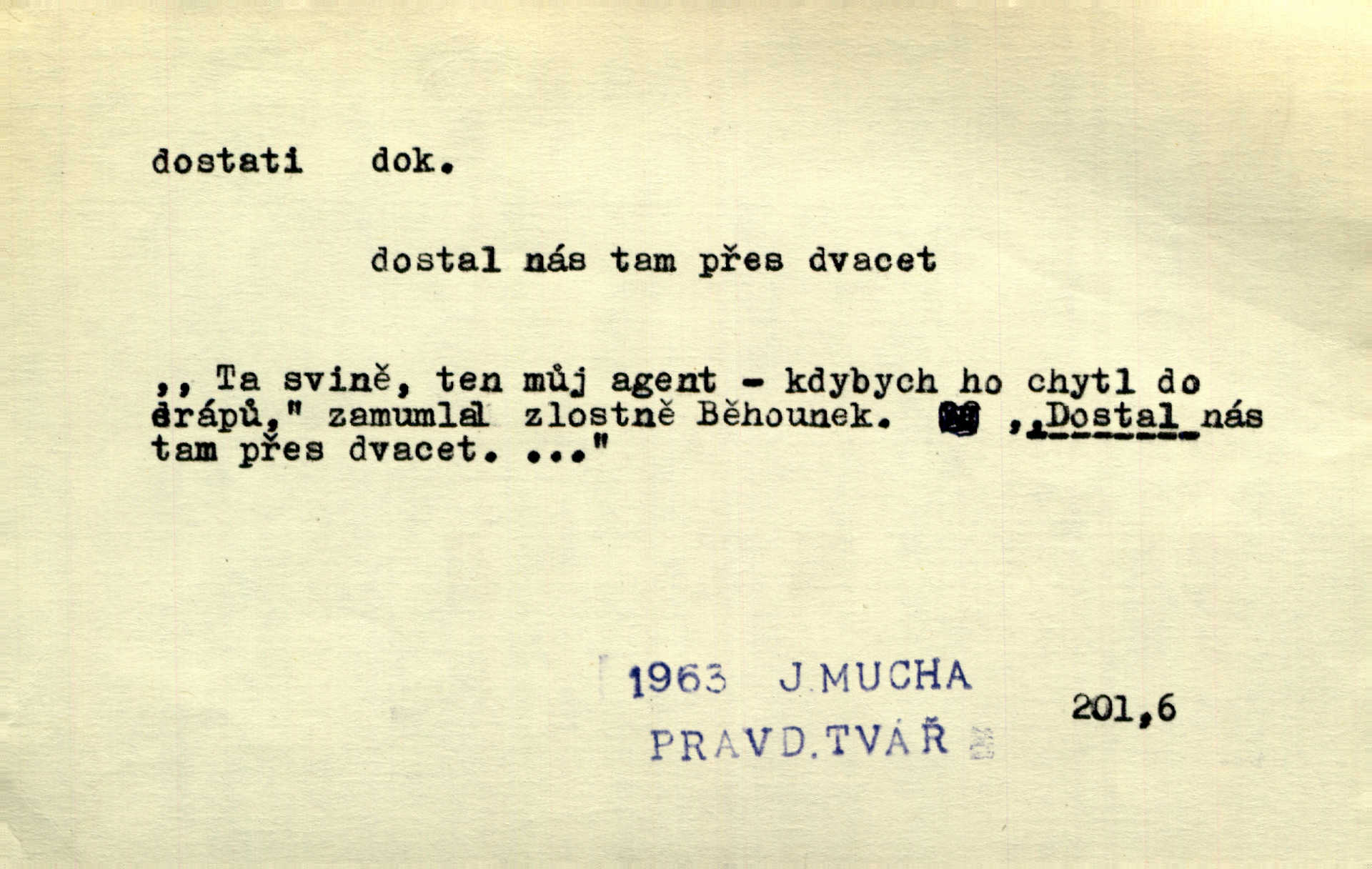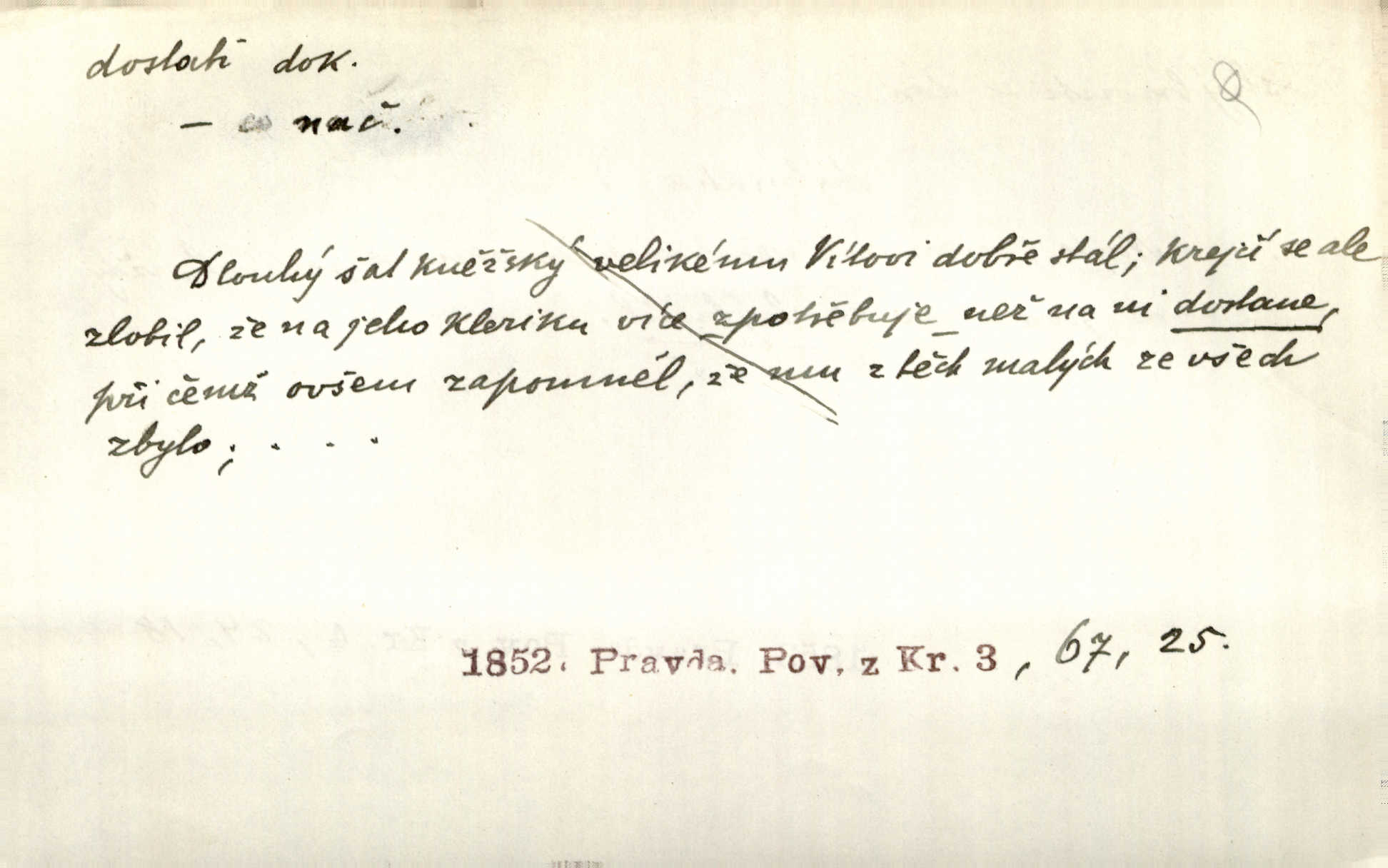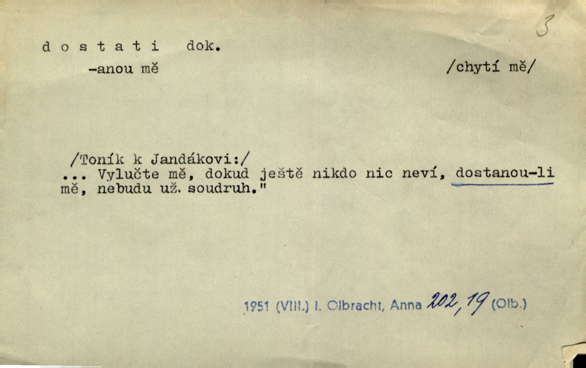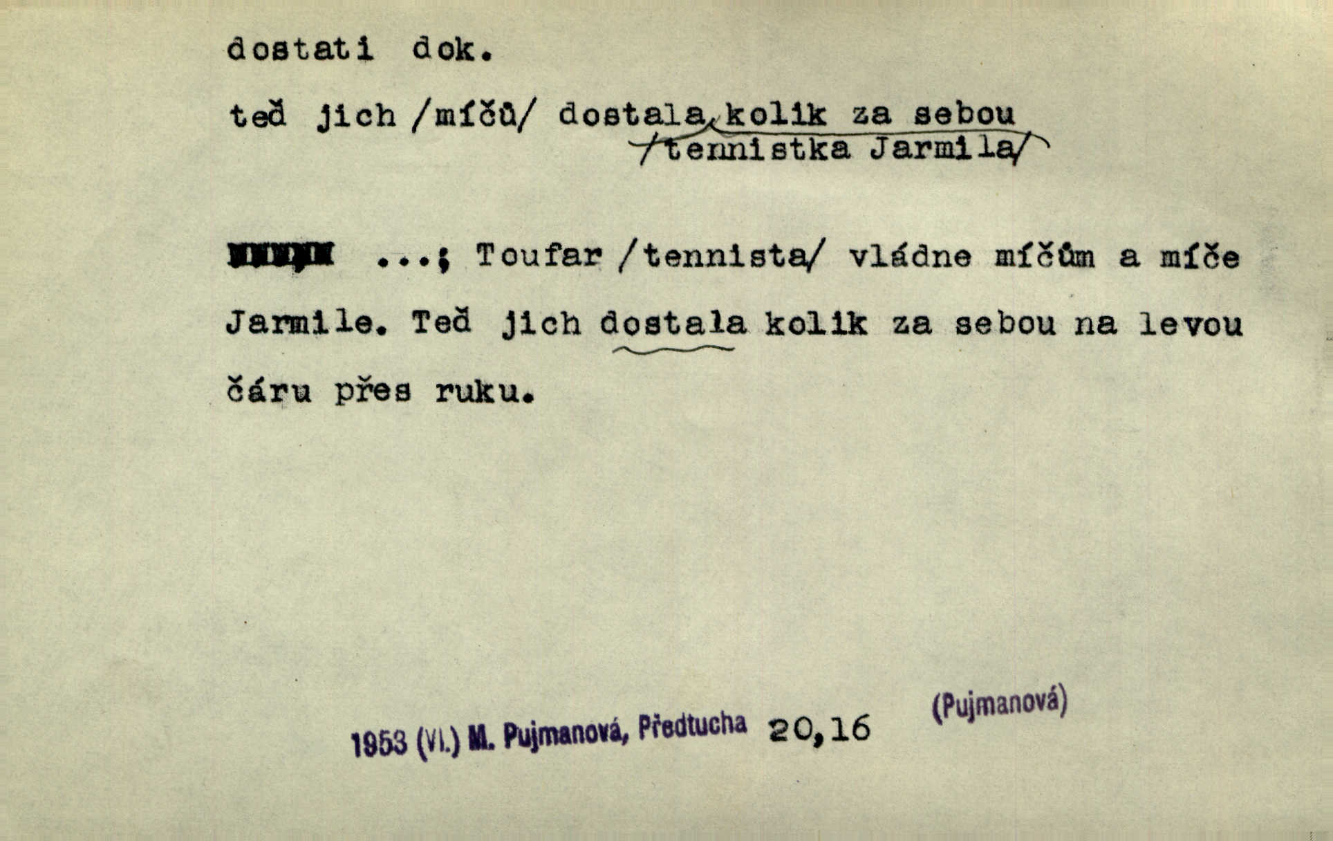 - dostati dok. (dostanu, dostání) (něco) nabýti něčeho bez vlastního úsilí, obyč. darováním. První rok dostal za odměnu své tichosti o celoroční zkoušce rohlík. Ner. Zeptala se dítěte chudého krejčího, co dostalo k Ježíšku. R. Svob. Dostal od císaře darem tisíc zlatých. Jir. Aby dcera byla dostala několik tisíc [věnem]‚ aby syn musil míti přínos na hotových, o tom nebylo slýcháno. Hál. D jakýmkoliv jiným přijetím. I do záložny zanesl [farář] slušný peníz, všecko, co dostal za koně, krávy, vozy, pluhy. Baar. Nedostavše žoldu bimbašovi svému [vojáci] odepřeli holdu. Krás. Za několik neděl dostala Anna list až ze Sedmihradska. Jir. Udělal zkoušky a dostal hned místo. Šim. Dostal hodnou ženu, dostala hodného muže. Šim. Kráva před několika dny dostala telátko otelila se. Kun. Vulg. Z toho by člověk dostal mladý zbláznil by se! Tak bývá po zimě, než stromky dostanou listí. Rais. Fara dostala docela nového ducha. Herb. Obrazy jeho dostaly závratný kurs. Kronb. Jak jsem dostal, tak to dám jak jsem slyšel, tak povídám. Dyk. Brzy dostaly vášně vrch a nikdo nepamatoval bouřnějšího shromáždění nabyly převahy. Zey. Rychtář dostal poručíno, aby mě dal chytit. Jir. Dostal modrý arch byl dán do pense. Dostati poučení, cvik, školu; jméno, rozum, chuť, nechuť k něčemu a p. D (o něčem nepříjemném, obyč. o trestu n. nemoci) utržiti, utrpěti. Kde pán dostane jednu ránu, sedlák utrží dvě a tři. Hol. Onehdy ve Žliči dostal Talián na hřbet. Něm. Však on šenkýřův Pepík dostane, až zase přijde do školy! Prav. Dostati bití, výprask, pardus, na frak, na chrám páně, na hřbet, na kůži, po nose, řezu. Dostati svůj díl, lekci, šňupku, nos, huby, za vyučenou, na pamětnou, co proto. Dostal šest měsíců, dostal od poroty provaz. Dostala po hroznech žáhu. Mrš. To jsou slonbidla, psotník by z nich člověk dostal! Herrm. Dostala jsem z vás takovou trému. Čap. Ch. Dostati souchotiny, zimnici, horečku, zápal, vyrážku, chrlení krve. Dostal roupy rozdováděl se, dostal vítr z něčeho polekal se, dostal pro vítr zažil strachu. Dostati strach, hlad, žízeň a p. D (někam, na něco, něco) dosáhnouti něčeho po jistém úsilí, dohmátnouti někam; uchopiti něco. Již jsem přerostl káď, kdežto jsem jindy na ni ani dostati nemohl. Klicp. Dostane smetákem na strop, dostal klobouk z vody holí, jablko se stromu bidlem a p. D (něco někam, odněkud) dopraviti, vpraviti; (někoho někam, odněkud) pomoci někomu k něčemu, od něčeho. I ta [poslední sirka] zhasla — ještě ji nedostal ani k dýmce. A. Mrš. Sotva sklenici udržel v ruce a polovic vylil, než něco dostal do úst. Prav. Šerka nabobtnala a vodou tak ztěžkala, že ji sotva na vůz dostali. Šmil. Já jsem logaritmy nedostala do ruky až při maturitě, neuměla jsem v nich hledat. Čap. Ch. Upálím tu dívku zlověstnou, do rukou svých když ji dostanu zmocním se jí. Zey. Jak člověk řekne slovo, ani čtyřma páry koní nedostane ho zpátky. Herb. Jen co ji [nemocnou] dostaneme do potu, bude lépe. Herrm. On si dá záležet, aby dostal Mílu s krku, protože ví, to že je můj obránce zbavil se ho. Něm. Kdo se o mne stará, aby mne dostal z chleba připravil o zaměstnání? R. Svob. Musili jsme hledět, abysme ho [syna] dostali někam do kanceláře pomohli mu. Šim. I tento pokus dostati slečnu Máňu pod čepec mine se s úspěchem. Hlad. Dostati někoho do pasti, na lep, na vějičku, do kleští, do tenat přivésti do nesnází, nachytati. Dostati někoho z míry rozhněvati, dostati na svou stranu nakloniti si. Vulg. dostat koho na špek napáliti, obelstíti. D (koho, co odněkud, někam) přiměti, přinutiti, vynutiti. Chlapce pak od těch knih sotva dostali k obědu. Jir. Pořád mě nutili, abych se dal k ostrostřelcům, a nedostali mě do toho. Herrm. Víckrát mě do Vídně žádný nedostane. Rais. Než mohla matka moje slova z ní [nemocné] dostat, už zase do peřin se zvrátila. Svět. D (něco, někoho) opatřiti si, získati si (za peníze n. ujednáním). Takový bůček nedostanete v celé Praze! Šim. Za korunu byl by mohl dostat kočár. Mach. Nemůžeme dostat lidi na řípu. Baar. Zobroubili [tovaryši tkalcovští] často celou ves, celé Padolí, nežli dostali místo. Jir. Napodobením němčiny je k dostání lze, možno dostati, obdržeti (obyč. ke koupi). Spisů jeho v městě k dostání nebylo. Pal. Jen tři kabiny byly k dostání. Kosm. Nic takového tu není k dostání. Šrám. Zatím co tadyhle se rozlévá jiskřivé moře cvočků, není o pár kilometrů dále cvoček k dostání. K. Čap. D (koho) chytiti, dopadnouti, lapiti, zmocniti se. Nalékli jsme na ni [lišku] pečeni, mínili jsme, že ji musíme dostat. Něm. [Strážníci] po pašerácích pásli. Ale Víška dosud ani jednou nedostali. Jir. Bůh buď jeho kůži milostiv, až ho [zloděje] dostaneme. Suš. D (koho) vyzráti na někoho, ošáliti, napáliti někoho. Tak ho [Brtka na vojně] trápili a číhali, aby ho v něčem polapili; až ho dostali. Jir. Vy jste mě dostali se svým Sylvestrem! To jsem vám naběhl. Herrm. To bys neřek’, že si z nás dělají jen blázny? Tebe dostali, ty to neznáš — ale já se nedal! Svob.