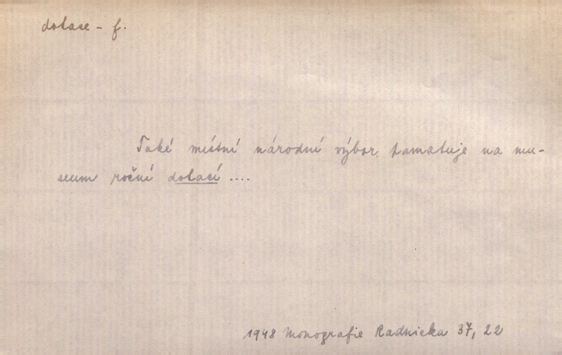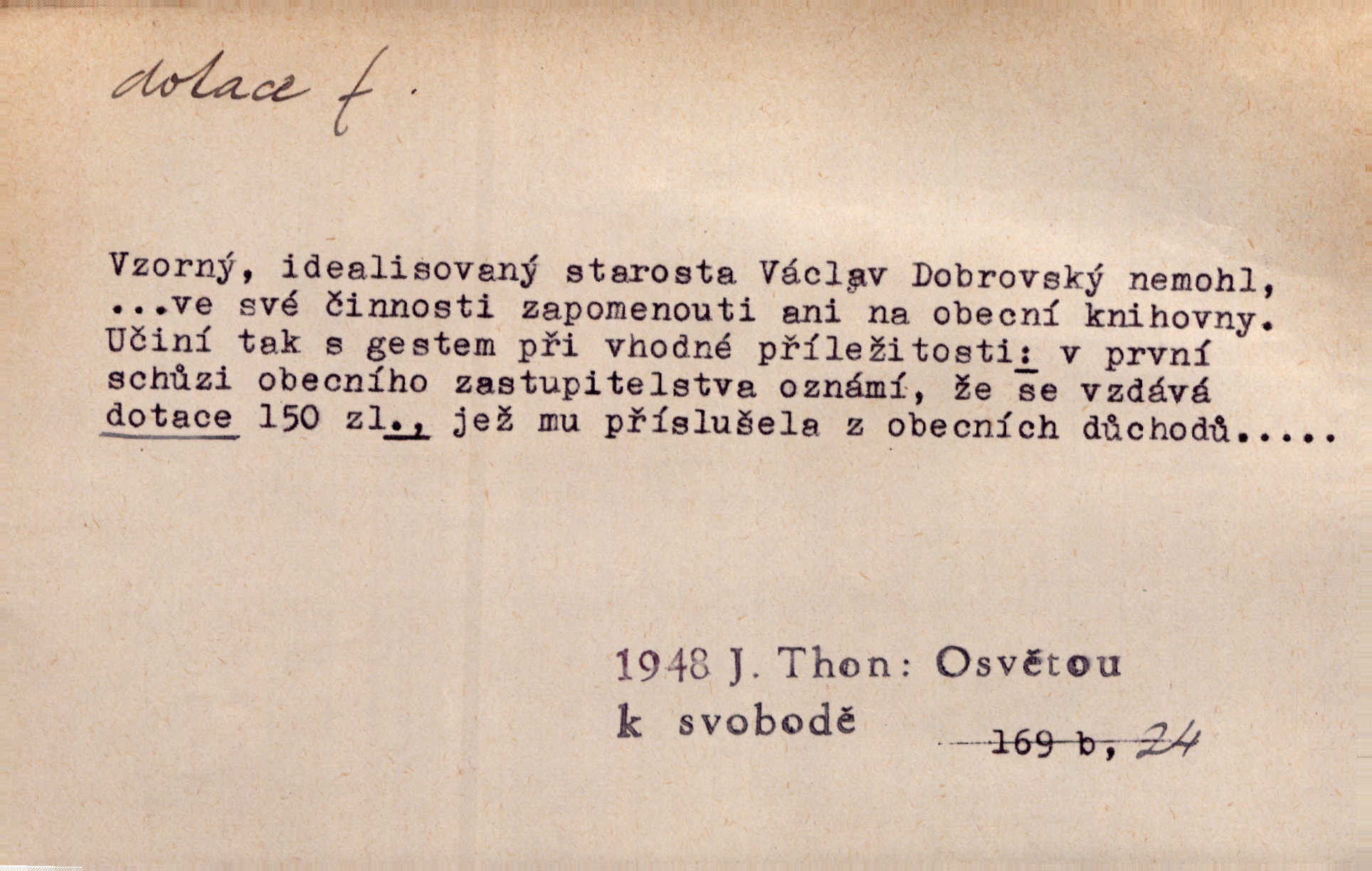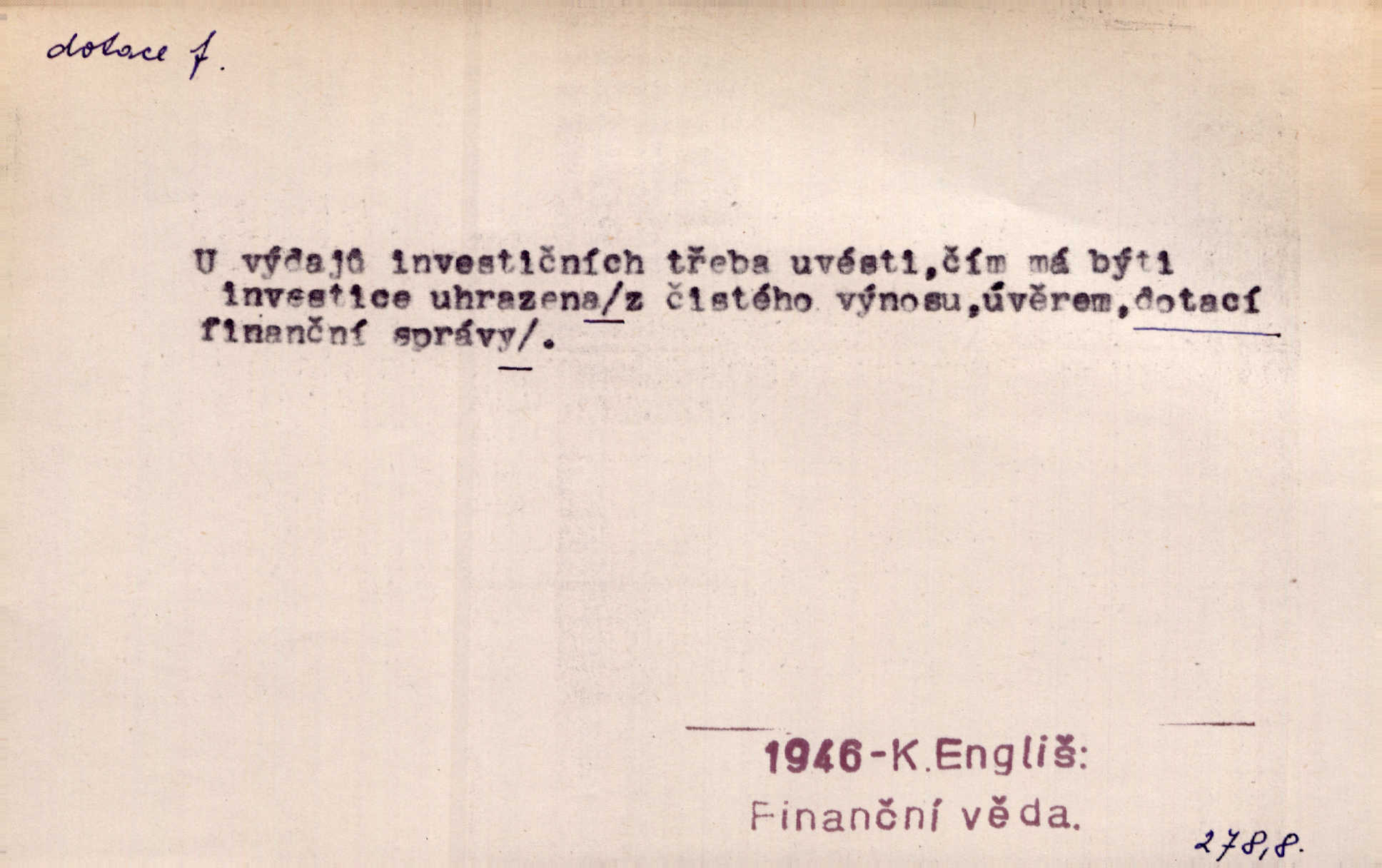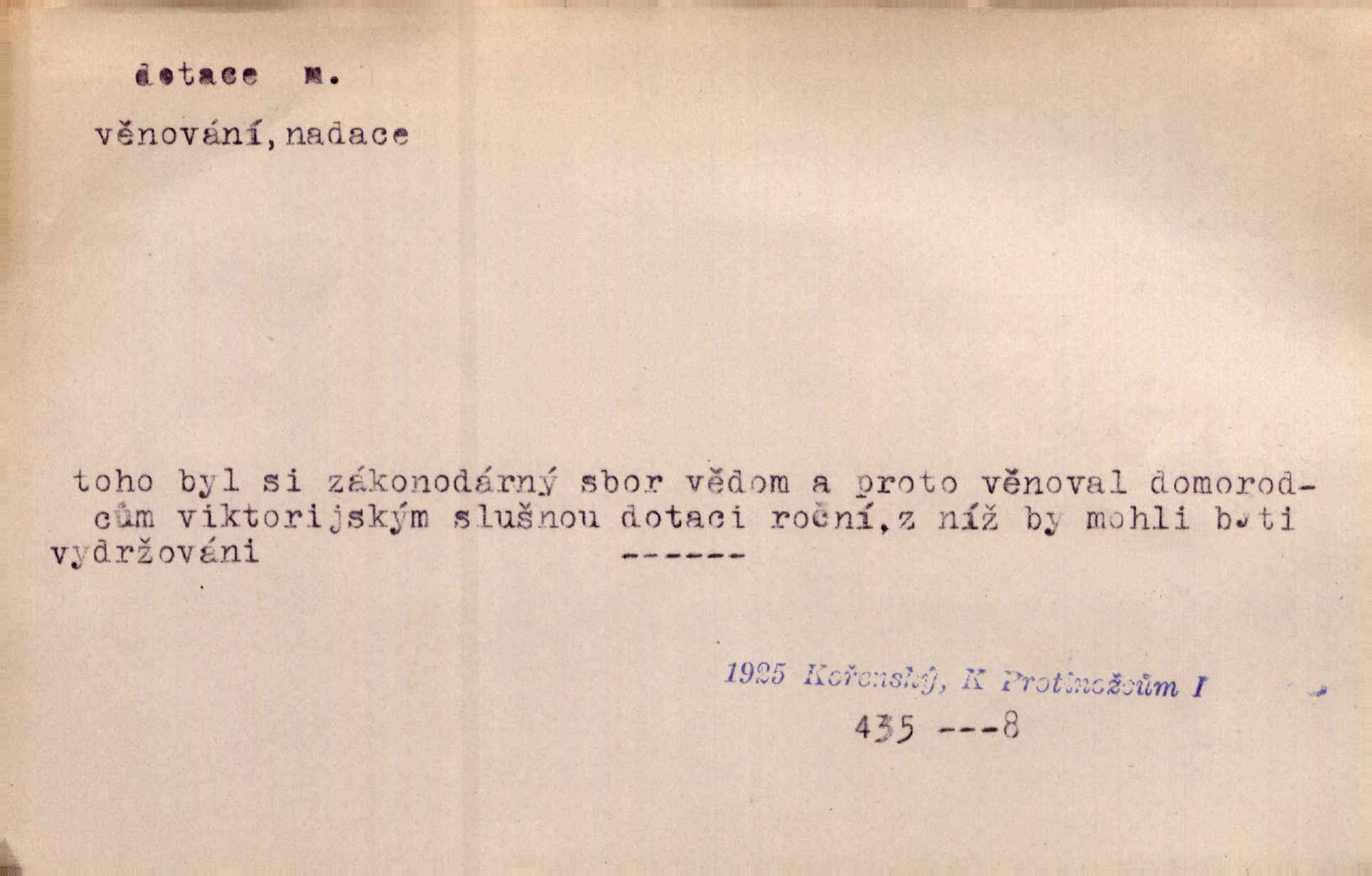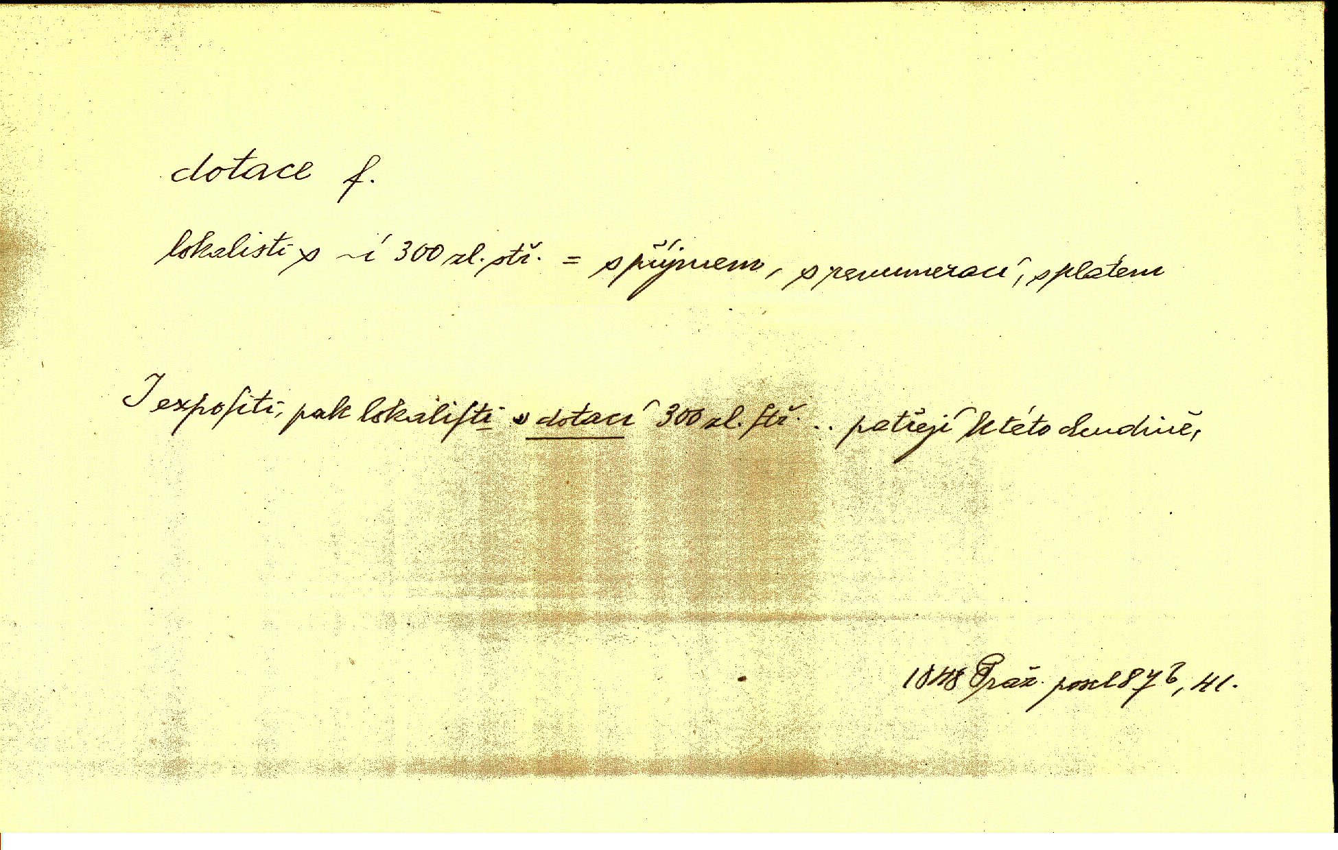 - dotace, -e f. pravidelný příděl peněz, zvl. nějakému ústavu n. úřadu, veřejné korporaci n. jednotlivcům. Státní a soukromá dotace. Řádná, mimořádná dotace (op. subvence, podpora). Žert. Měl jsem jednoho takového pátkáře [žebráka]‚ jehož dotaci určil jsem, nevím už proč, na dva krejcary týdně. Ner.