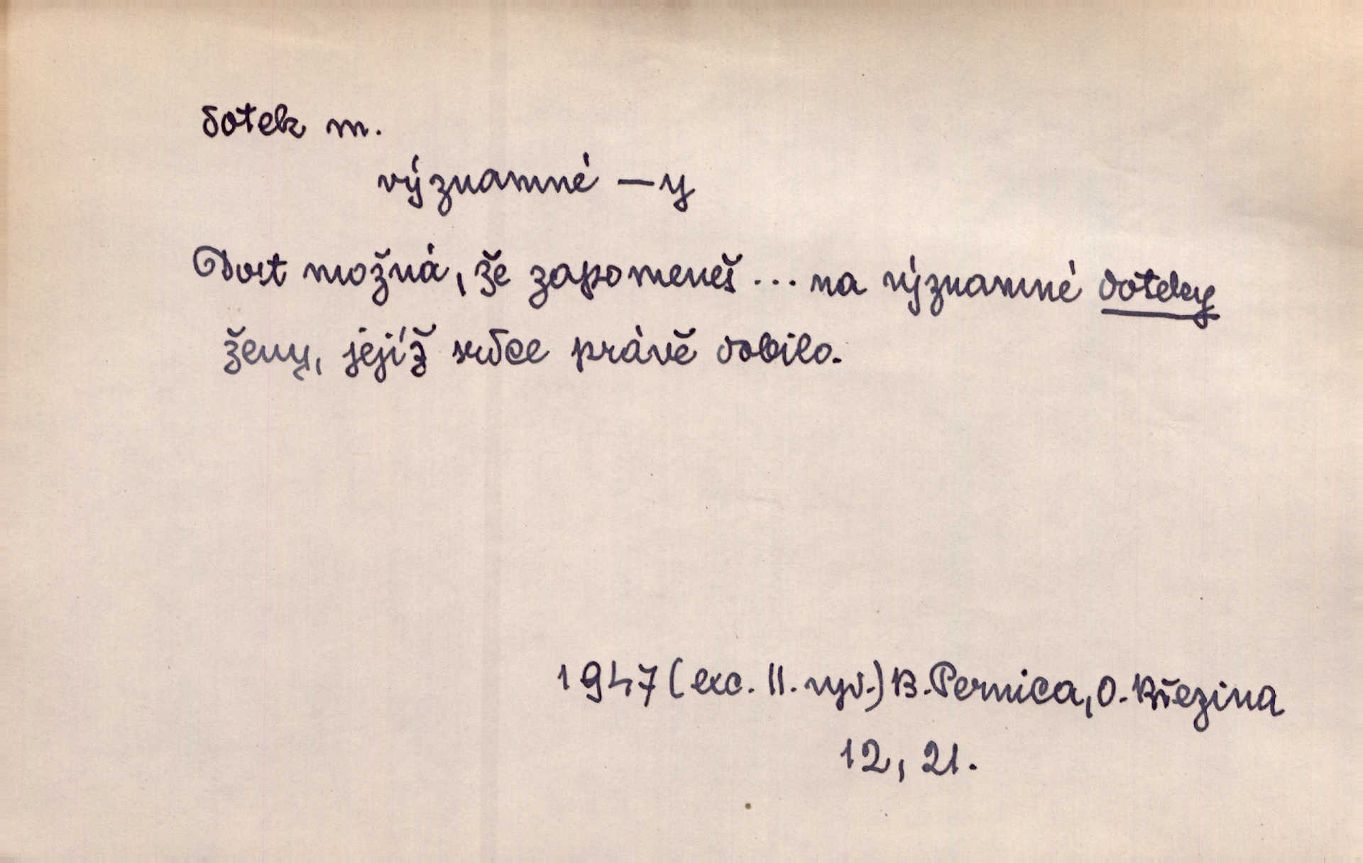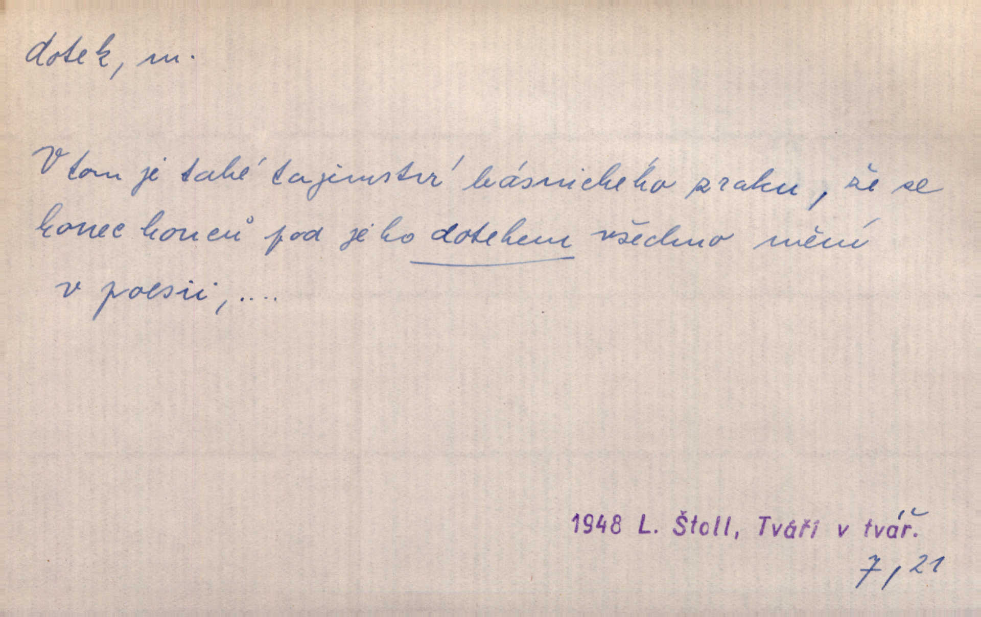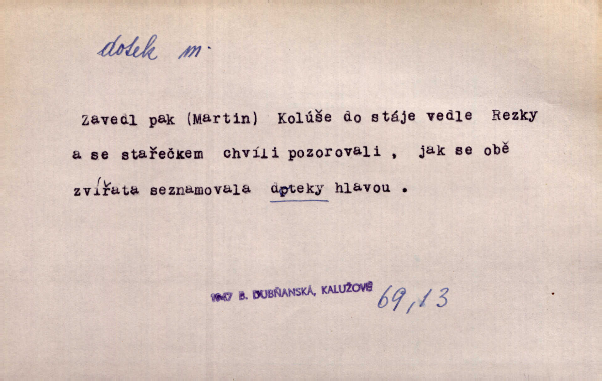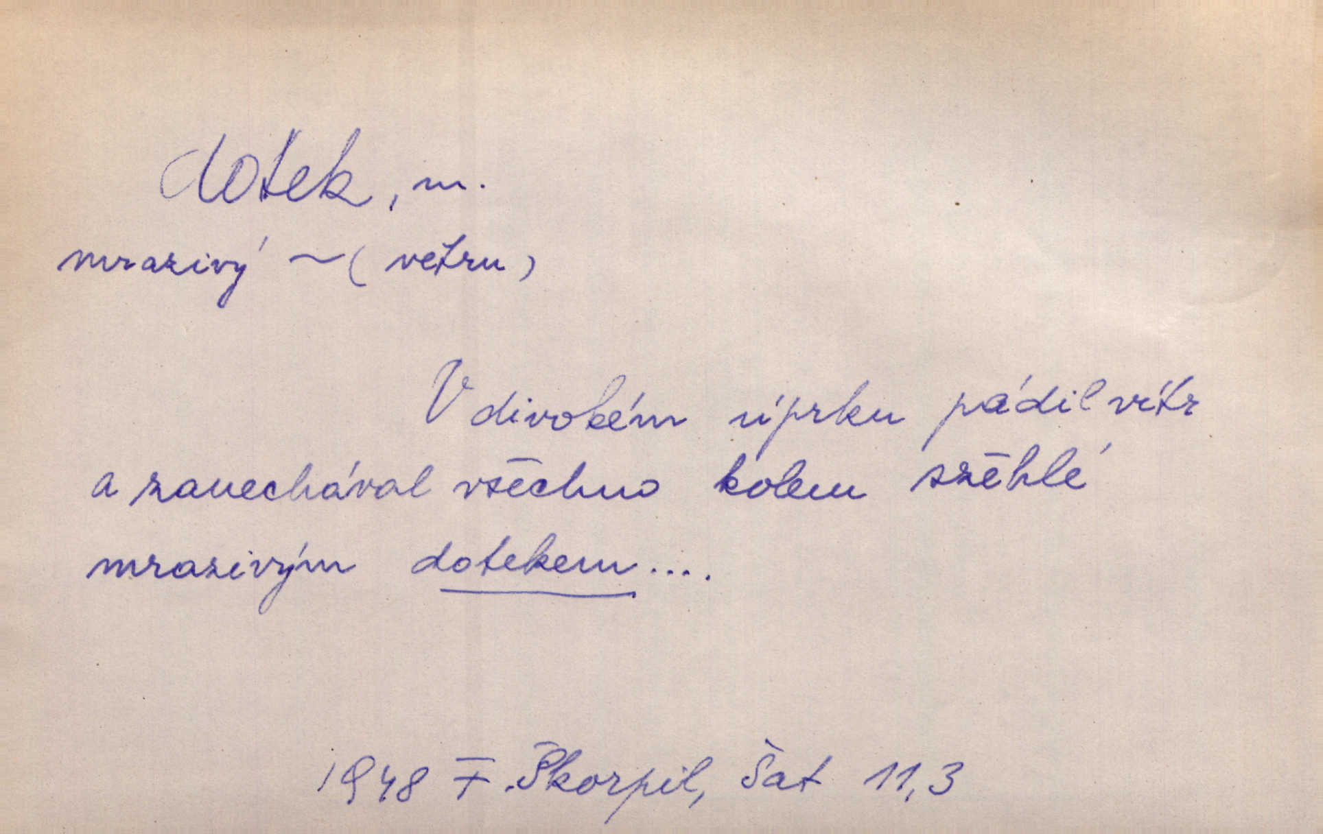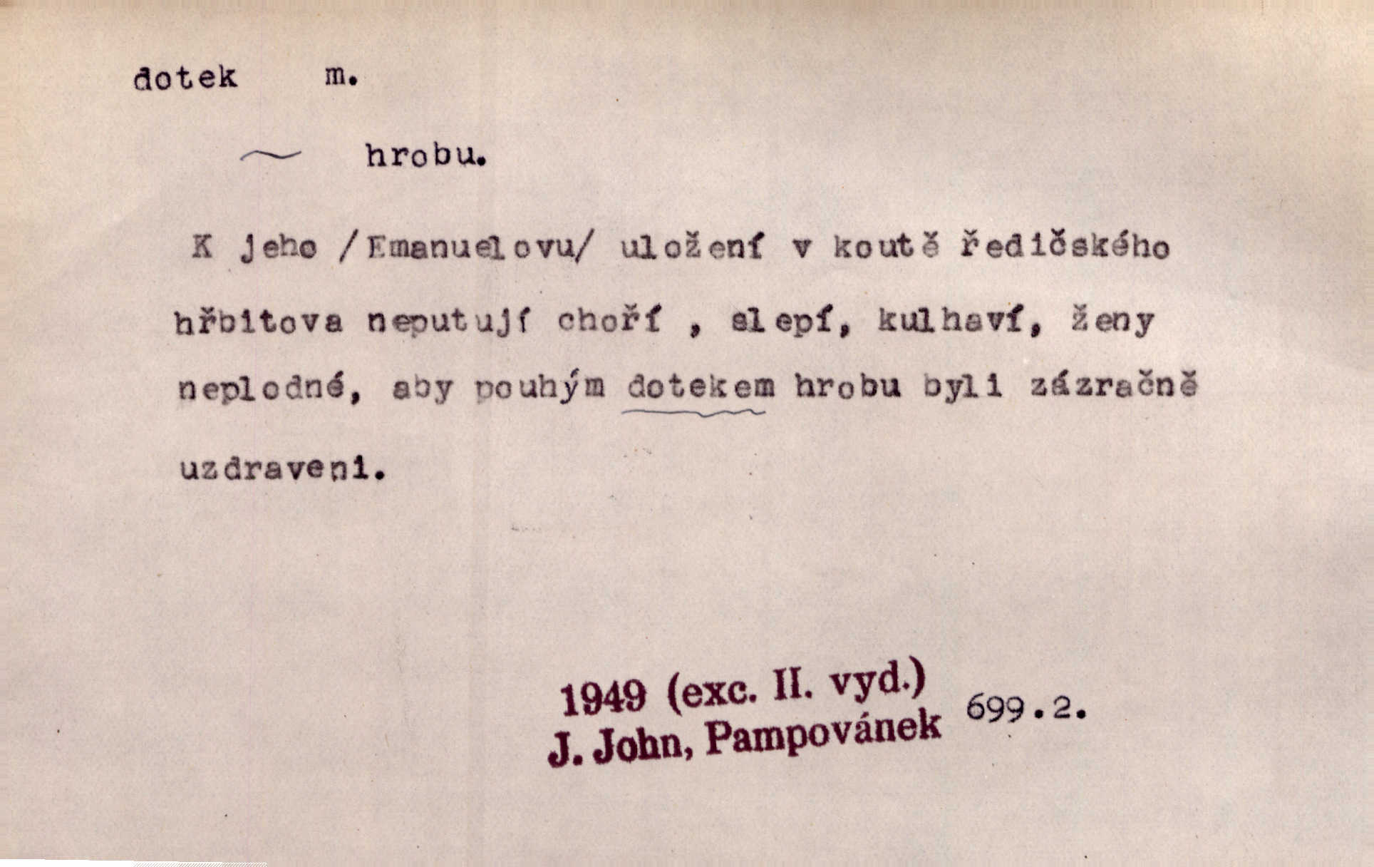 - dotek, -u m. dotknutí. Cítila, že se ta nemoc zrovna hrkotem z ní ztrácí pod teplými doteky starostlivé ruky. A. Mrš. Těl. Předklon s dotekem země dlaněmi. Těl. soust. Počal chápati krásu zvuku a rozkoš slunečního doteku. Olb. Ještě jako by cítila chladivý dotek vody pramene. Dyk. D El. tech. spojení dvou vodičů, jimiž prochází elektrický proud, kontakt. Geom. dotek dvojný, dotek křivek, ploch. Sr. dotyk.