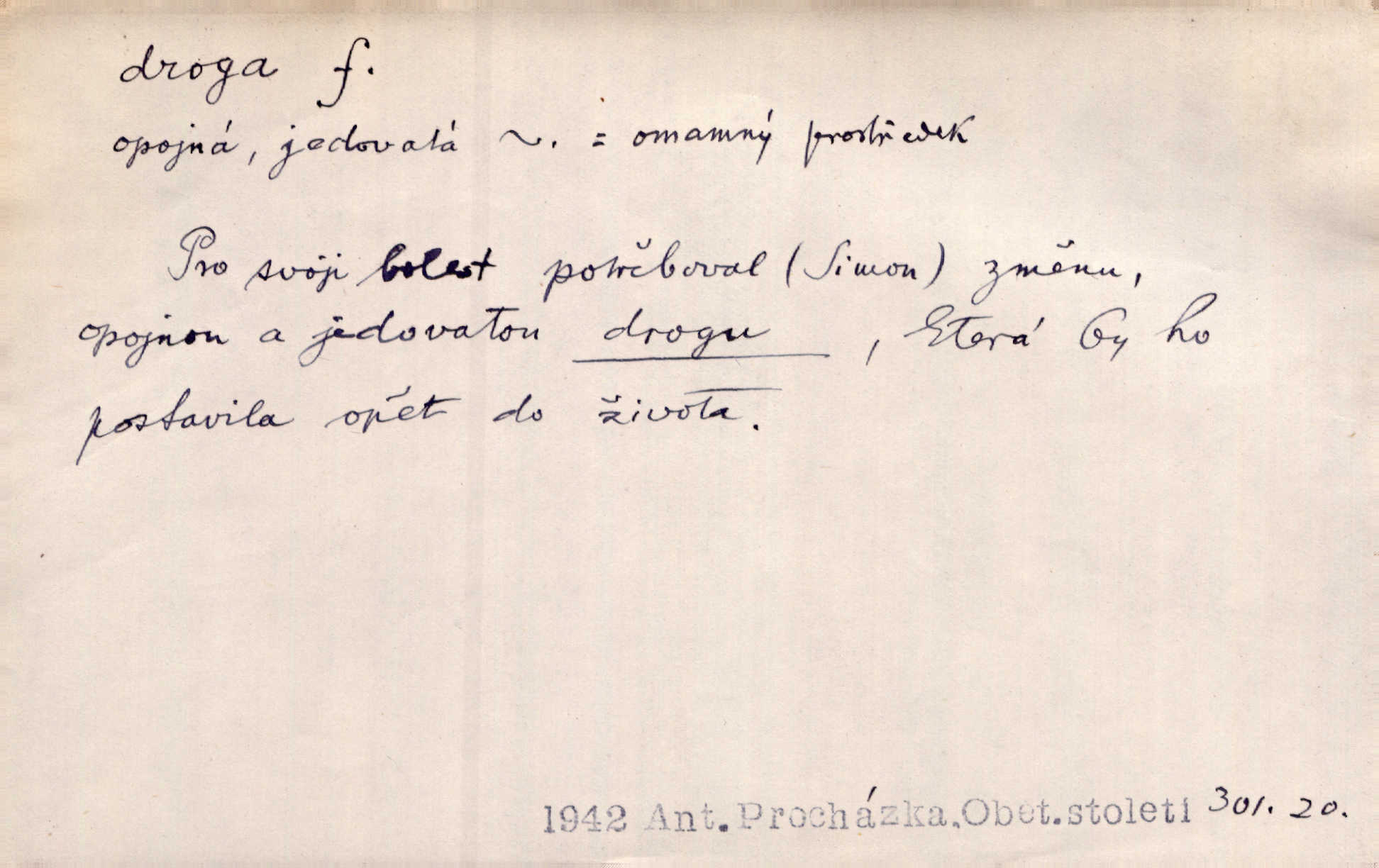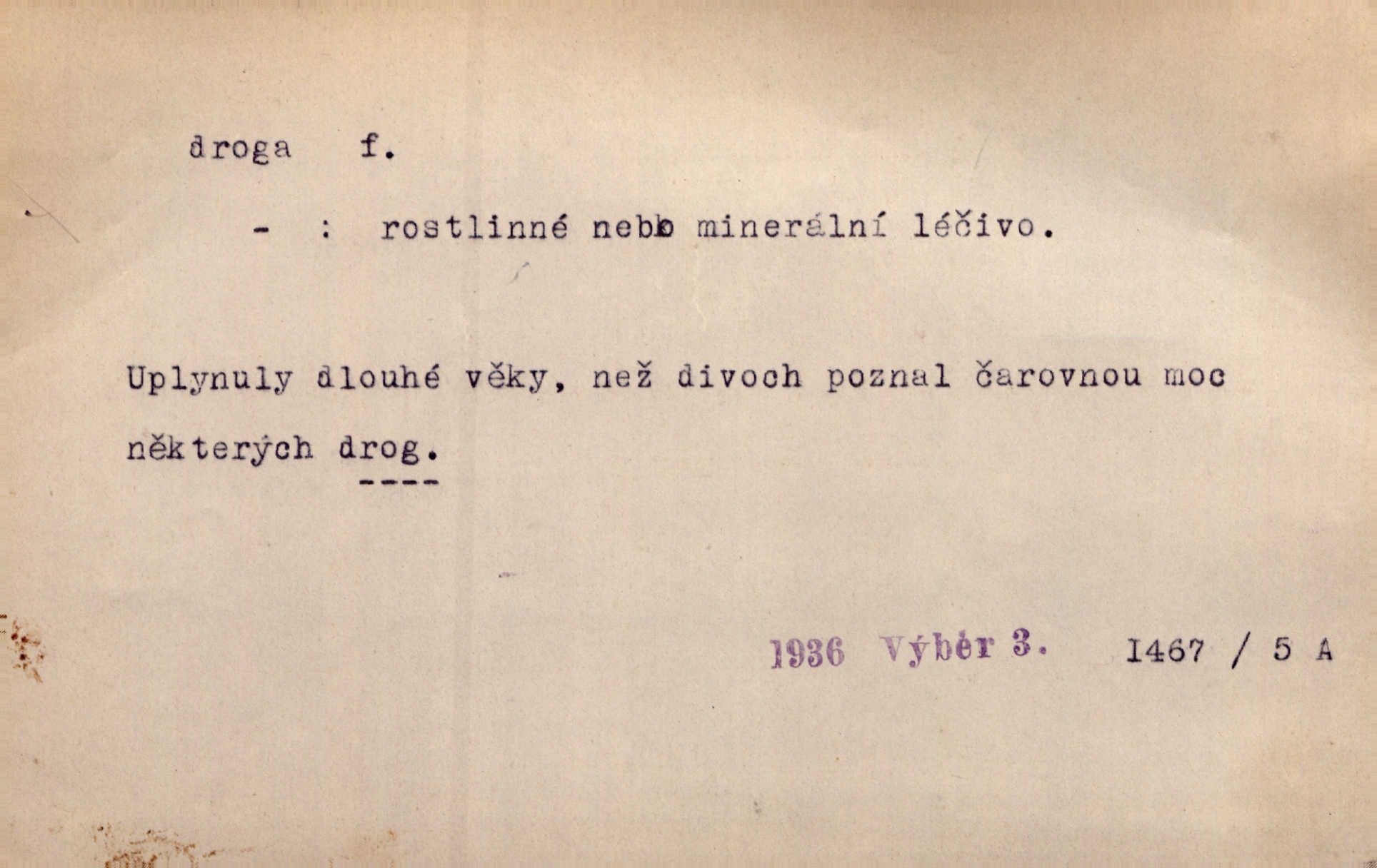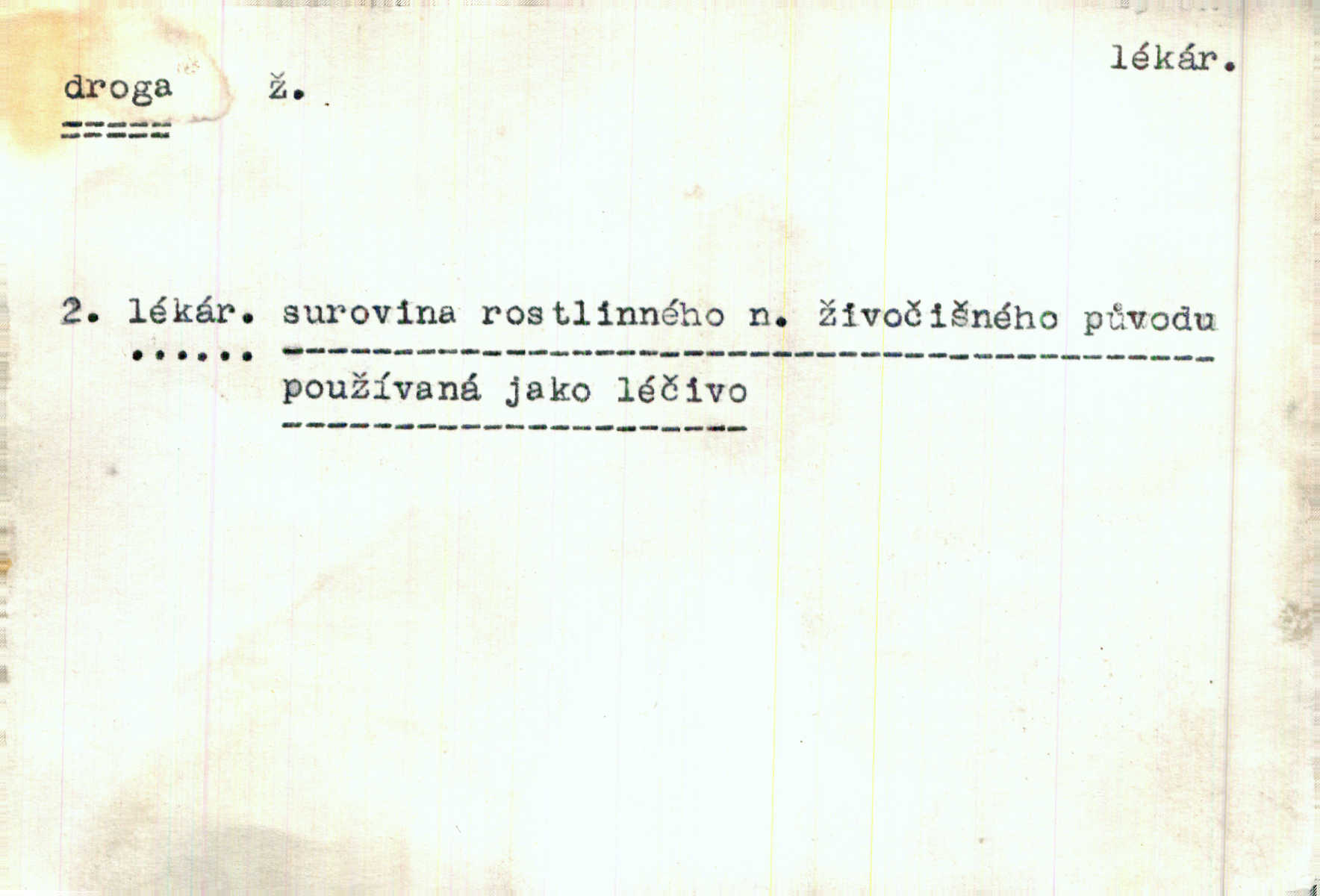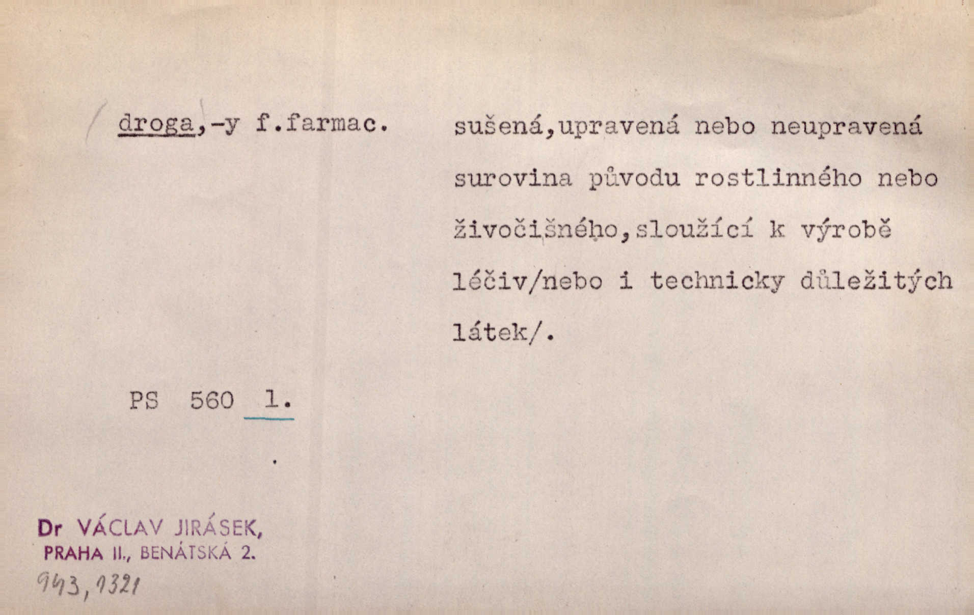 surovina, která může být sama léčivem n. z které se léčiva vyrábějí; prostředek omamující.