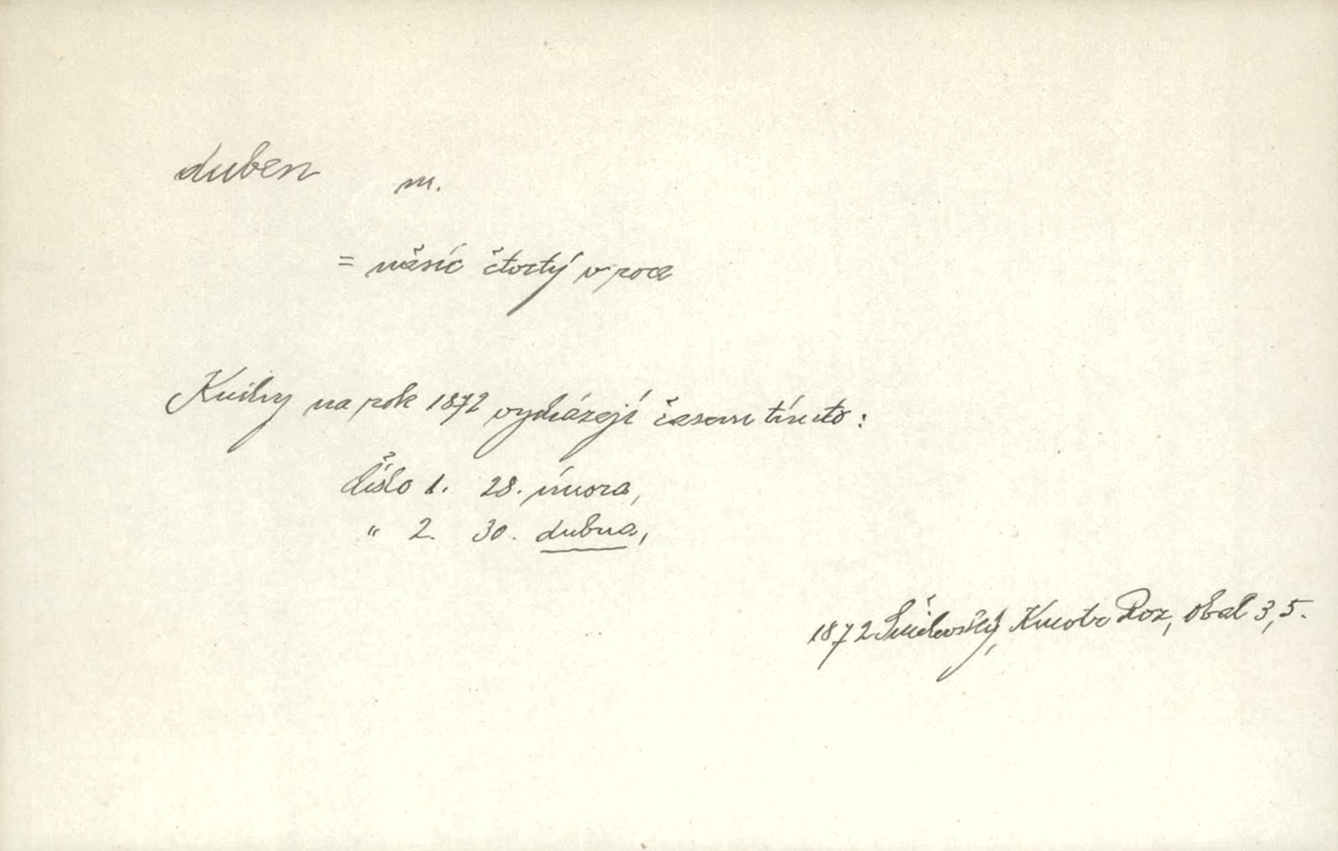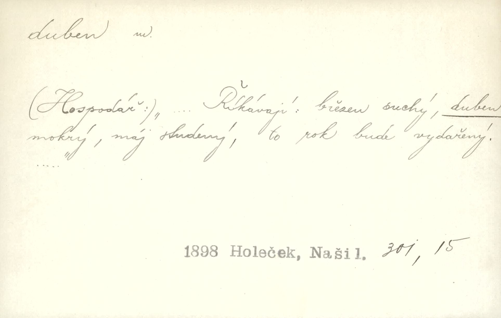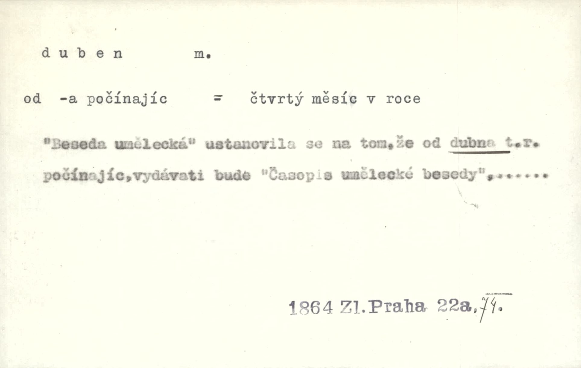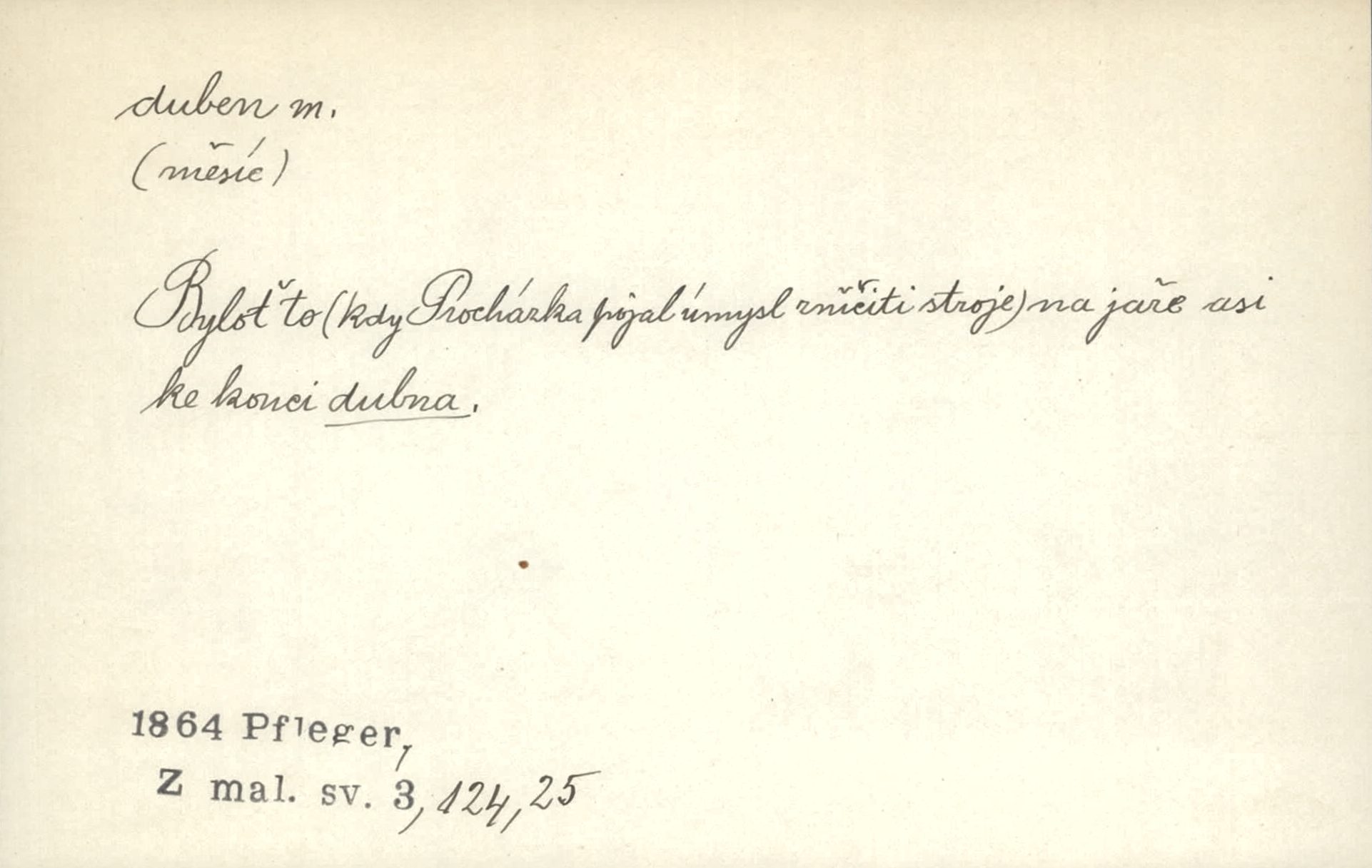 - duben, -bna m. čtvrtý měsíc v roce. Říkávají: březen suchý, duben mokrý, máj studený, to rok bude vydařený. Hol. Duben chladný a deštivý, úroda nás navštíví. A. Mrš. Duben, ještě tam [za kamny] budem. Pořek.