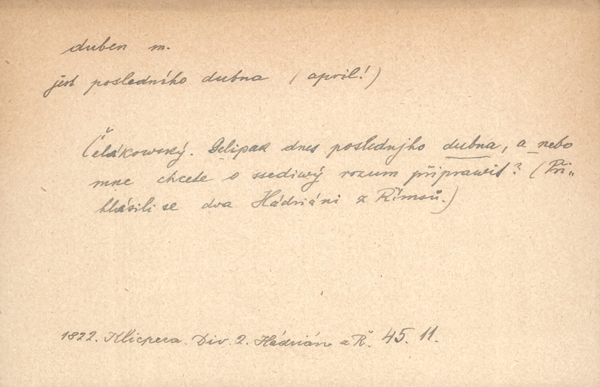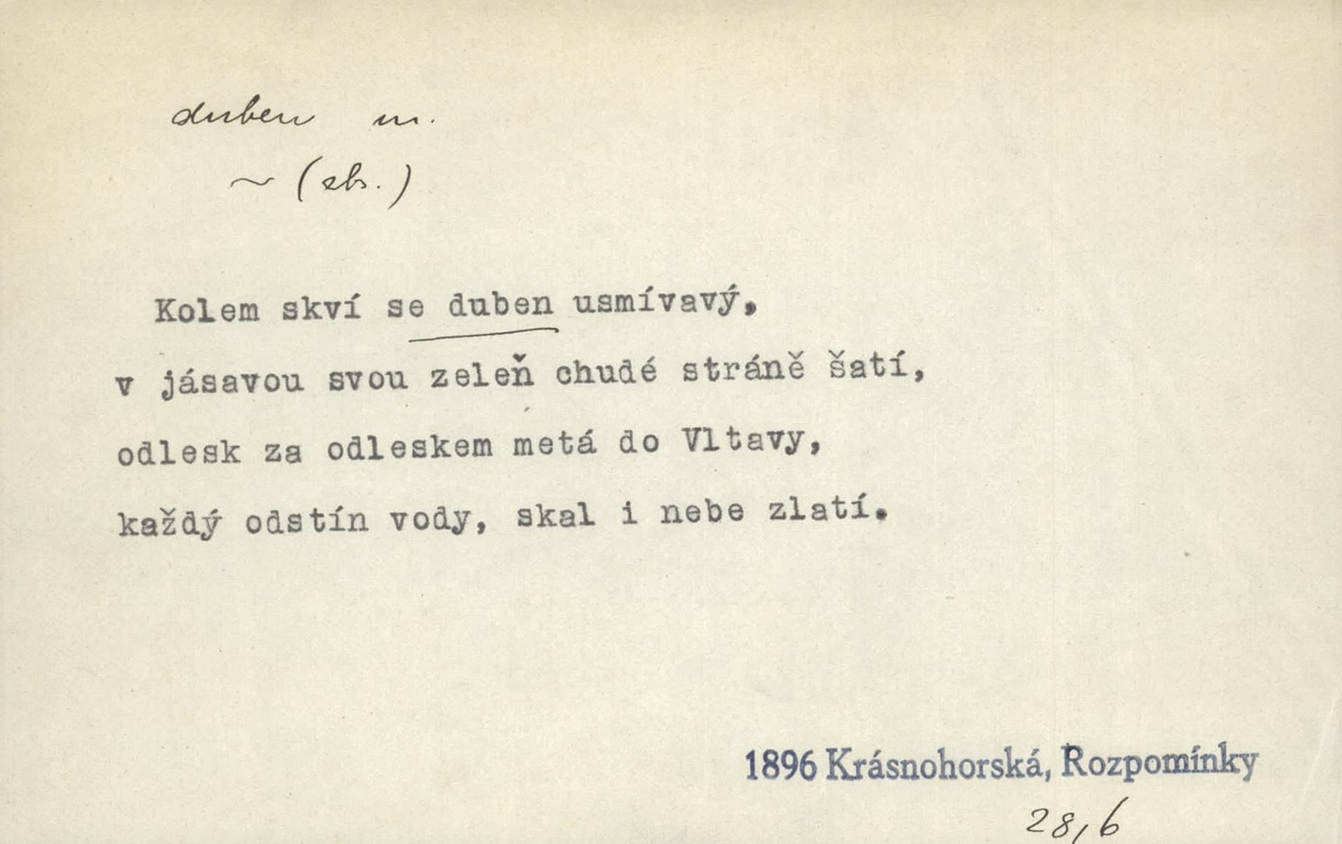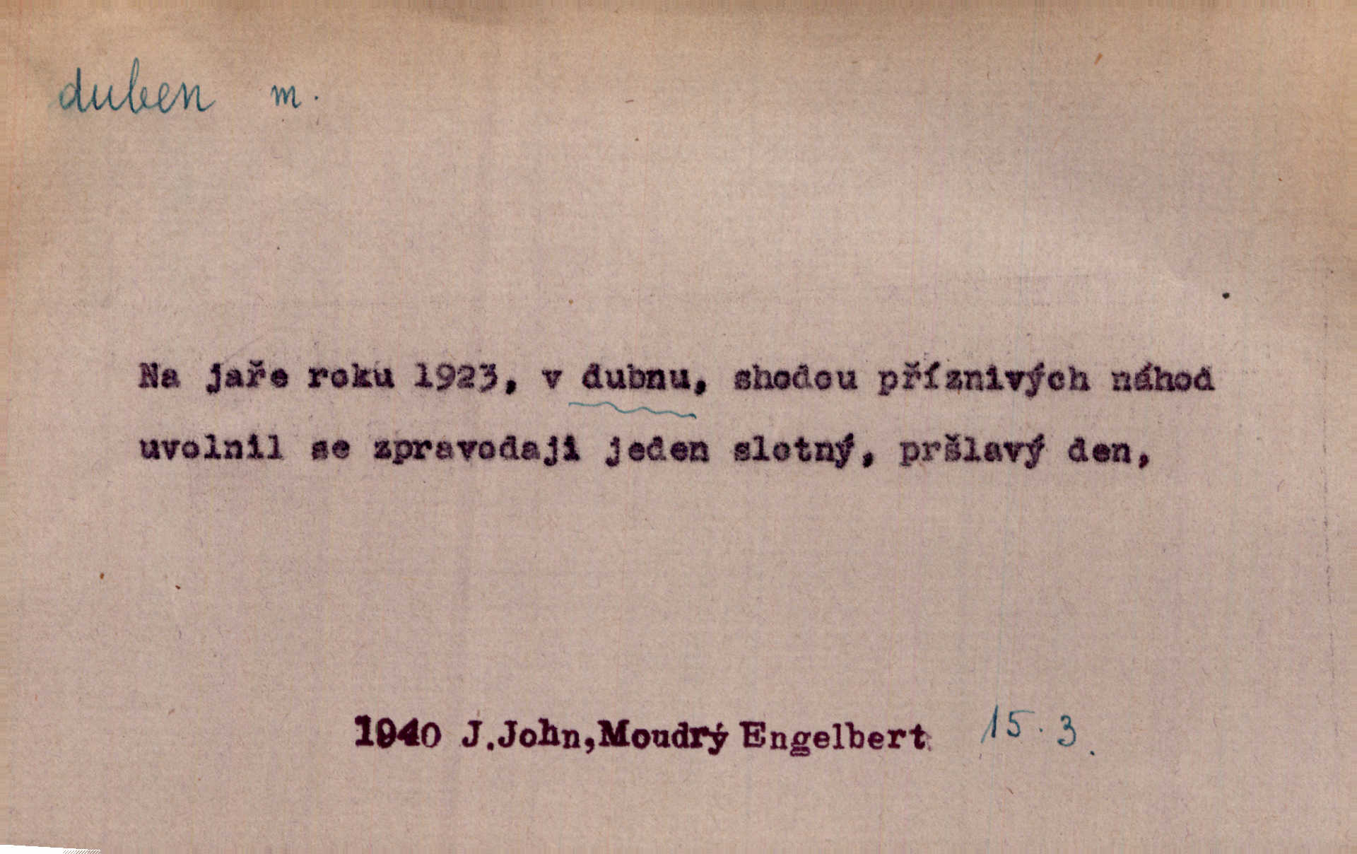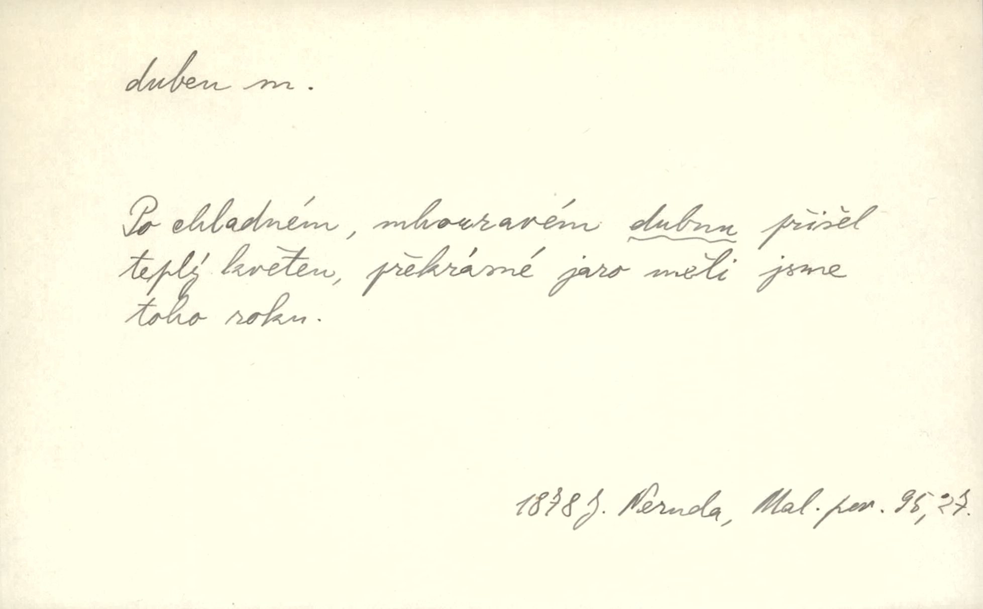 - duben, -bna m. čtvrtý měsíc v roce. Říkávají: březen suchý, duben mokrý, máj studený, to rok bude vydařený. Hol. Duben chladný a deštivý, úroda nás navštíví. A. Mrš. Duben, ještě tam [za kamny] budem. Pořek.