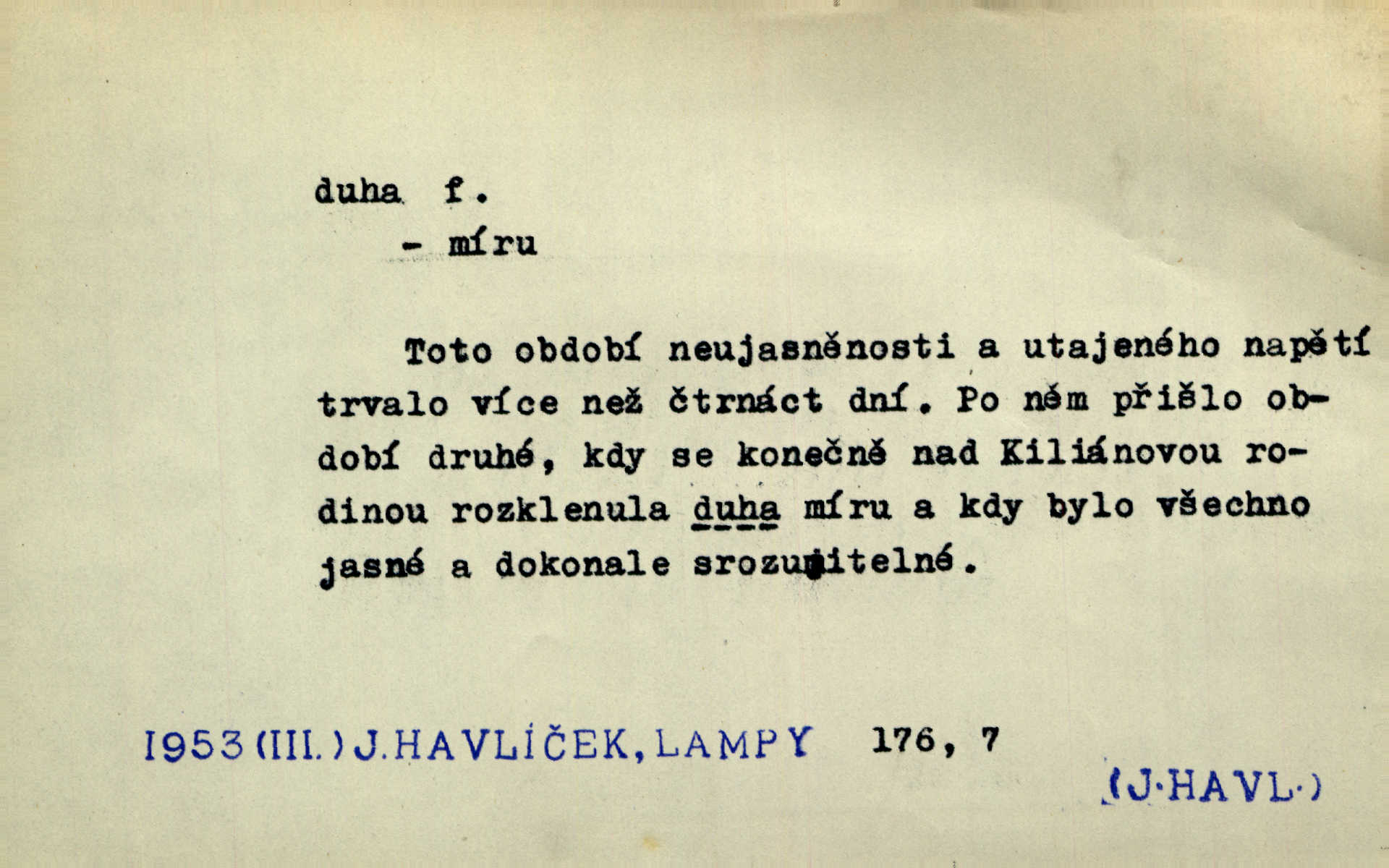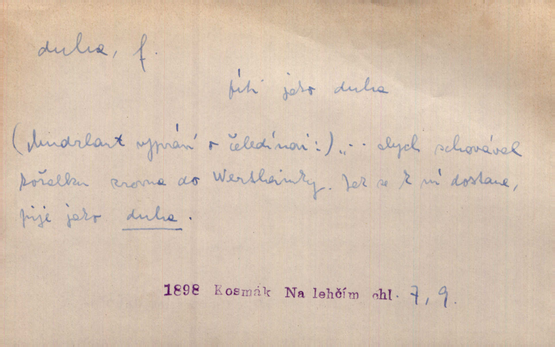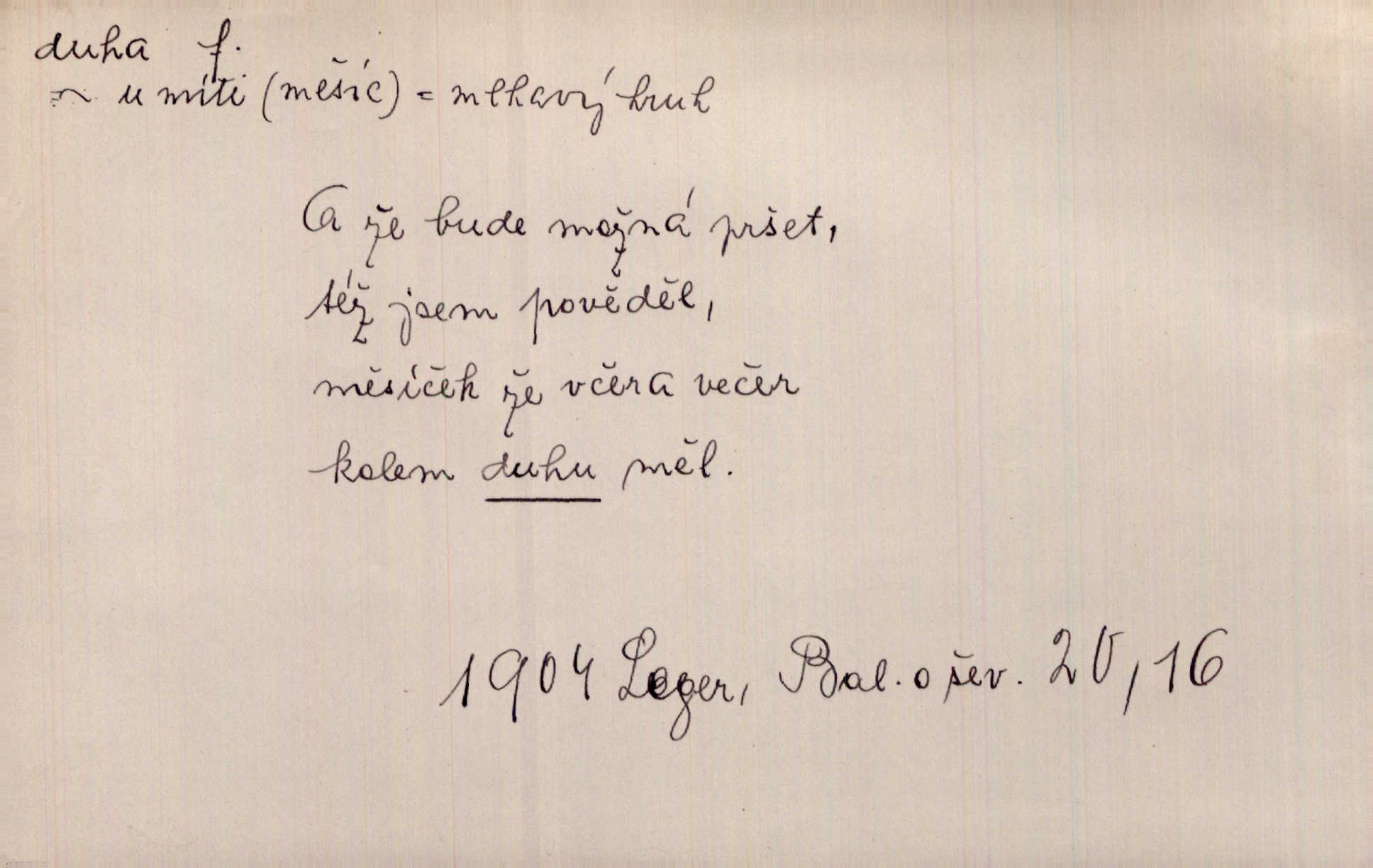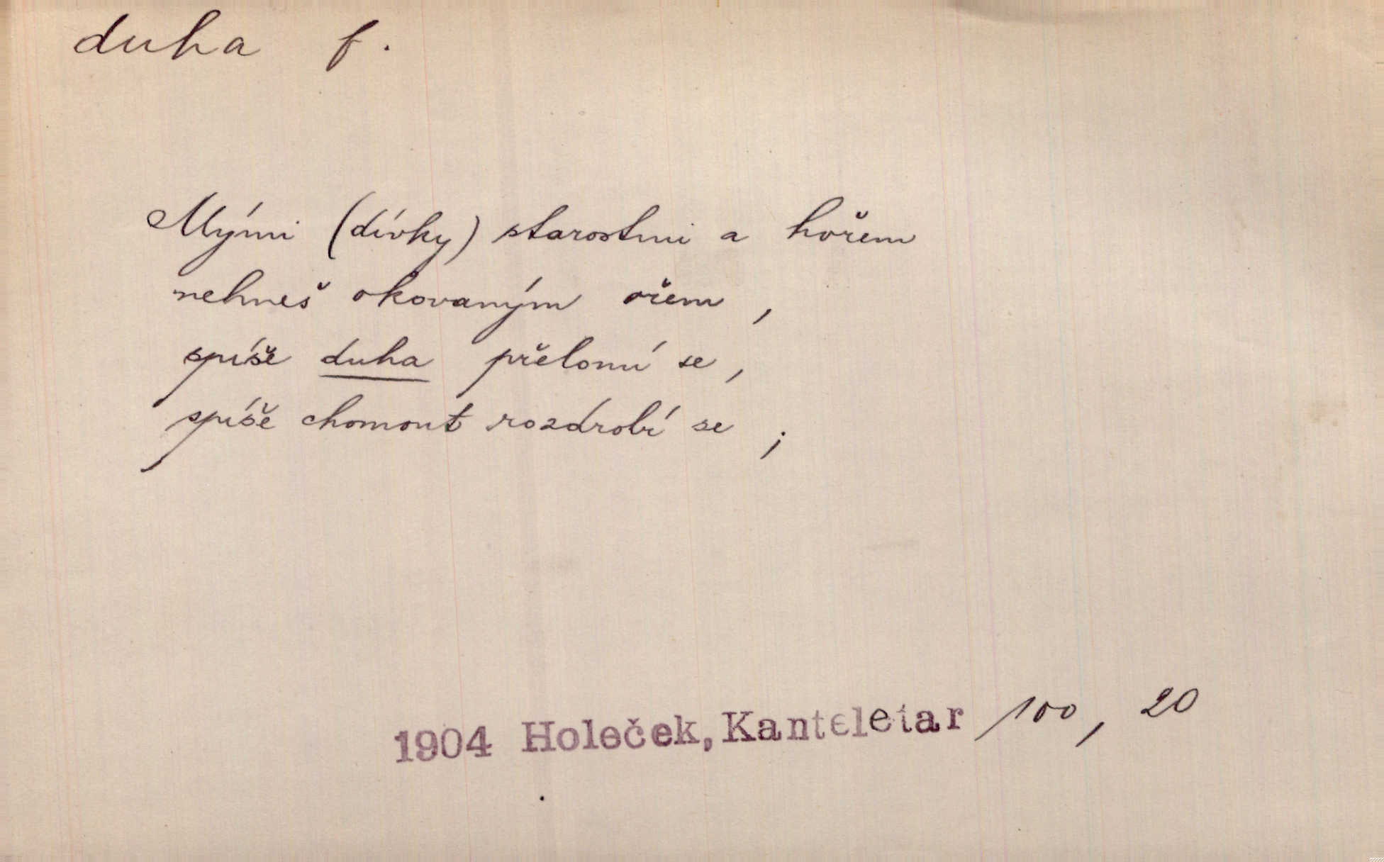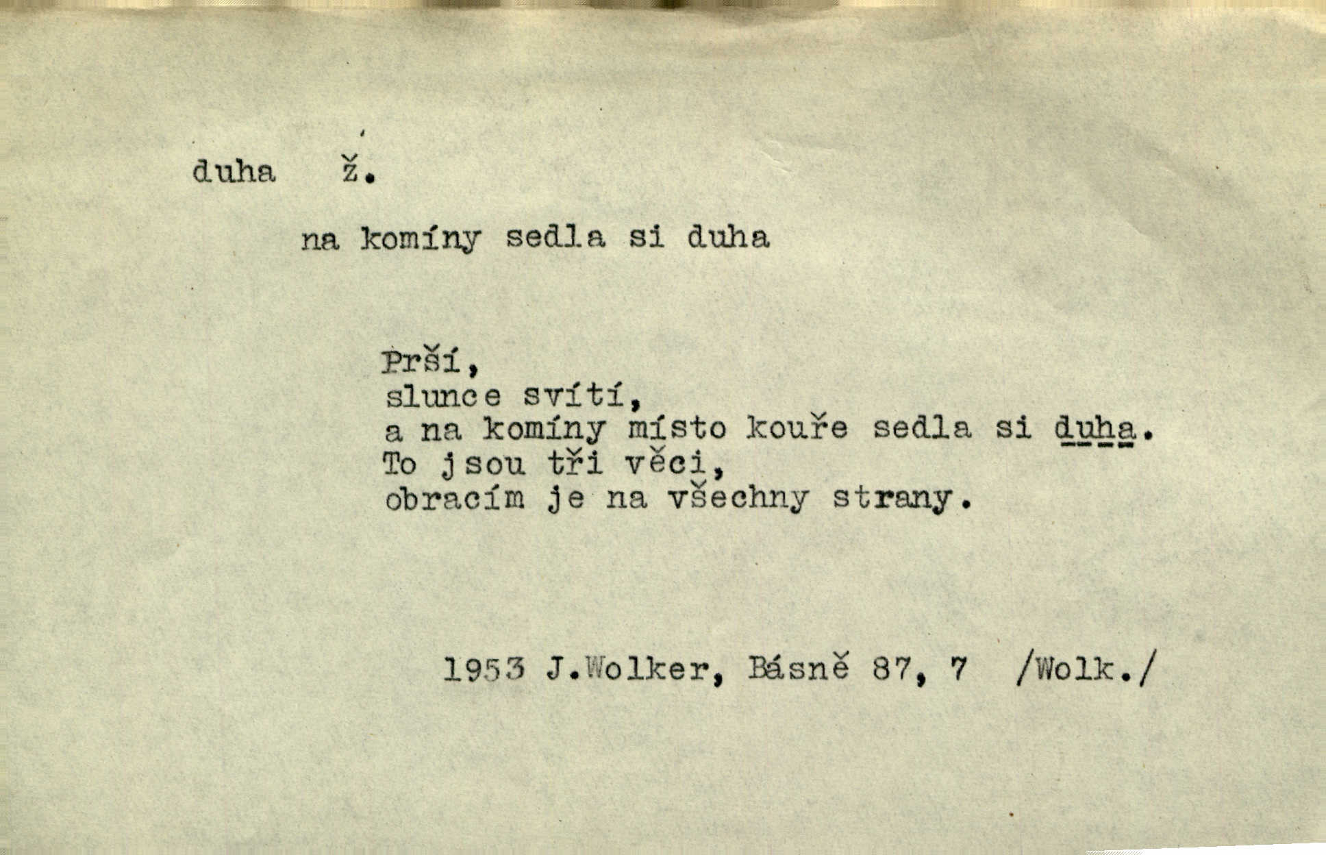 - duha, -y f. optický úkaz vznikající lomem světelných paprsků ve vodních kapkách, zejm. lomem slunečních paprsků v kapkách dešťových. Nad Silůvkou sklenula se překrásná duha. A. Mrš. Duha hlavní. Duha vedlejší s opačným pořádkem barev. Přen. o něčem pestrém. Stobarevnou duhu v širý věnec splítají [kvítky]. Krás. Na pasu pak vyšívaném pruhu zříti skvostů vyjasněnou duhu. Heyd. Nad rozpoutanou bouří se rozklene melodická duha (v h-moll). K. Čap. Nad naší zemí vzplane duha míru. Mach. Všichni pili jako duhy mnoho. Herb. D Bedn. dřevěná deska, dužina. [Bednář] pracoval zde v dílně, kde krájeli duhy sudů. Lang. D část koňského postroje u Rusů. Duha jako čásť koňské postroje jest dřevěný oblouk, pnoucí se nad krkem koňovým od jedné oje ke druhé; mezi nimi zapřažen jest kůň. Hol.