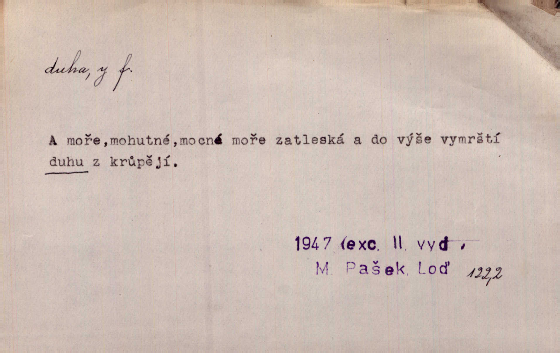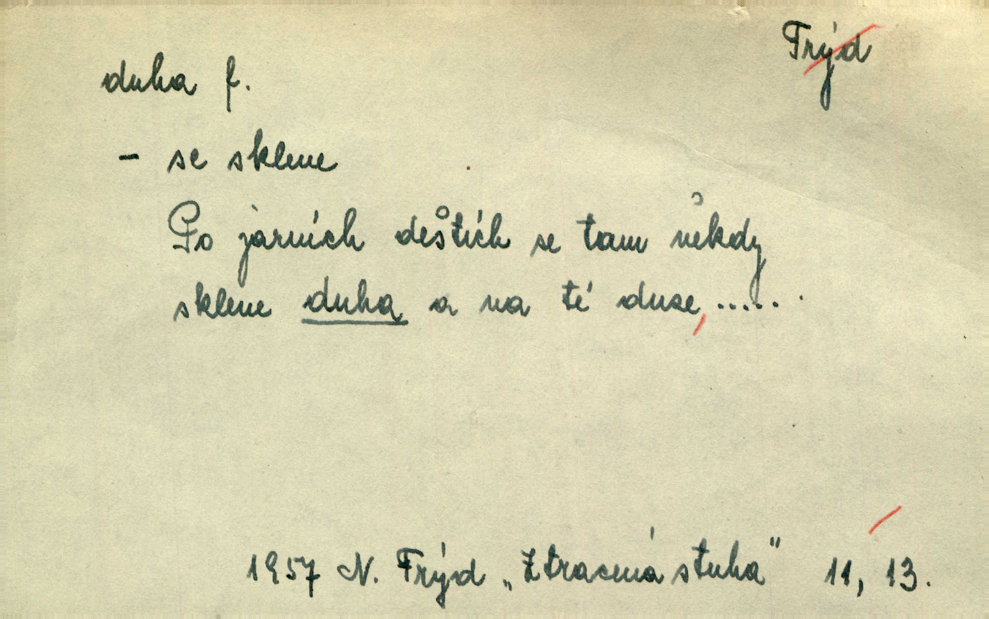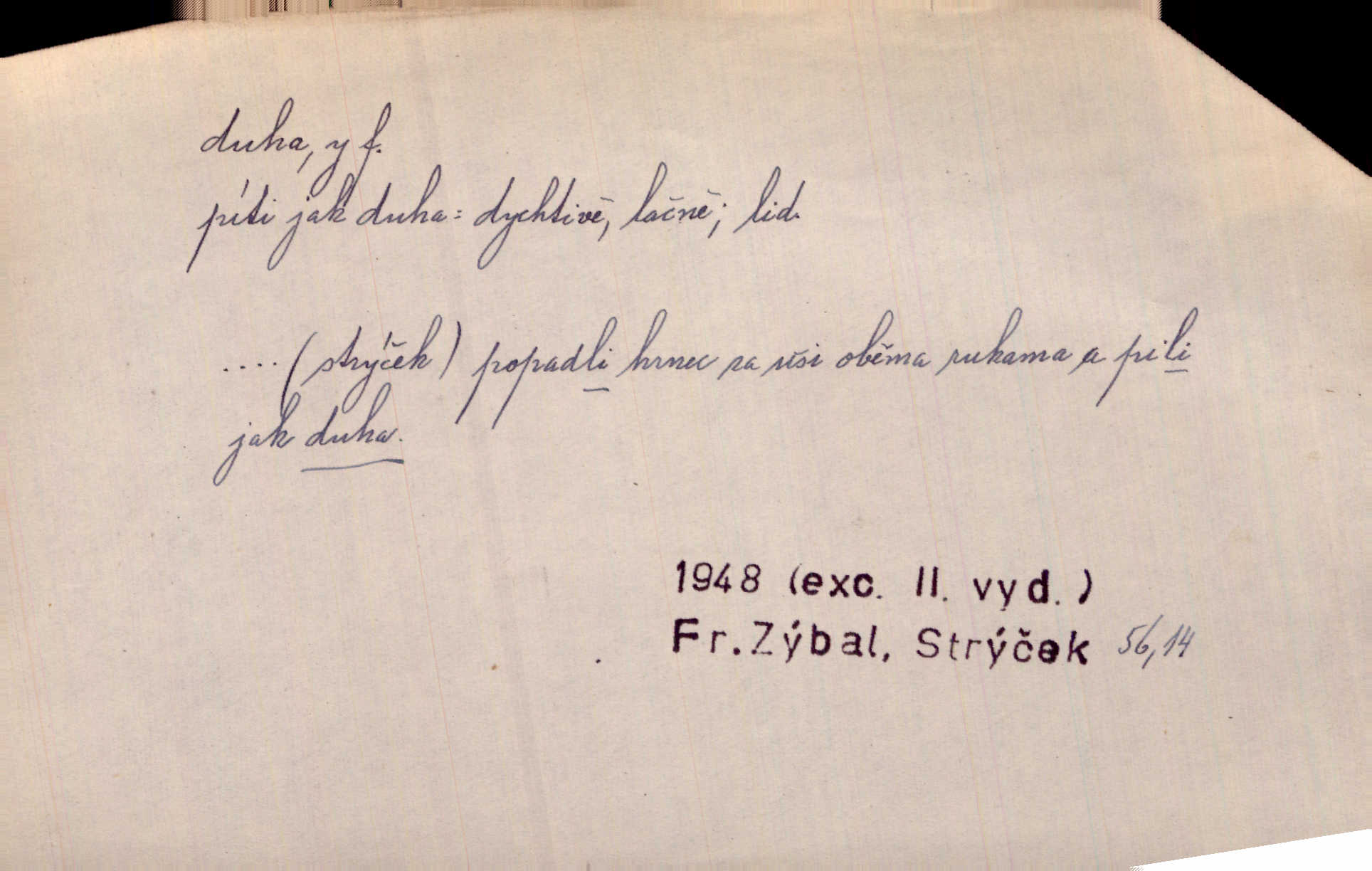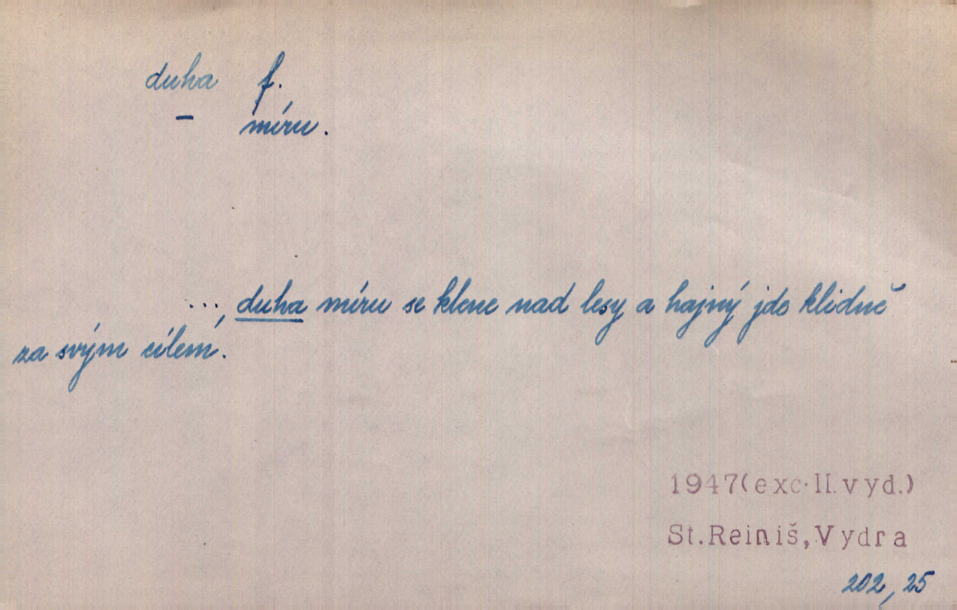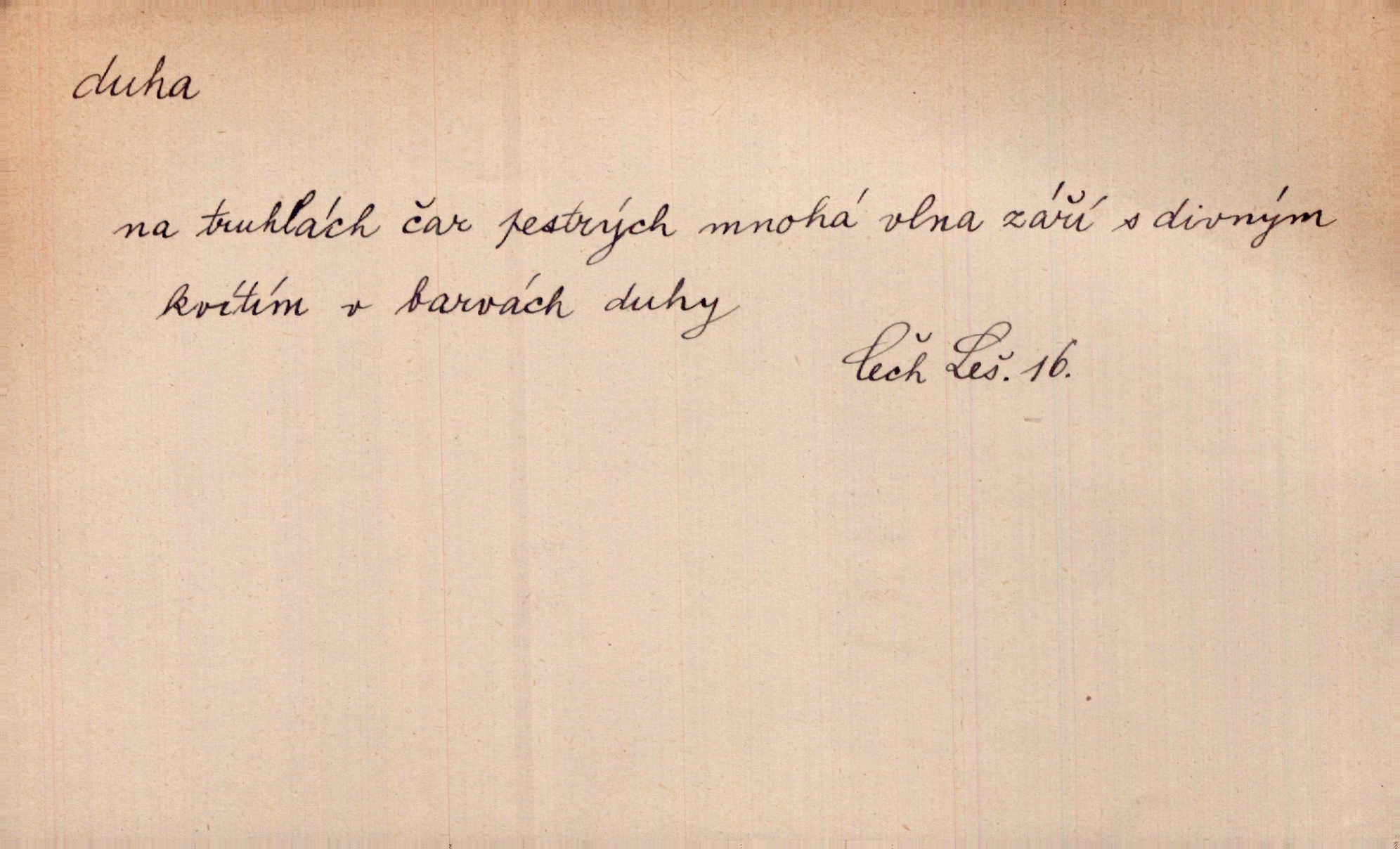 - duha, -y f. optický úkaz vznikající lomem světelných paprsků ve vodních kapkách, zejm. lomem slunečních paprsků v kapkách dešťových. Nad Silůvkou sklenula se překrásná duha. A. Mrš. Duha hlavní. Duha vedlejší s opačným pořádkem barev. Přen. o něčem pestrém. Stobarevnou duhu v širý věnec splítají [kvítky]. Krás. Na pasu pak vyšívaném pruhu zříti skvostů vyjasněnou duhu. Heyd. Nad rozpoutanou bouří se rozklene melodická duha (v h-moll). K. Čap. Nad naší zemí vzplane duha míru. Mach. Všichni pili jako duhy mnoho. Herb. D Bedn. dřevěná deska, dužina. [Bednář] pracoval zde v dílně, kde krájeli duhy sudů. Lang. D část koňského postroje u Rusů. Duha jako čásť koňské postroje jest dřevěný oblouk, pnoucí se nad krkem koňovým od jedné oje ke druhé; mezi nimi zapřažen jest kůň. Hol.