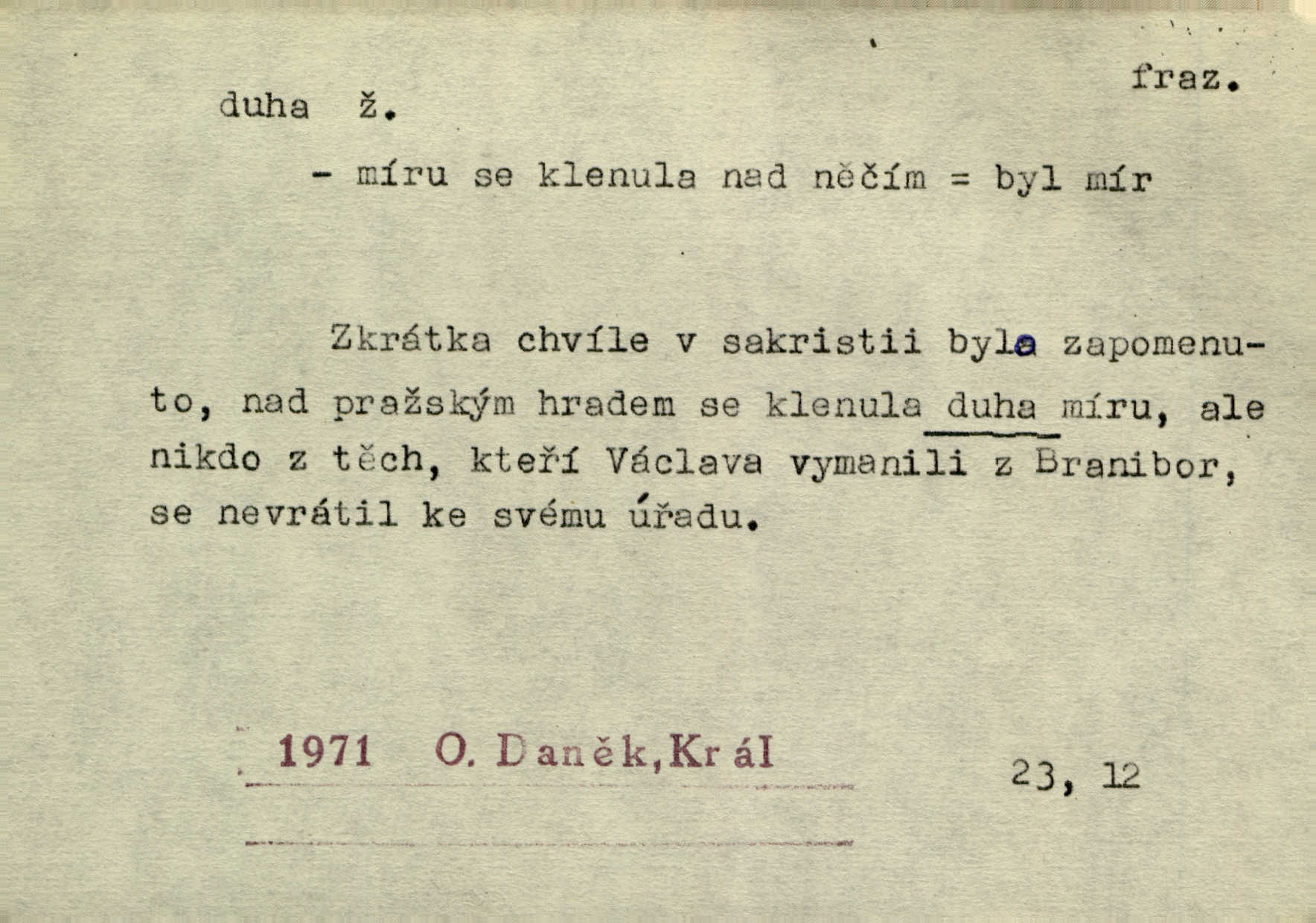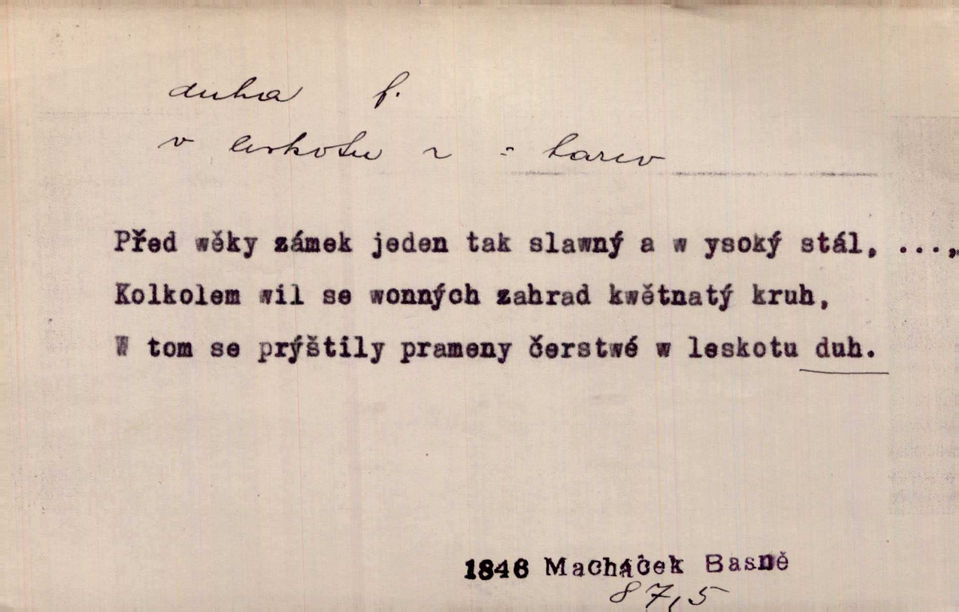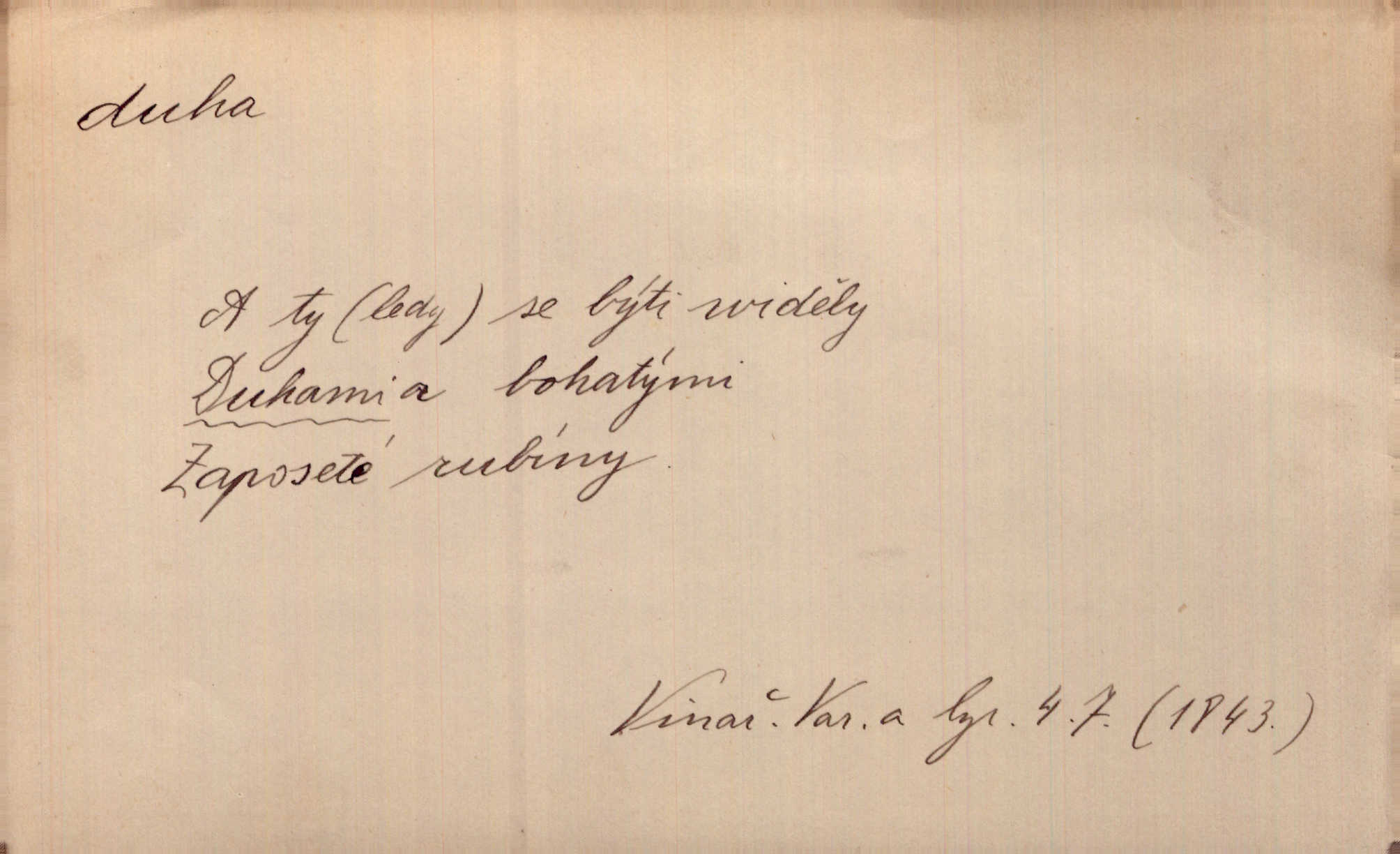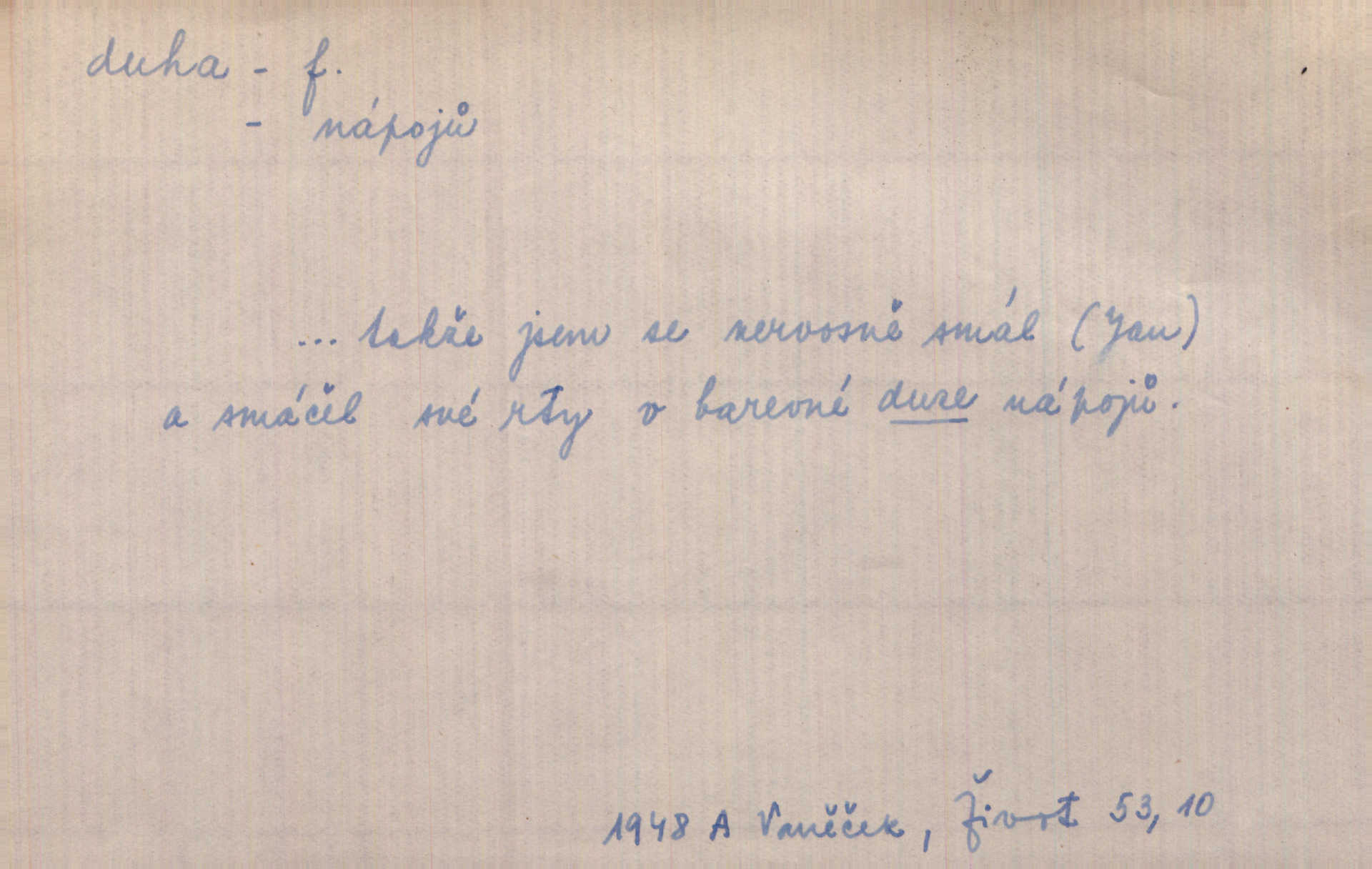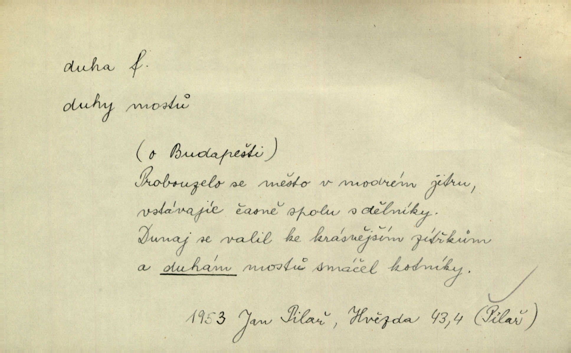 - duha, -y f. optický úkaz vznikající lomem světelných paprsků ve vodních kapkách, zejm. lomem slunečních paprsků v kapkách dešťových. Nad Silůvkou sklenula se překrásná duha. A. Mrš. Duha hlavní. Duha vedlejší s opačným pořádkem barev. Přen. o něčem pestrém. Stobarevnou duhu v širý věnec splítají [kvítky]. Krás. Na pasu pak vyšívaném pruhu zříti skvostů vyjasněnou duhu. Heyd. Nad rozpoutanou bouří se rozklene melodická duha (v h-moll). K. Čap. Nad naší zemí vzplane duha míru. Mach. Všichni pili jako duhy mnoho. Herb. D Bedn. dřevěná deska, dužina. [Bednář] pracoval zde v dílně, kde krájeli duhy sudů. Lang. D část koňského postroje u Rusů. Duha jako čásť koňské postroje jest dřevěný oblouk, pnoucí se nad krkem koňovým od jedné oje ke druhé; mezi nimi zapřažen jest kůň. Hol.