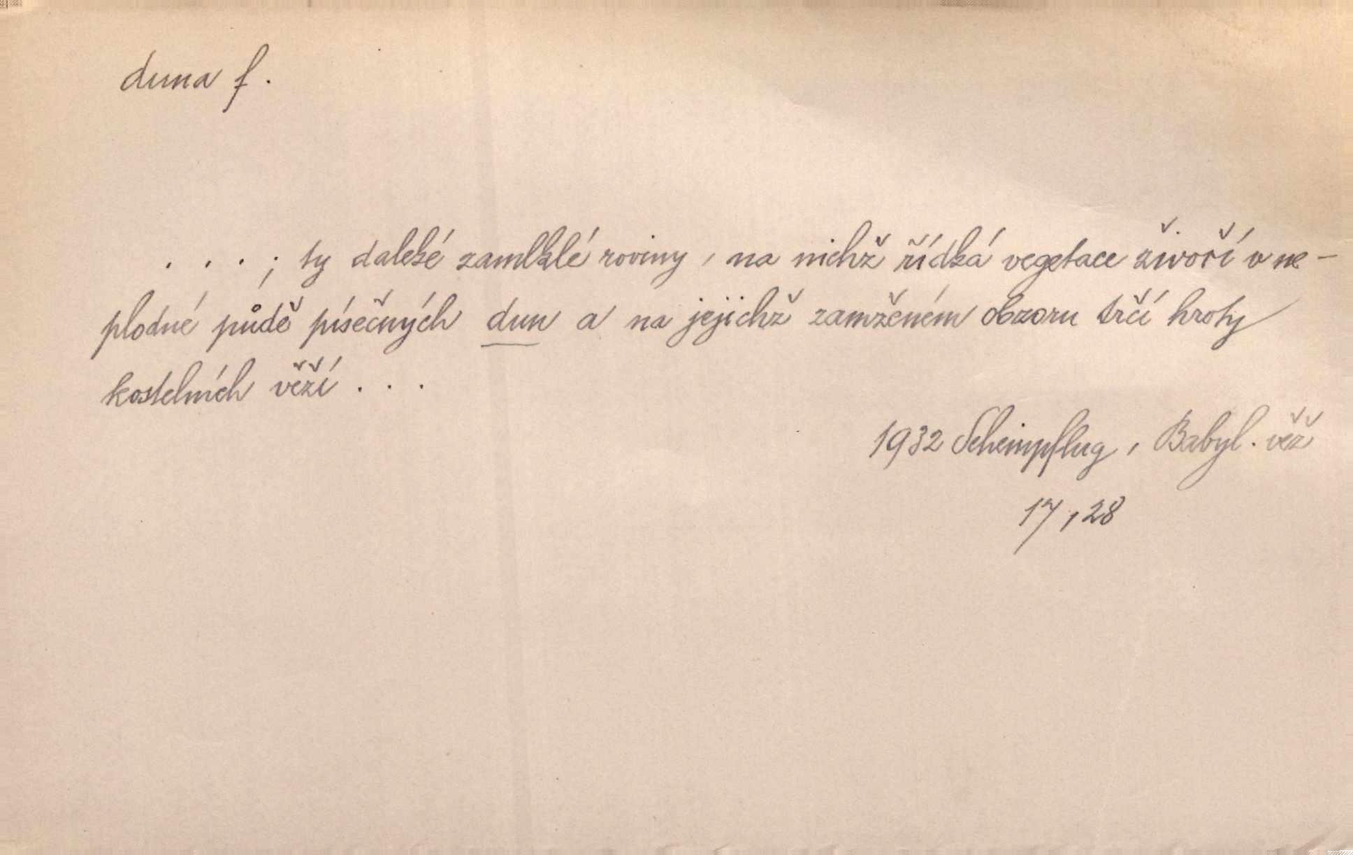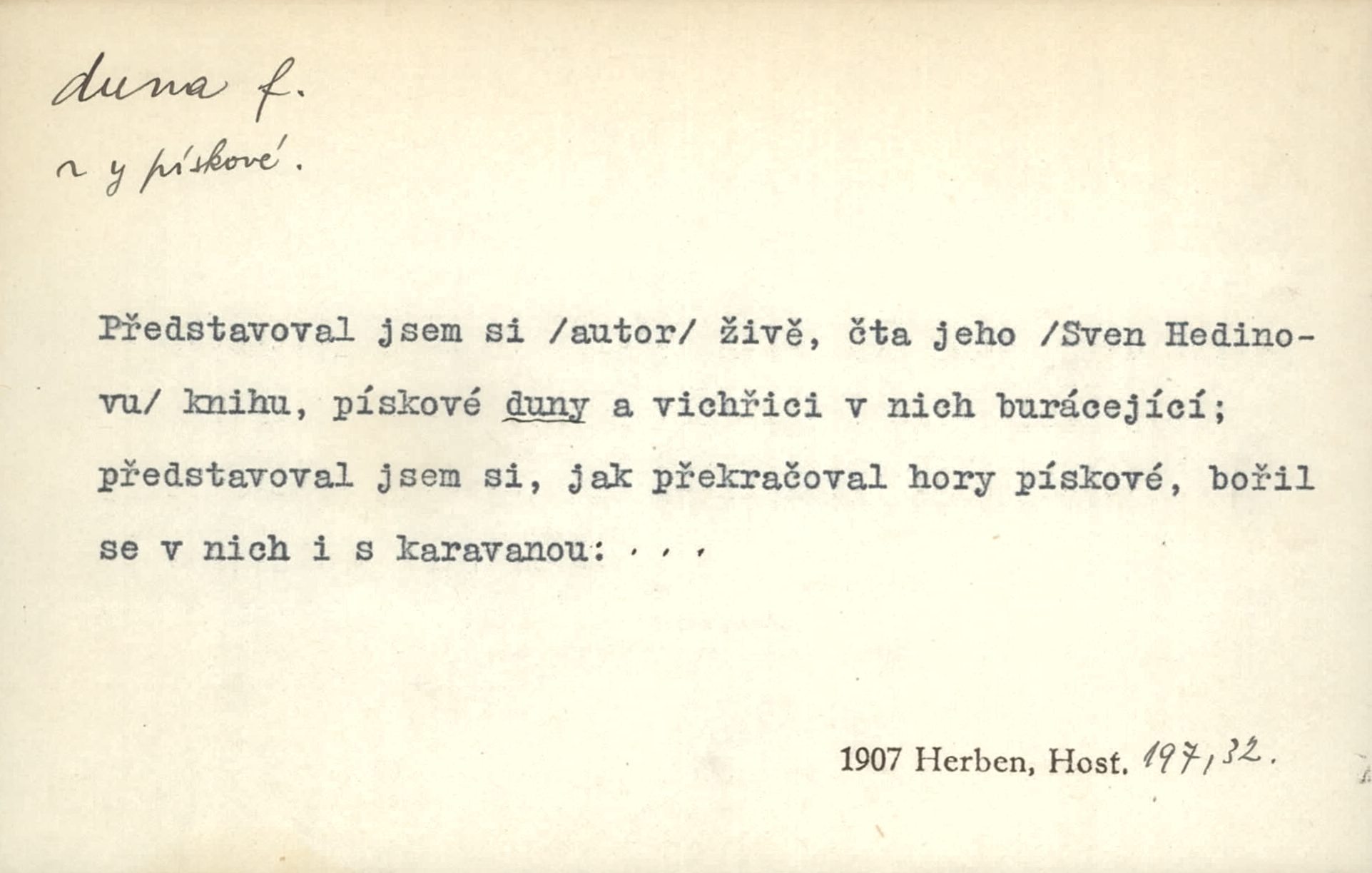 Představoval jsem si živě, čta jeho [Sven Hedina] knihu, pískové duny.