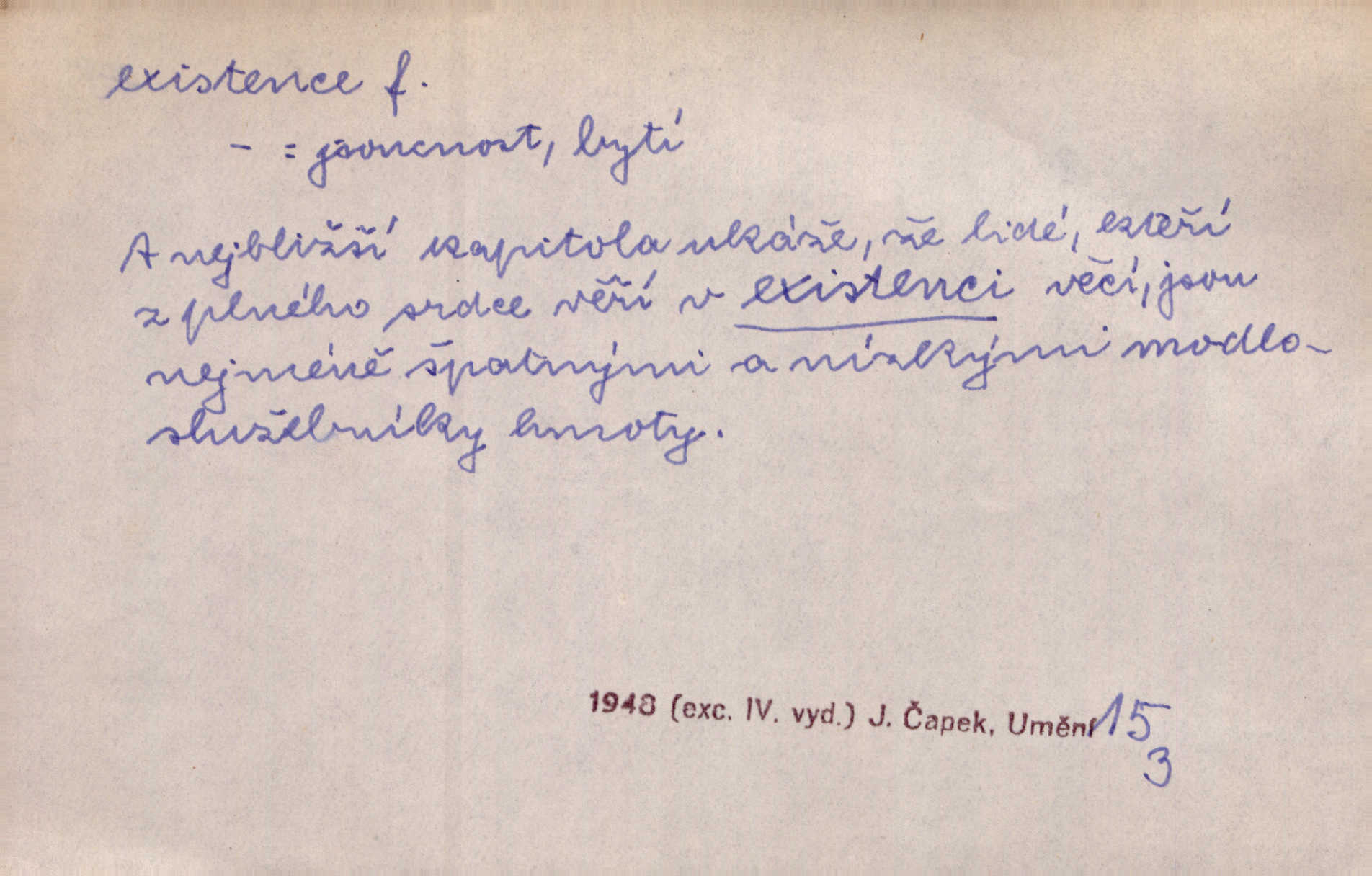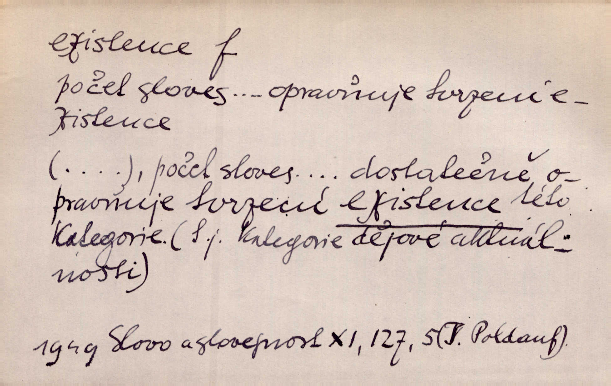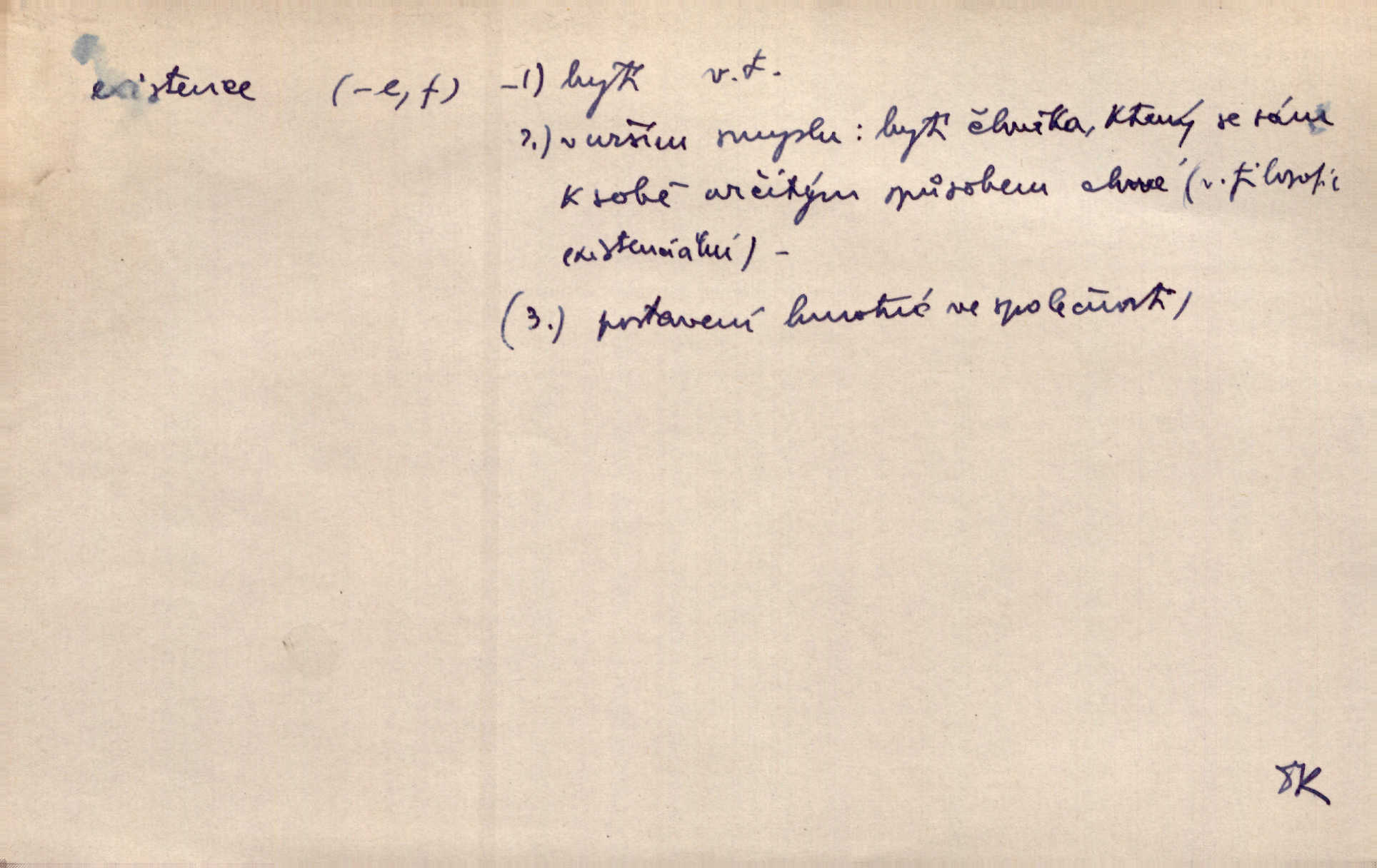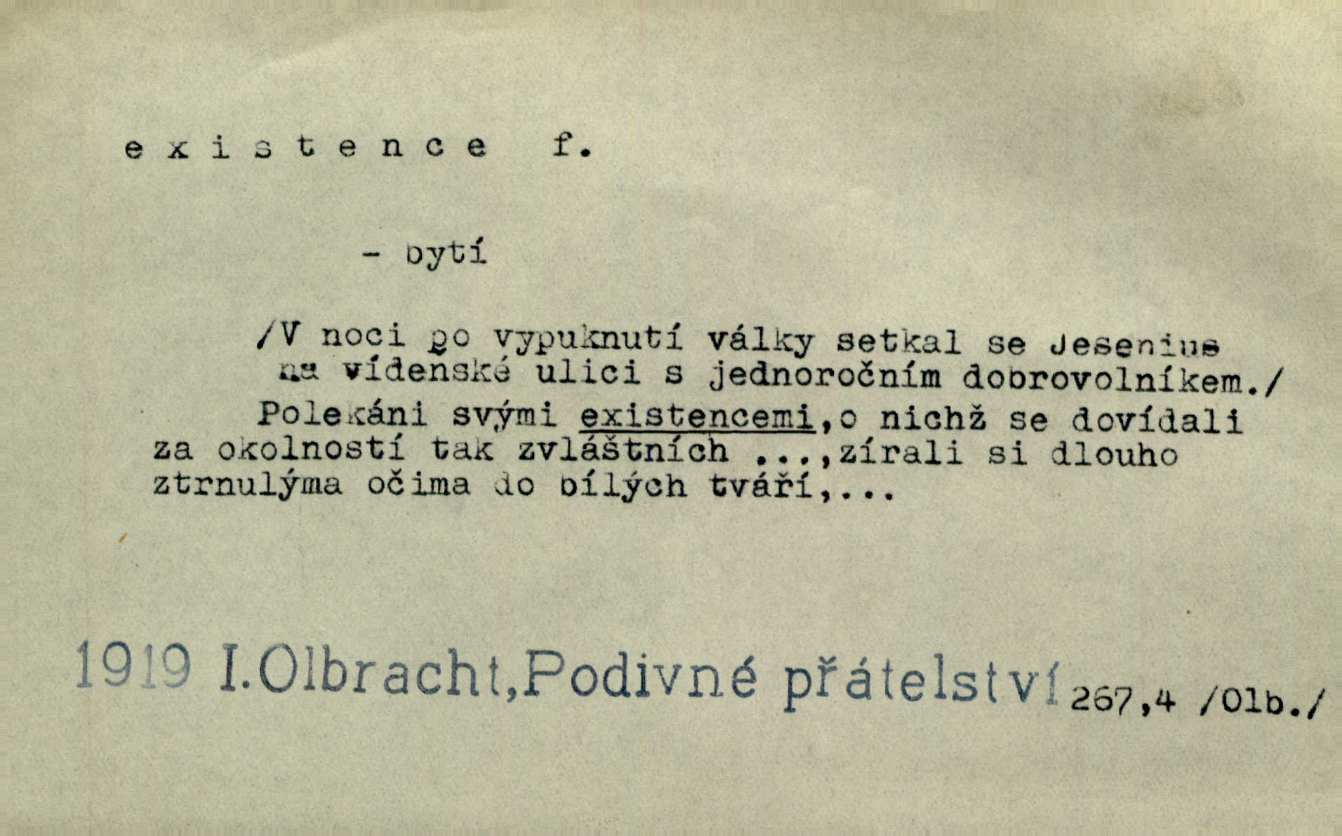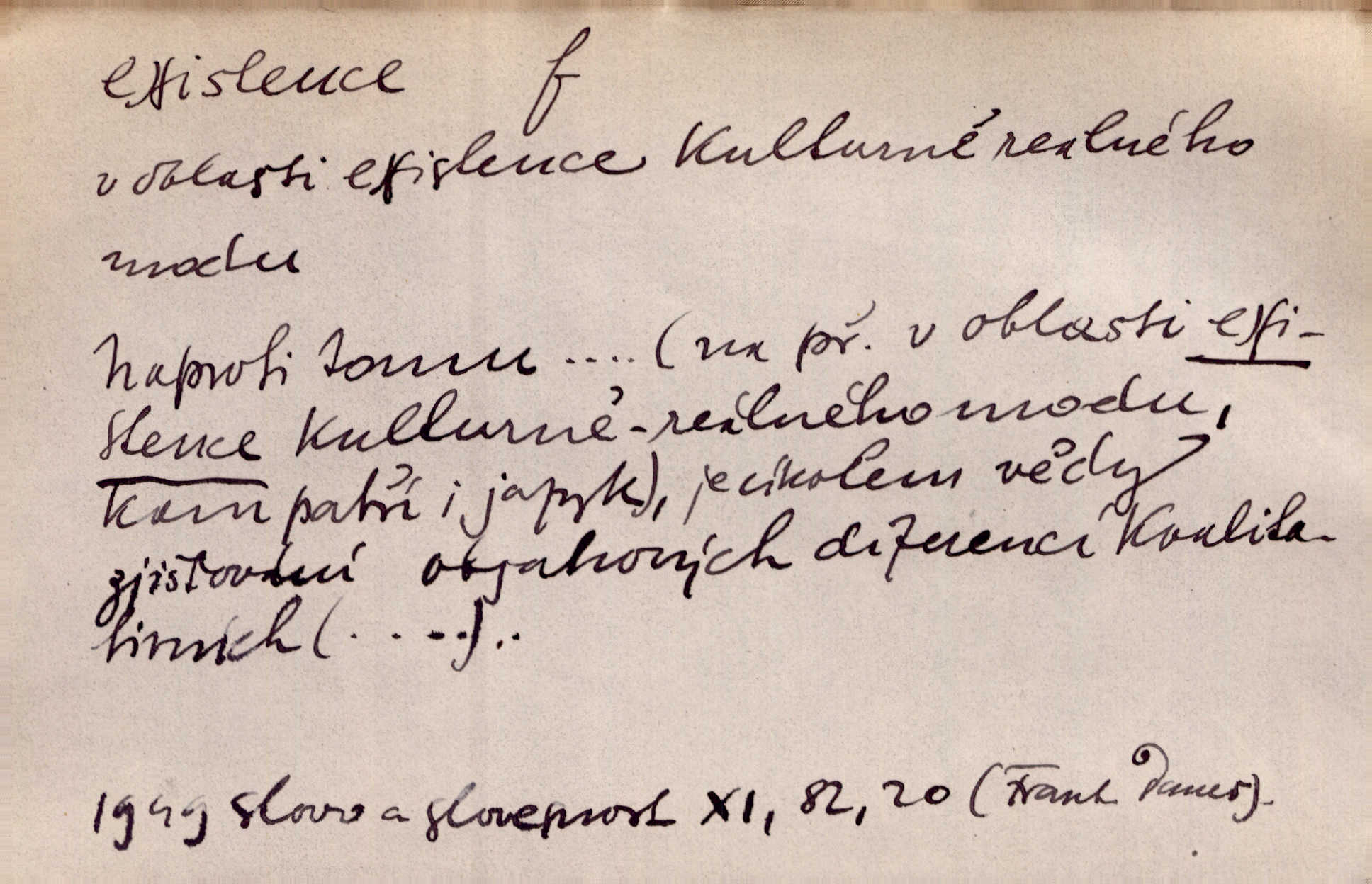 - existence, -e f. bytí; filos. jsoucnost. Přál-li jsem sobě od jakživa existenci státu Rakouského, míval jsem vždy na mysli Rakousko všem svým národům spravedlivé. Pal. D živobytí, životní postavení. On má své, ona má něco, víš, když to přijde dohromady, je to pěkná existence. Herrm. Člověk pochybné existence podezřelý. Po hlavním schodišti [zastavárny] vystupuje a sestupuje to četně jako po žebříku Jakobovu — jen že ne samí andělé: Leda andělé pochybné existence, jichž oči jsou smělostí svou podezřelé. Ner. D Pejor. osoba, člověk. Seděly tu velkoměstské existence neznámého povolání. Maj. Ztracená existence člověk sešlý, v životě ztroskotalý. Hrabě seznamoval Petra s celou tlupou německých dobrodruhů a ztracených existencí vůbec. Zey.
