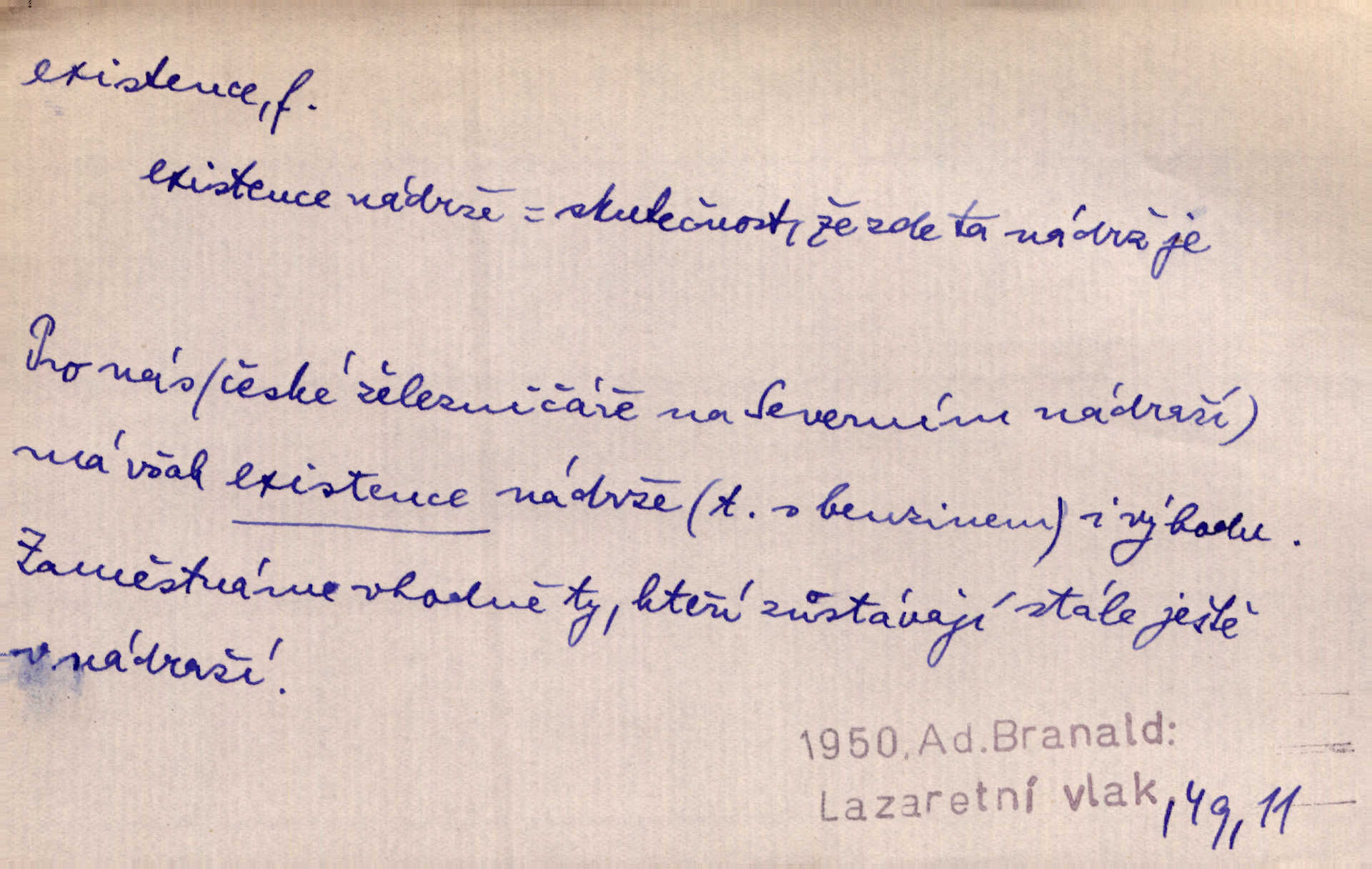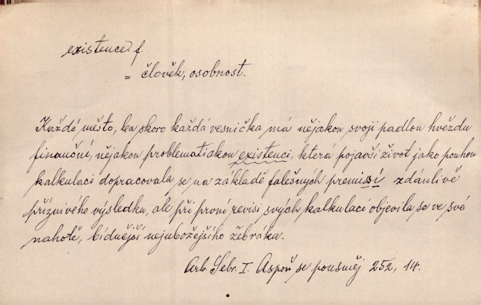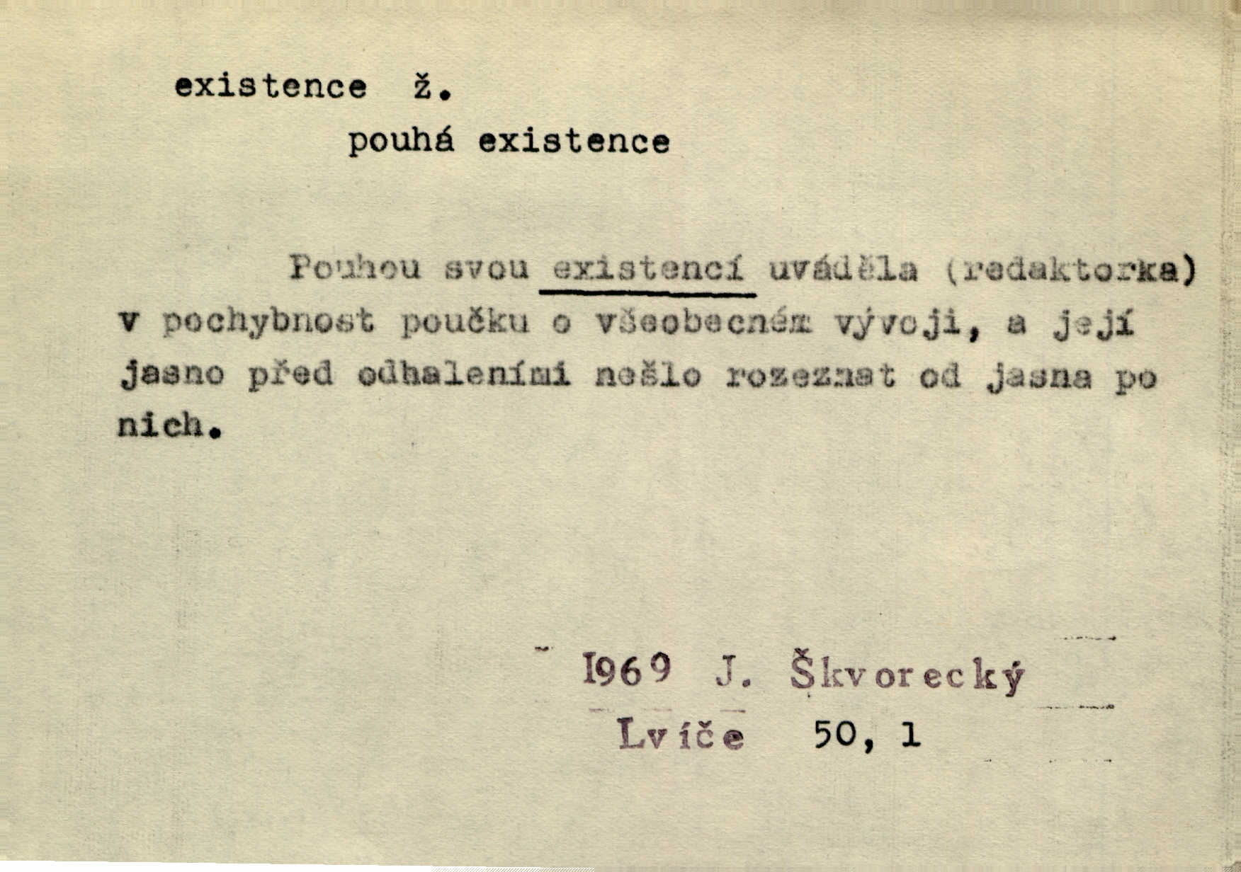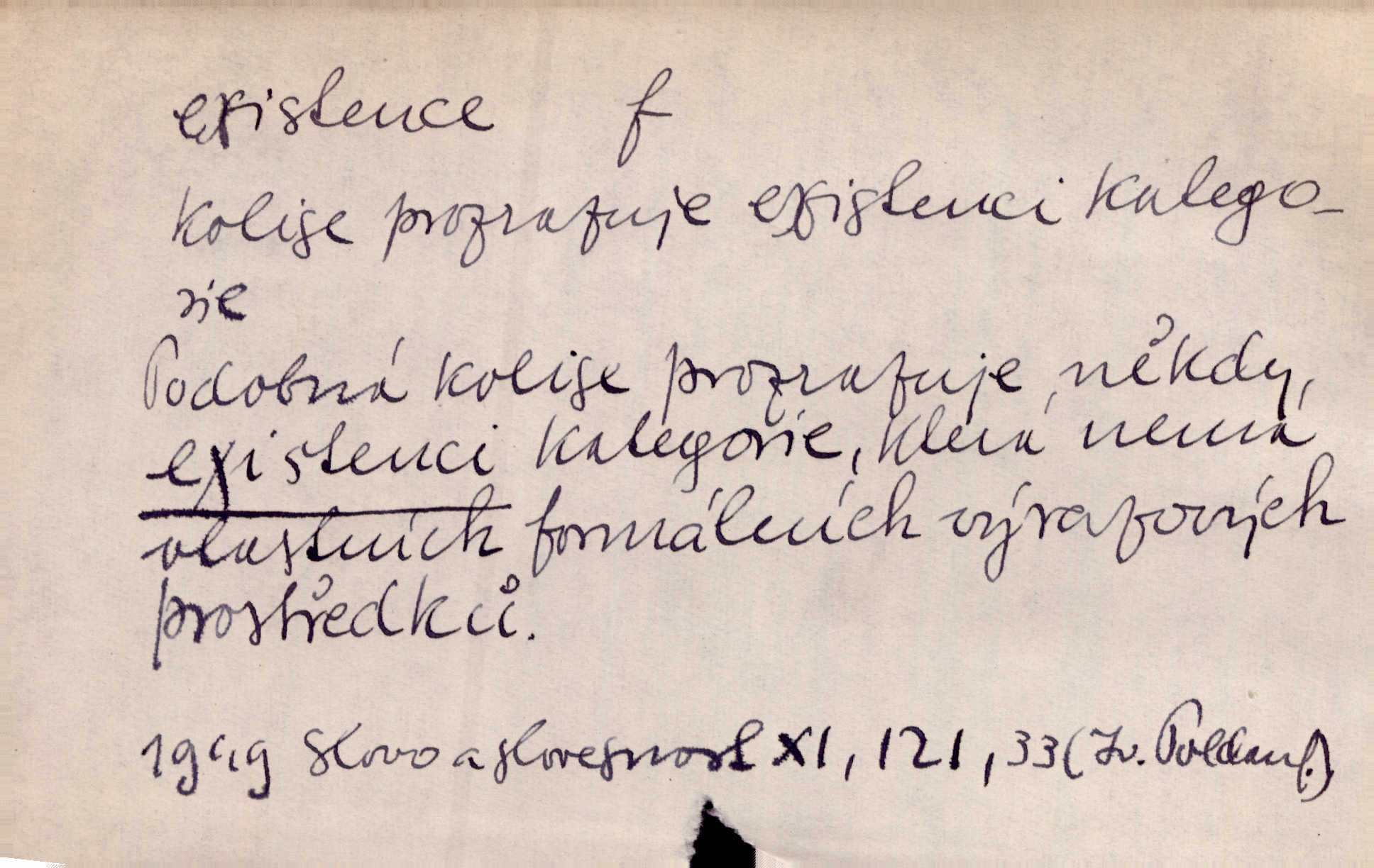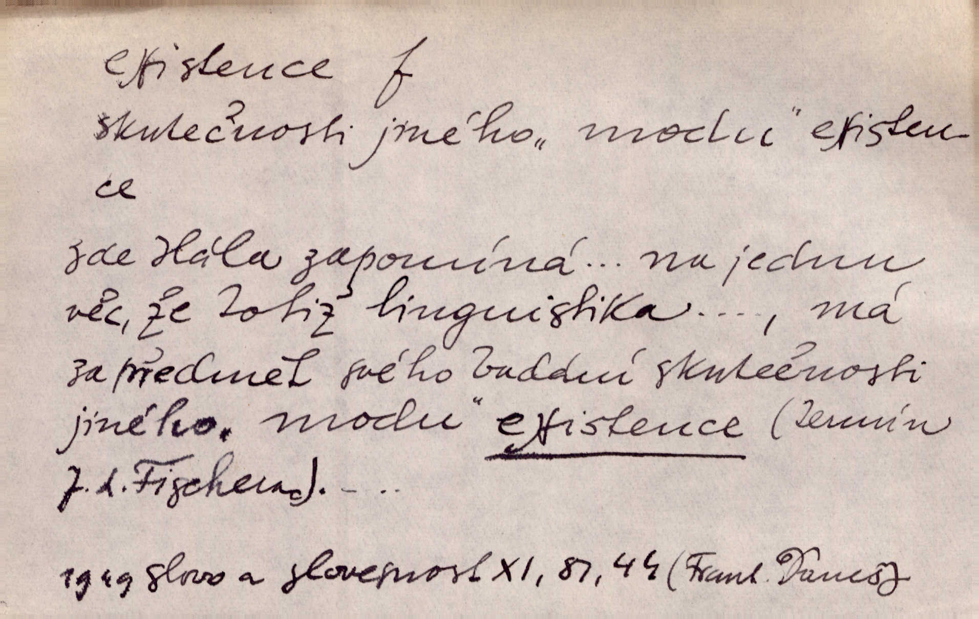 - existence, -e f. bytí; filos. jsoucnost. Přál-li jsem sobě od jakživa existenci státu Rakouského, míval jsem vždy na mysli Rakousko všem svým národům spravedlivé. Pal. D živobytí, životní postavení. On má své, ona má něco, víš, když to přijde dohromady, je to pěkná existence. Herrm. Člověk pochybné existence podezřelý. Po hlavním schodišti [zastavárny] vystupuje a sestupuje to četně jako po žebříku Jakobovu — jen že ne samí andělé: Leda andělé pochybné existence, jichž oči jsou smělostí svou podezřelé. Ner. D Pejor. osoba, člověk. Seděly tu velkoměstské existence neznámého povolání. Maj. Ztracená existence člověk sešlý, v životě ztroskotalý. Hrabě seznamoval Petra s celou tlupou německých dobrodruhů a ztracených existencí vůbec. Zey.
