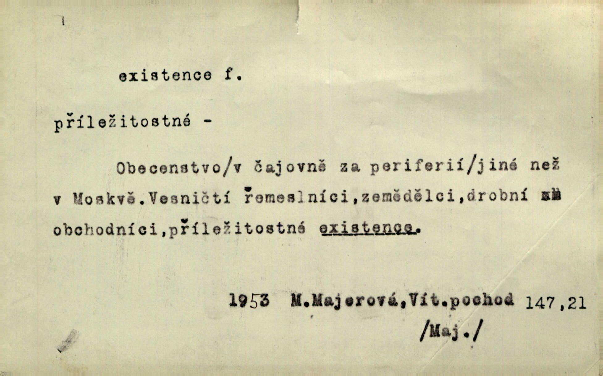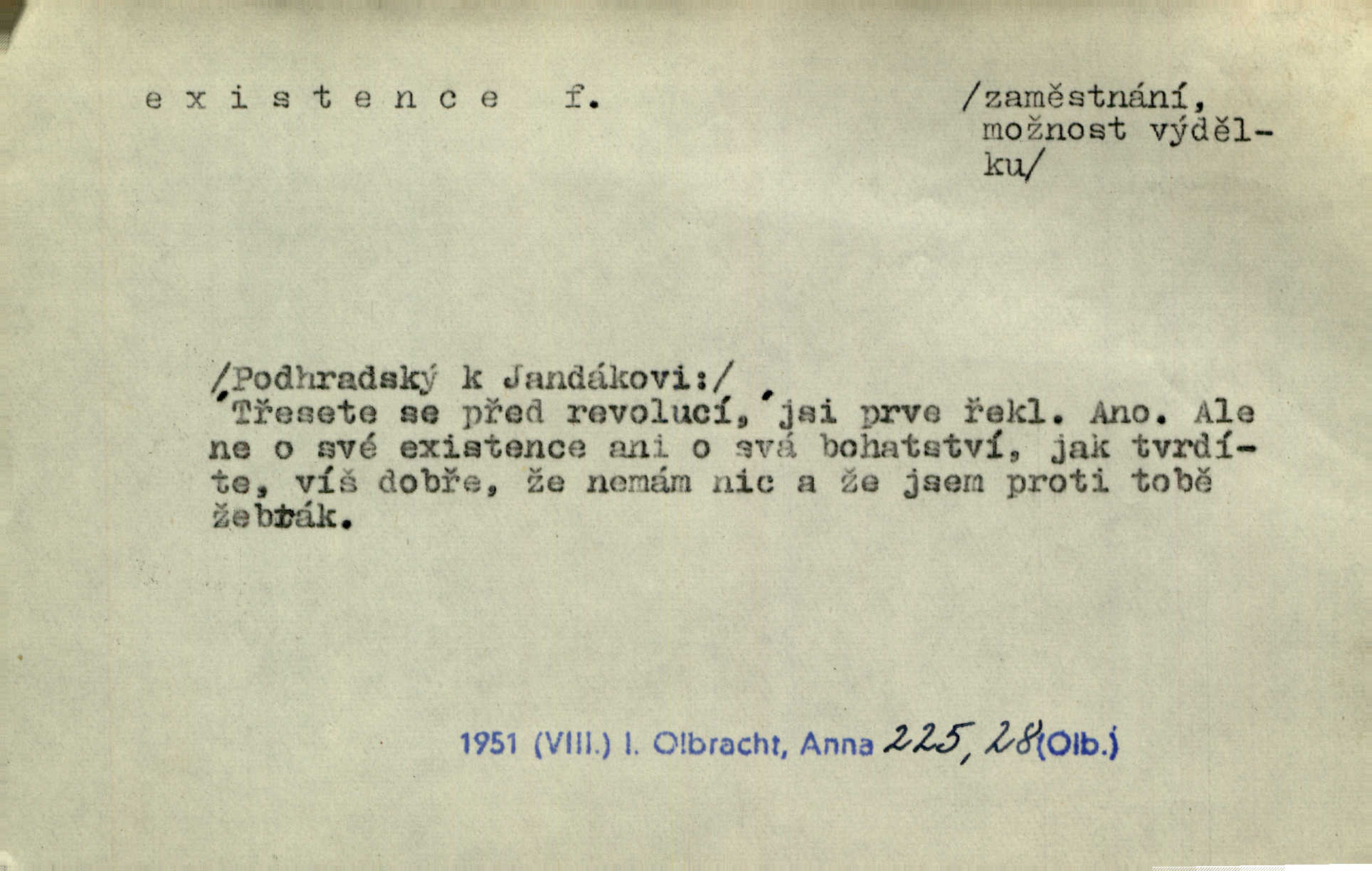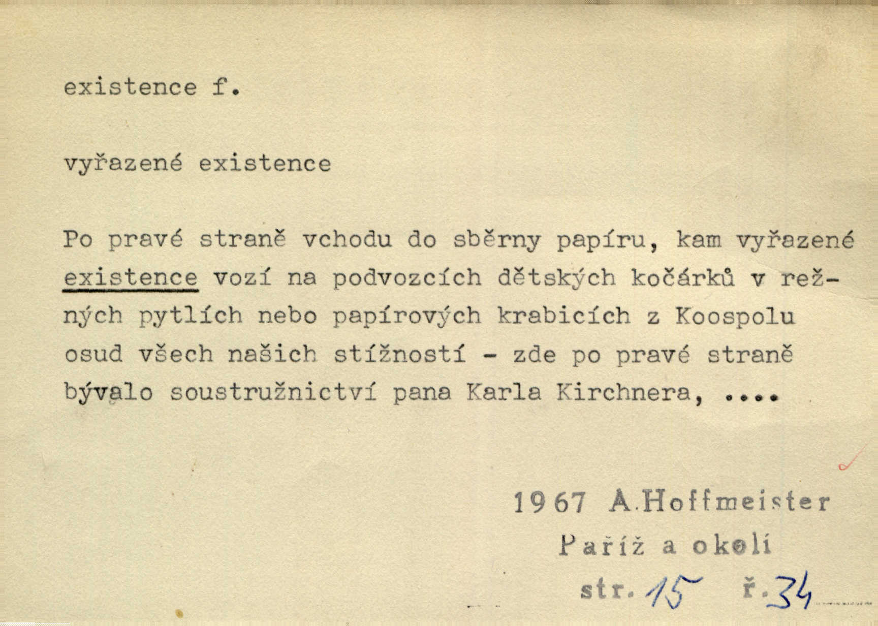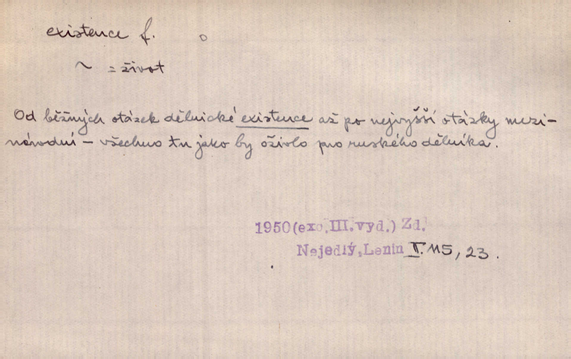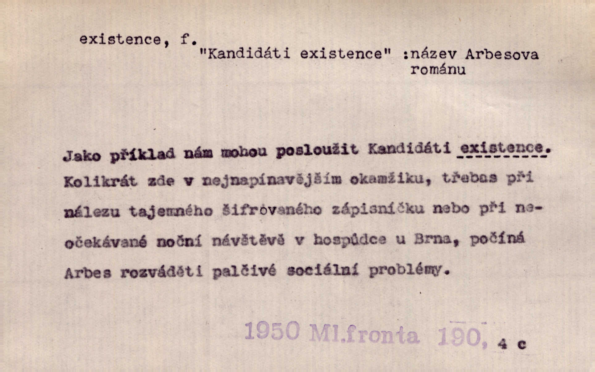 - existence, -e f. bytí; filos. jsoucnost. Přál-li jsem sobě od jakživa existenci státu Rakouského, míval jsem vždy na mysli Rakousko všem svým národům spravedlivé. Pal. D živobytí, životní postavení. On má své, ona má něco, víš, když to přijde dohromady, je to pěkná existence. Herrm. Člověk pochybné existence podezřelý. Po hlavním schodišti [zastavárny] vystupuje a sestupuje to četně jako po žebříku Jakobovu — jen že ne samí andělé: Leda andělé pochybné existence, jichž oči jsou smělostí svou podezřelé. Ner. D Pejor. osoba, člověk. Seděly tu velkoměstské existence neznámého povolání. Maj. Ztracená existence člověk sešlý, v životě ztroskotalý. Hrabě seznamoval Petra s celou tlupou německých dobrodruhů a ztracených existencí vůbec. Zey.