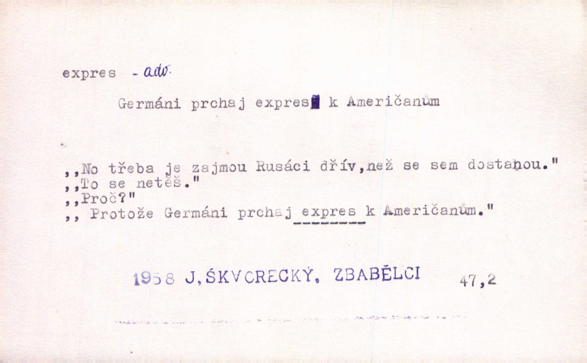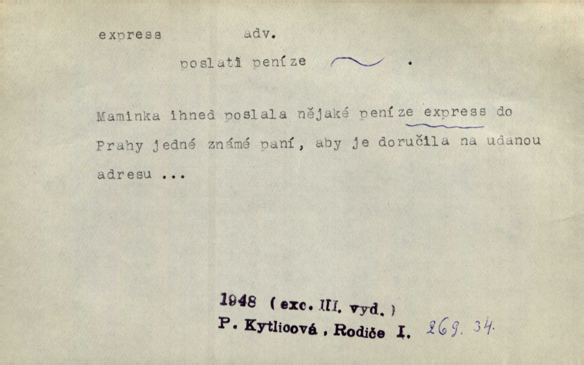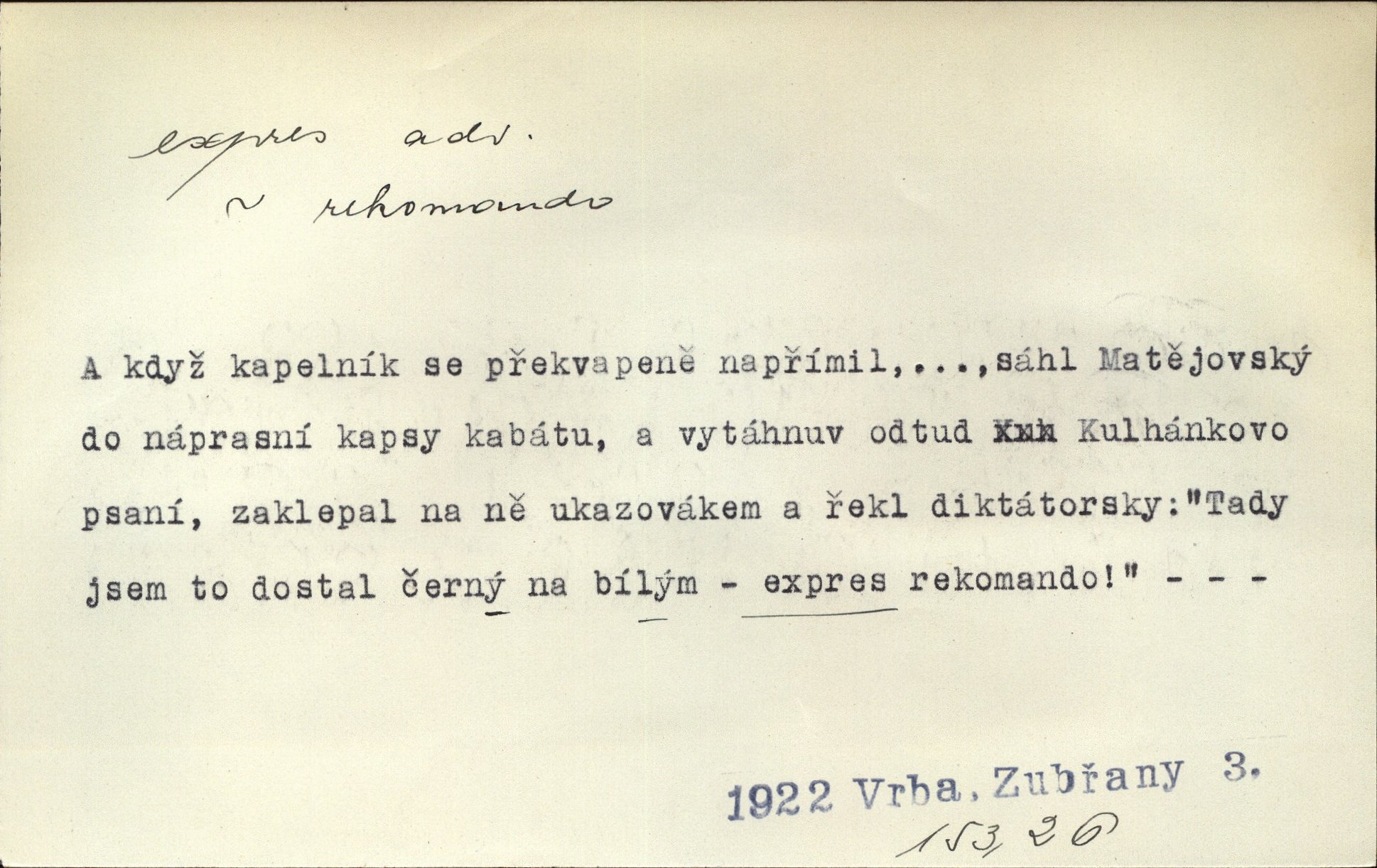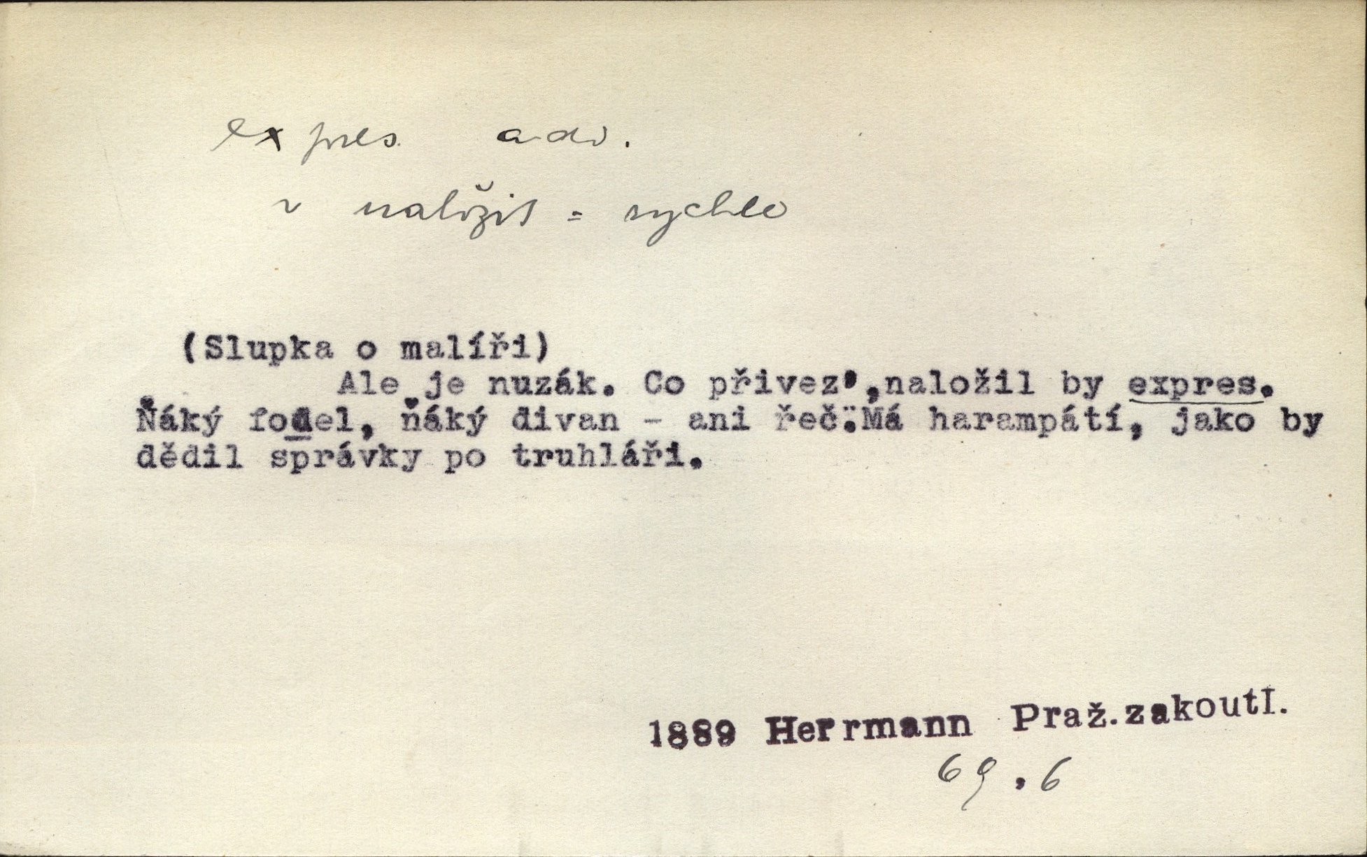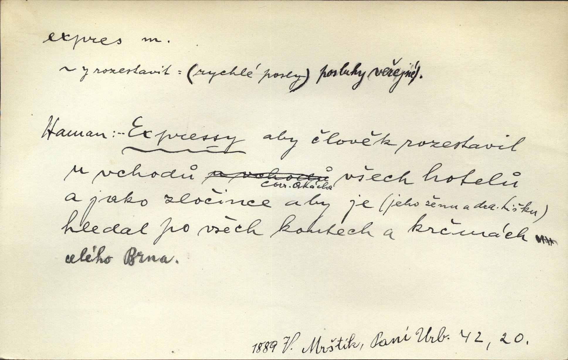 - expres adv. pošt. spěšně, jako spěšnina. Co se zdálo významnější a mělo nárok na rychlejší vyřízení, posílalo se expres. Šlej.