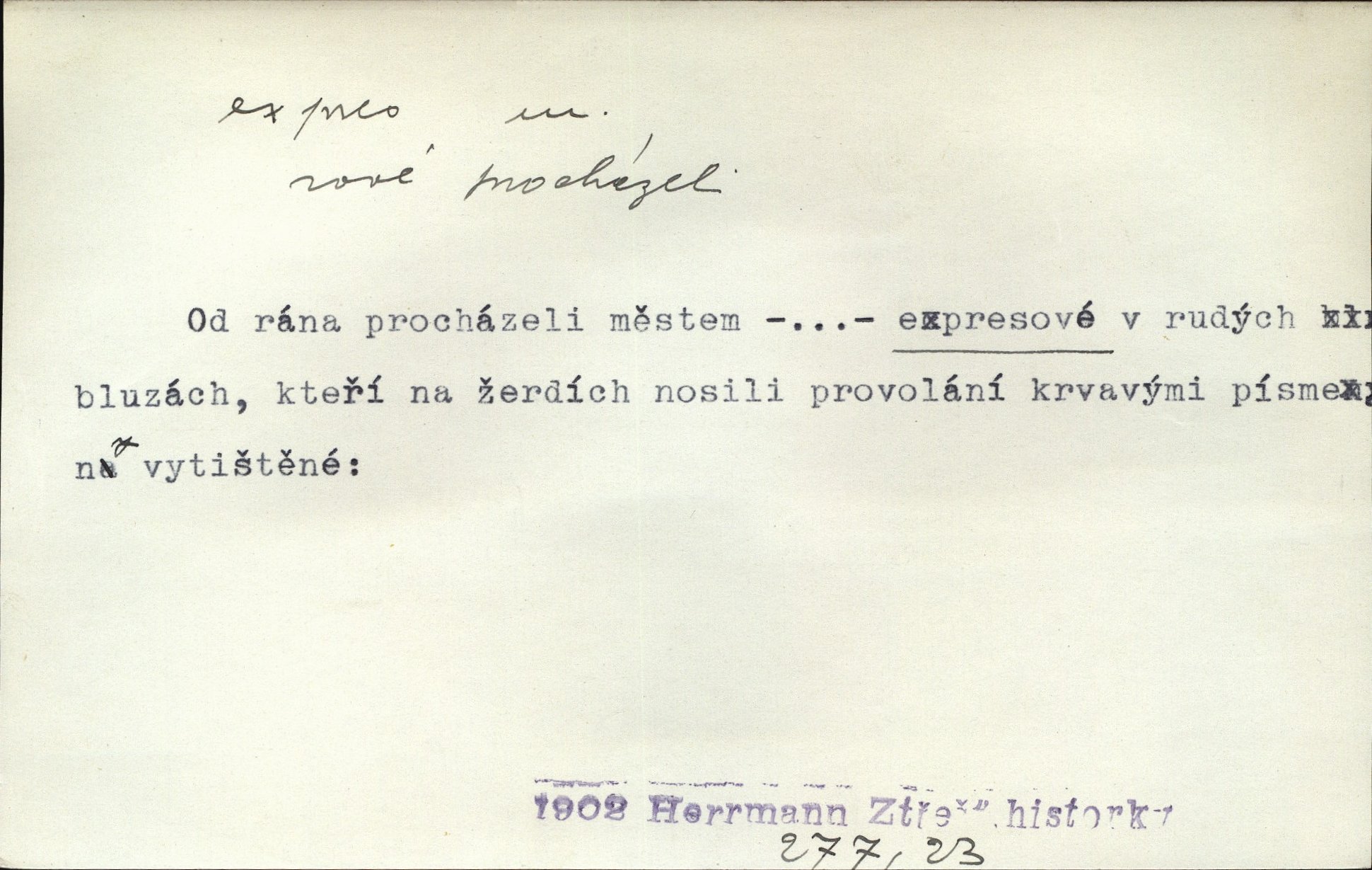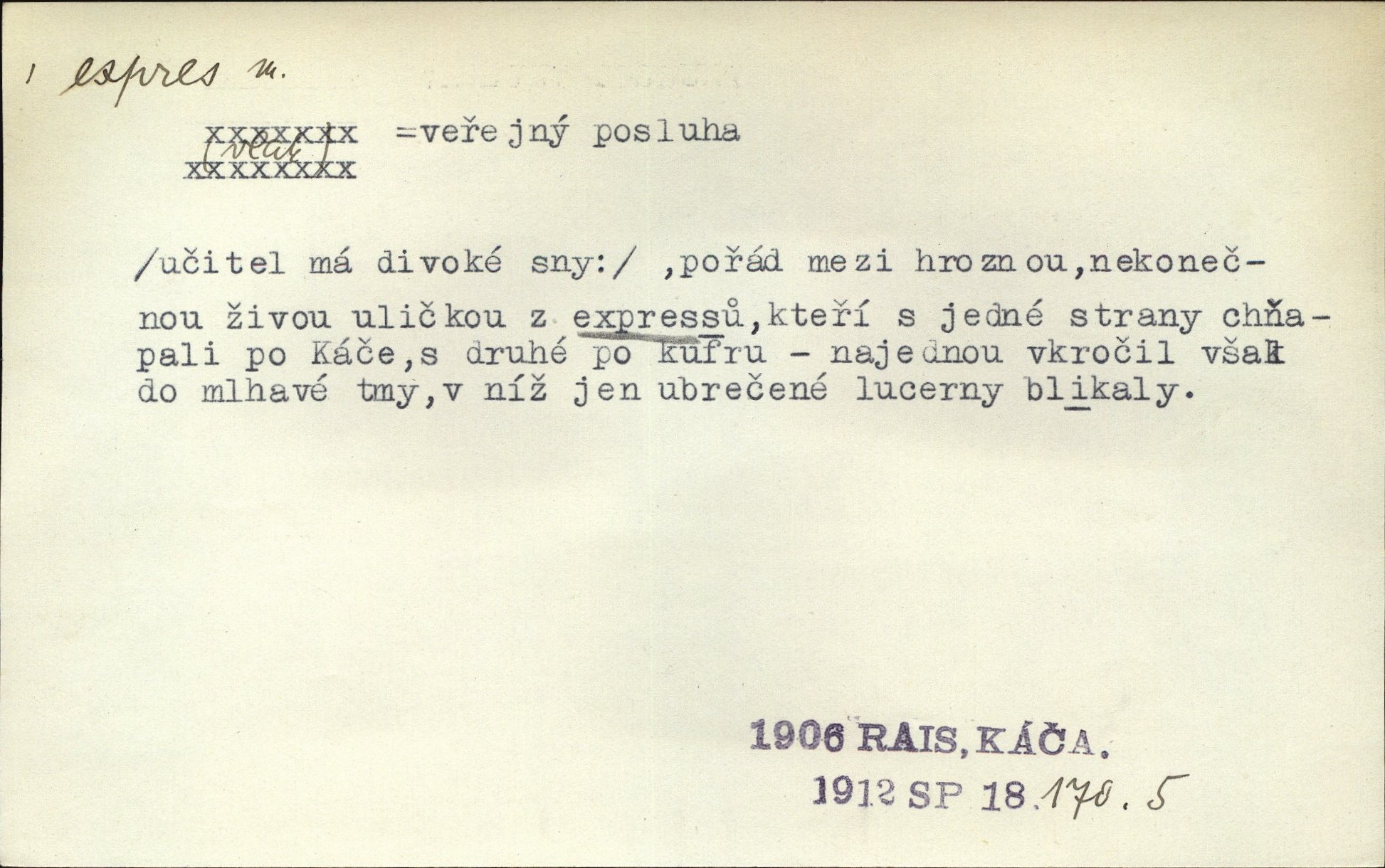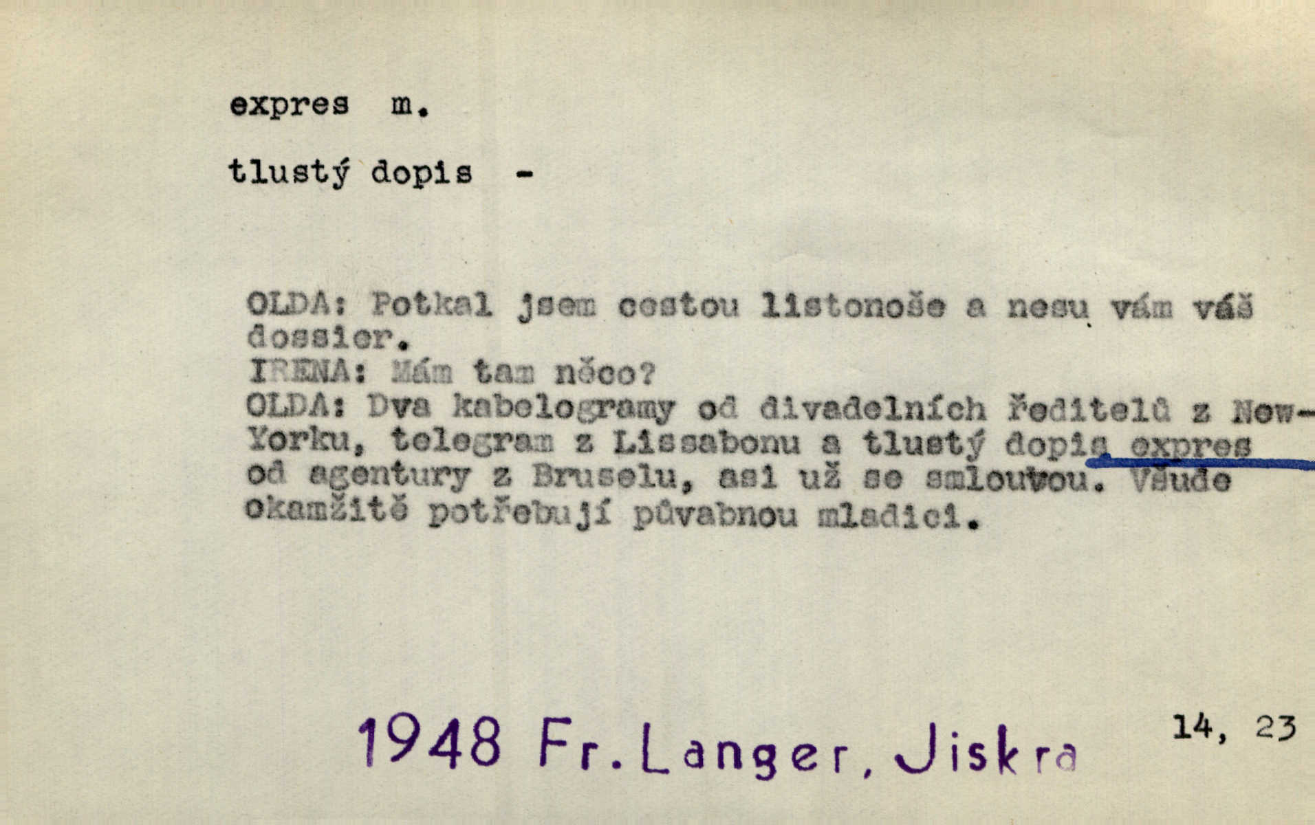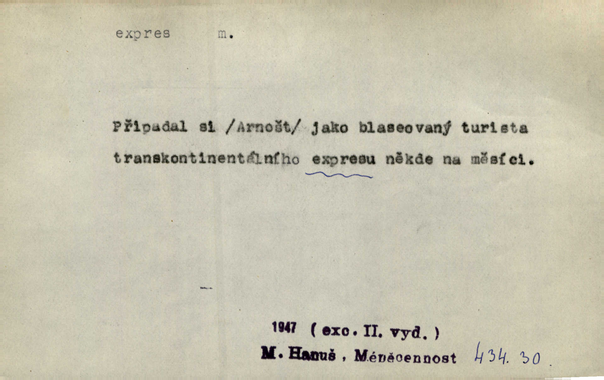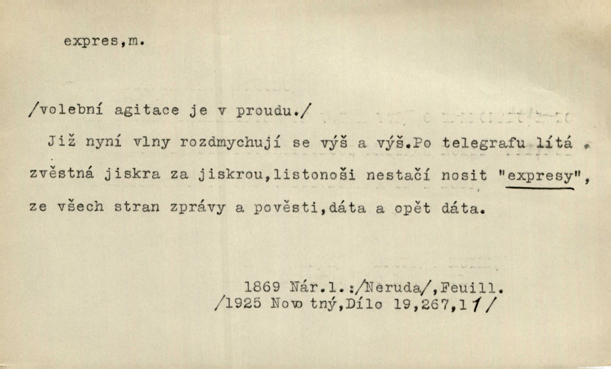 - expres adv. pošt. spěšně, jako spěšnina. Co se zdálo významnější a mělo nárok na rychlejší vyřízení, posílalo se expres. Šlej.
