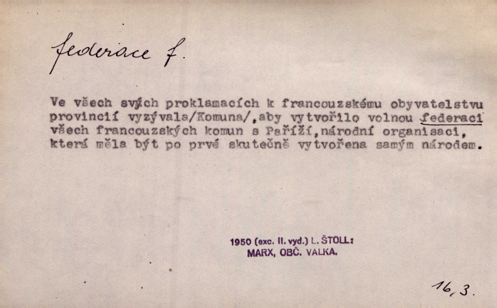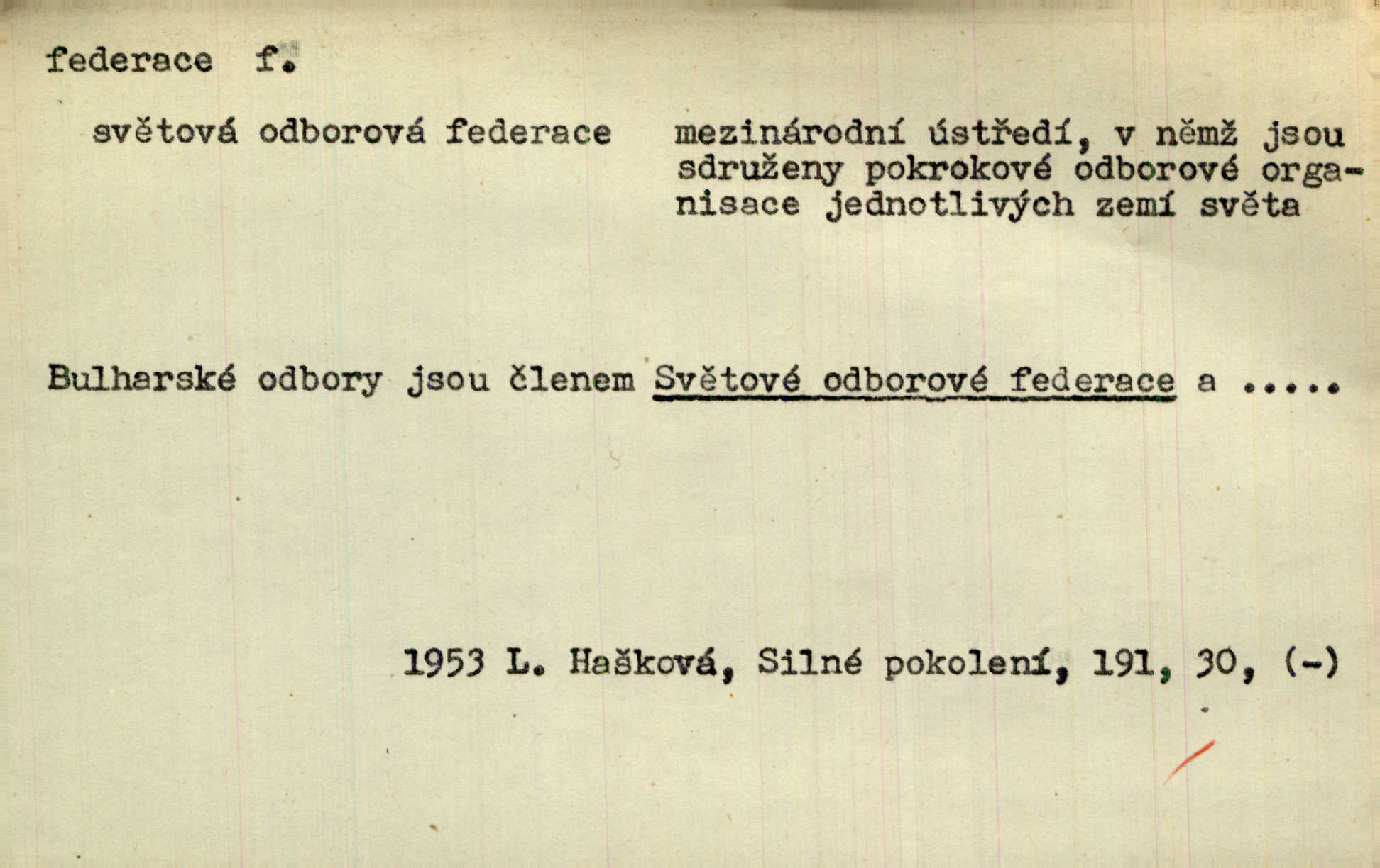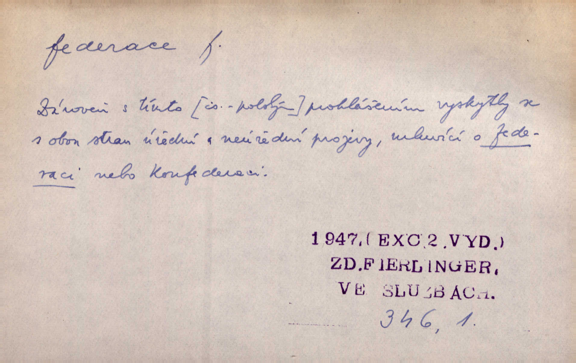 - federace, -e f. polit. spolčení několika států k nějakému účelu. Otázka o federaci aneb centralisaci zajímá již ode 20 měsícův mysli všech. Pal. D svaz, sdružení. Federace dělnických tělocvičných jednot. Federace československých skautů.