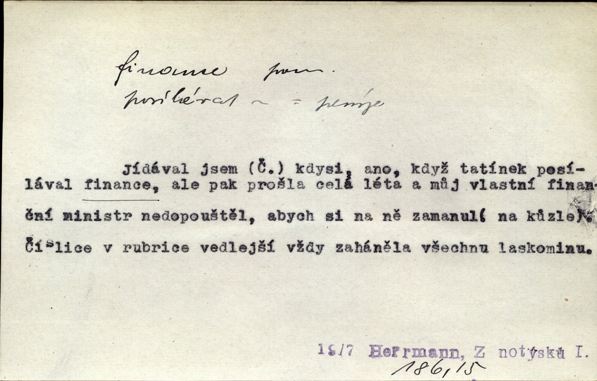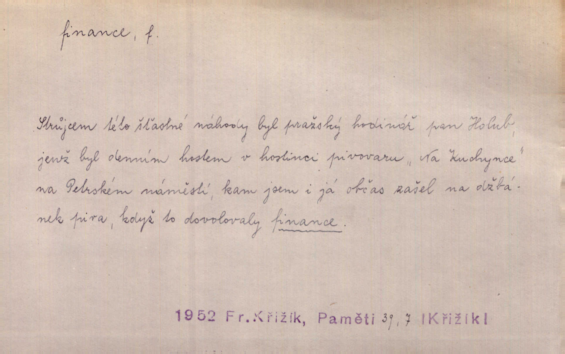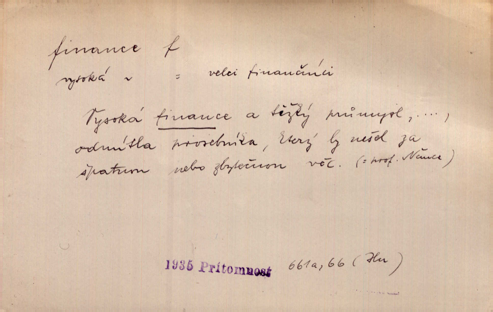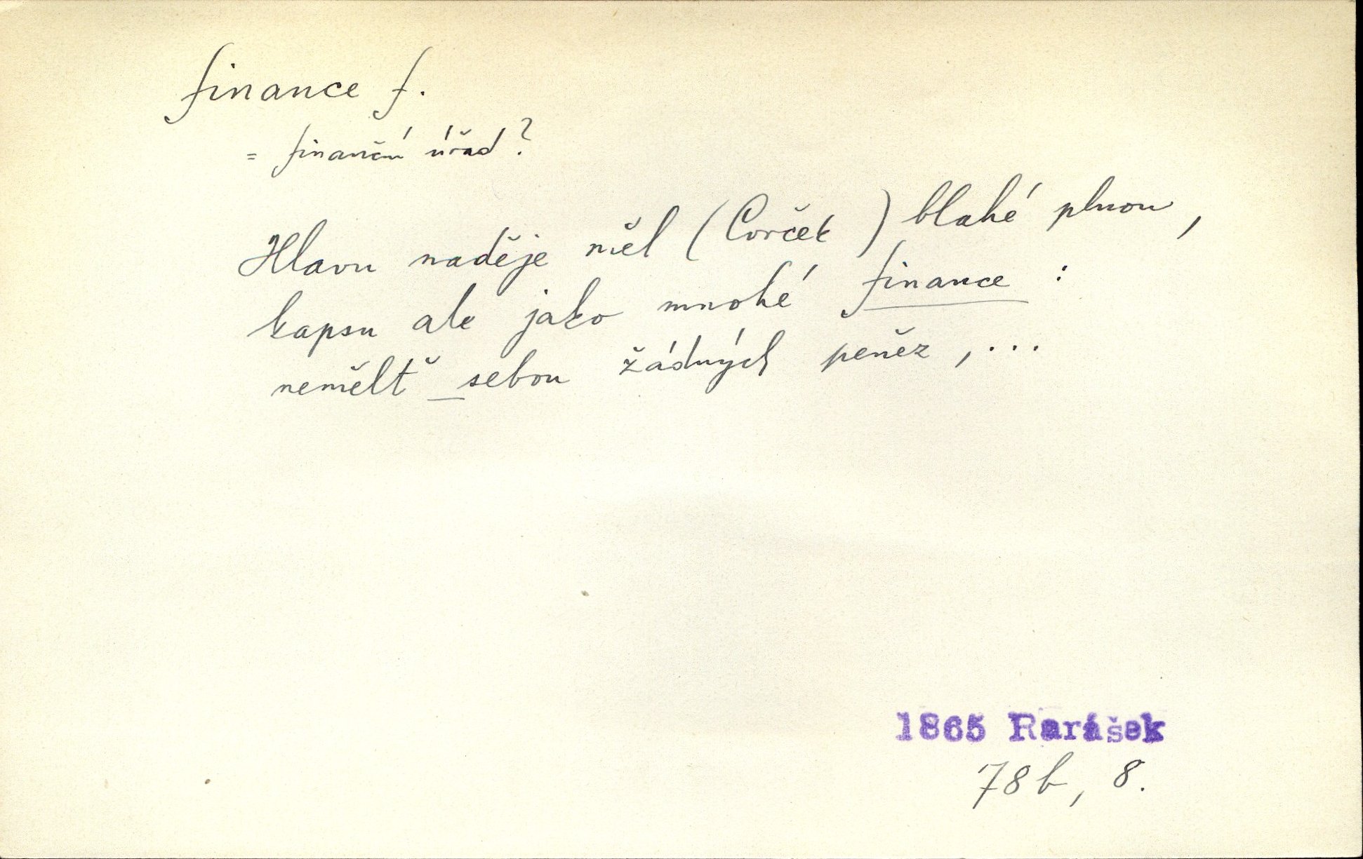 - finance, -e f. lid. finanční úřad. Byl komisarem u finance. Rais.