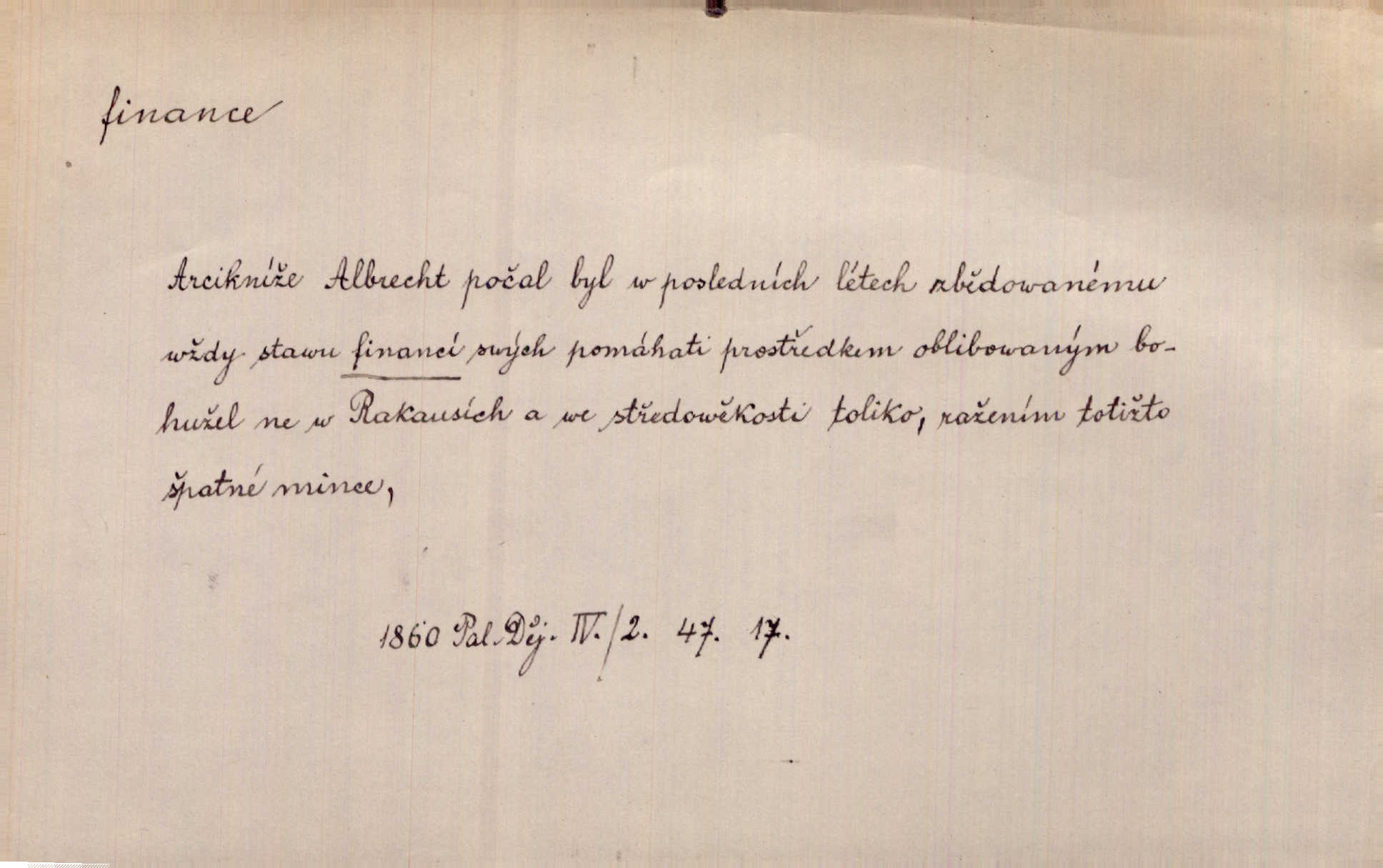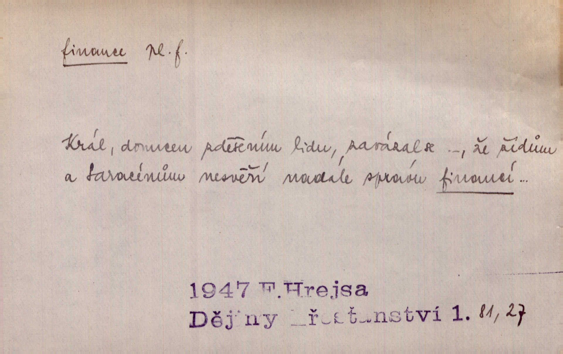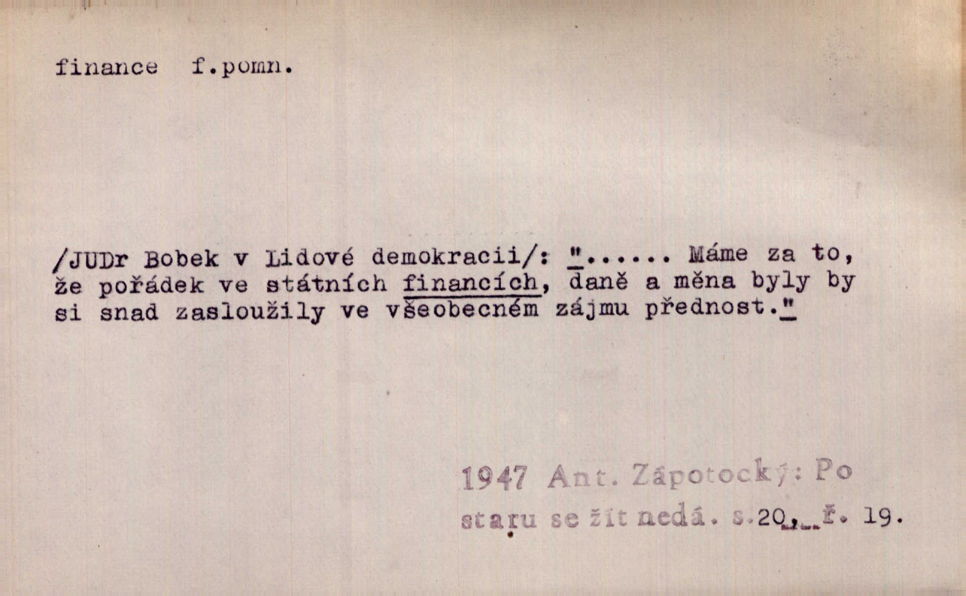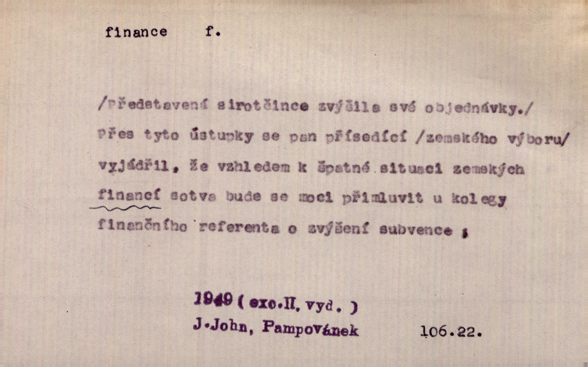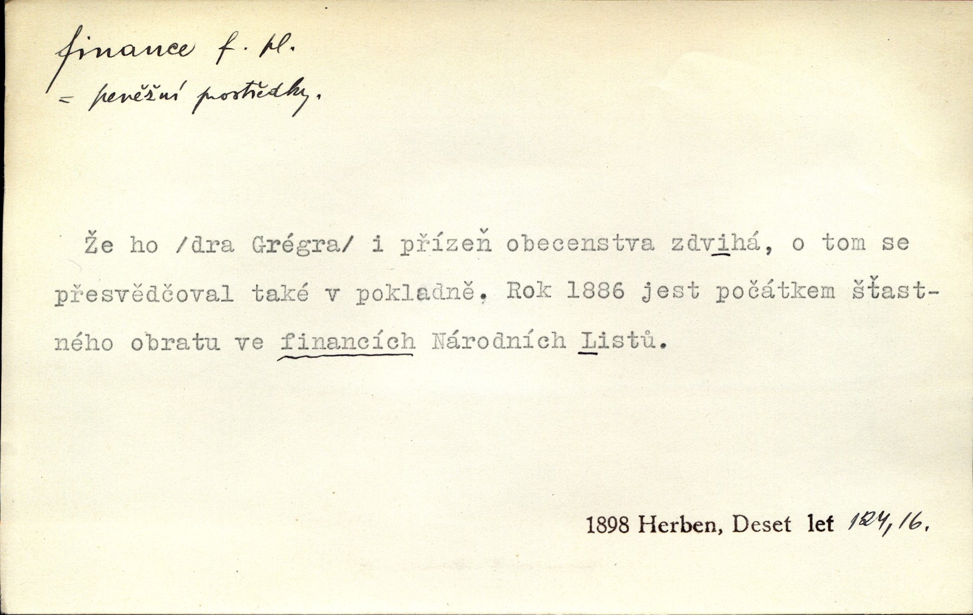 - finance, -í f. pomn. státní hospodářství. Ministerstvo financí. D hospodářský stav, majetkové poměry. Rok 1886 jest počátkem šťastného obratu ve financích Národních Listů. Herb. D Fam. peníze. Jídával jsem kdysi, ano, když tatínek posílával finance. Herrm.