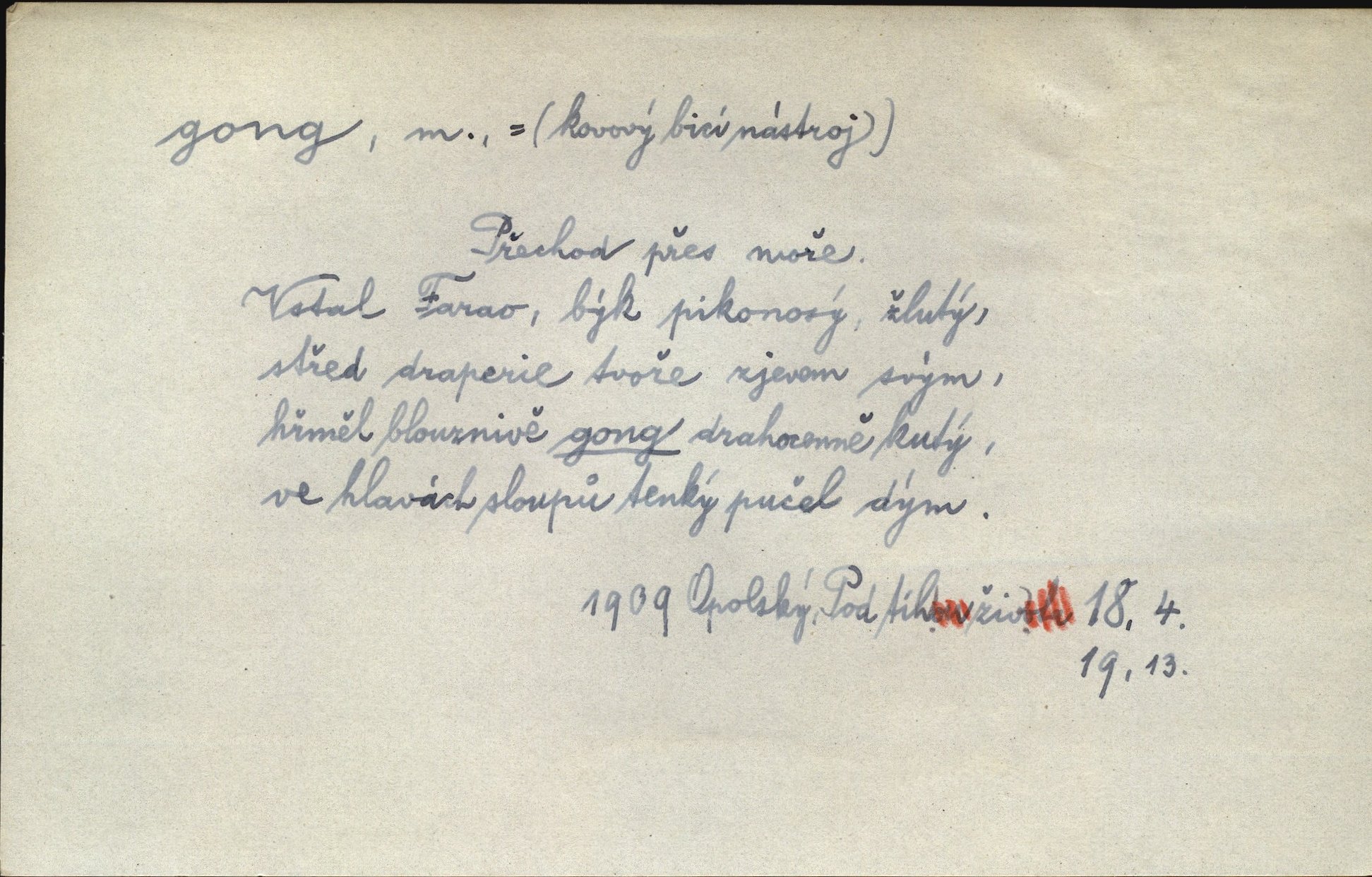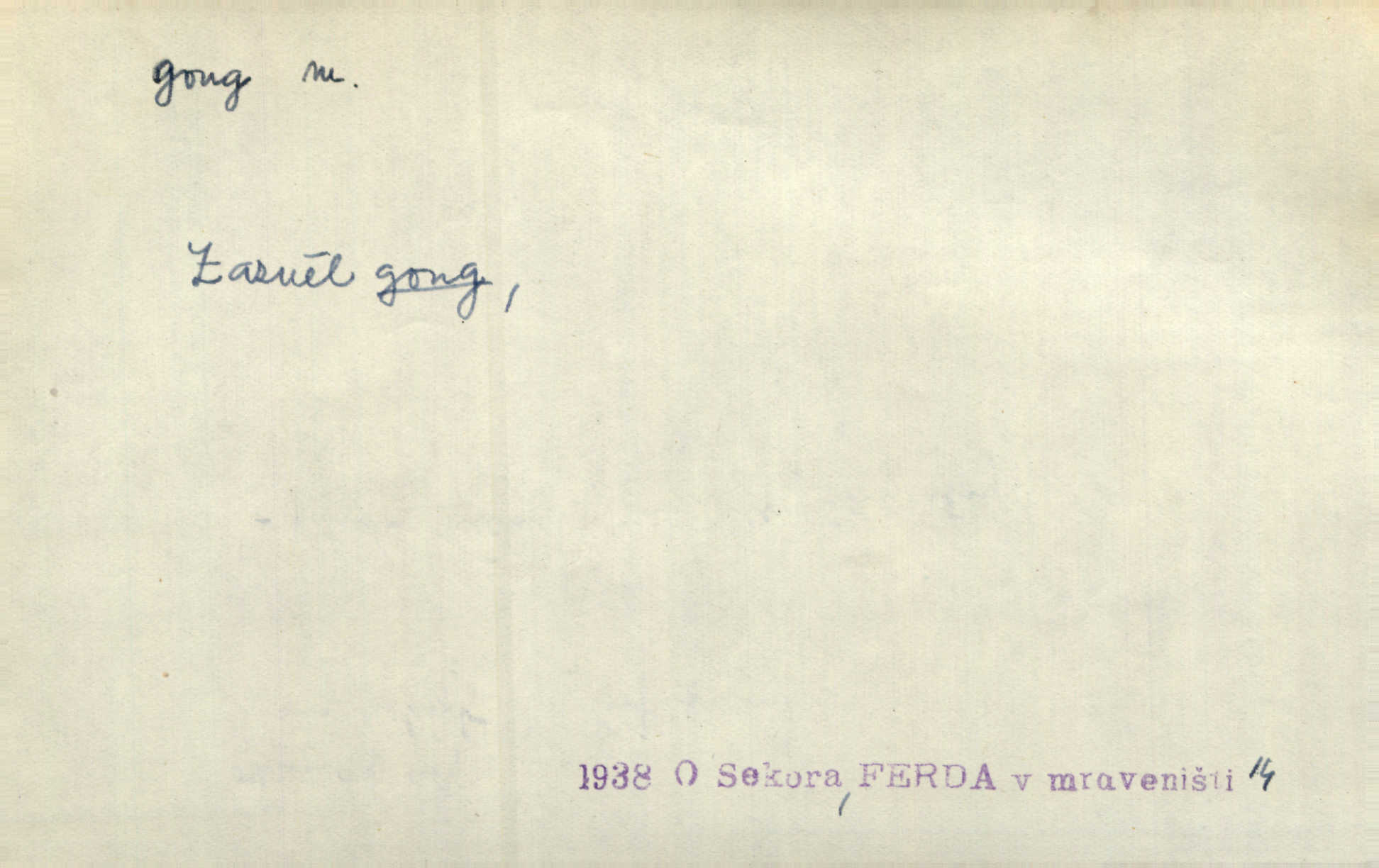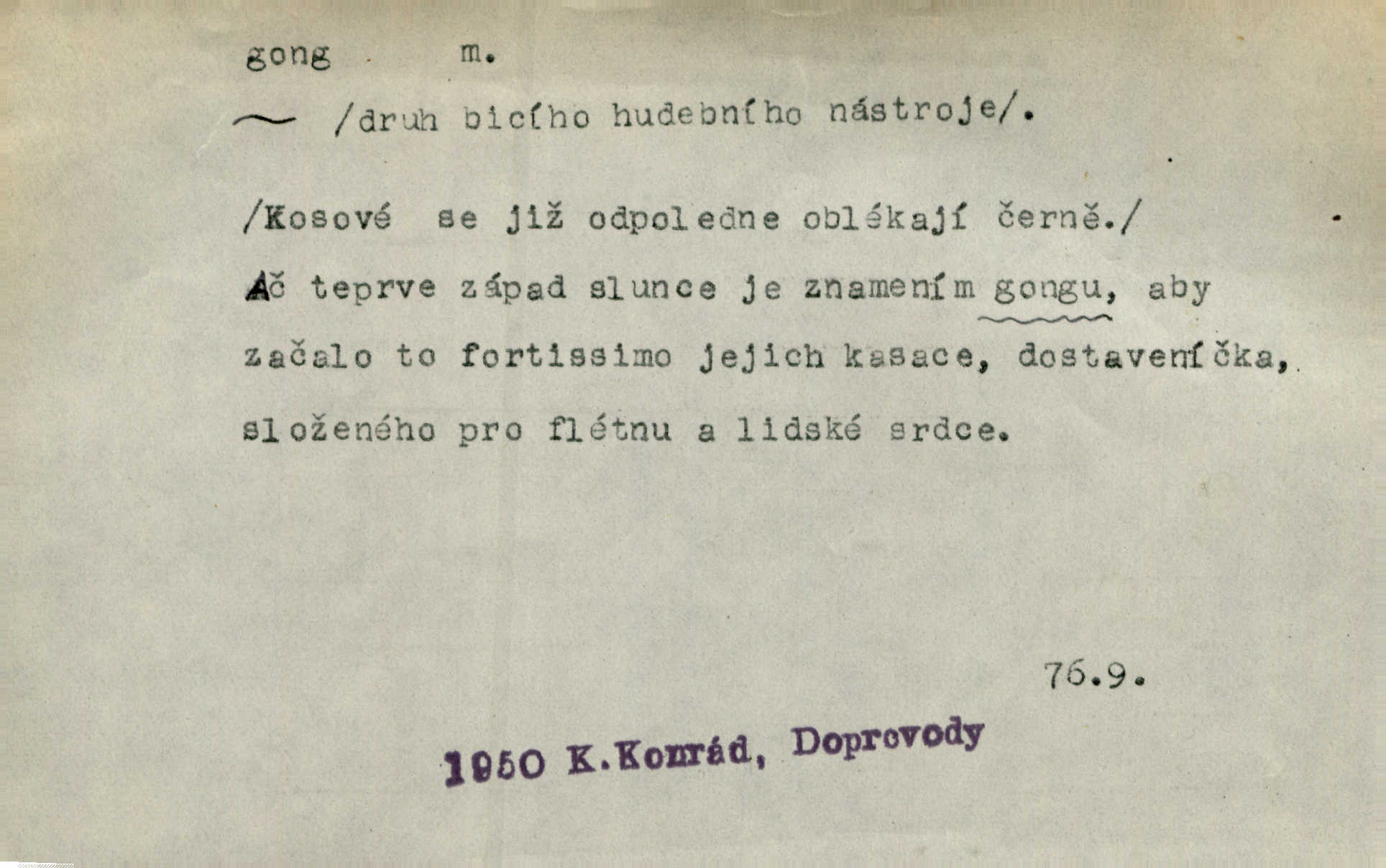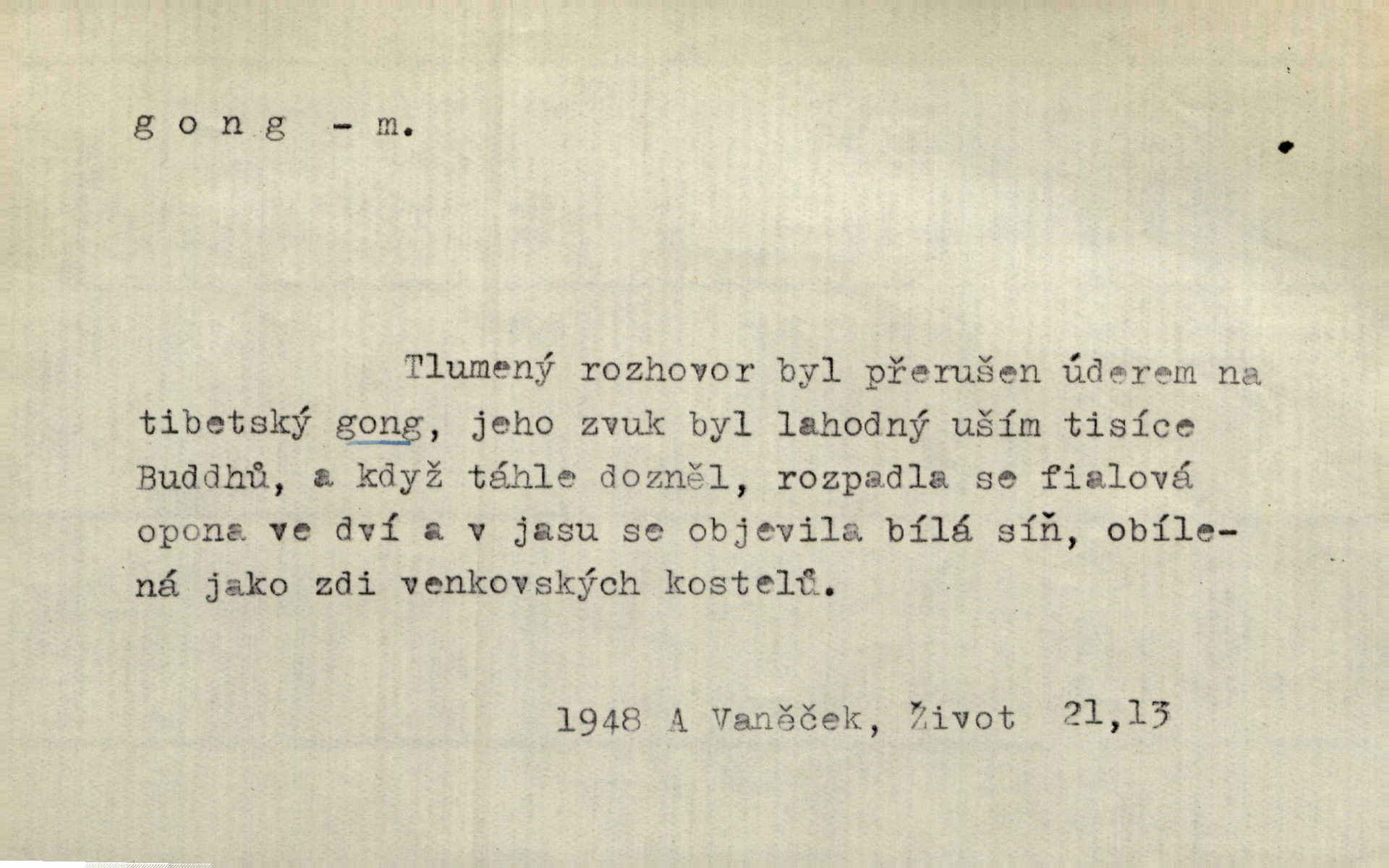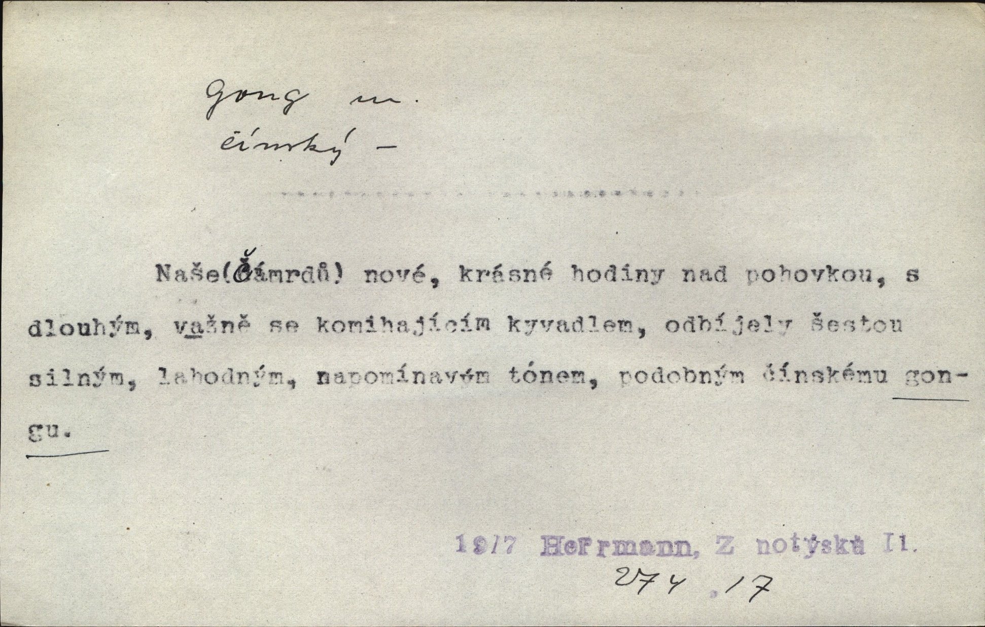 - gong, -u m. čínský bicí nástroj talířové podoby a táhlého zvuku; u nás se jím svolává k jídlu ve větších domácnostech, na lodi a p. Z jedné z pekinských ulic vybočil nádherný průvod: napřed dav otroků hřmících velikými gongy. Zey. Hud. též jako orchestrální nástroj. D u hodin bicí pružina n. tyč temného gongového zvuku. Sport. nástroj, kterým se označuje začátek a konec kola při rohování.