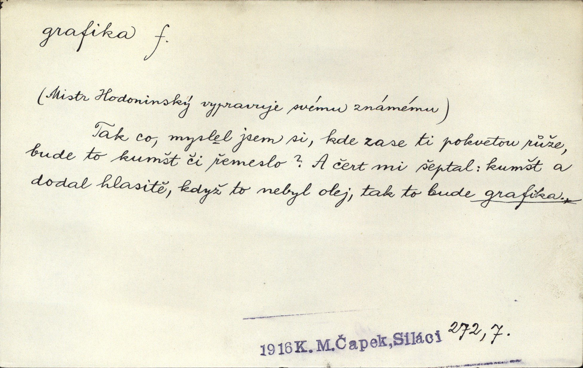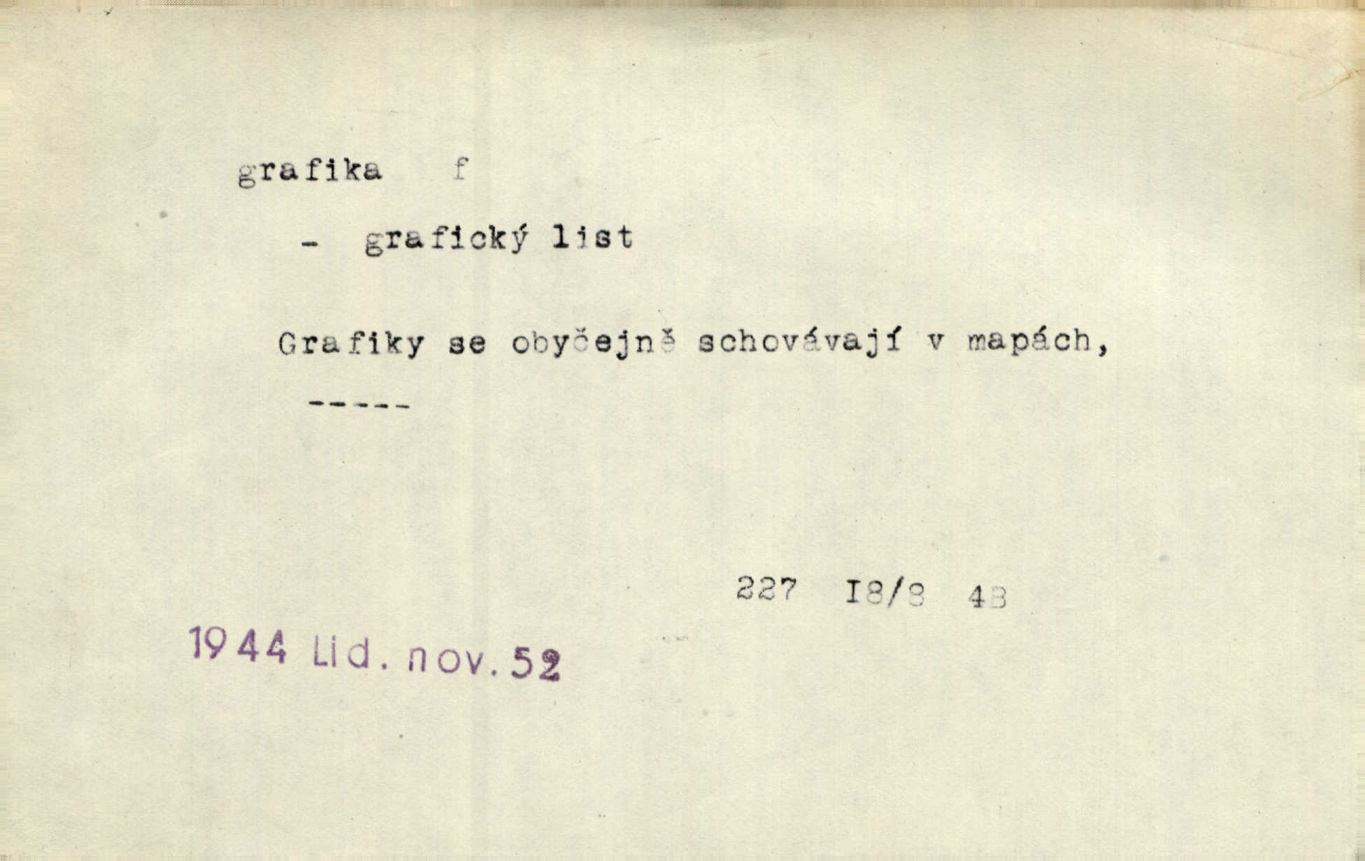 - grafika, -y f. všecka umění pracující k účelům rozmnožovacím (dřevorytectví, mědiryt, oceloryt, lept, suchá jehla, akvatinta, litografie a p., také kresba a písmo); umělecké dílo tímto způsobem vytvořené. D Gram. způsob vyjadřování hlásek písmem.