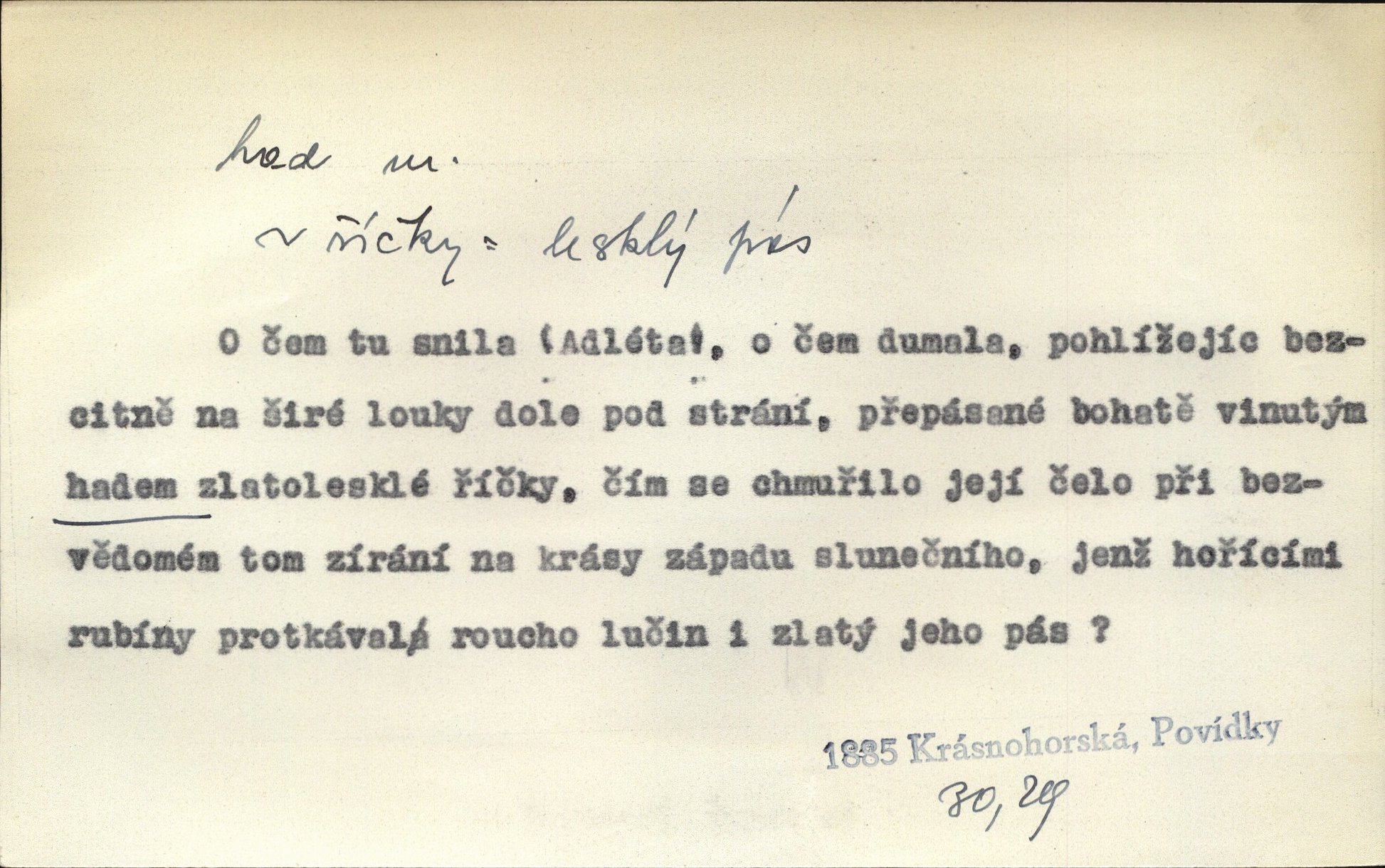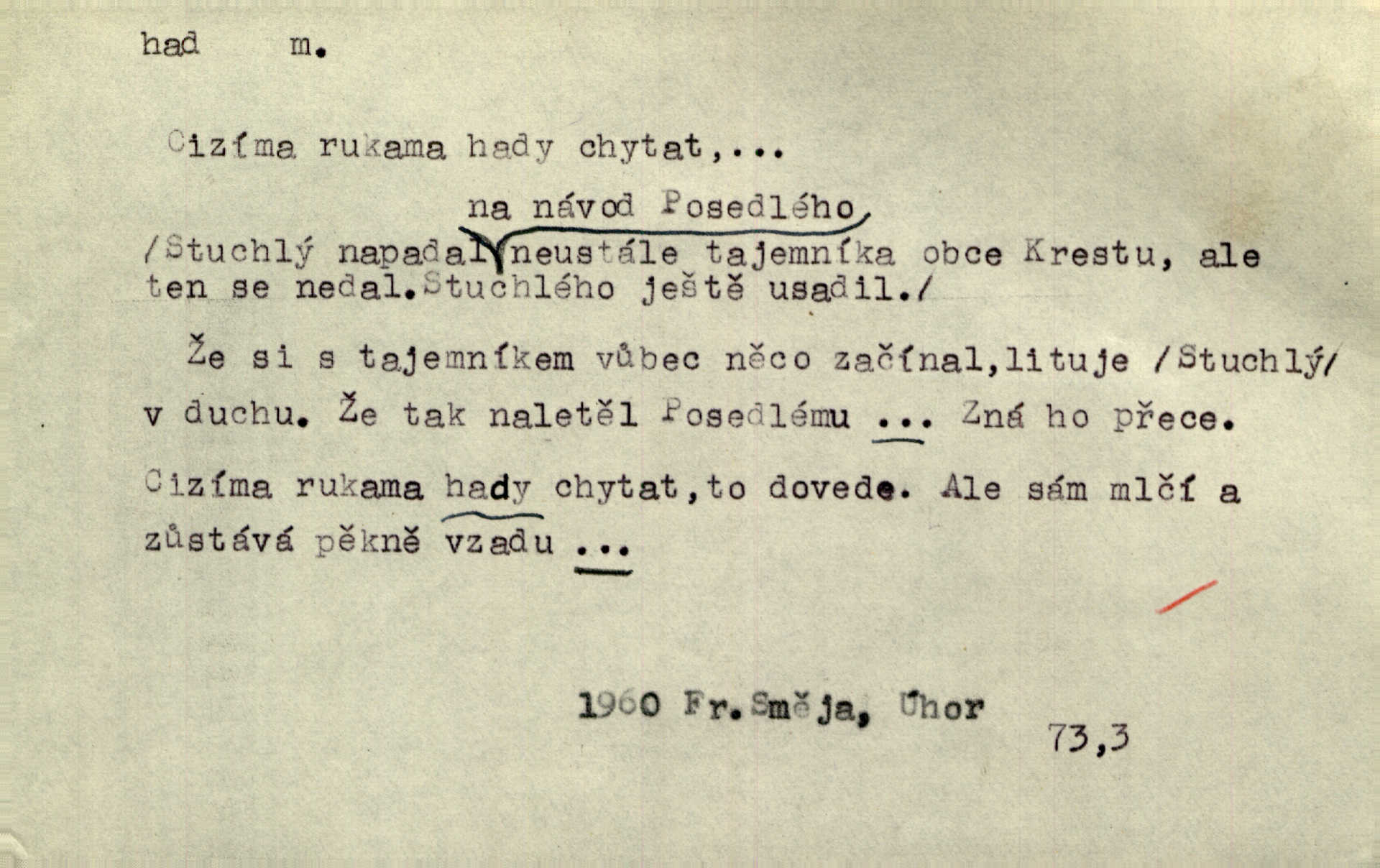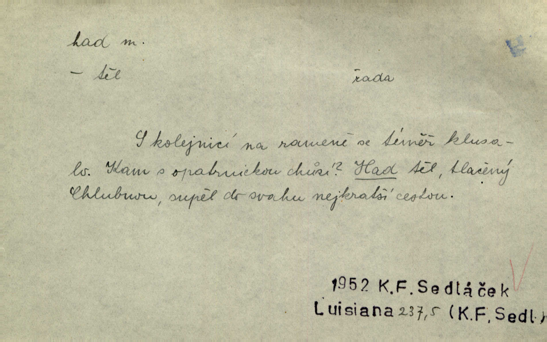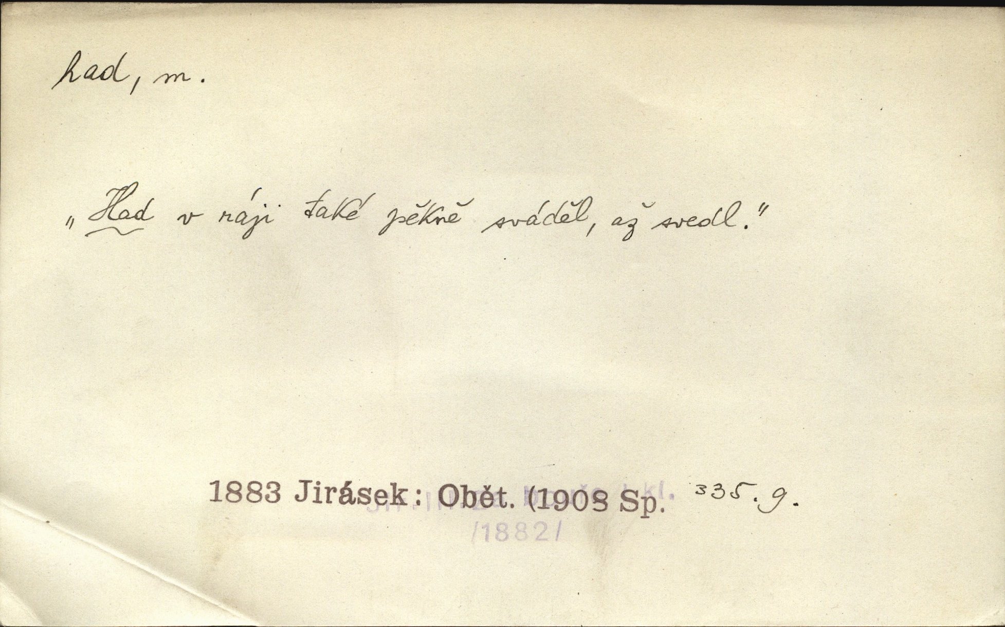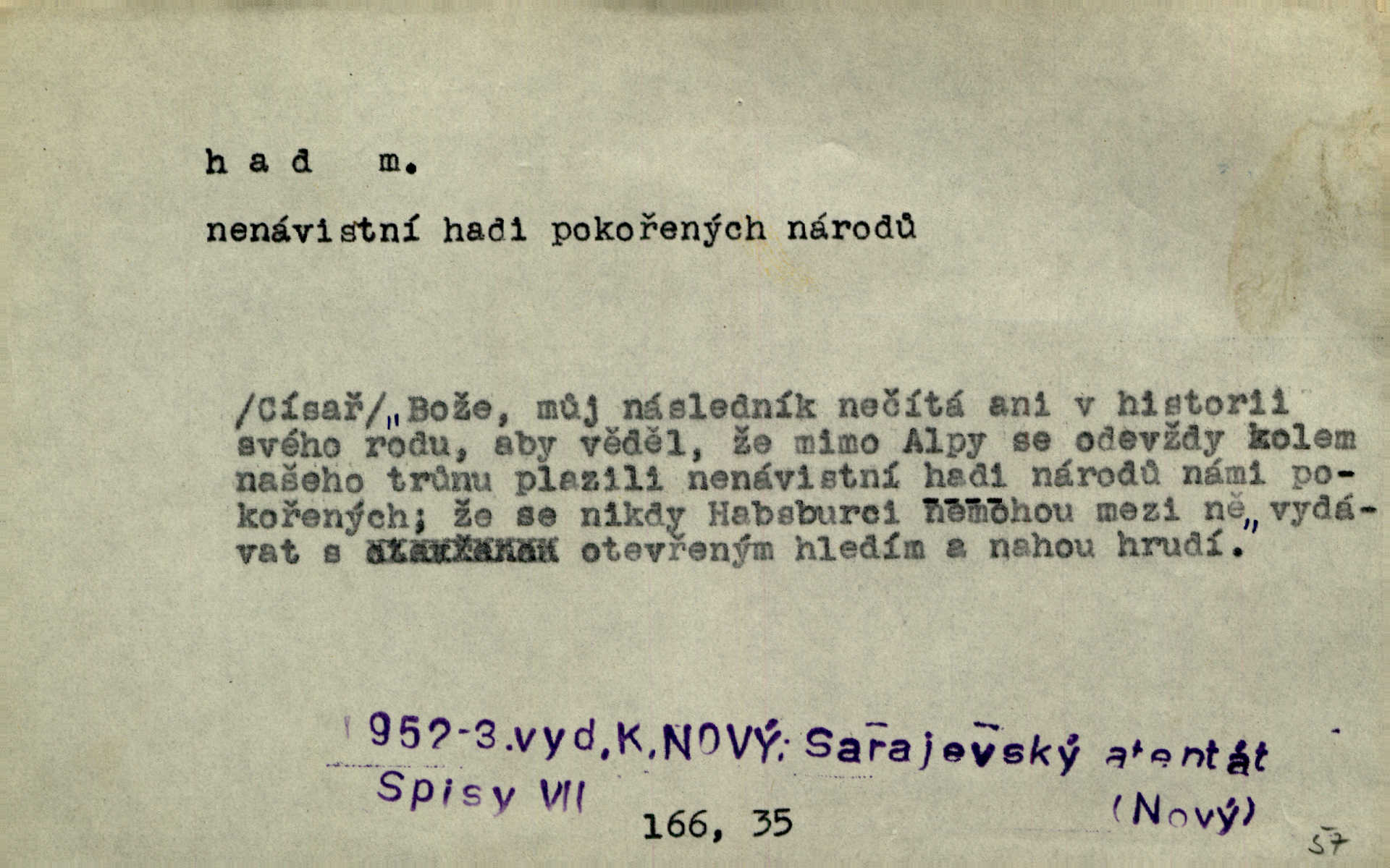 - had, -a m. zool. hadi řád plazů (Ophidia). Ustál. sp. Smaž hada, jak chceš, nebude z něho úhoř. Přísl. Od včely pochází med, od hada jed. Přísl. Nehřej hada za ňadry! Pořek. Utrhla se jakoby ji had uštknul. Herb. Muž ten byl obratný jako had. Dyk. Pamatuji se na chansonieru, štíhlou jako had. Šim. To víte, že mně peníze vždy z rukou uklouznou jako had. Svět. Mořský had novinářská kachna. V Tichém oceáně poznovu byl objeven mořský had. Herrm. D (v lidovém podání) domácí had, had hospodář, hospodáříček šotek pro štěstí. A dokud líhal pod pecí nebo pod prahem domácí Had, starý hospodář, neodešlo z rodu štěstí a požehnání. Jir. Ztracenou končinu Šlarafie — kde had hospodáříček v mandelu šelmovství spí — mi vraťte. Halas. D Přen. o věcech nějak připomínajících hada. Hleděl před se na nekonečného hada vozův i houfů. Jir. Chtěl bych jednou promluvit vážné slovo o zelených hadech čili o t. zv. trávnících na scéně. Mah. Dlaněma válela dlouhého těstového hada. Rais. Klopýtajíc přes hady kořenův, hloub a hlouběji zapadala v tmavnoucí nitro lesa. Sez. Měla vlasy upraveny v samé namaštěné hady. R. Svob. D Přen. ve výrazech abstraktních. Ten starý had v nás by to arci rád převracel a chtěl by, abychom tělu hověli a ducha uspávali ďábel, pokušení. Svět. Celerka nasadila Tomášovi hada mučivou myšlenku. Jir. Klevetím, hady nasazuju nesvár. Jir. Zašlapává hada pochybnosti. Kar. Vloudil se i do tvého srdce had plemenného záští. Čech. Podezření had jej uštkl jedovatě u srdce. Zey. Had závisti se vypjal brzy. Čech. D nadávka. „Hade jedovatý!“ řekl Kojan [synovi]. Hol. Zrádkyně, hade! Dyk. Žertovná přezdívka. „Tady je cukr, vy hadi!“ vzkřikl pan Kódl [na spoluvojáky]. Med. D Tech. trubka beze švů stočená do šroubovice v ploše nebo do spirály. Had topný, chladicí, vodní, trubkový. Váleč. druh někdejších děl. Přiběhli feuerwerkři od kartounů, falkonů a hadů. Dur. Had jm. souhvězdí. Těl. hra na hada, stahování hada druh hry. D Argot. řemen, řetěz, zrádce.