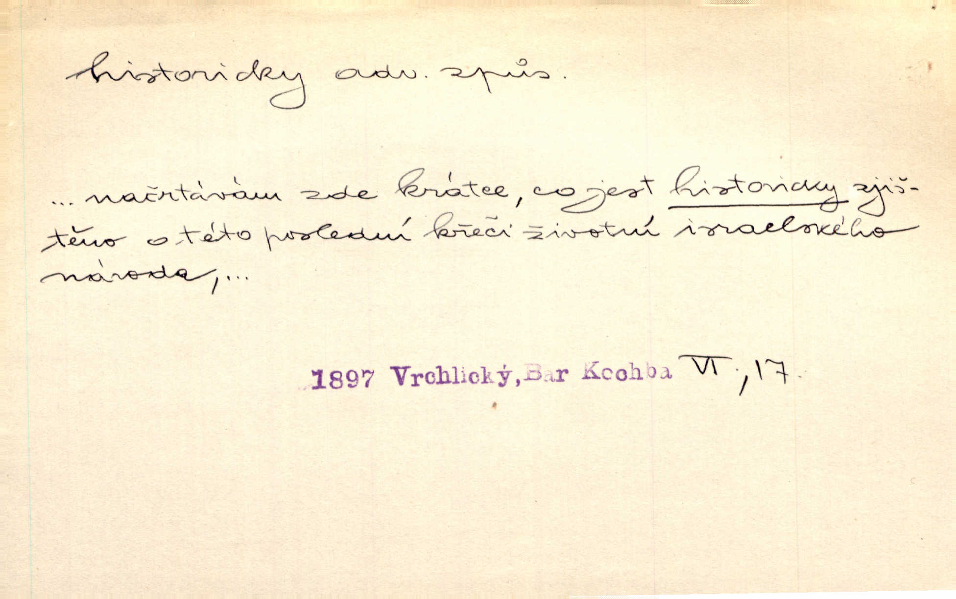 Načrtávám zde krátce, co jest historicky zjištěno.