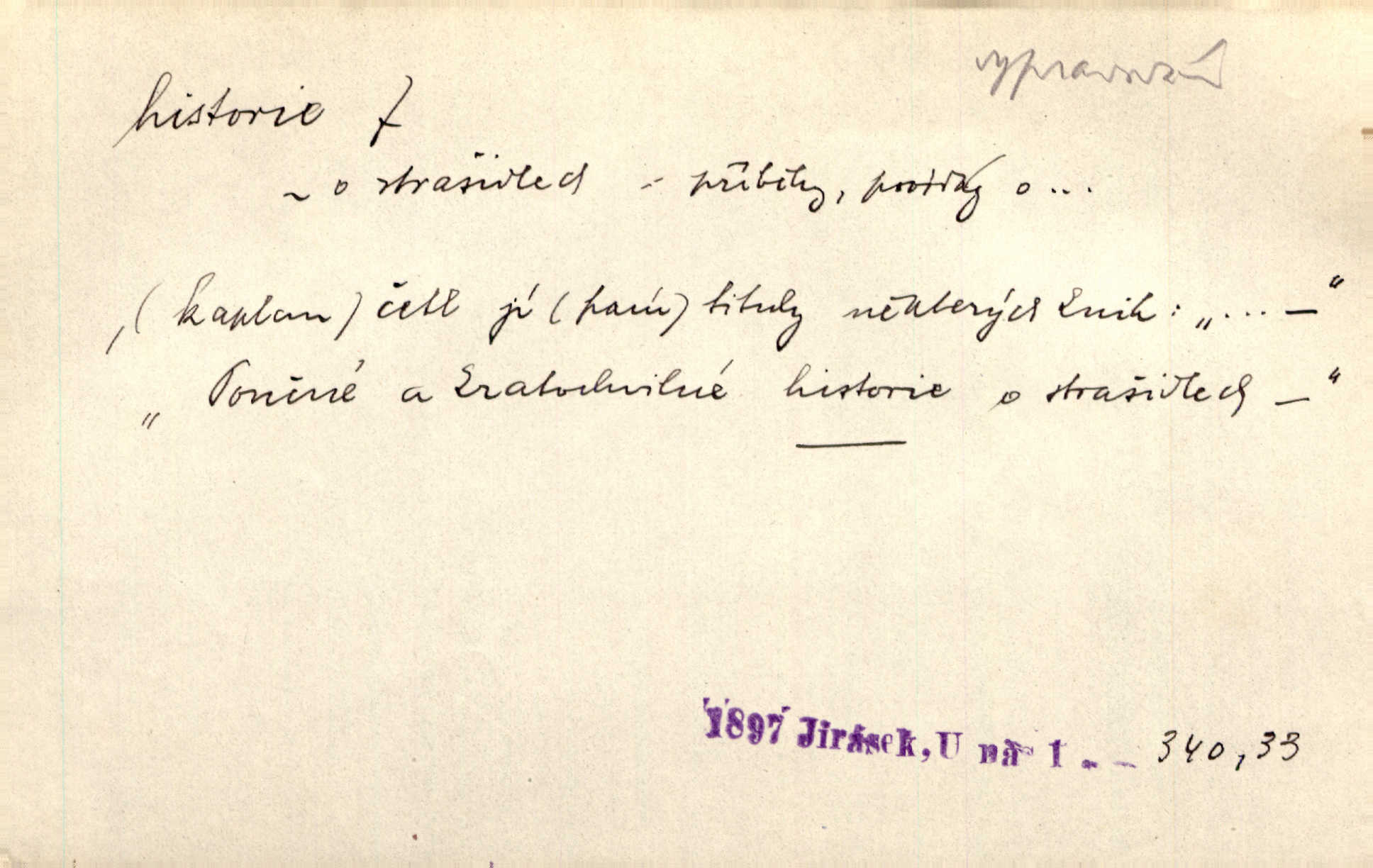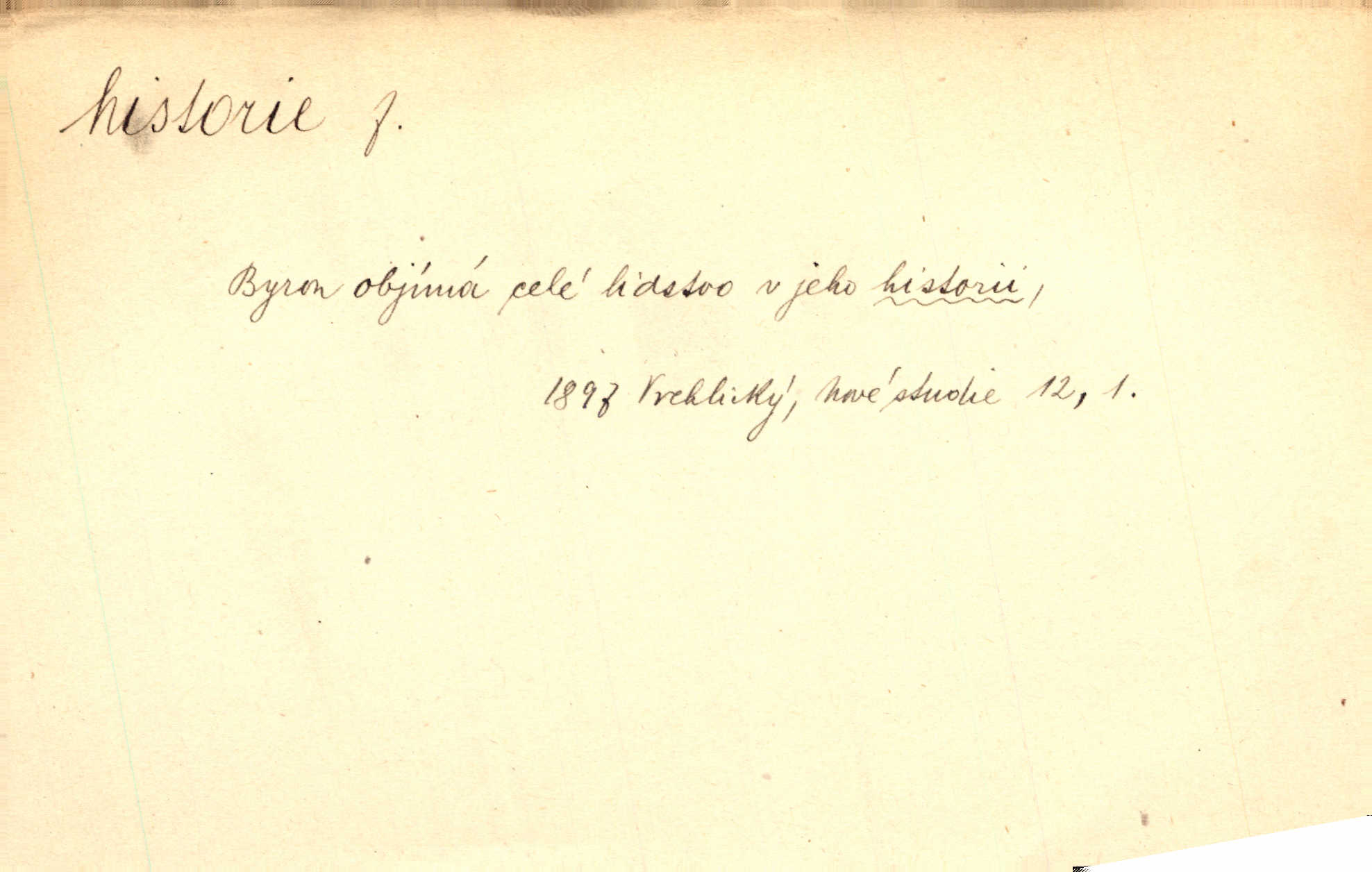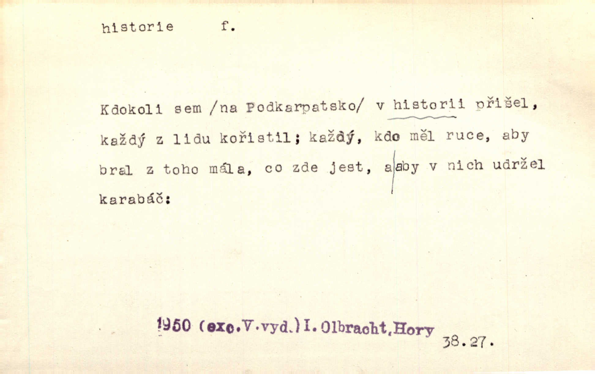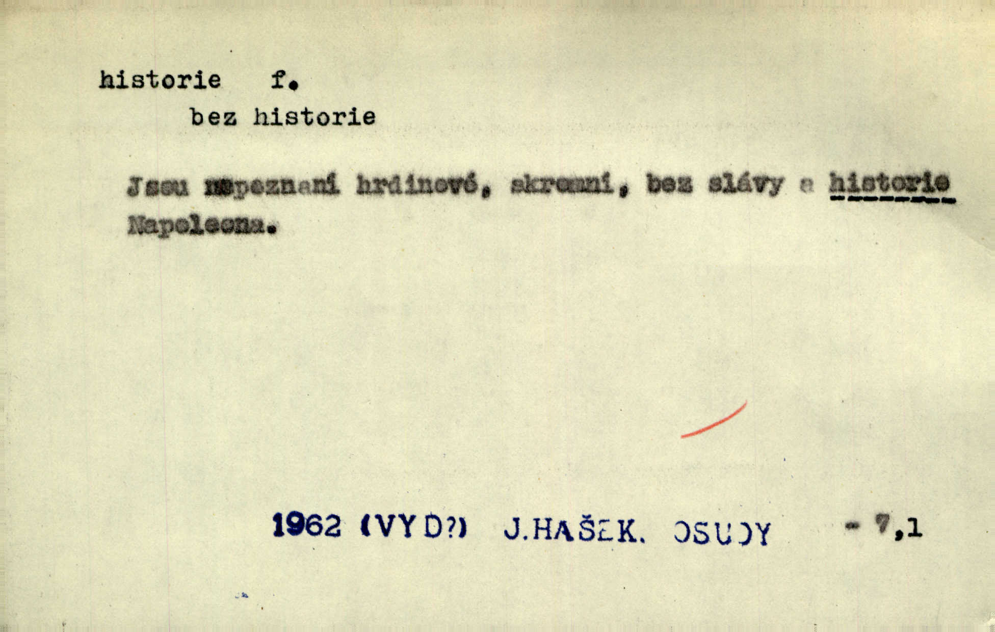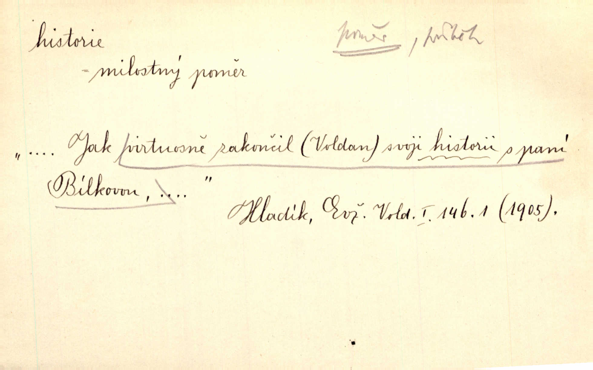- historie, -e f. dějiny, dějepis. Historie politická, církevní, hospodářská, kulturní. Historie literární dějiny literatury. Historie výtvarných umění, hudby. D (o kom, o čem) vypravování. Znal historii o rytíři, který obléhal hrad krásné vdovy, chtěje násilím dobýti její ruky. Čap. Ch. Poučné a kratochvilné historie o strašidlech. Jir. Kudy všudy chodil — ach, to by byla dlouhá historie! Herrm. D Ob. životní osudy, příběhy, nebo jednotlivá událost, příběh. Znal dobře historii její rodiny. Hlad. Smutná historie Viktorčina [v „Babičce“] zakládá se také na pravdě. Jir. Povím vám historii toho děvčete a pak prosím suďte sám. Štol. D faktum, událost, věc, úkaz. Že bývá z většího dílu ve městech řeč pokažená, to je stará historie. Něm. Číms nekonečně bolestně vzrušeným bylo naplněno srdce mé — ale to jsou jiné historie. Šlej. [Úkol kritiků] je sakramentsky nepříjemná historie, která tě rozvádí a znepřáteluje kde s kým. Šal.