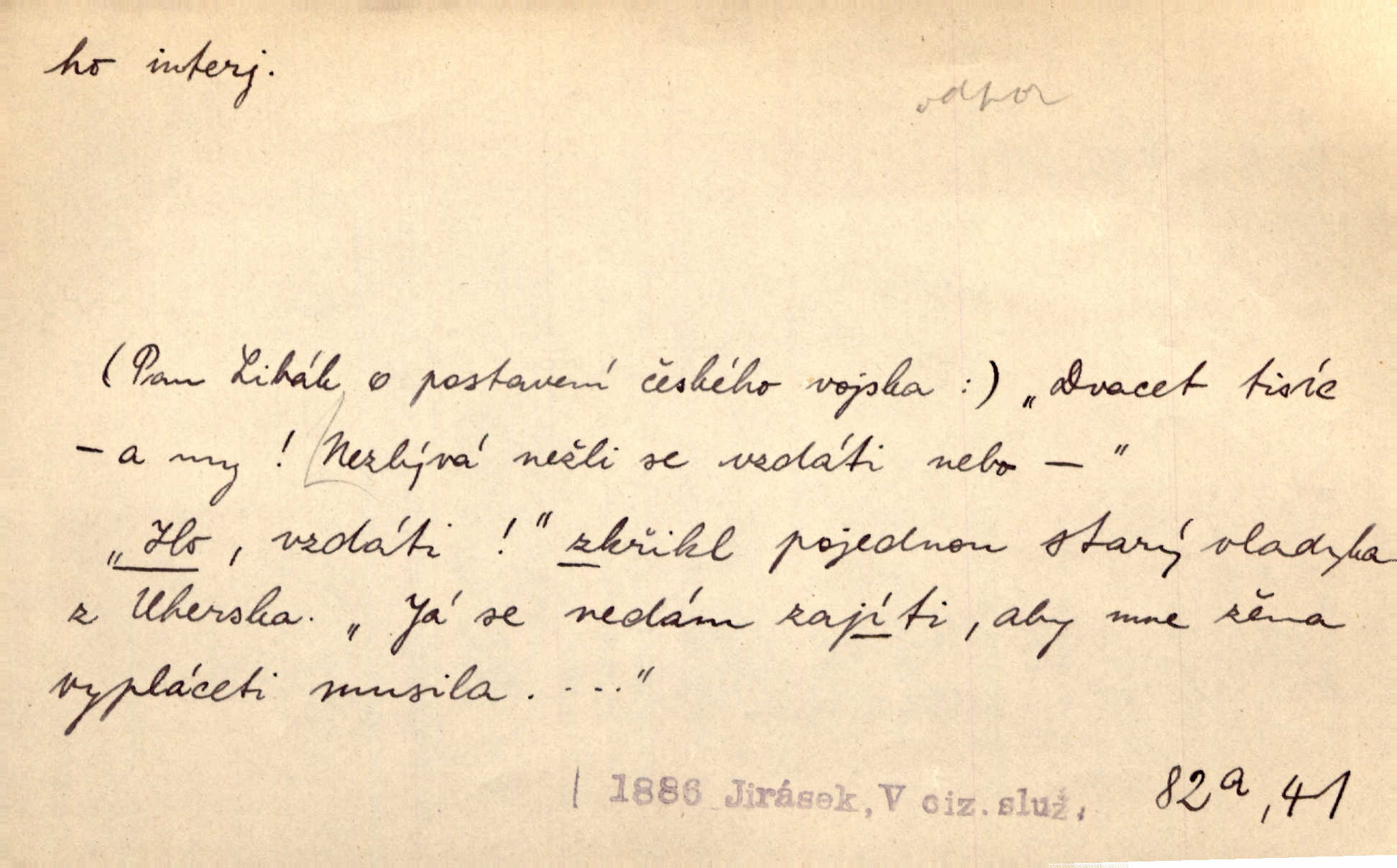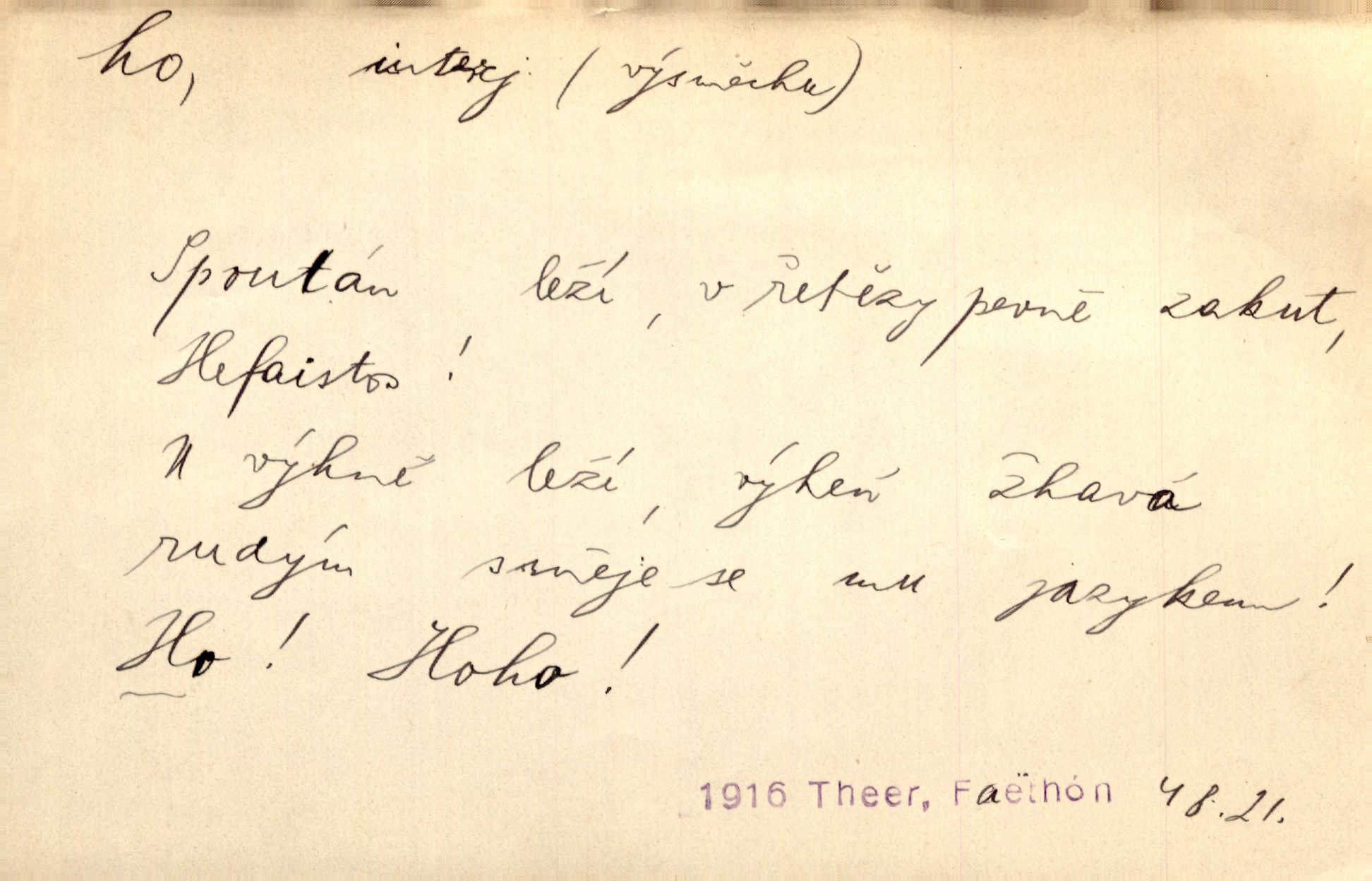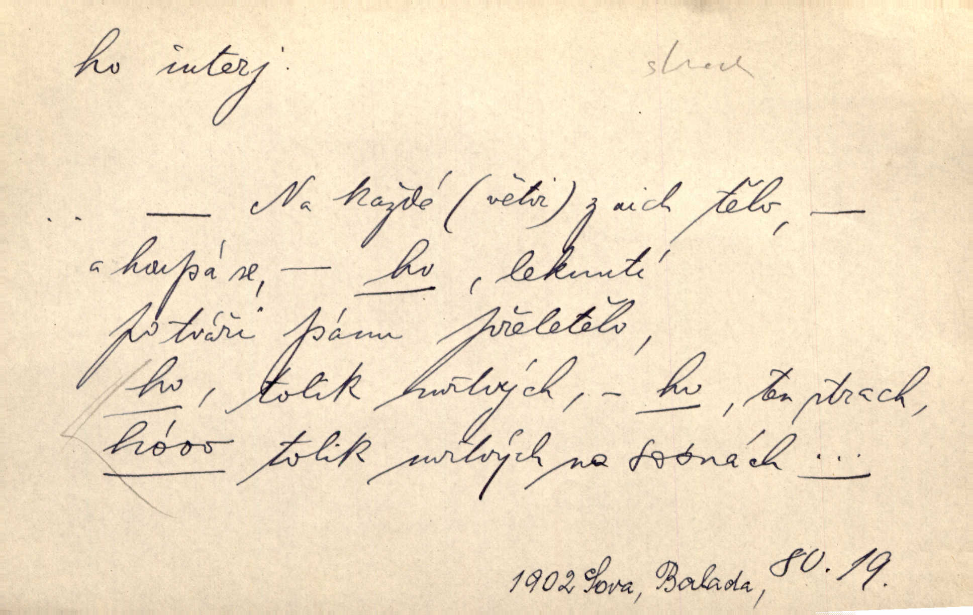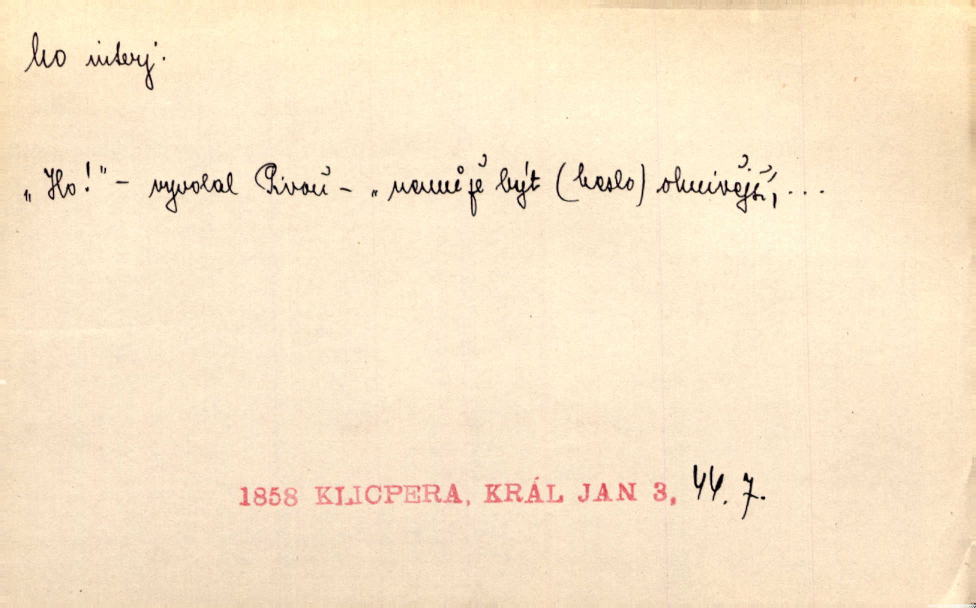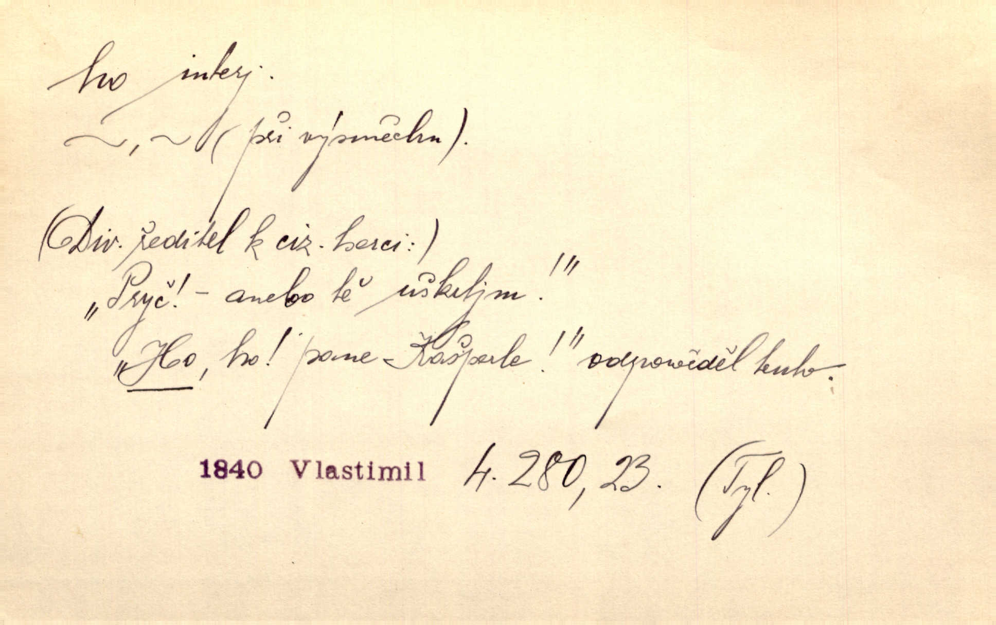 - ho, hó citosl. vyjadřující překvapení, příjemné n. nepříjemné, podiv, uleknutí, nevoli, nedůvěru, nesouhlas. Ho, jaký tlum to pestrý, polonahý těl zapletených. Čech. Hó, milý bratře, aby každý za hlavu se chytil. Jir. „Ho, ho,“ divil se otec, „já o tom nevím.“ Prav. Hó, napadlo nám sněhu. Šrám. Hó, toč se světe, toč. Šrám. Hó, hřeje [po napití koňaku]. Lang. Ho, nech modlení — skoč a pojď. Erb. Hó, strašlivě mi, paní, hráš. Erb. [Na každé větvi] tělo, — a houpá se, — ho, leknutí po tváři pánu přeletělo, ho, tolik mrtvých, — ho, ten strach, hóoo tolik mrtvých na sosnách… Sova. „Kdo to?“ — „To já, tvůj.“ — „Ho, ho, čtveráku!“ Lum. Ho — ho — už dost, ty moudrý kazateli! Jir. Ho, ho, ho… pomalu! Staš. D (obyč. opakováno) naznačuje smích. [Výheň] rudým směje se mu jazykem! Ho! Hoho! Theer. „Ho, ho, ho!“ smál se papoušek. Vrch. D ohlašuje pohyb, zvl. rychlé přibližování. „Hó — hohó — jedeme!“ volá řidič saní. Rais.