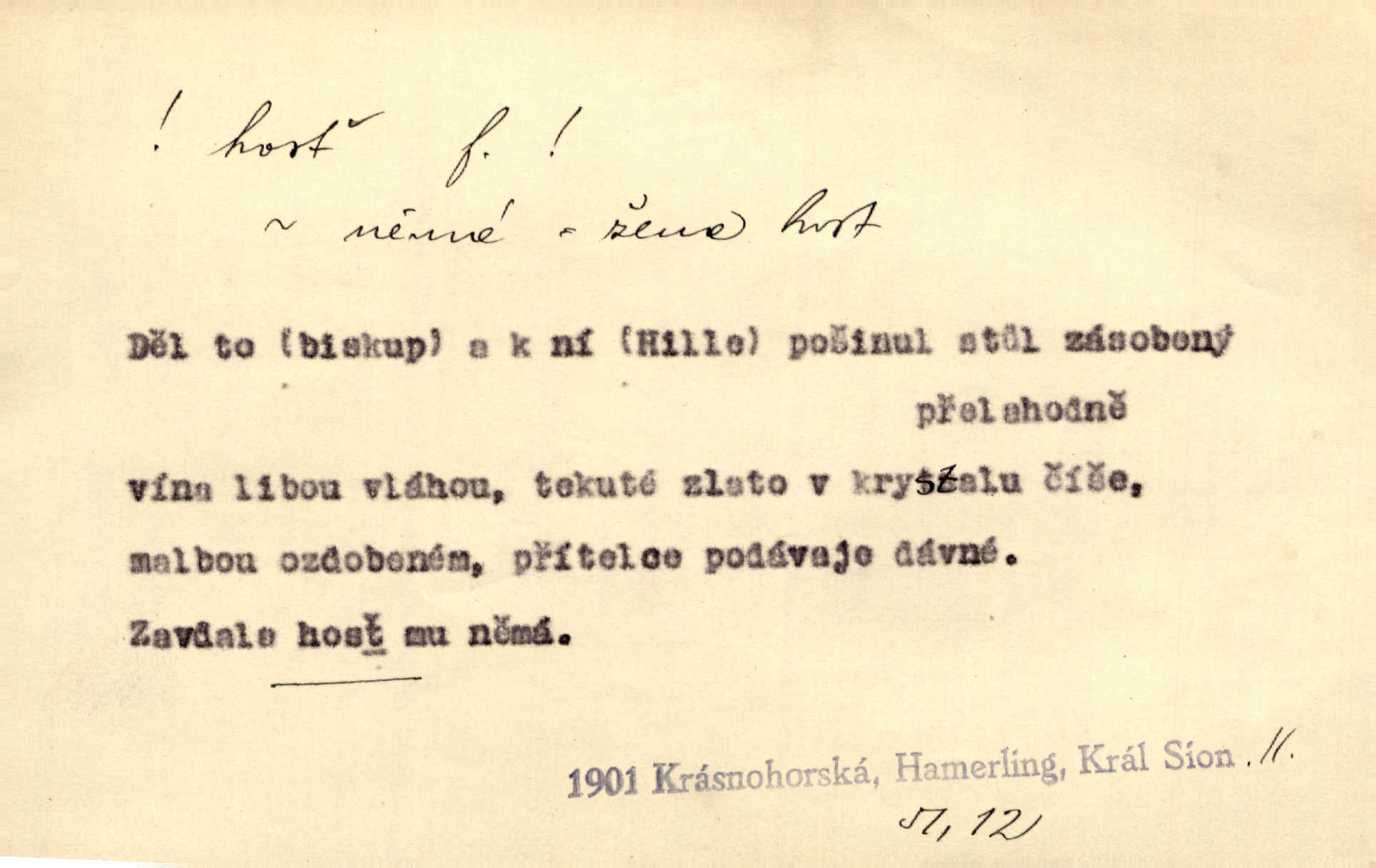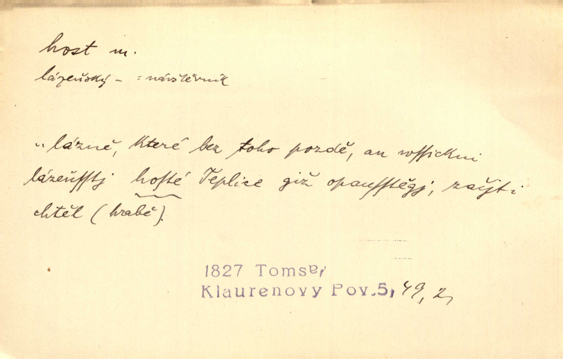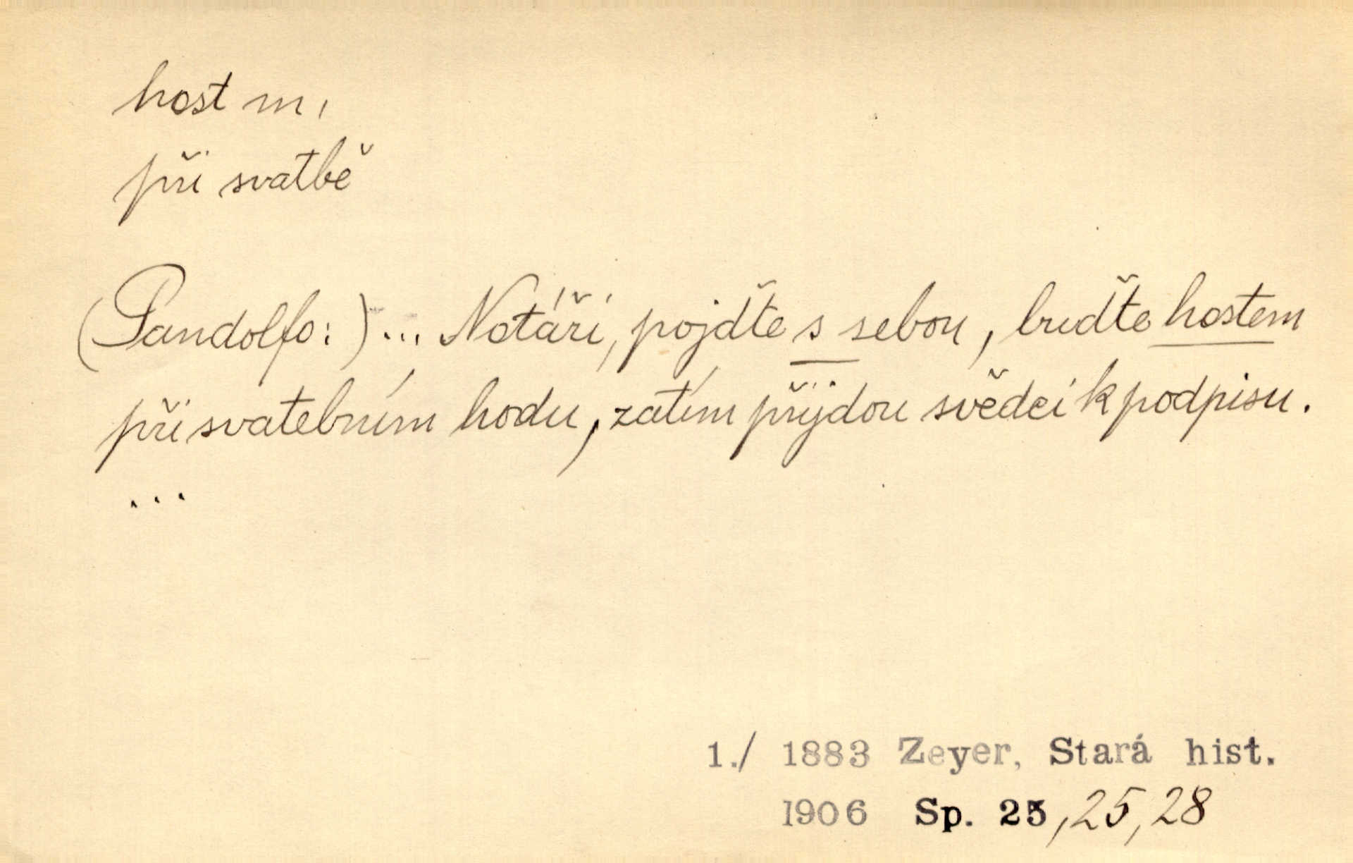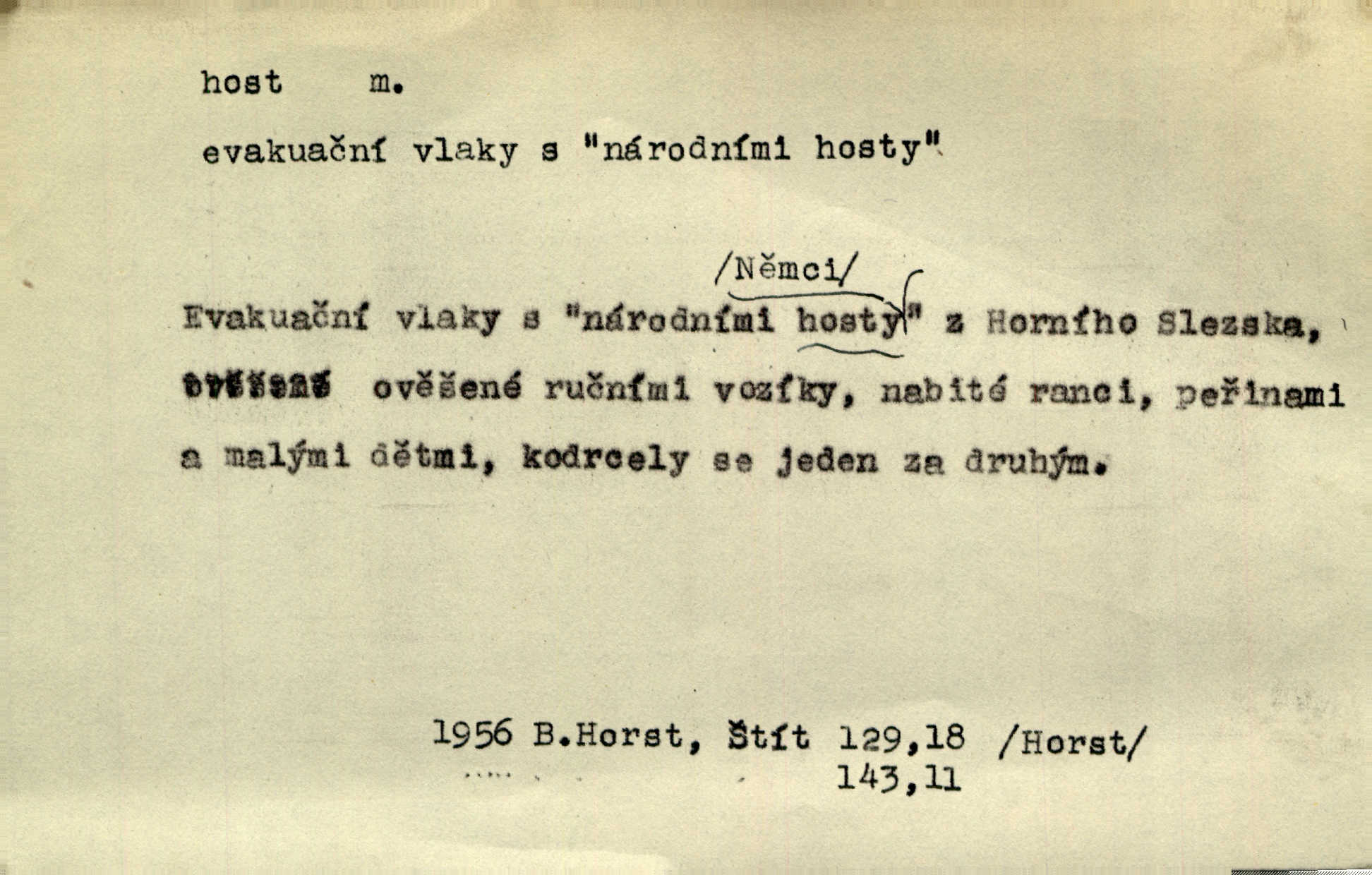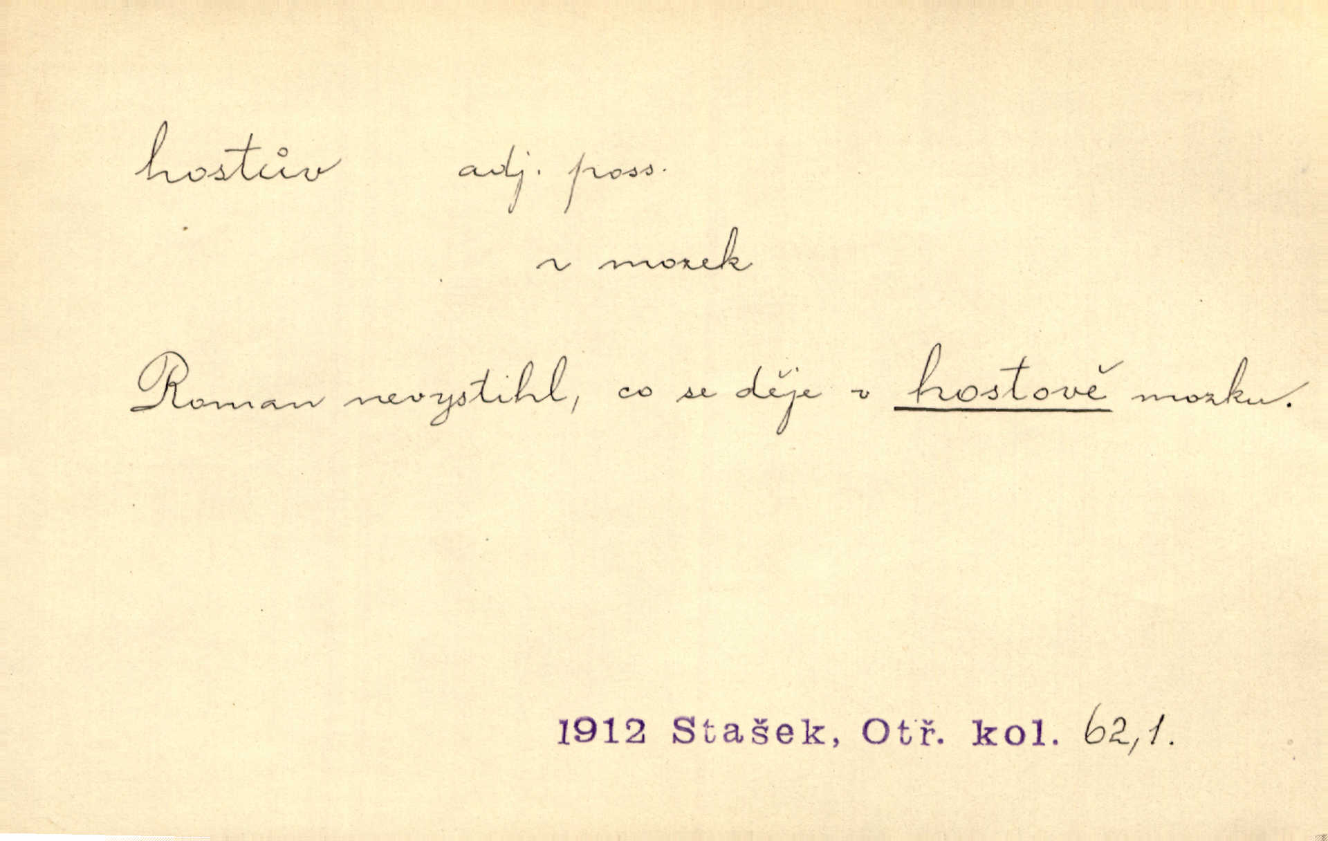 - host, -a m. (pl. hosté, ob. hosti, hostů, hostům, hosty, hostech, hosty; řidč. hostí, hosti, hostmi) příchozí na návštěvu, návštěvník, jemuž se obyčejně poskytuje na počest také pohostinství. Pan Prošek rád měl skleničku vína v domě pro hosta milého. Něm. Velmi rádi vidí [ruští kupci] u sebe hosty a přecpávají a přelívají je vším, co dům dá. Havl. Našel přístup [Vacquerie] do domu jeho [V. Huga], stal se denním hostem. Vrch. Kázal sezvati na třetí svatbu hosti. Havl. „Bože, to jsou k nám hosté, ženuško, náš nový pan domácí!“ Ner. V každé dobře vzdělané společnosti dává se hostům před domácími přednost. Havl. Host do domu, Bůh do domu. Host nezvaný nejmilejší. Staročeská byla ctnost: rád byl viděn v domě host. Host první den zlato, druhý stříbro, třetí měď. Ryba a host třetí den smrdí. Přísl. Přihlížel jsem právě co nezvaný host manipulaci se šatstvem [v zastavárně]. Ner. Býval doma pouze hostem a celé týdny trávil na cestách jako host, zřídka. Baar. Přednášky profesorů — hostů z jiné čsl. či cizí vysoké školy. Služ. min. škol. Div. umělec n. umělkyně účinkující v divadle, do jehož souboru nenáleží. V ústavě našem novém vystoupil první host. Ner. D příchozí, návštěvník v jistých výdělečných podnicích (kde se lze stravovati nebo i bydliti: v hostincích, hotelích, kavárnách, lázních). Nerad ublíží kuřeti [hostinský] a nerad si také hosty odrazí. Něm. Večer zasedali kol jediného dlouhého stolu [v hostinci] kmenoví hosté. Šim. V kavárně bylo málo hostů. Čech. Lázeňští hosté procházeli se. Pfleg. D Kniž. příchozí někam vůbec (často i nevítaný). Byli [studenti] zajisté vzácní hosté v těchto končinách [křivoklátských lesích]. Jir. Starý Petráš — Cihlářka a stará Rybářka — denní hosté svatého domu. A. Mrš. Jsme tu [na světě] každý jenom host pobudeme nakrátce. Obr. živ. Když uhodily mrazy, oživlo okolí osamělého dvora nevítanými hosty. Vlci se pouštěli až k jeho ohradě. Jir. Čeládce se neplatí [u Podivů] mzda, daně se neodvádějí pořádně, exekutor bývá u nich častým hostem. Prav. Hum. Vyhlídka omezovala se na zahradu, uzavřenou vysokou zdi proti nepovolaným hostům zlodějům. Svob. Dny nevýslovně smutné přišly na Vrbickou faru. Usadil se v ní zlý host: nemoc. Baar. Hlad, nejhorší to host všech obyvatelů horských. Pfleg. Sníh a mráz jsou tu [v Orlických horách] časným hostem. Jir. Uklidíme hned všecko zlému hostu [blížící se povodni] z cesty. Něm. Lyrika je řídkým hostem na venkově a děvčata rozumějí jí velmi málo. Vrba.
