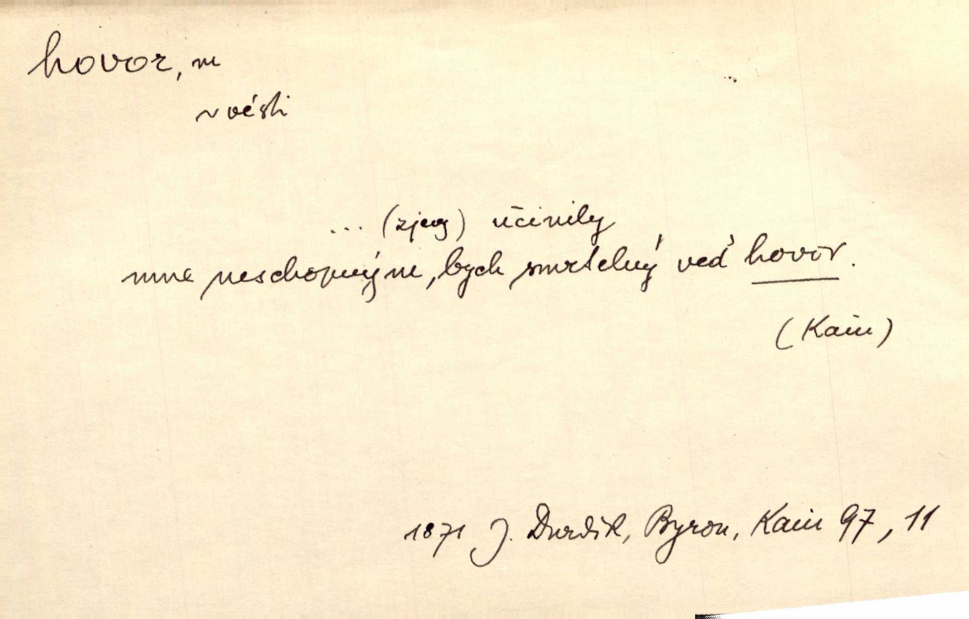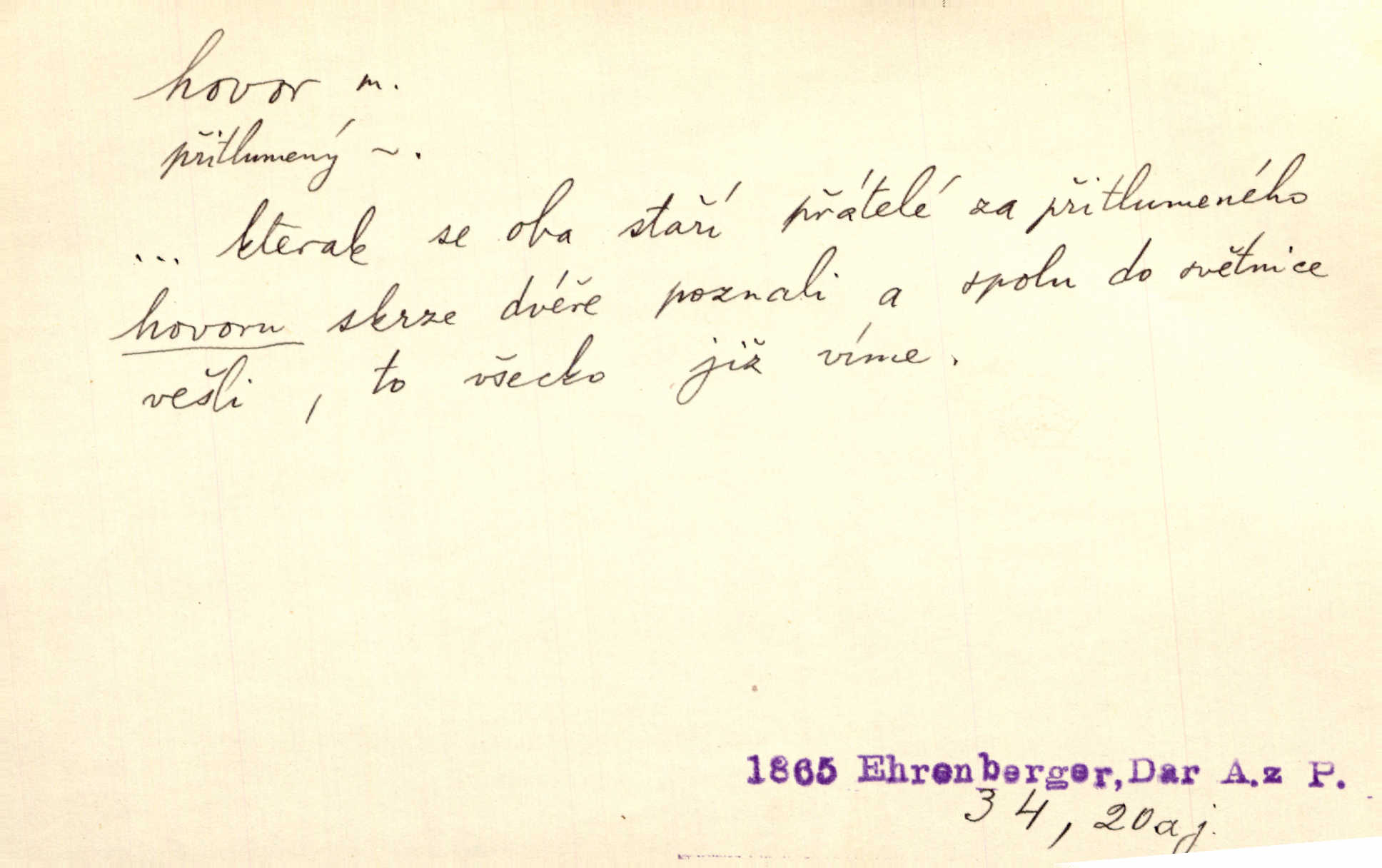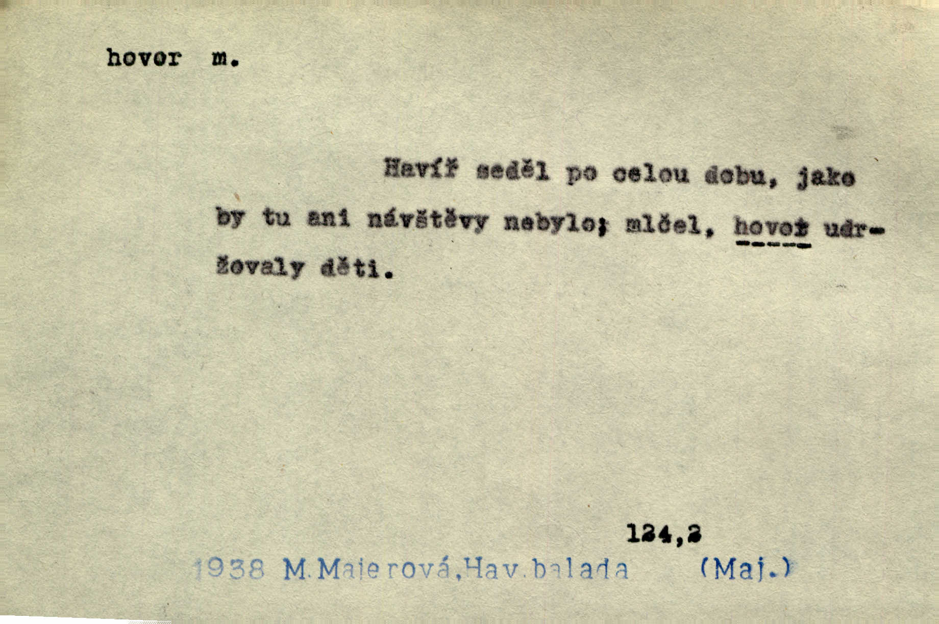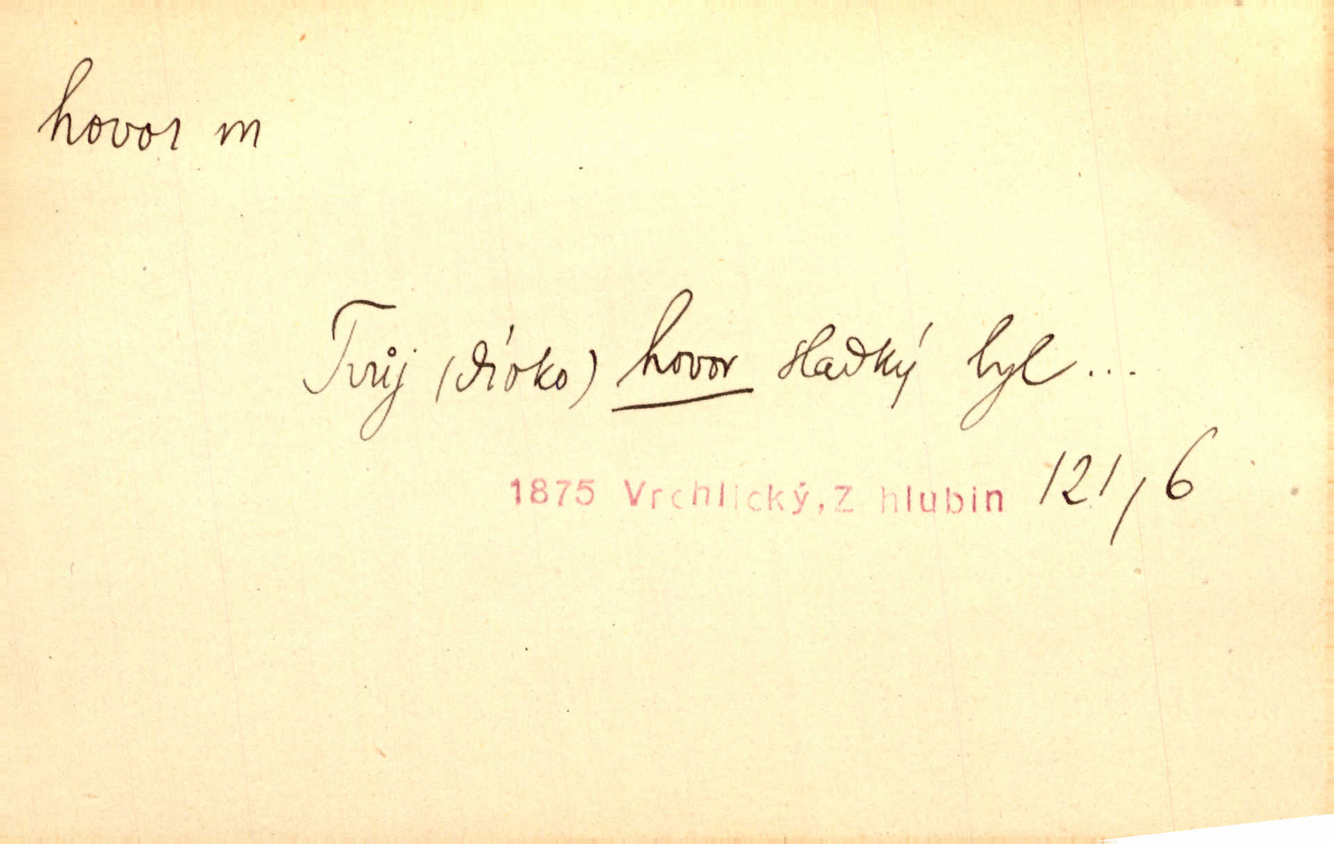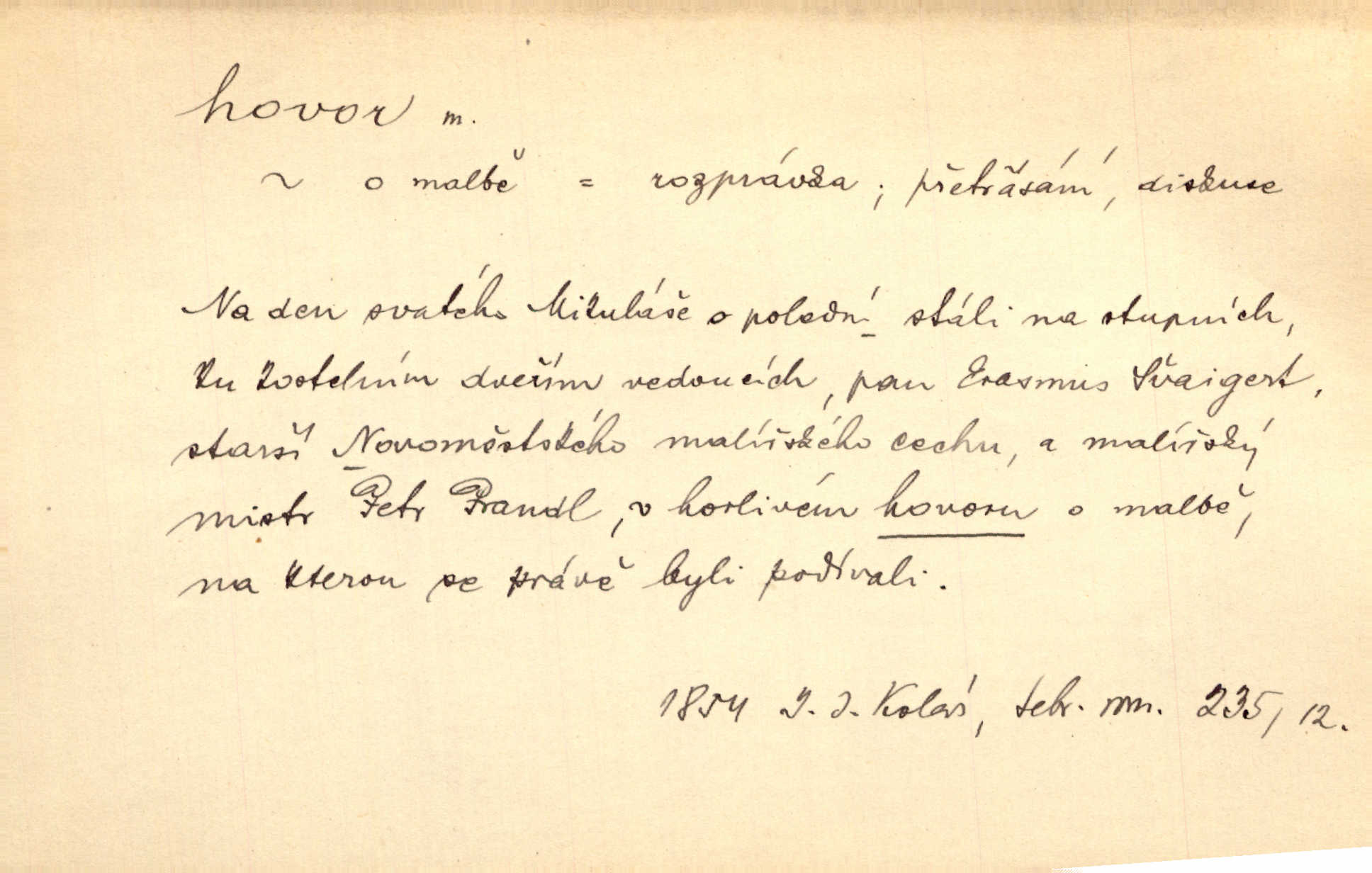 - hovor, -u m. rozprávka, rozmluva, konversace. Bylo slyšeti přitlumený hovor. Rais. Zpomněli si na onen hovor, jejž vedli v den Hrabcova povýšení. Herb. Hovor vázne. Není mi do hovoru. Přen. Turci nechávali hovor našich děl bez odpovědi střelbu. Hol. Telef. rozmluva telefonem. Hovor obyčejný, nutný, místní, meziměstský, státní.